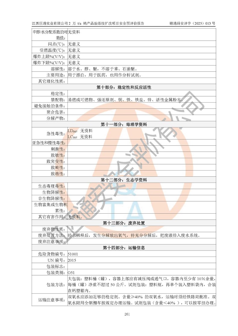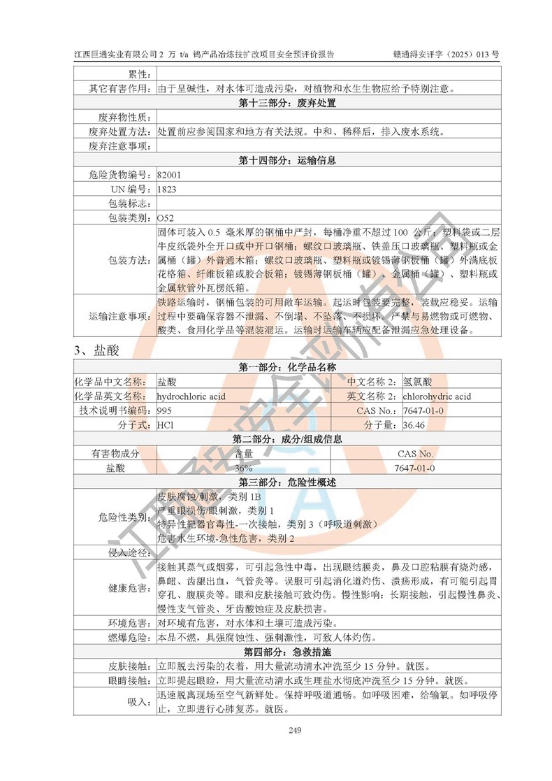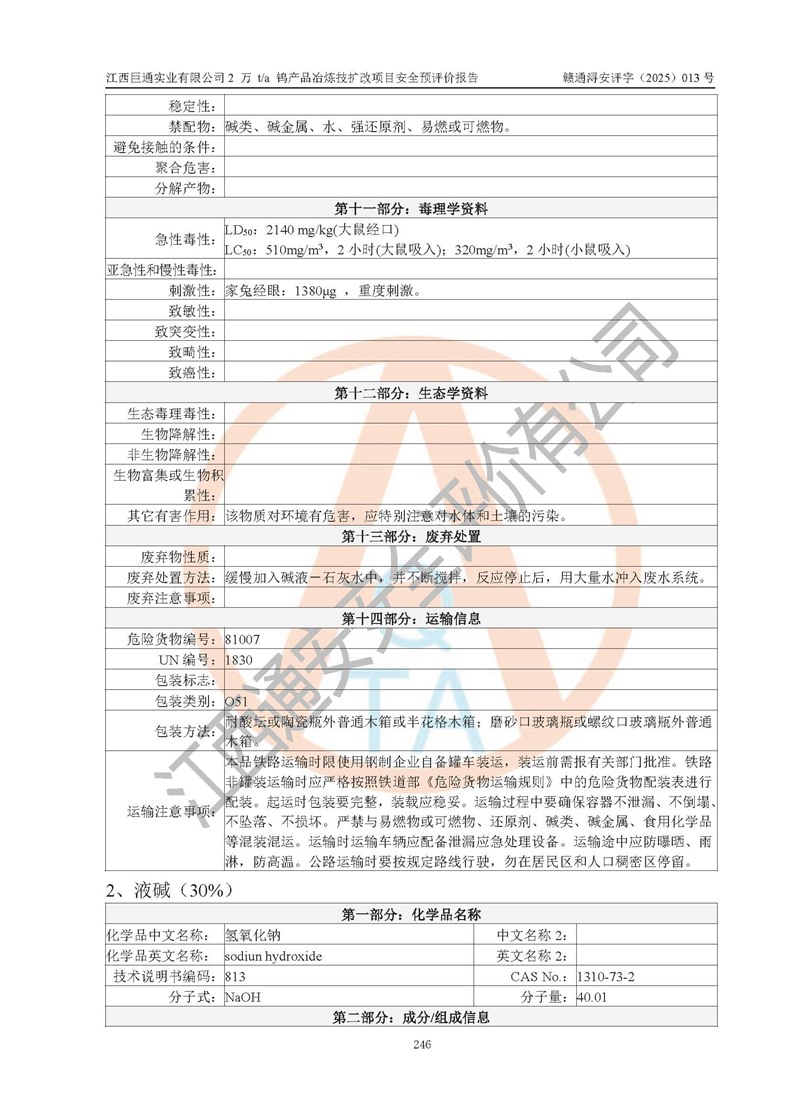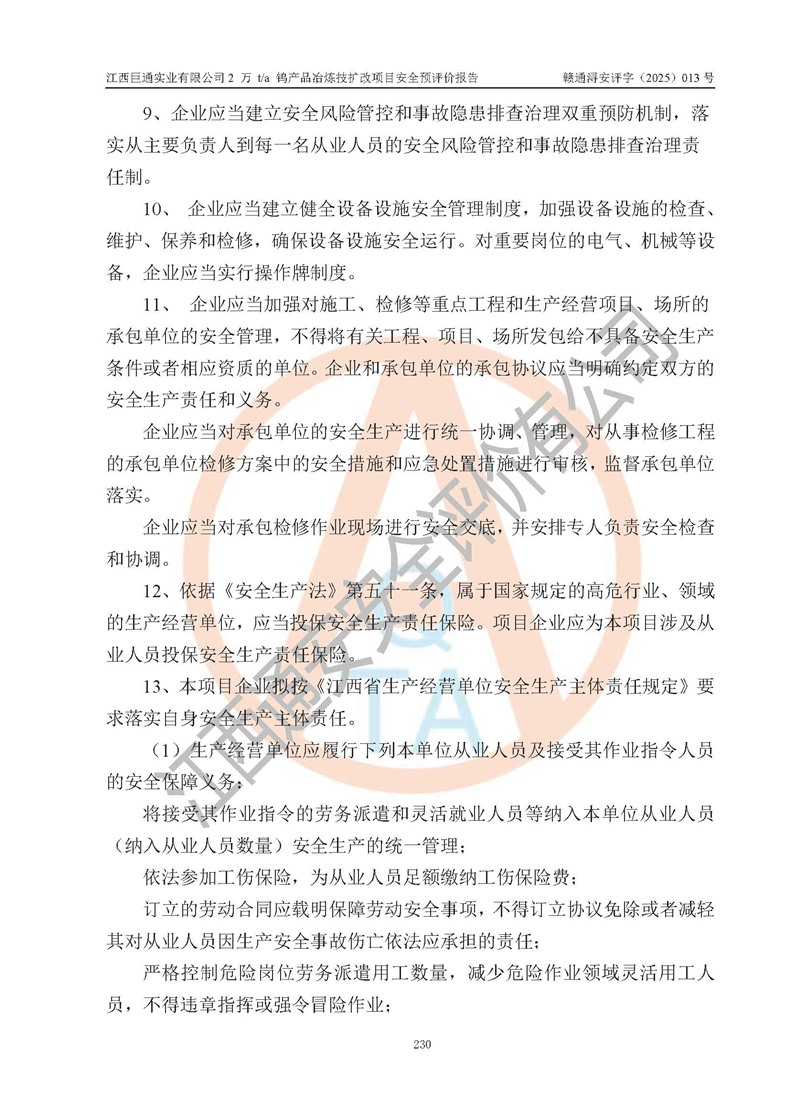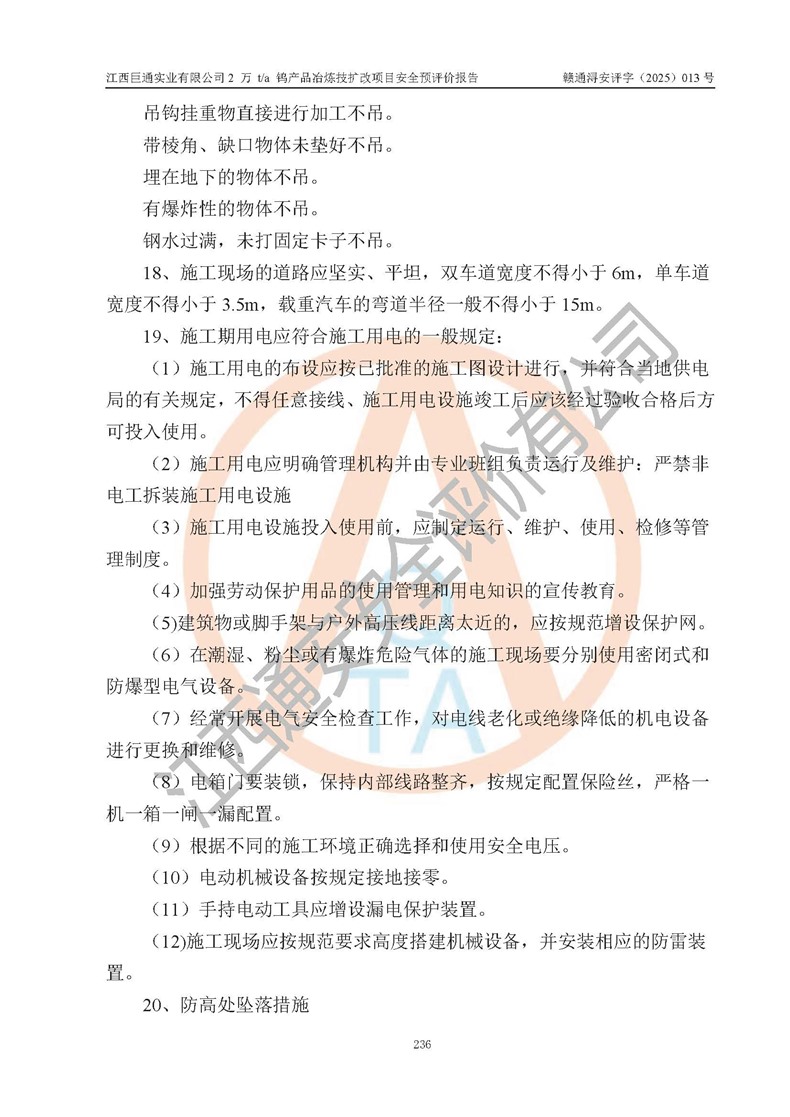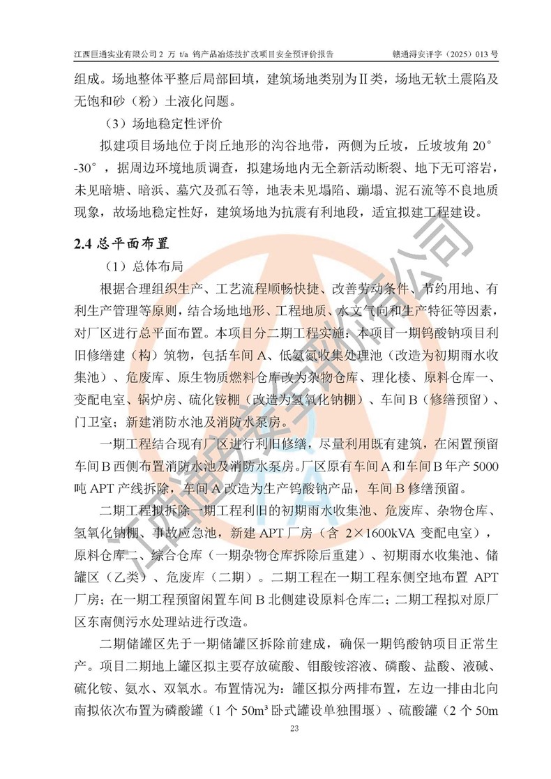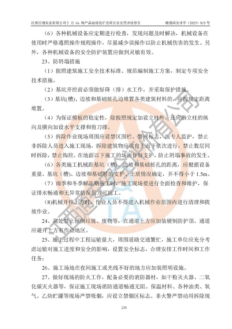 評價報(bào)告名稱 | 江西巨通實(shí)業(yè)有限公司2 萬 t/a 鎢產(chǎn)品冶煉技擴(kuò)改項(xiàng)目安全預(yù)評價報(bào)告 | |||