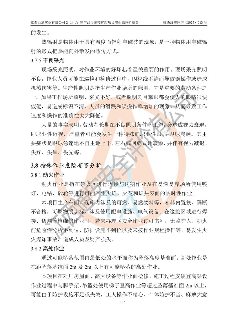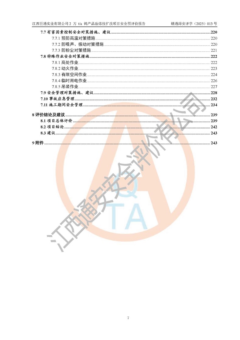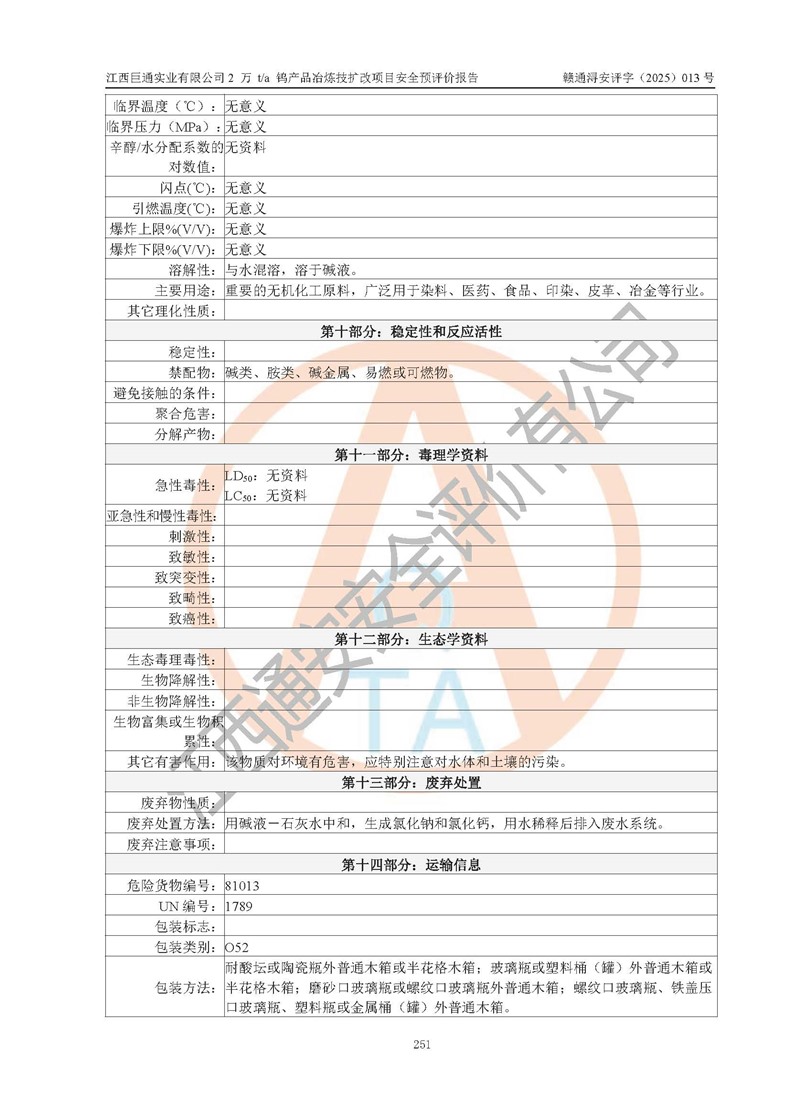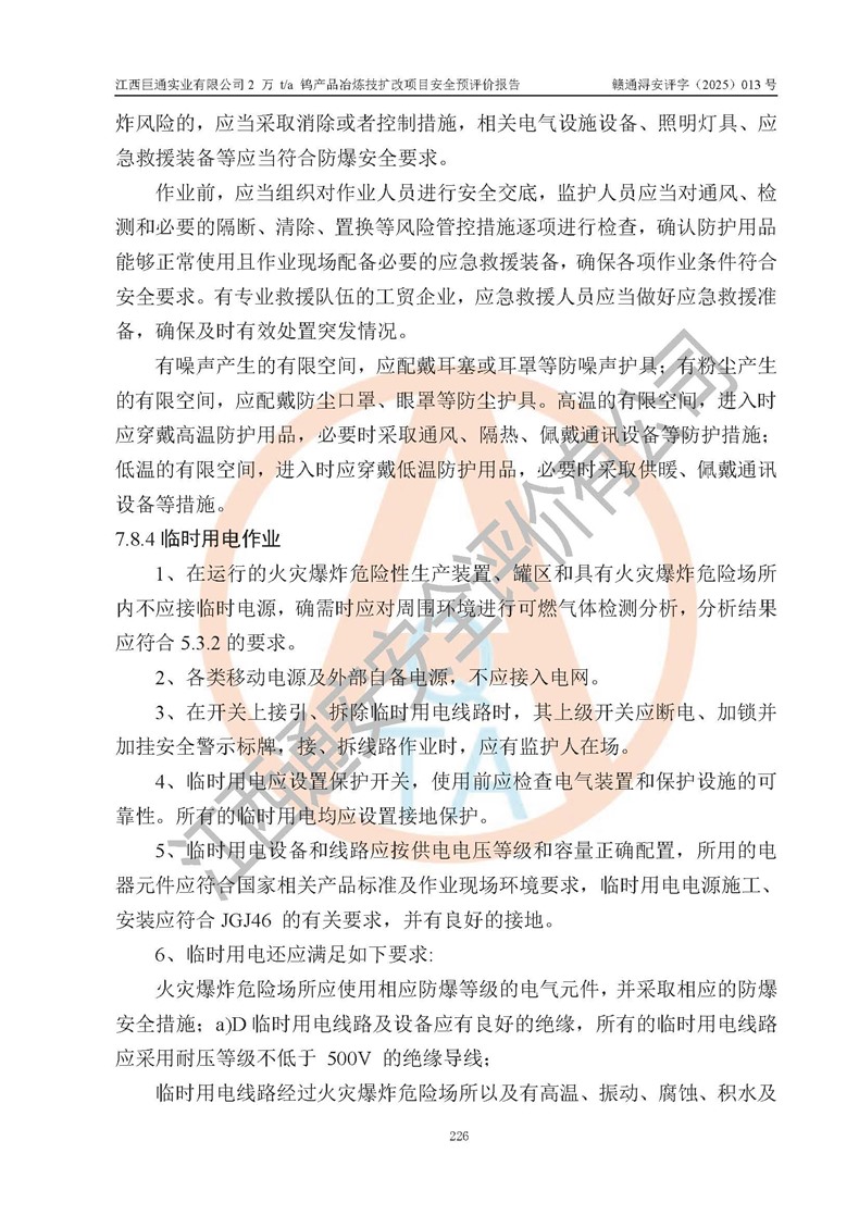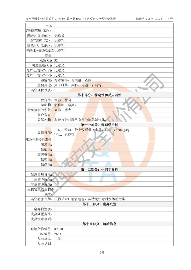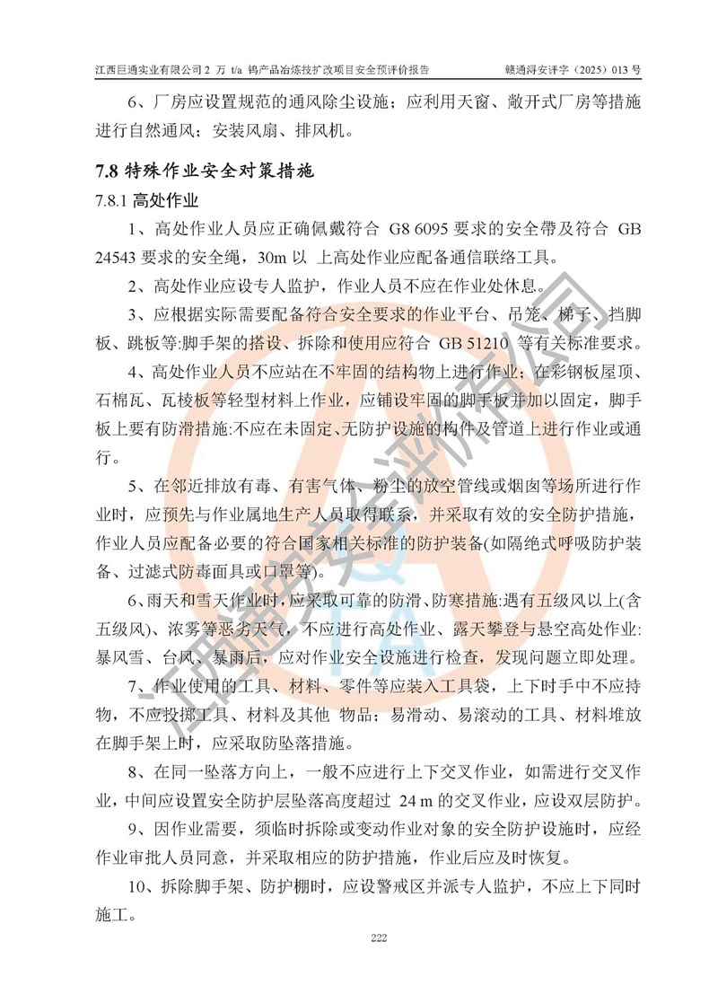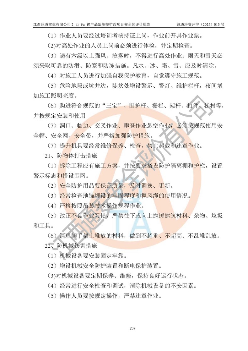 評價報(bào)告名稱 | 江西巨通實(shí)業(yè)有限公司2 萬 t/a 鎢產(chǎn)品冶煉技擴(kuò)改項(xiàng)目安全預(yù)評價報(bào)告 | |||
