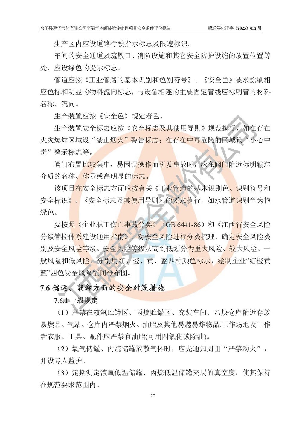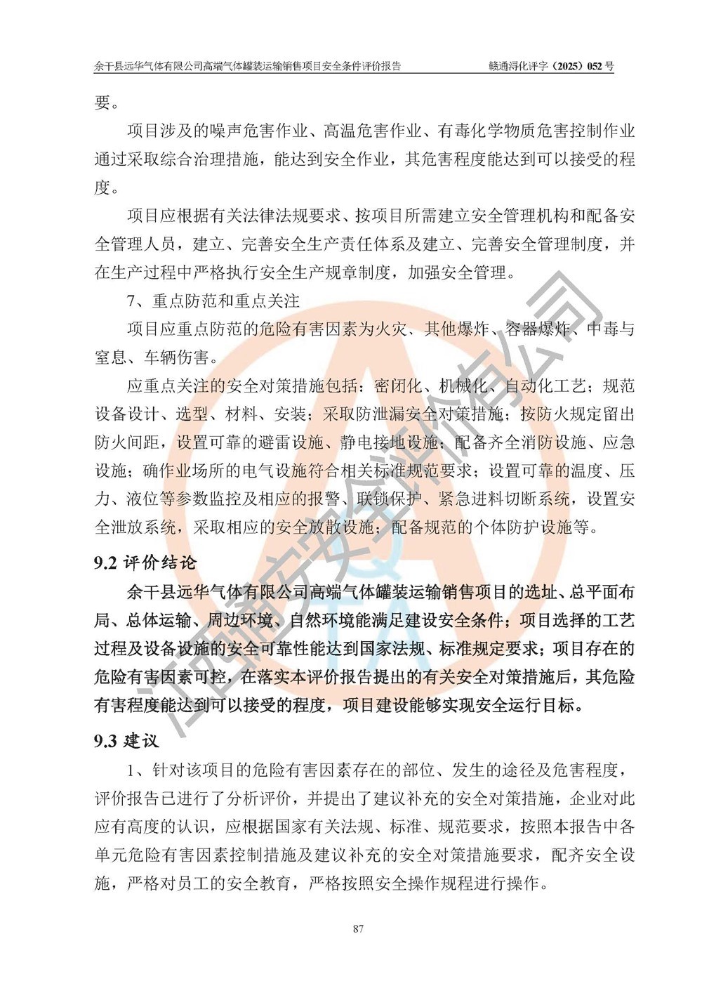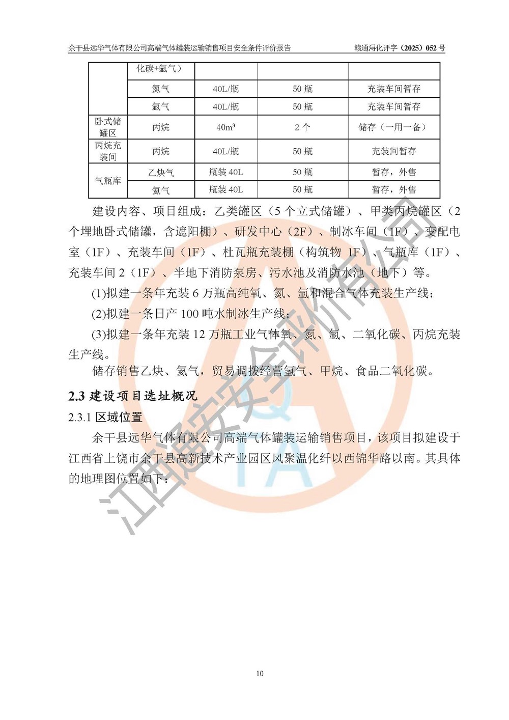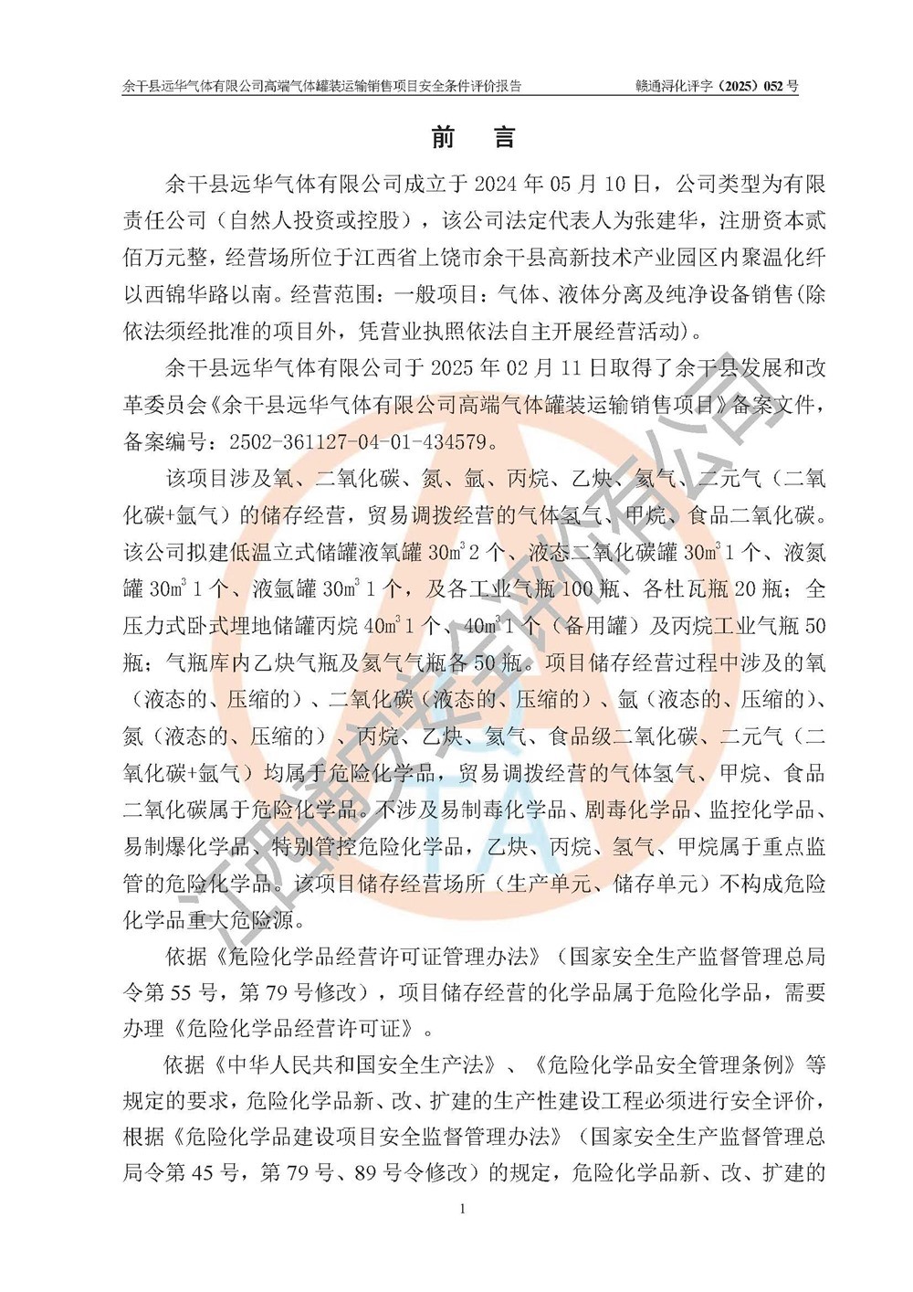 評價報告名稱 | 余干縣遠華氣體有限公司高端氣體罐裝運輸銷售項目安全條件評價報告 | ||||||