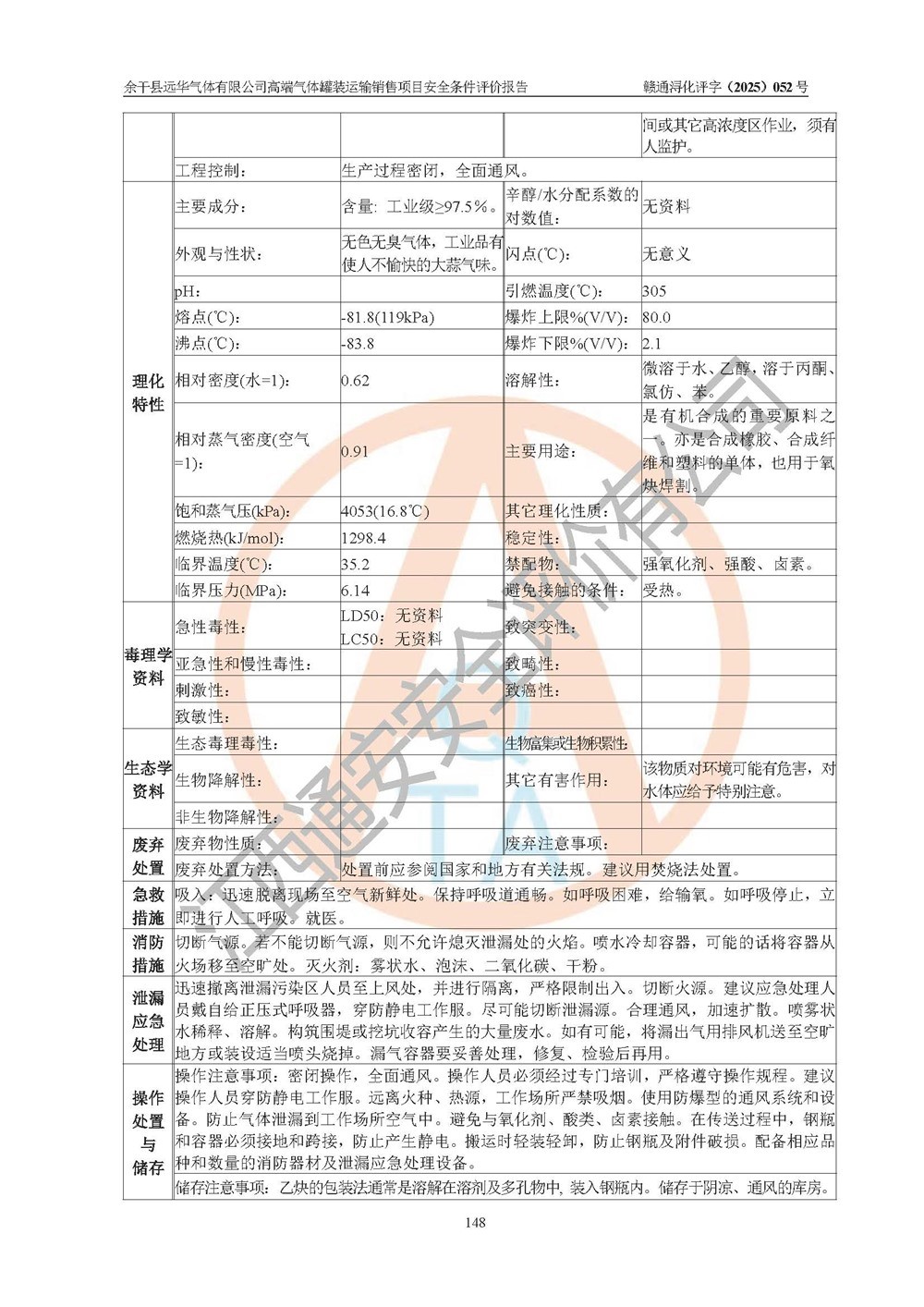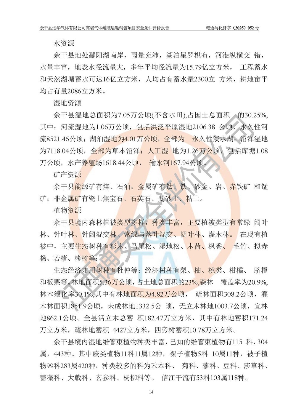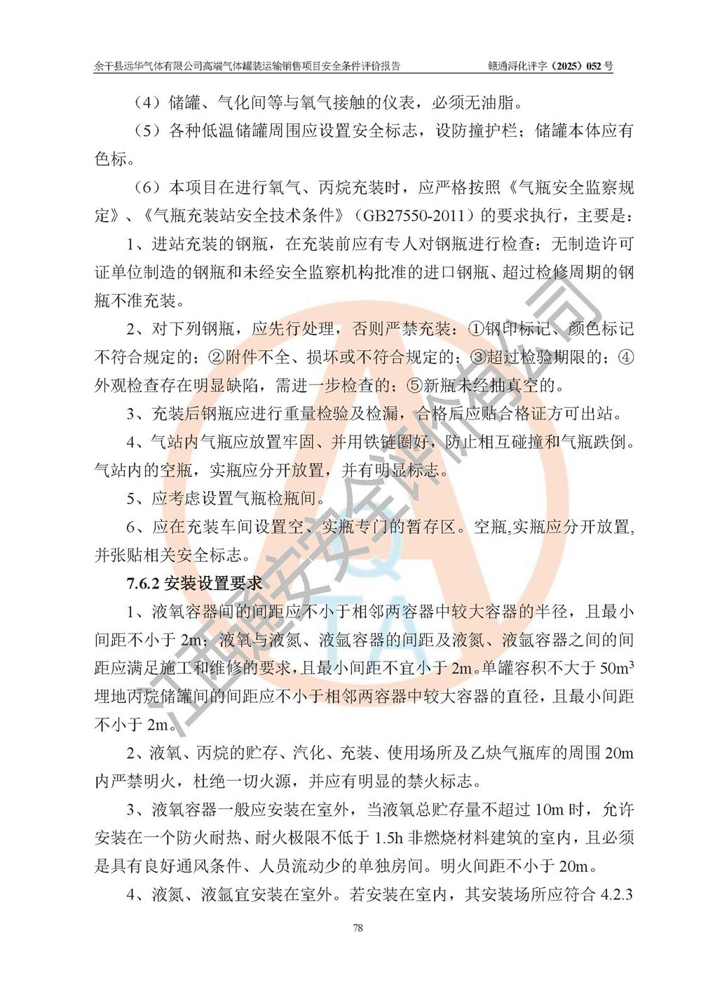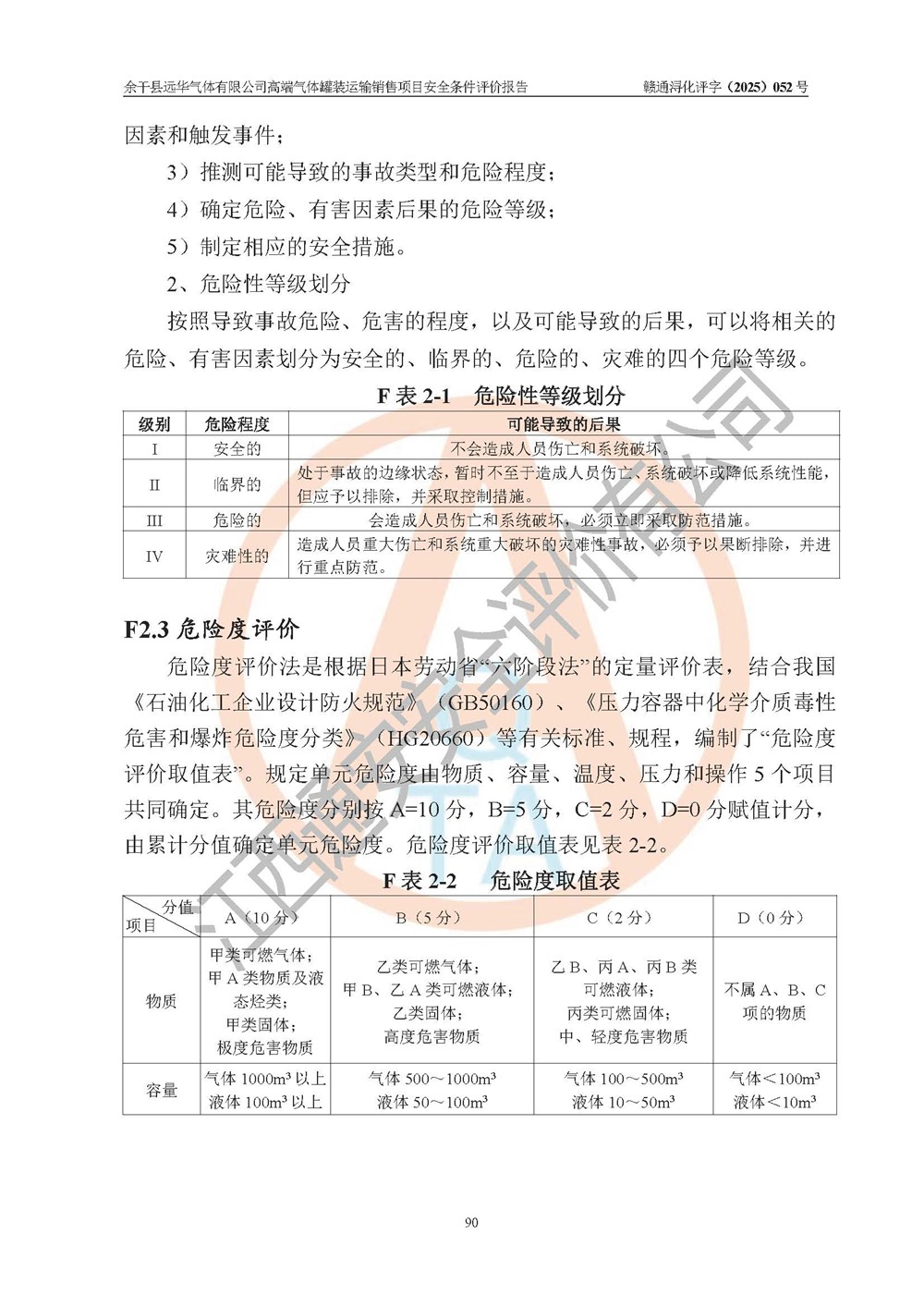 評價報告名稱 | 余干縣遠華氣體有限公司高端氣體罐裝運輸銷售項目安全條件評價報告 | ||||||