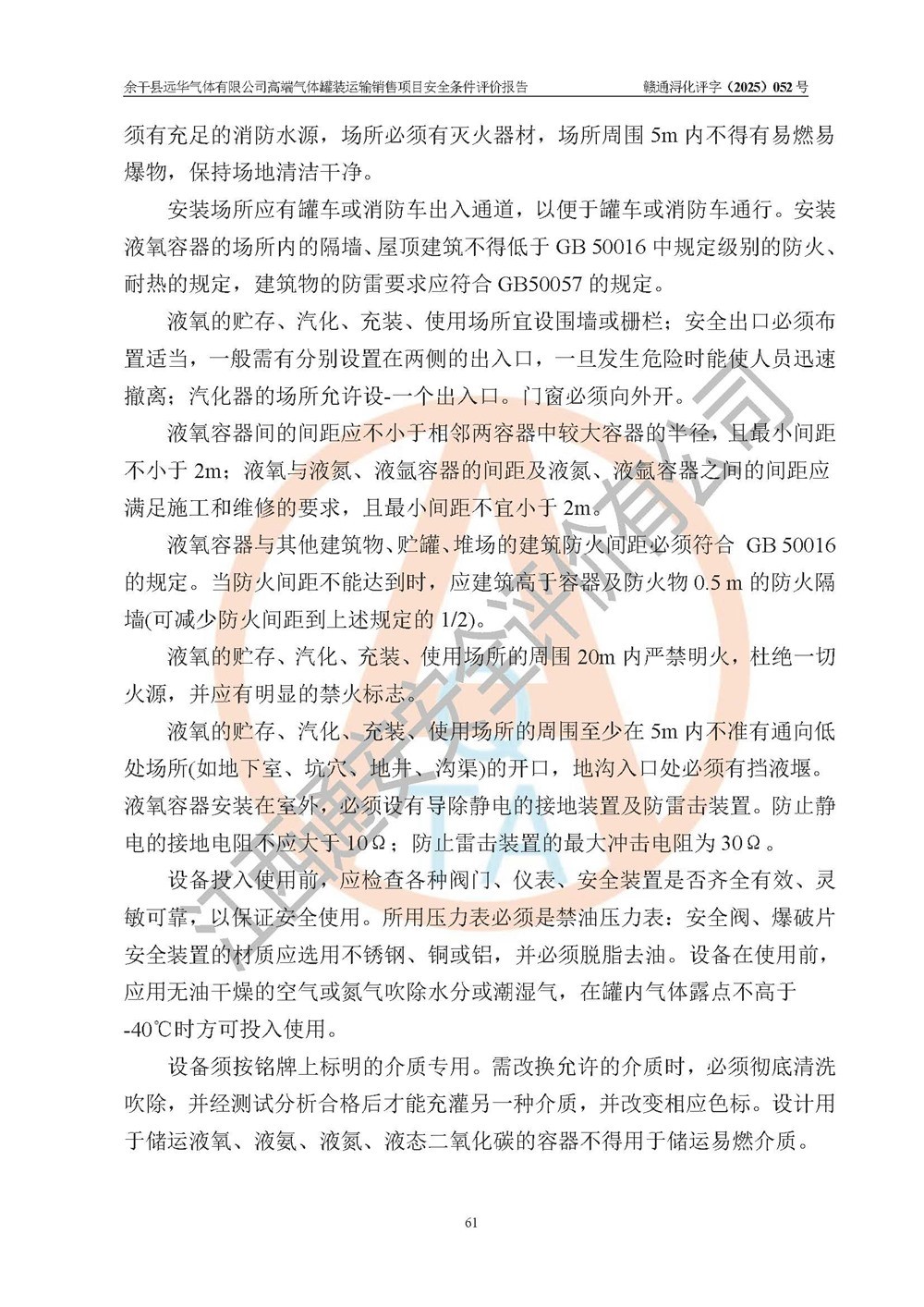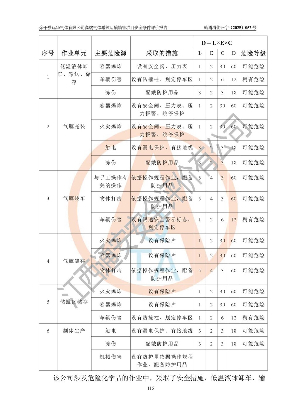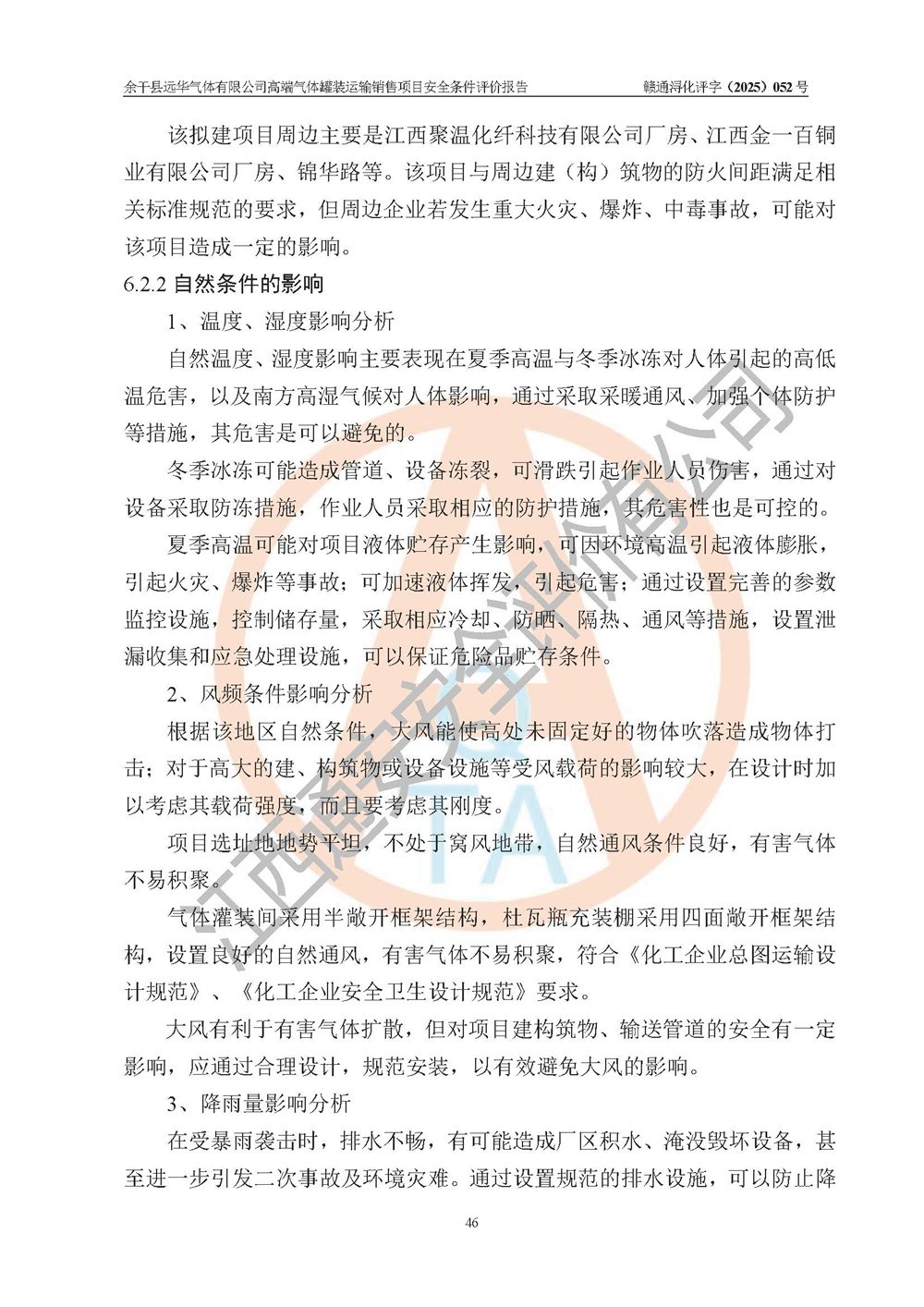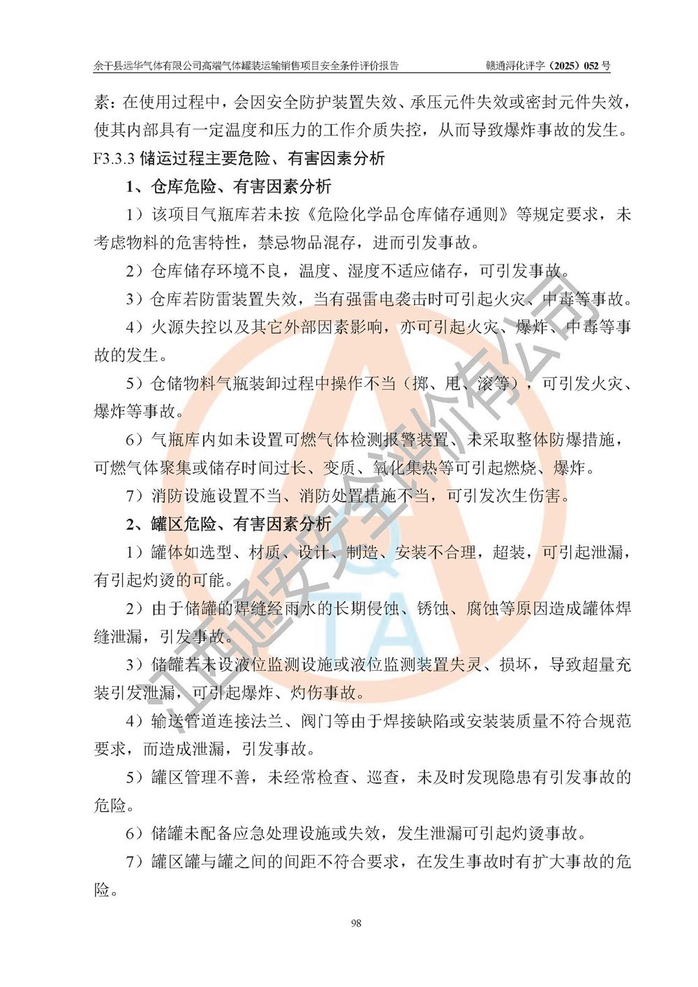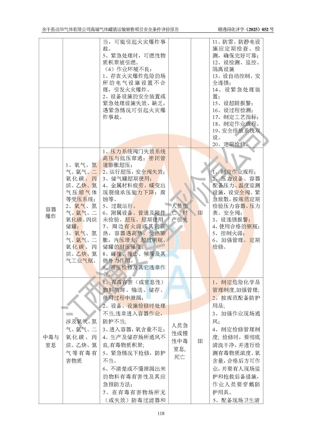評價報告名稱 | 余干縣遠華氣體有限公司高端氣體罐裝運輸銷售項目安全條件評價報告 | ||||||