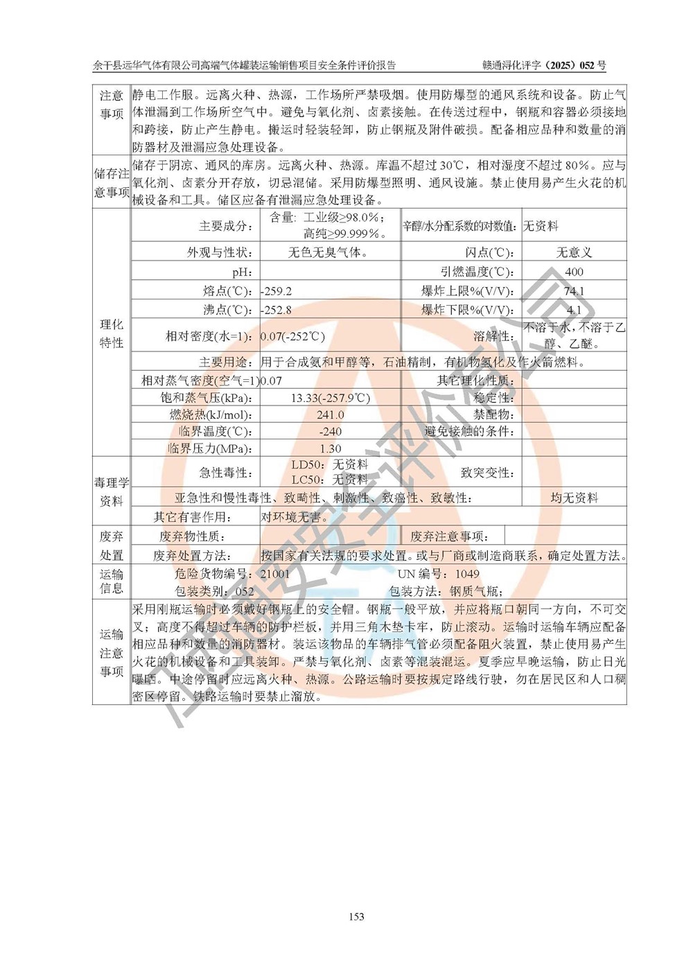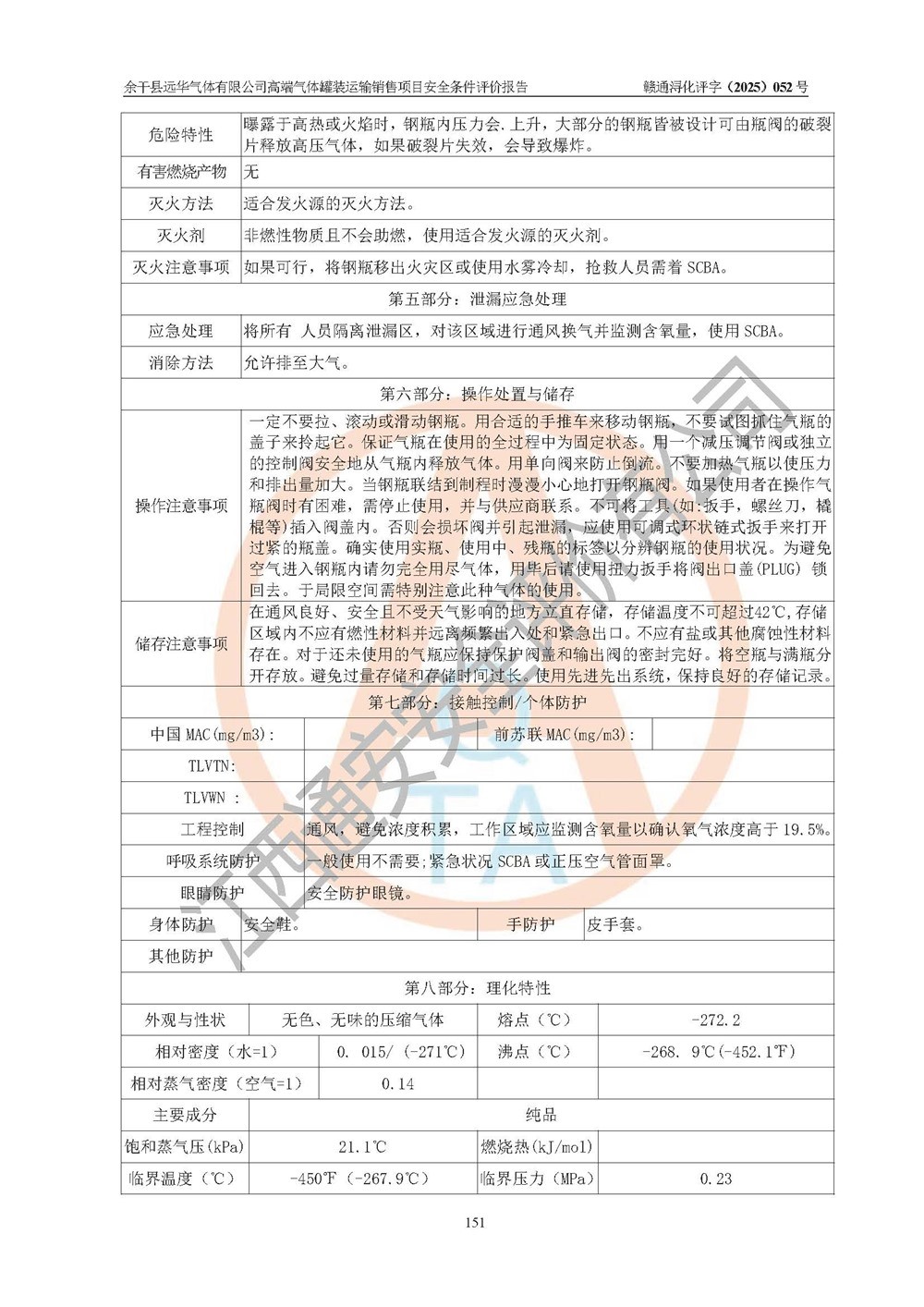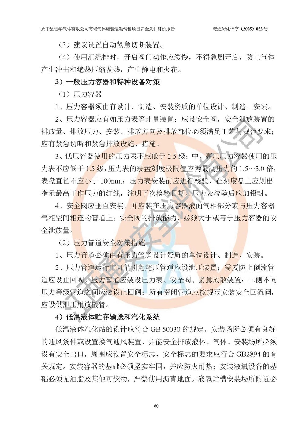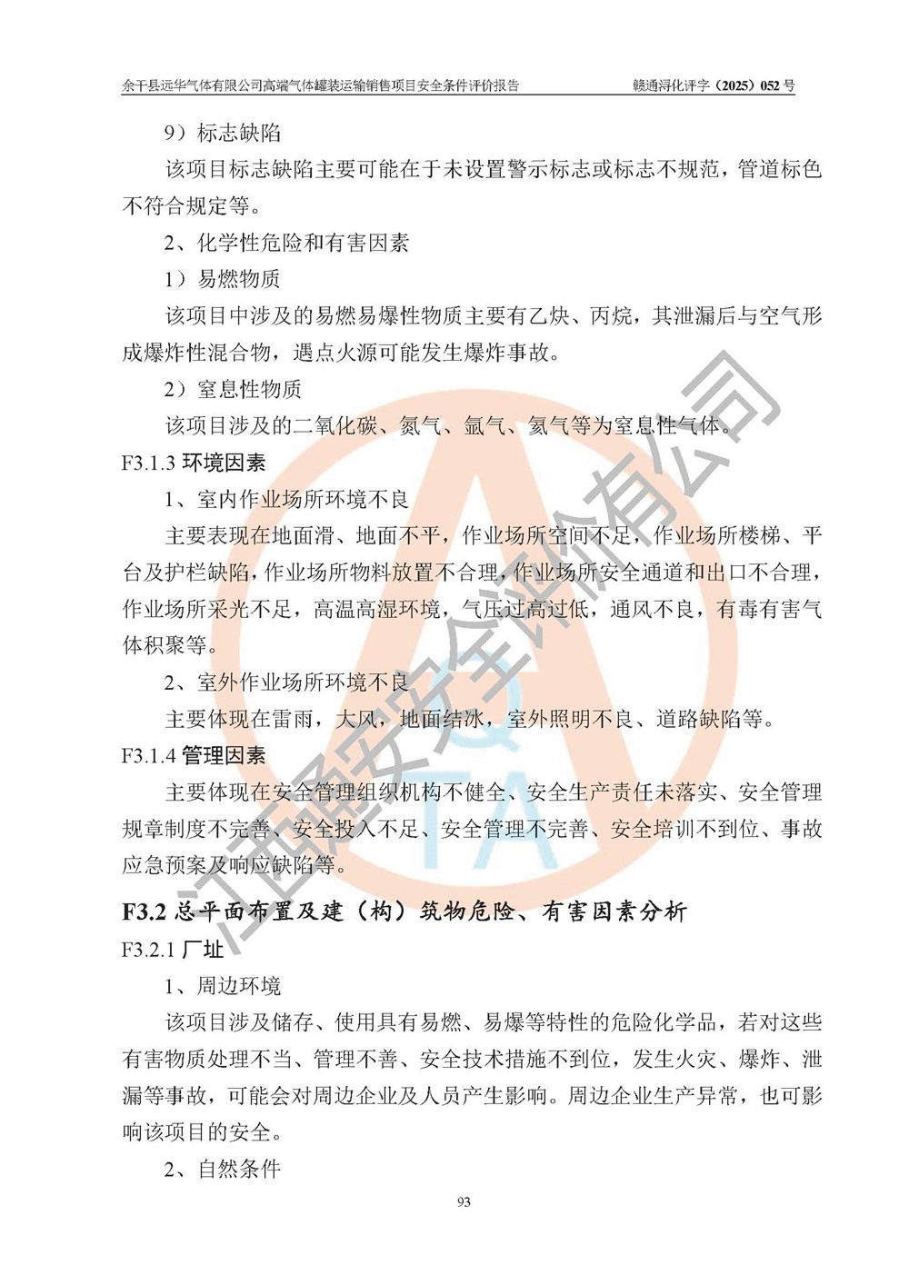 評價報告名稱 | 余干縣遠華氣體有限公司高端氣體罐裝運輸銷售項目安全條件評價報告 | ||||||