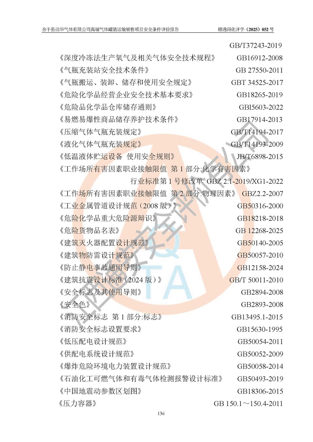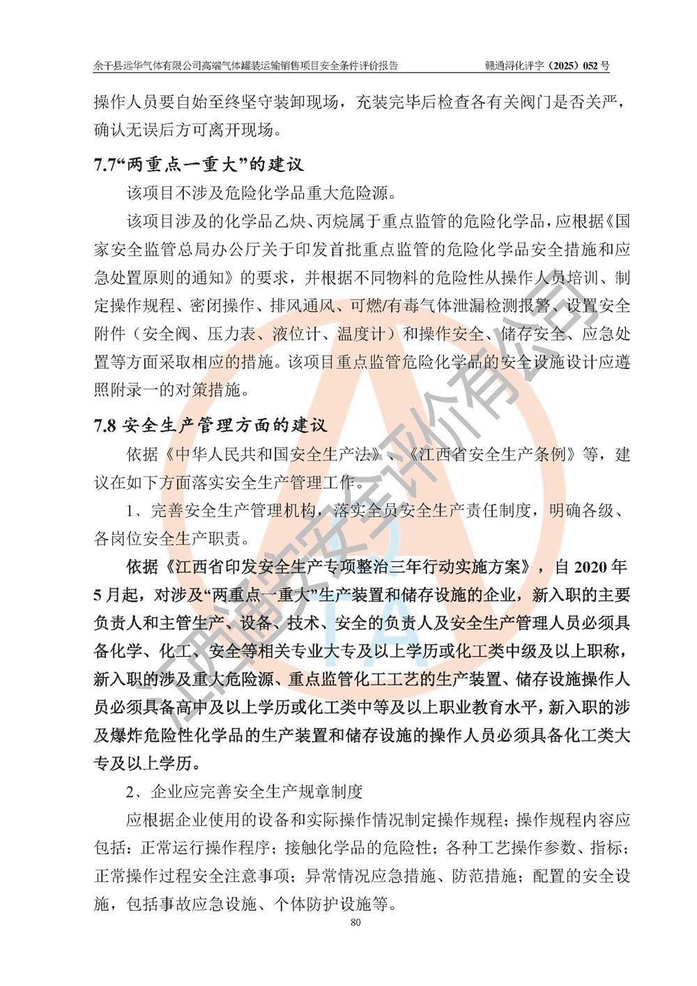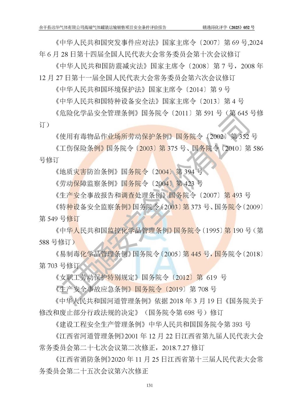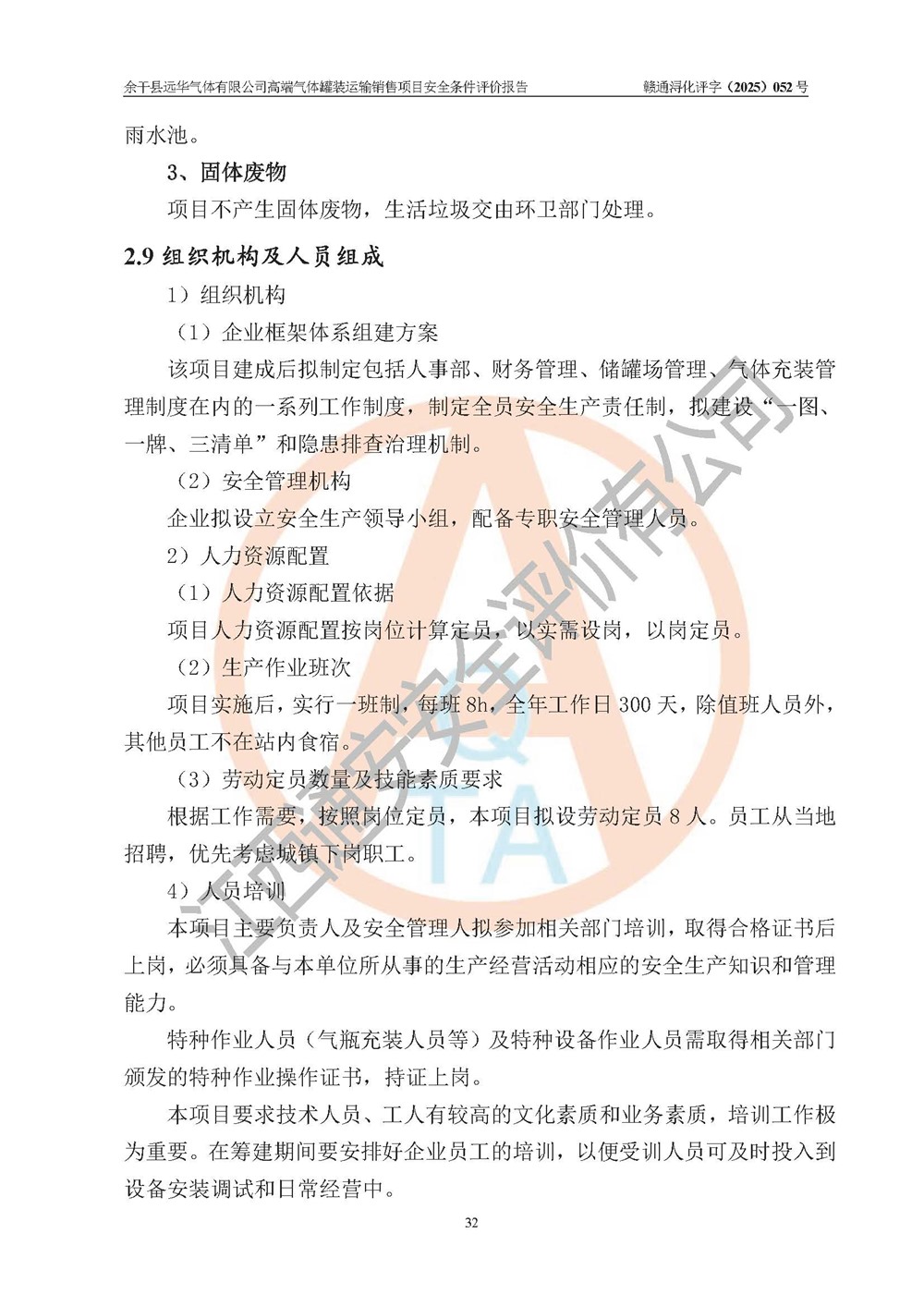 評價報告名稱 | 余干縣遠華氣體有限公司高端氣體罐裝運輸銷售項目安全條件評價報告 | ||||||