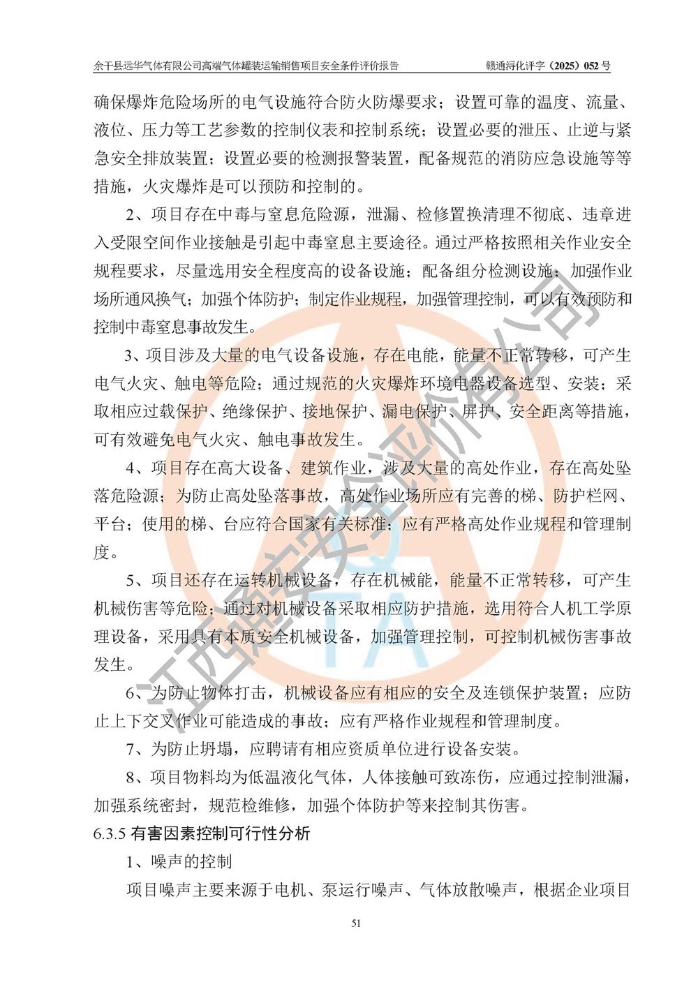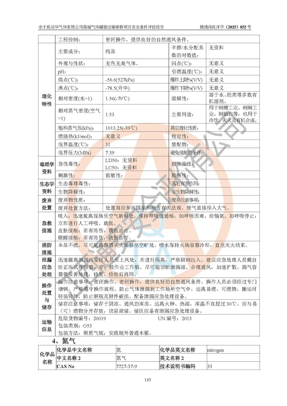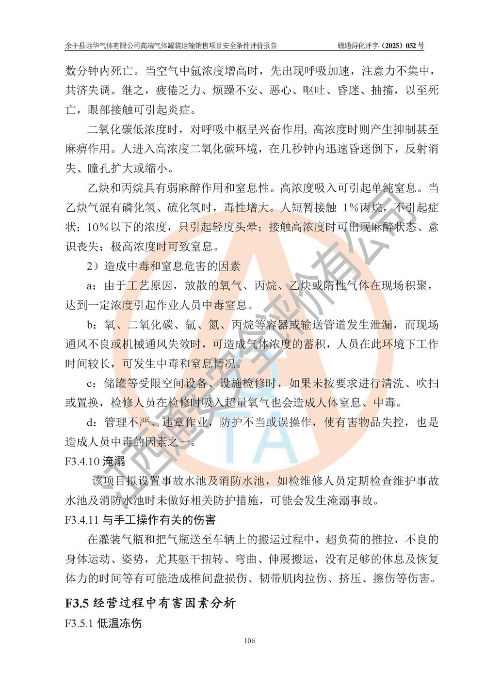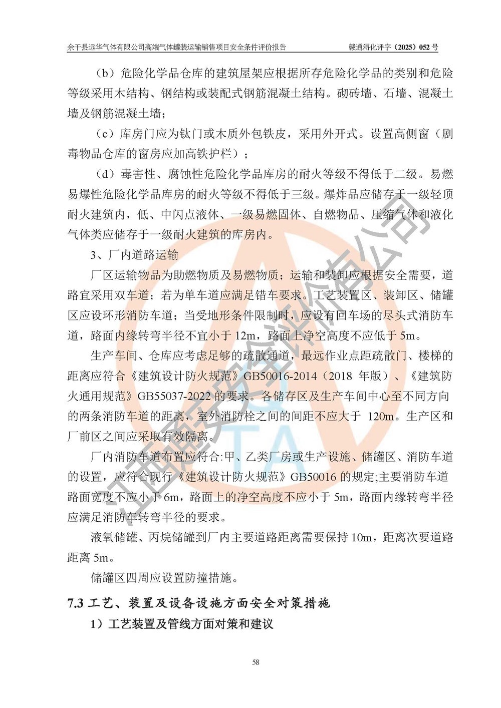 項目簡介 | 余干縣遠華氣體有限公司成立于2024年05月10日,公司類型為有限責任公司(自然人投資或控股),該公司法定**人為張建華,注冊資本貳佰萬元整,經(jīng)營場所位于江西省上饒市余干縣****產(chǎn)業(yè)園區(qū)內(nèi)聚溫化纖以西錦華路以南。經(jīng)營范圍:一般項目:氣體、液體分離及純凈設(shè)備銷售(除依法須經(jīng)批準的項目外,憑營業(yè)執(zhí)照依法自主開展經(jīng)營活動)。 余干縣遠華氣體有限公司于2025年02月11日取得了余干縣發(fā)展和改革委員會《余干縣遠華氣體有限公司高端氣體罐裝運輸銷售項目》備案文件,備案編號:2502-361127-04-01-434579。 該項目涉及氧、二氧化碳、氮、氬、丙烷、乙炔、氦氣、二元氣(二氧化碳+氬氣)的儲存經(jīng)營,貿(mào)易調(diào)撥經(jīng)營的氣體氫氣、甲烷、食品二氧化碳。該公司擬建低溫立式儲罐液氧罐30m3 2個、液態(tài)二氧化碳罐30m3 1個、液氮罐30m3 1個、液氬罐30m3 1個,及各工業(yè)氣瓶100瓶、各杜瓦瓶20瓶;全壓力式臥式埋地儲罐丙烷40m3 1個、40m3 1個(備用罐)及丙烷工業(yè)氣瓶50瓶;氣瓶庫內(nèi)乙炔氣瓶及氦氣氣瓶各50瓶。項目儲存經(jīng)營過程中涉及的氧(液態(tài)的、壓縮的)、二氧化碳(液態(tài)的、壓縮的)、氬(液態(tài)的、壓縮的)、氮(液態(tài)的、壓縮的)、丙烷、乙炔、氦氣、食品級二氧化碳、二元氣(二氧化碳+氬氣)均屬于危險化學品,貿(mào)易調(diào)撥經(jīng)營的氣體氫氣、甲烷、食品二氧化碳屬于危險化學品。不涉及易制毒化學品、劇毒化學品、監(jiān)控化學品、易制爆化學品、特別管控危險化學品,乙炔、丙烷、氫氣、甲烷屬于重點監(jiān)管的危險化學品。該項目儲存經(jīng)營場所(生產(chǎn)單元、儲存單元)不構(gòu)成危險化學品重大危險源。 依據(jù)《危險化學品經(jīng)營許可證管理辦法》(**安全生產(chǎn)監(jiān)督管理總局令第55號,第79號修改),項目儲存經(jīng)營的化學品屬于危險化學品,需要辦理《危險化學品經(jīng)營許可證》。 依據(jù)《中華人民共和國安全生產(chǎn)法》、《危險化學品安全管理條例》等規(guī)定的要求,危險化學品新、改、擴建的生產(chǎn)性建設(shè)工程**進行安全評價,根據(jù)《危險化學品建設(shè)項目安全監(jiān)督管理辦法》(**安全生產(chǎn)監(jiān)督管理總局令第45號,第79號、89號令修改)的規(guī)定,危險化學品新、改、擴建的生產(chǎn)性建設(shè)工程**進行建設(shè)項目安全條件評價,以使工程項目的設(shè)立滿足安全生產(chǎn)條件,項目的安全設(shè)施與主體工程同時設(shè)計、同時施工、同時投入使用,項目在安全生產(chǎn)及安全管理方面符合**及行業(yè)有關(guān)法律法規(guī)及標準。因此余干縣遠華氣體有限公司委托江西通安安全評價有限公司承擔該項目的安全條件評價。 江西通安安全評價有限公司接受委托后,參照現(xiàn)行的法律、法規(guī)和標準,按照《安全評價通則》、《安全預(yù)評價導(dǎo)則》、江西省應(yīng)急管理廳關(guān)于印發(fā)《江西省危險化學品建設(shè)項目安全監(jiān)督管理實施細則》(試行)的通知等規(guī)范規(guī)定的要求,成立評價組。評價組完成風險分析、資料收集、現(xiàn)場勘查和類比調(diào)查等前期準備工作,并制定評價實施計劃。評價組在前期準備工作的基礎(chǔ)上,根據(jù)企業(yè)提供的資料,分析了該項目中可能存在的主要危險、有害因素,在危險、有害因素分析基礎(chǔ)上,根據(jù)該項目的生產(chǎn)工藝、功能區(qū)域特點,劃分了評價單元,并針對劃分的評價單元選擇了相應(yīng)的安全評價方法進行了逐項分析、評價,提出了相應(yīng)的預(yù)防和控制對策措施。 本報告可作為余干縣遠華氣體有限公司高端氣體罐裝運輸銷售項目安全生產(chǎn)技術(shù)、安全生產(chǎn)管理決策及辦理相關(guān)安全生產(chǎn)行政許可事項的技術(shù)依據(jù)。 本次安全評價范圍:余干縣遠華氣體有限公司高端氣體罐裝運輸銷售項目,主要包括: (1)選址、周邊環(huán)境、總平面布置及建、建構(gòu)筑物(主要包括罐區(qū)、氣體灌裝間、氣瓶庫、杜瓦瓶充裝棚、變配電室、制冰車間、研發(fā)中心); (2)項目的生產(chǎn)工藝及裝置;相關(guān)的公用工程、輔助工程設(shè)施(配電房、消防泵房、消防水池/事故水池等)。 評價內(nèi)容涉及工程的安全條件、安全生產(chǎn)條件及安全生產(chǎn)管理,包括生產(chǎn)過程中的危險有害因素,建設(shè)項目的安全條件以及工藝、設(shè)備設(shè)施的安全可靠性和安全生產(chǎn)方面管理的組織、機構(gòu)、人員、防護設(shè)施、作業(yè)環(huán)境及管理制度等。本項目不涉及城鎮(zhèn)燃氣經(jīng)營。 項目廠外運輸及其運輸工具不在評價范圍內(nèi)。涉及該項目的環(huán)境、消防、職業(yè)衛(wèi)生、產(chǎn)品質(zhì)量及施工安全等問題則應(yīng)執(zhí)行**的有關(guān)法規(guī)規(guī)定及相關(guān)標準;本評價引用到的**、消防、職業(yè)衛(wèi)生方面的法規(guī)標準與安全評價有**的關(guān)聯(lián),環(huán)境保護、職業(yè)衛(wèi)生與消防應(yīng)以其主管部門審核意見為準。 | ||||||