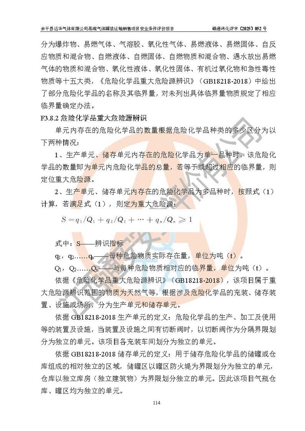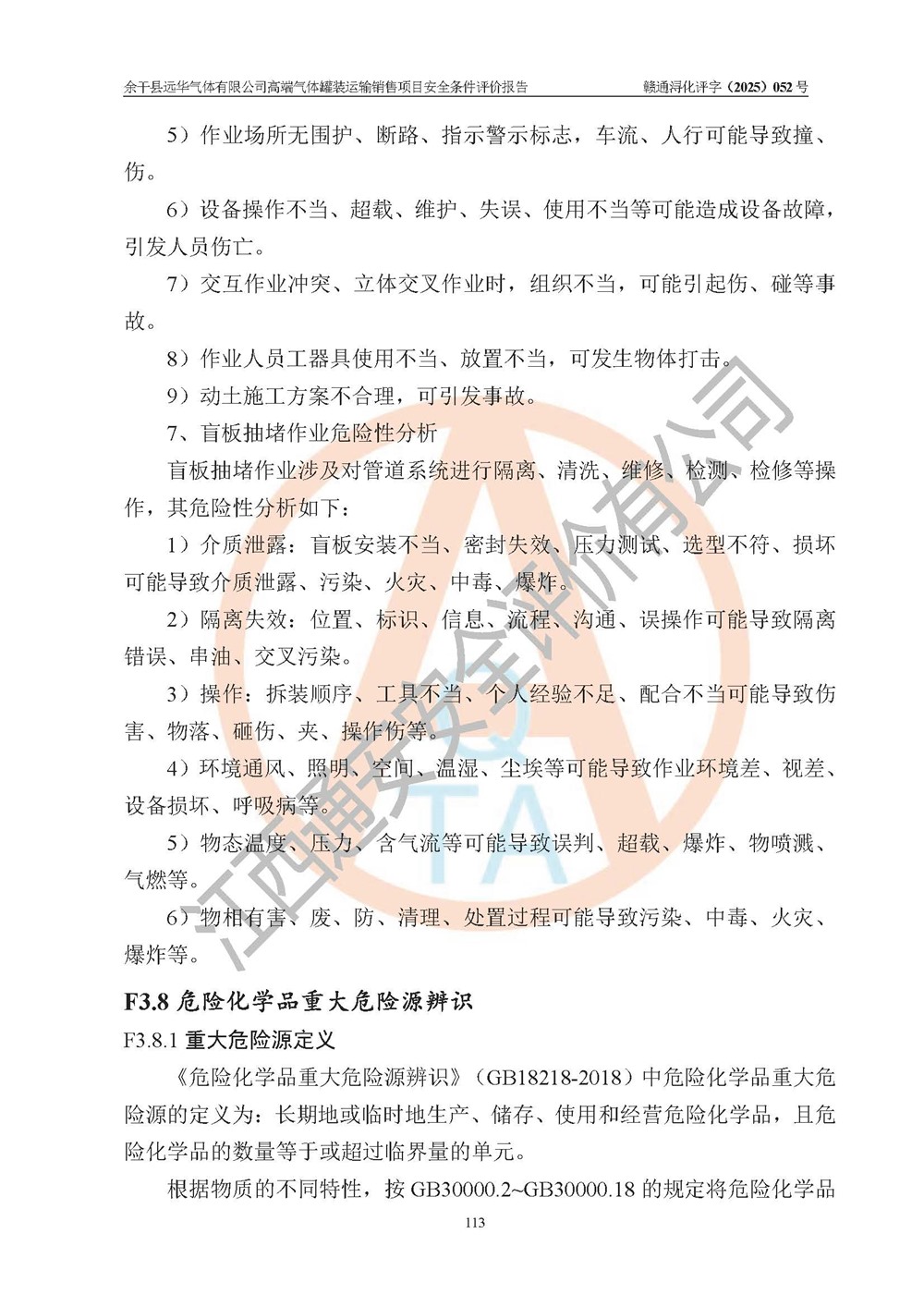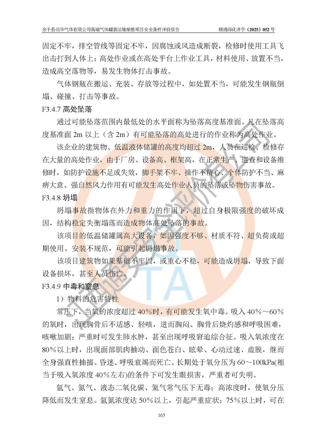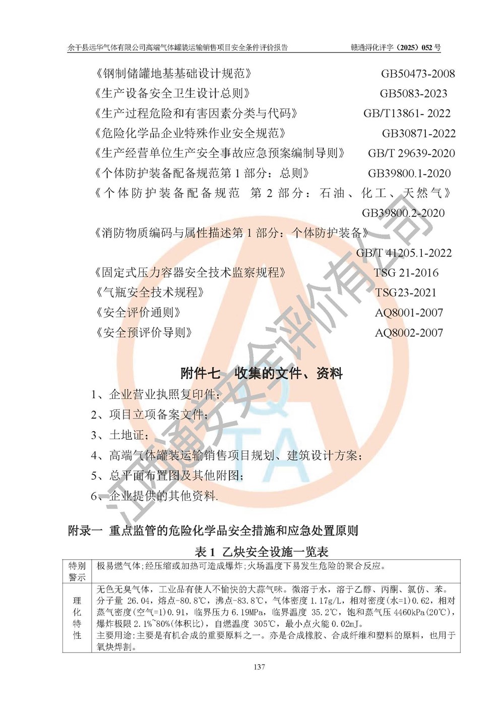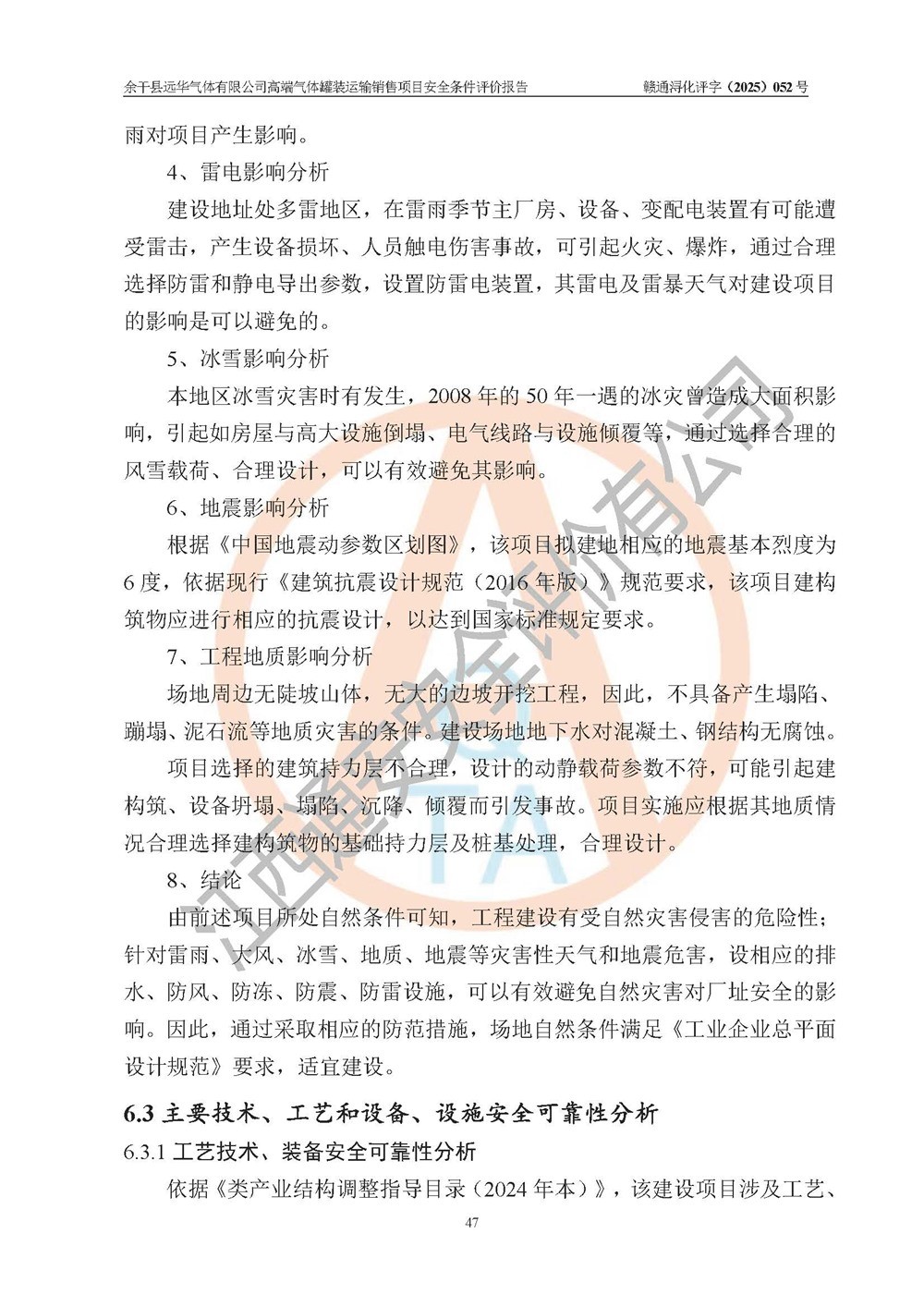 項目簡介 | 余干縣遠華氣體有限公司成立于2024年05月10日,公司類型為有限責任公司(自然人投資或控股),該公司法定**人為張建華,注冊資本貳佰萬元整,經(jīng)營場所位于江西省上饒市余干縣****產(chǎn)業(yè)園區(qū)內(nèi)聚溫化纖以西錦華路以南。經(jīng)營范圍:一般項目:氣體、液體分離及純凈設(shè)備銷售(除依法須經(jīng)批準的項目外,憑營業(yè)執(zhí)照依法自主開展經(jīng)營活動)。 余干縣遠華氣體有限公司于2025年02月11日取得了余干縣發(fā)展和改革委員會《余干縣遠華氣體有限公司高端氣體罐裝運輸銷售項目》備案文件,備案編號:2502-361127-04-01-434579。 該項目涉及氧、二氧化碳、氮、氬、丙烷、乙炔、氦氣、二元氣(二氧化碳+氬氣)的儲存經(jīng)營,貿(mào)易調(diào)撥經(jīng)營的氣體氫氣、甲烷、食品二氧化碳。該公司擬建低溫立式儲罐液氧罐30m3 2個、液態(tài)二氧化碳罐30m3 1個、液氮罐30m3 1個、液氬罐30m3 1個,及各工業(yè)氣瓶100瓶、各杜瓦瓶20瓶;全壓力式臥式埋地儲罐丙烷40m3 1個、40m3 1個(備用罐)及丙烷工業(yè)氣瓶50瓶;氣瓶庫內(nèi)乙炔氣瓶及氦氣氣瓶各50瓶。項目儲存經(jīng)營過程中涉及的氧(液態(tài)的、壓縮的)、二氧化碳(液態(tài)的、壓縮的)、氬(液態(tài)的、壓縮的)、氮(液態(tài)的、壓縮的)、丙烷、乙炔、氦氣、食品級二氧化碳、二元氣(二氧化碳+氬氣)均屬于危險化學品,貿(mào)易調(diào)撥經(jīng)營的氣體氫氣、甲烷、食品二氧化碳屬于危險化學品。不涉及易制毒化學品、劇毒化學品、監(jiān)控化學品、易制爆化學品、特別管控危險化學品,乙炔、丙烷、氫氣、甲烷屬于重點監(jiān)管的危險化學品。該項目儲存經(jīng)營場所(生產(chǎn)單元、儲存單元)不構(gòu)成危險化學品重大危險源。 依據(jù)《危險化學品經(jīng)營許可證管理辦法》(**安全生產(chǎn)監(jiān)督管理總局令第55號,第79號修改),項目儲存經(jīng)營的化學品屬于危險化學品,需要辦理《危險化學品經(jīng)營許可證》。 依據(jù)《中華人民共和國安全生產(chǎn)法》、《危險化學品安全管理條例》等規(guī)定的要求,危險化學品新、改、擴建的生產(chǎn)性建設(shè)工程**進行安全評價,根據(jù)《危險化學品建設(shè)項目安全監(jiān)督管理辦法》(**安全生產(chǎn)監(jiān)督管理總局令第45號,第79號、89號令修改)的規(guī)定,危險化學品新、改、擴建的生產(chǎn)性建設(shè)工程**進行建設(shè)項目安全條件評價,以使工程項目的設(shè)立滿足安全生產(chǎn)條件,項目的安全設(shè)施與主體工程同時設(shè)計、同時施工、同時投入使用,項目在安全生產(chǎn)及安全管理方面符合**及行業(yè)有關(guān)法律法規(guī)及標準。因此余干縣遠華氣體有限公司委托江西通安安全評價有限公司承擔該項目的安全條件評價。 江西通安安全評價有限公司接受委托后,參照現(xiàn)行的法律、法規(guī)和標準,按照《安全評價通則》、《安全預(yù)評價導(dǎo)則》、江西省應(yīng)急管理廳關(guān)于印發(fā)《江西省危險化學品建設(shè)項目安全監(jiān)督管理實施細則》(試行)的通知等規(guī)范規(guī)定的要求,成立評價組。評價組完成風險分析、資料收集、現(xiàn)場勘查和類比調(diào)查等前期準備工作,并制定評價實施計劃。評價組在前期準備工作的基礎(chǔ)上,根據(jù)企業(yè)提供的資料,分析了該項目中可能存在的主要危險、有害因素,在危險、有害因素分析基礎(chǔ)上,根據(jù)該項目的生產(chǎn)工藝、功能區(qū)域特點,劃分了評價單元,并針對劃分的評價單元選擇了相應(yīng)的安全評價方法進行了逐項分析、評價,提出了相應(yīng)的預(yù)防和控制對策措施。 本報告可作為余干縣遠華氣體有限公司高端氣體罐裝運輸銷售項目安全生產(chǎn)技術(shù)、安全生產(chǎn)管理決策及辦理相關(guān)安全生產(chǎn)行政許可事項的技術(shù)依據(jù)。 本次安全評價范圍:余干縣遠華氣體有限公司高端氣體罐裝運輸銷售項目,主要包括: (1)選址、周邊環(huán)境、總平面布置及建、建構(gòu)筑物(主要包括罐區(qū)、氣體灌裝間、氣瓶庫、杜瓦瓶充裝棚、變配電室、制冰車間、研發(fā)中心); (2)項目的生產(chǎn)工藝及裝置;相關(guān)的公用工程、輔助工程設(shè)施(配電房、消防泵房、消防水池/事故水池等)。 評價內(nèi)容涉及工程的安全條件、安全生產(chǎn)條件及安全生產(chǎn)管理,包括生產(chǎn)過程中的危險有害因素,建設(shè)項目的安全條件以及工藝、設(shè)備設(shè)施的安全可靠性和安全生產(chǎn)方面管理的組織、機構(gòu)、人員、防護設(shè)施、作業(yè)環(huán)境及管理制度等。本項目不涉及城鎮(zhèn)燃氣經(jīng)營。 項目廠外運輸及其運輸工具不在評價范圍內(nèi)。涉及該項目的環(huán)境、消防、職業(yè)衛(wèi)生、產(chǎn)品質(zhì)量及施工安全等問題則應(yīng)執(zhí)行**的有關(guān)法規(guī)規(guī)定及相關(guān)標準;本評價引用到的**、消防、職業(yè)衛(wèi)生方面的法規(guī)標準與安全評價有**的關(guān)聯(lián),環(huán)境保護、職業(yè)衛(wèi)生與消防應(yīng)以其主管部門審核意見為準。 | ||||||