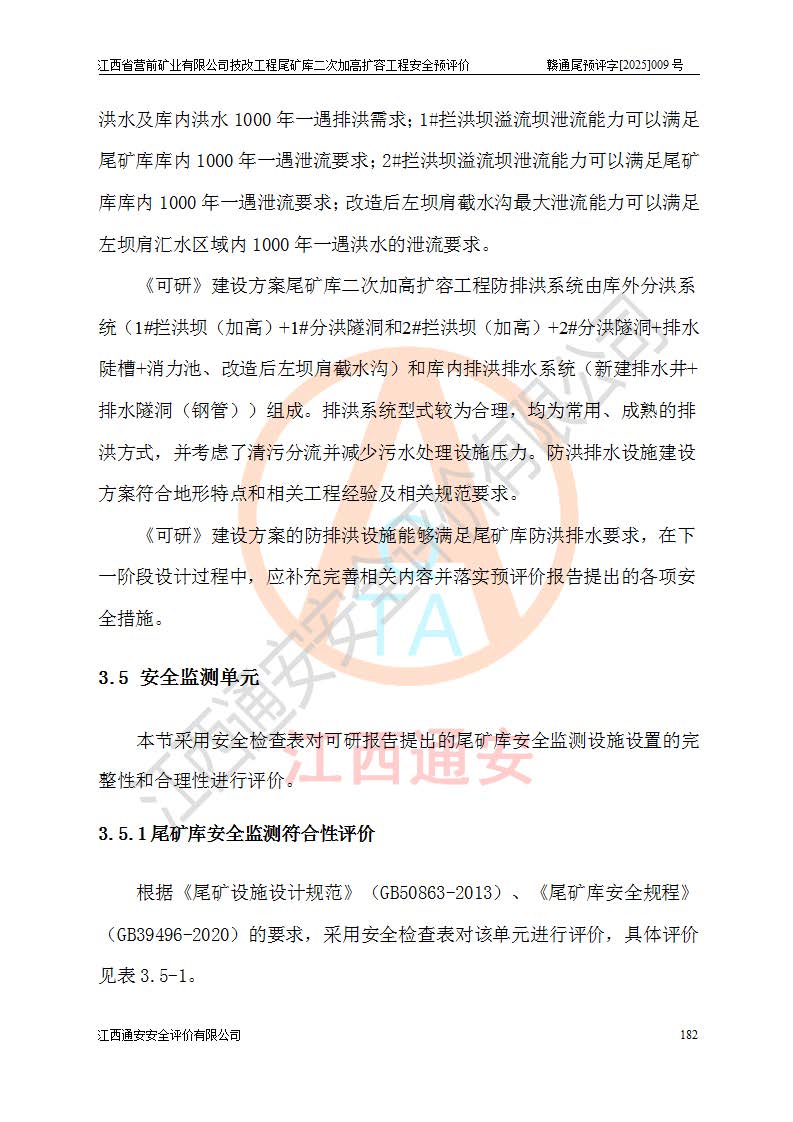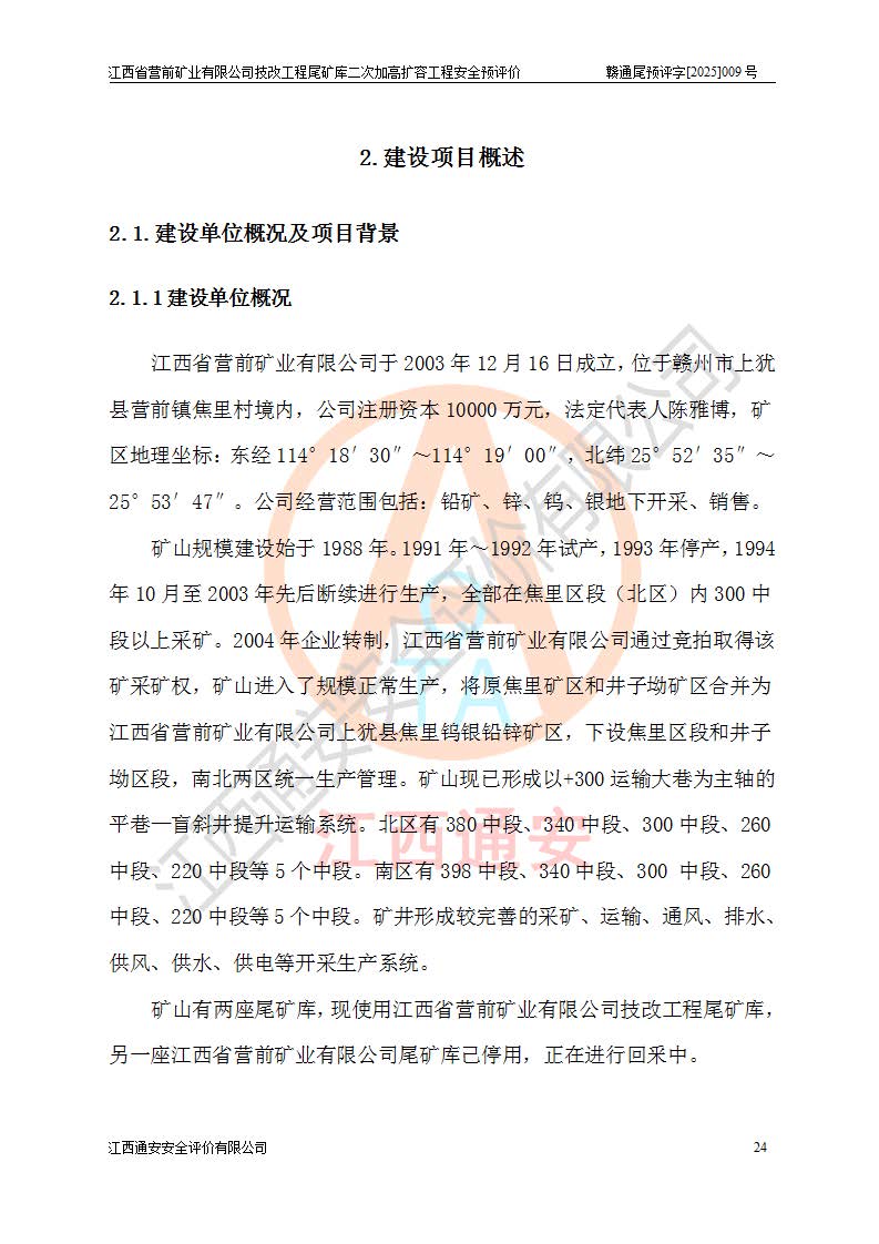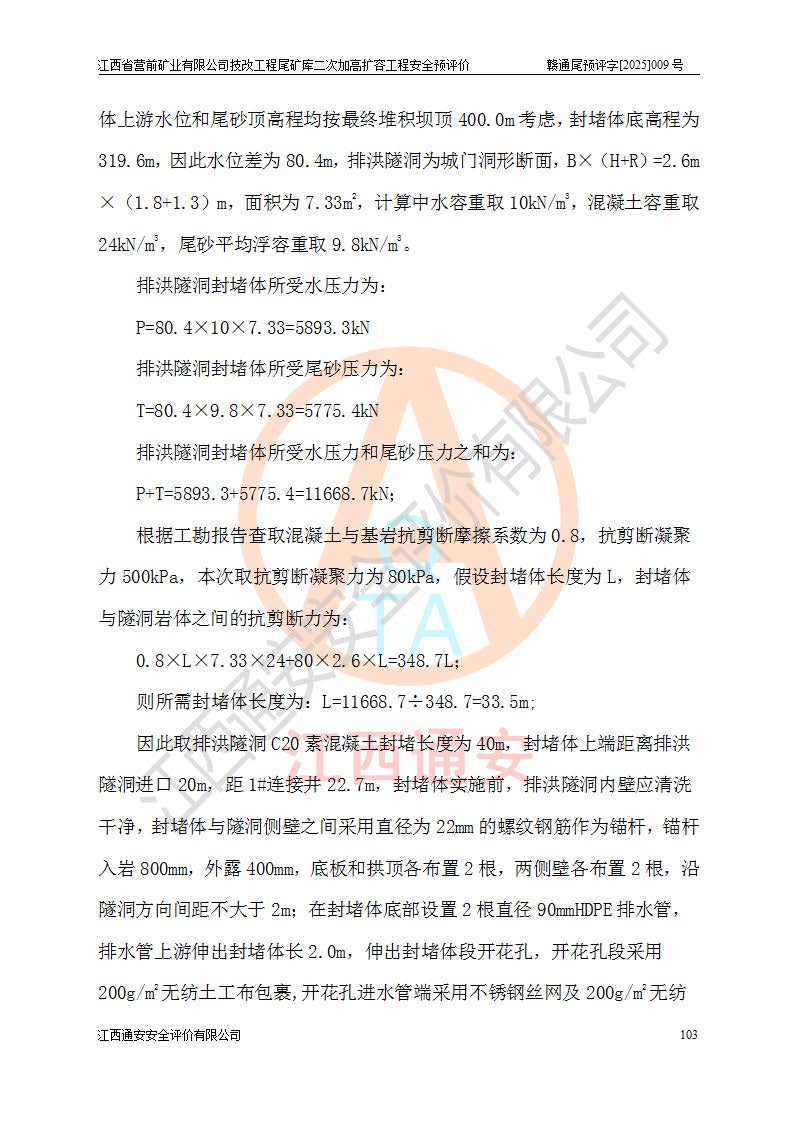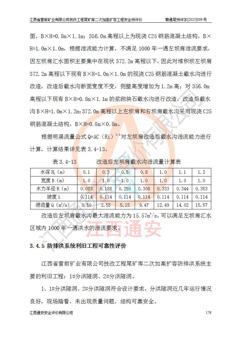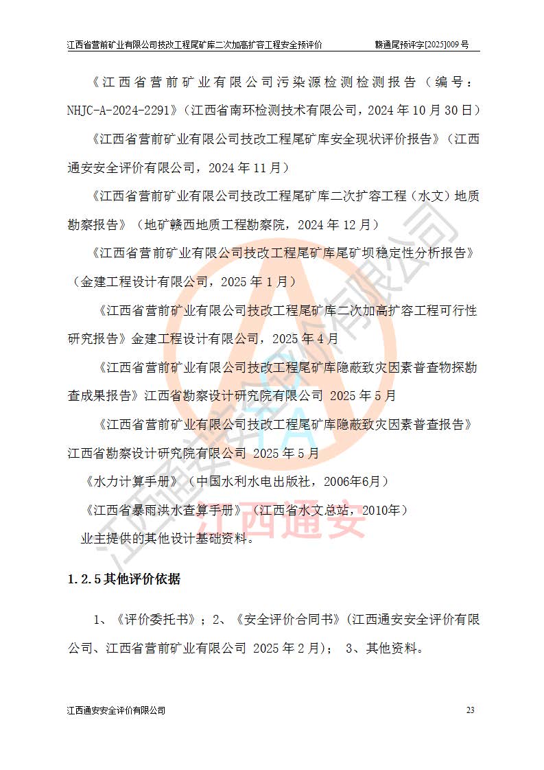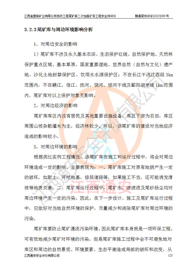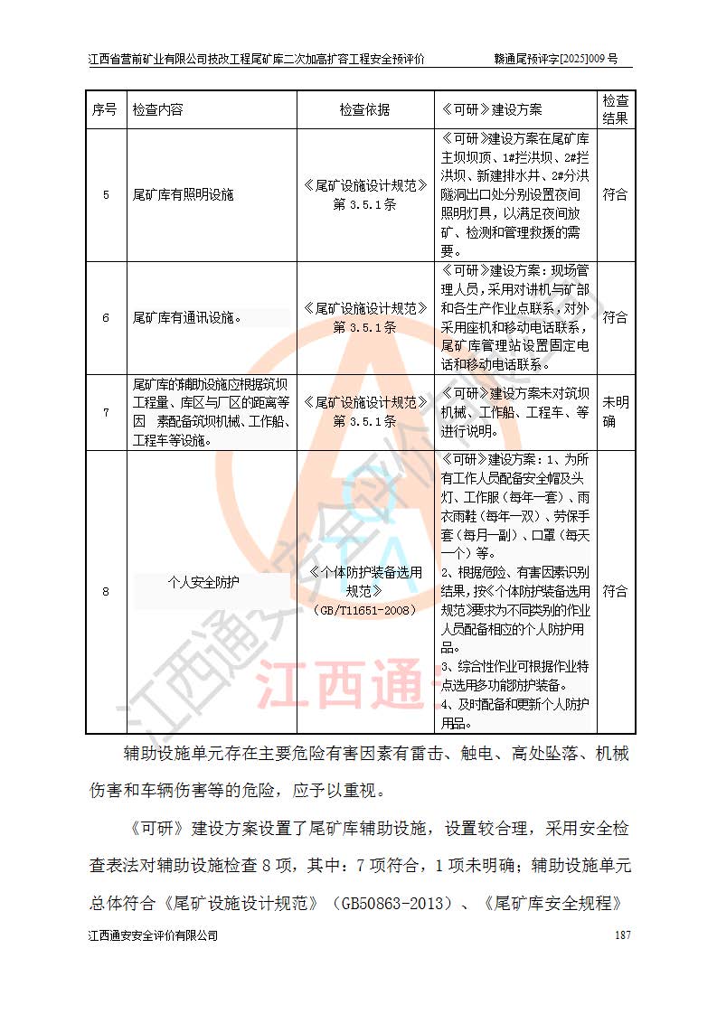 江西省營前礦業(yè)有限公司于2003年12月16日成立,位于贛州市上猶縣營前鎮(zhèn)焦里村境內(nèi),公司注冊資本10000萬元,法定**人陳雅博,礦區(qū)地理坐標:東經(jīng)114°18′30″~114°19′00″,北緯25°52′35″~25°53′47″。公司經(jīng)營范圍包括:鉛礦、鋅、鎢、銀地下開采、銷售。 江西省營前礦業(yè)有限公司技改工程尾礦庫位于焦里鎢銀鉛鋅礦區(qū),處于上猶縣水巖鄉(xiāng)井子村坑尾自然村境內(nèi),為山谷型尾礦庫。 江西省營前礦業(yè)有限公司技改工程尾礦庫于2013年由福建省冶金工業(yè)設(shè)計院設(shè)計,2014年8月開始施工建設(shè),2015年4月竣工開始試運行,2015年11月完成竣工驗收,2016年1月首次取得安全生產(chǎn)許可證,2019年1月完成延期換證,2020年8月委托金建工程設(shè)計有限公司進行尾礦庫加高擴容工作,2020年10月21日取得了江西省應(yīng)急管理廳下發(fā)的《關(guān)于江西省營前礦業(yè)有限公司技改工程尾礦庫加高擴容工程安全設(shè)施設(shè)計的審查意見》(贛應(yīng)急非煤項目設(shè)審〔2020〕46號),之后委托駐馬店市黃淮建設(shè)工程有限公司負責施工,云南潤滇工程技術(shù)有限公司負責監(jiān)理,2021年12月完成加高擴容竣工驗收工作,經(jīng)過延期,現(xiàn)尾礦庫安全生產(chǎn)許可證編號(贛)FM安許證字[2016]M1692號,**期為2025年01月18日至2028年01月17日。 江西省營前礦業(yè)有限公司技改工程尾礦庫為山谷型尾礦庫,初期壩為透水堆石壩,壩頂高程為330.0m,初期壩高25.0m,后期采用上游式尾礦堆積壩,加高擴容后*終壩頂高程為380.0m,堆積壩高50.0m,總壩高為75.0m,總庫容為為503.14×104m3,尾礦庫為三等庫。尾礦庫初期壩以上總匯水面積3.53km2,防洪標準取500年一遇。 目前尾礦庫由初期壩、堆積壩、庫內(nèi)排洪系統(tǒng)(雙格排水斜槽+連接井+排水涵洞+排洪隧洞+排水陡槽+消力池)、1#攔洪壩、1#分洪隧洞、2#攔洪壩、2#分洪隧洞和安全監(jiān)測設(shè)施組成。根據(jù)建設(shè)單位提供的尾礦庫平面布置圖,截至2024年12月,現(xiàn)狀尾礦庫堆積壩頂高程為372.2m,現(xiàn)狀總壩高67.2m,灘頂高程為369.8m,現(xiàn)狀全庫容387.51×104m3,現(xiàn)狀尾礦庫為三等庫,原加高擴容設(shè)計*終堆積壩頂高程為380.0m,現(xiàn)剩余庫容115.63×104m3,剩余**庫容約92.5×104m3,剩余服務(wù)年限約4.5年;礦山現(xiàn)有儲量較大,剩余庫容及服務(wù)年限不滿足礦山后期生產(chǎn)需要。 技改工程尾礦庫尾礦壩下游1**范圍無居民,不存在工礦企業(yè)等建構(gòu)筑物,不屬于“頭頂庫”;尾礦庫不壓礦;距贛江直線距離60**;不涉及保護區(qū)及生態(tài)紅線;尾礦庫所在溝谷較長,谷底平均縱坡9%,上游周邊山體地形有利于尾礦庫二次加高擴容工程的實施,因此為了增加尾礦庫庫容,延長服務(wù)年限,充分利用尾礦庫所在溝谷地形,江西省營前礦業(yè)有限公司對技改尾礦庫進行二次加高擴容。 2024年12月,江西省營前礦業(yè)有限公司委托地礦贛西地質(zhì)工程勘察院編制了《江西省營前礦業(yè)有限公司技改工程尾礦庫二次擴容工程(水文)地質(zhì)勘察報告》,2025年4月,江西省營前礦業(yè)有限公司委托金建工程設(shè)計有限公司編制了《江西省營前礦業(yè)有限公司技改工程尾礦庫二次加高擴容工程可行性研究報告》。 按照非煤礦山建設(shè)項目安全設(shè)施“三同時”的規(guī)定要求,技改工程尾礦庫為二次加高擴容工程,**進行安全預評價;江西省營前礦業(yè)有限公司委托我公司承擔技改工程尾礦庫二次加高擴容工程建設(shè)項目的安全預評價工作。 |