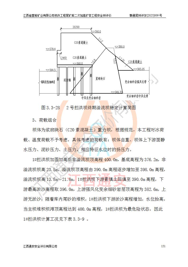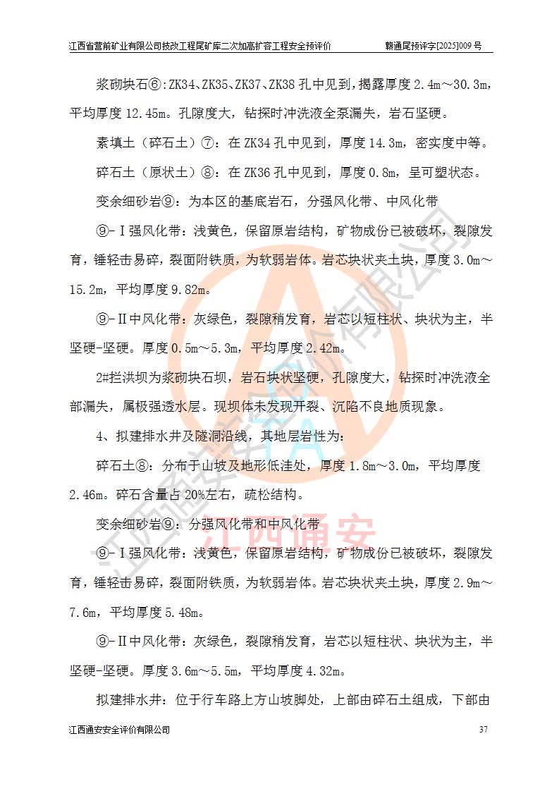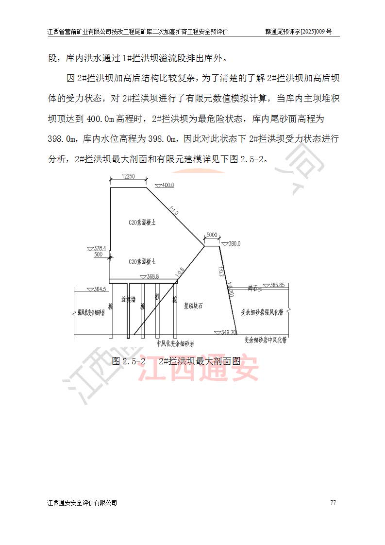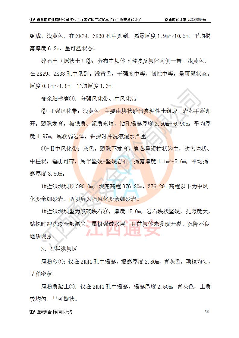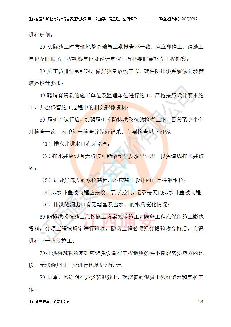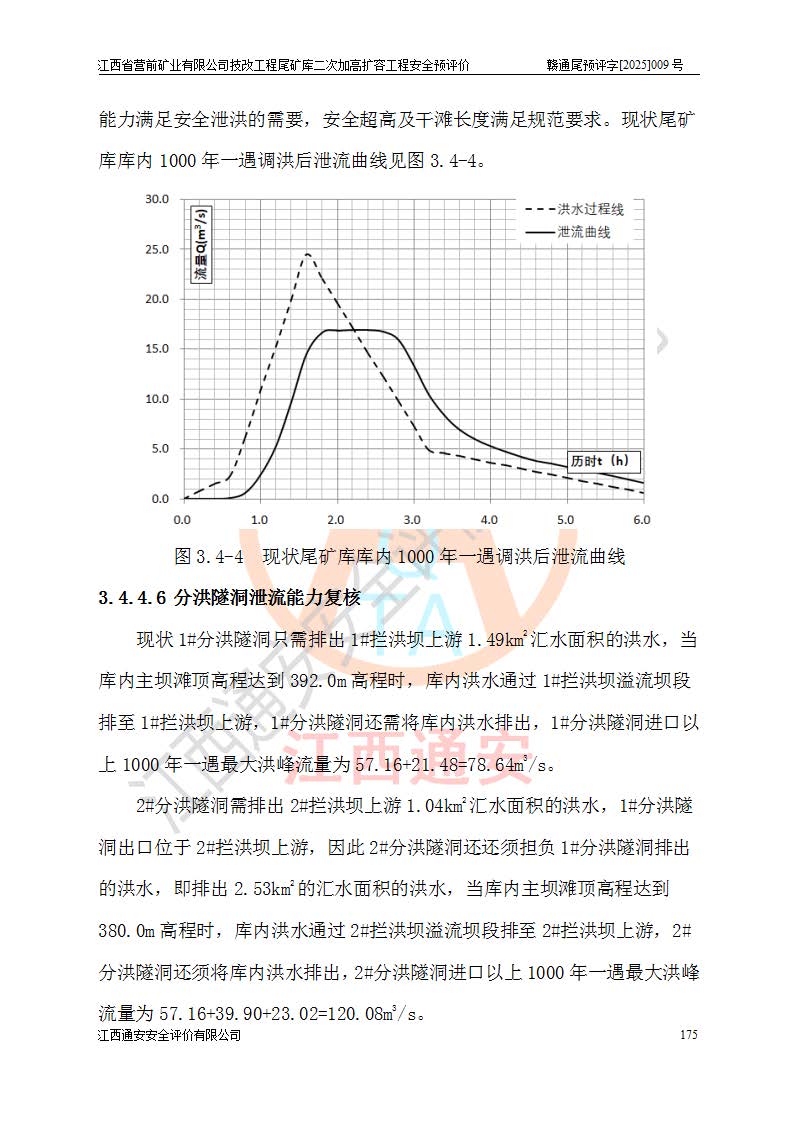 江西省營前礦業(yè)有限公司于2003年12月16日成立,位于贛州市上猶縣營前鎮(zhèn)焦里村境內(nèi),公司注冊資本10000萬元,法定**人陳雅博,礦區(qū)地理坐標:東經(jīng)114°18′30″~114°19′00″,北緯25°52′35″~25°53′47″。公司經(jīng)營范圍包括:鉛礦、鋅、鎢、銀地下開采、銷售。 江西省營前礦業(yè)有限公司技改工程尾礦庫位于焦里鎢銀鉛鋅礦區(qū),處于上猶縣水巖鄉(xiāng)井子村坑尾自然村境內(nèi),為山谷型尾礦庫。 江西省營前礦業(yè)有限公司技改工程尾礦庫于2013年由福建省冶金工業(yè)設(shè)計院設(shè)計,2014年8月開始施工建設(shè),2015年4月竣工開始試運行,2015年11月完成竣工驗收,2016年1月首次取得安全生產(chǎn)許可證,2019年1月完成延期換證,2020年8月委托金建工程設(shè)計有限公司進行尾礦庫加高擴容工作,2020年10月21日取得了江西省應(yīng)急管理廳下發(fā)的《關(guān)于江西省營前礦業(yè)有限公司技改工程尾礦庫加高擴容工程安全設(shè)施設(shè)計的審查意見》(贛應(yīng)急非煤項目設(shè)審〔2020〕46號),之后委托駐馬店市黃淮建設(shè)工程有限公司負責施工,云南潤滇工程技術(shù)有限公司負責監(jiān)理,2021年12月完成加高擴容竣工驗收工作,經(jīng)過延期,現(xiàn)尾礦庫安全生產(chǎn)許可證編號(贛)FM安許證字[2016]M1692號,**期為2025年01月18日至2028年01月17日。 江西省營前礦業(yè)有限公司技改工程尾礦庫為山谷型尾礦庫,初期壩為透水堆石壩,壩頂高程為330.0m,初期壩高25.0m,后期采用上游式尾礦堆積壩,加高擴容后*終壩頂高程為380.0m,堆積壩高50.0m,總壩高為75.0m,總庫容為為503.14×104m3,尾礦庫為三等庫。尾礦庫初期壩以上總匯水面積3.53km2,防洪標準取500年一遇。 目前尾礦庫由初期壩、堆積壩、庫內(nèi)排洪系統(tǒng)(雙格排水斜槽+連接井+排水涵洞+排洪隧洞+排水陡槽+消力池)、1#攔洪壩、1#分洪隧洞、2#攔洪壩、2#分洪隧洞和安全監(jiān)測設(shè)施組成。根據(jù)建設(shè)單位提供的尾礦庫平面布置圖,截至2024年12月,現(xiàn)狀尾礦庫堆積壩頂高程為372.2m,現(xiàn)狀總壩高67.2m,灘頂高程為369.8m,現(xiàn)狀全庫容387.51×104m3,現(xiàn)狀尾礦庫為三等庫,原加高擴容設(shè)計*終堆積壩頂高程為380.0m,現(xiàn)剩余庫容115.63×104m3,剩余**庫容約92.5×104m3,剩余服務(wù)年限約4.5年;礦山現(xiàn)有儲量較大,剩余庫容及服務(wù)年限不滿足礦山后期生產(chǎn)需要。 技改工程尾礦庫尾礦壩下游1**范圍無居民,不存在工礦企業(yè)等建構(gòu)筑物,不屬于“頭頂庫”;尾礦庫不壓礦;距贛江直線距離60**;不涉及保護區(qū)及生態(tài)紅線;尾礦庫所在溝谷較長,谷底平均縱坡9%,上游周邊山體地形有利于尾礦庫二次加高擴容工程的實施,因此為了增加尾礦庫庫容,延長服務(wù)年限,充分利用尾礦庫所在溝谷地形,江西省營前礦業(yè)有限公司對技改尾礦庫進行二次加高擴容。 2024年12月,江西省營前礦業(yè)有限公司委托地礦贛西地質(zhì)工程勘察院編制了《江西省營前礦業(yè)有限公司技改工程尾礦庫二次擴容工程(水文)地質(zhì)勘察報告》,2025年4月,江西省營前礦業(yè)有限公司委托金建工程設(shè)計有限公司編制了《江西省營前礦業(yè)有限公司技改工程尾礦庫二次加高擴容工程可行性研究報告》。 按照非煤礦山建設(shè)項目安全設(shè)施“三同時”的規(guī)定要求,技改工程尾礦庫為二次加高擴容工程,**進行安全預評價;江西省營前礦業(yè)有限公司委托我公司承擔技改工程尾礦庫二次加高擴容工程建設(shè)項目的安全預評價工作。 |
