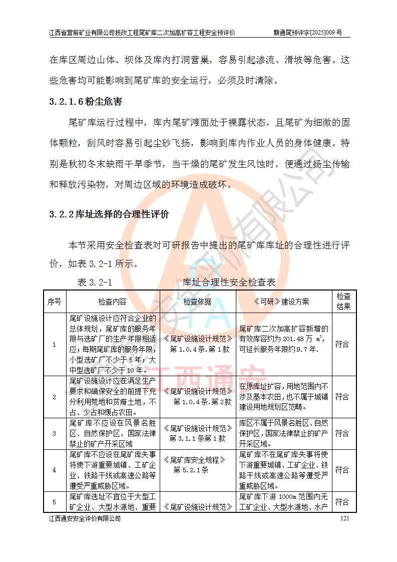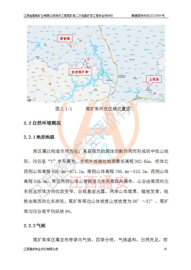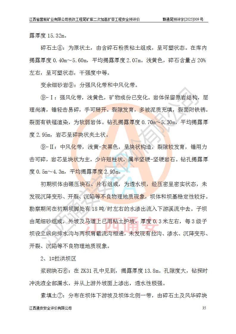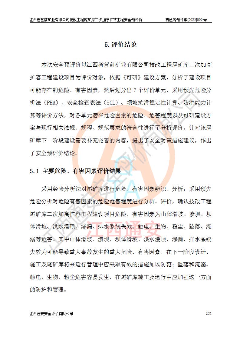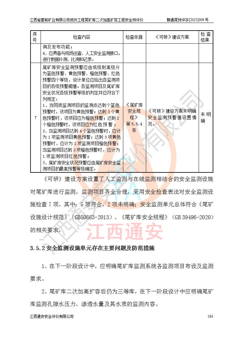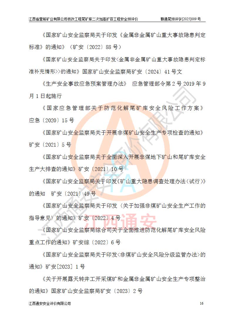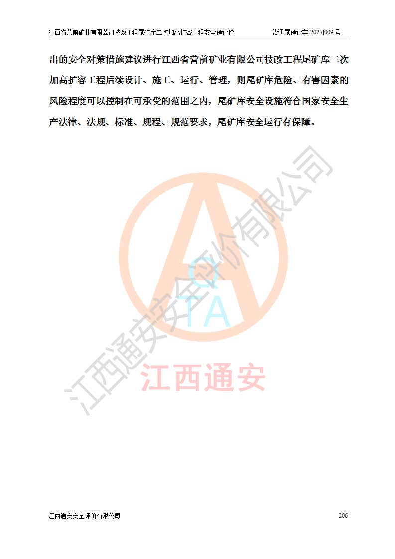 江西省營前礦業(yè)有限公司于2003年12月16日成立,位于贛州市上猶縣營前鎮(zhèn)焦里村境內(nèi),公司注冊資本10000萬元,法定**人陳雅博,礦區(qū)地理坐標:東經(jīng)114°18′30″~114°19′00″,北緯25°52′35″~25°53′47″。公司經(jīng)營范圍包括:鉛礦、鋅、鎢、銀地下開采、銷售。 江西省營前礦業(yè)有限公司技改工程尾礦庫位于焦里鎢銀鉛鋅礦區(qū),處于上猶縣水巖鄉(xiāng)井子村坑尾自然村境內(nèi),為山谷型尾礦庫。 江西省營前礦業(yè)有限公司技改工程尾礦庫于2013年由福建省冶金工業(yè)設(shè)計院設(shè)計,2014年8月開始施工建設(shè),2015年4月竣工開始試運行,2015年11月完成竣工驗收,2016年1月首次取得安全生產(chǎn)許可證,2019年1月完成延期換證,2020年8月委托金建工程設(shè)計有限公司進行尾礦庫加高擴容工作,2020年10月21日取得了江西省應(yīng)急管理廳下發(fā)的《關(guān)于江西省營前礦業(yè)有限公司技改工程尾礦庫加高擴容工程安全設(shè)施設(shè)計的審查意見》(贛應(yīng)急非煤項目設(shè)審〔2020〕46號),之后委托駐馬店市黃淮建設(shè)工程有限公司負責施工,云南潤滇工程技術(shù)有限公司負責監(jiān)理,2021年12月完成加高擴容竣工驗收工作,經(jīng)過延期,現(xiàn)尾礦庫安全生產(chǎn)許可證編號(贛)FM安許證字[2016]M1692號,**期為2025年01月18日至2028年01月17日。 江西省營前礦業(yè)有限公司技改工程尾礦庫為山谷型尾礦庫,初期壩為透水堆石壩,壩頂高程為330.0m,初期壩高25.0m,后期采用上游式尾礦堆積壩,加高擴容后*終壩頂高程為380.0m,堆積壩高50.0m,總壩高為75.0m,總庫容為為503.14×104m3,尾礦庫為三等庫。尾礦庫初期壩以上總匯水面積3.53km2,防洪標準取500年一遇。 目前尾礦庫由初期壩、堆積壩、庫內(nèi)排洪系統(tǒng)(雙格排水斜槽+連接井+排水涵洞+排洪隧洞+排水陡槽+消力池)、1#攔洪壩、1#分洪隧洞、2#攔洪壩、2#分洪隧洞和安全監(jiān)測設(shè)施組成。根據(jù)建設(shè)單位提供的尾礦庫平面布置圖,截至2024年12月,現(xiàn)狀尾礦庫堆積壩頂高程為372.2m,現(xiàn)狀總壩高67.2m,灘頂高程為369.8m,現(xiàn)狀全庫容387.51×104m3,現(xiàn)狀尾礦庫為三等庫,原加高擴容設(shè)計*終堆積壩頂高程為380.0m,現(xiàn)剩余庫容115.63×104m3,剩余**庫容約92.5×104m3,剩余服務(wù)年限約4.5年;礦山現(xiàn)有儲量較大,剩余庫容及服務(wù)年限不滿足礦山后期生產(chǎn)需要。 技改工程尾礦庫尾礦壩下游1**范圍無居民,不存在工礦企業(yè)等建構(gòu)筑物,不屬于“頭頂庫”;尾礦庫不壓礦;距贛江直線距離60**;不涉及保護區(qū)及生態(tài)紅線;尾礦庫所在溝谷較長,谷底平均縱坡9%,上游周邊山體地形有利于尾礦庫二次加高擴容工程的實施,因此為了增加尾礦庫庫容,延長服務(wù)年限,充分利用尾礦庫所在溝谷地形,江西省營前礦業(yè)有限公司對技改尾礦庫進行二次加高擴容。 2024年12月,江西省營前礦業(yè)有限公司委托地礦贛西地質(zhì)工程勘察院編制了《江西省營前礦業(yè)有限公司技改工程尾礦庫二次擴容工程(水文)地質(zhì)勘察報告》,2025年4月,江西省營前礦業(yè)有限公司委托金建工程設(shè)計有限公司編制了《江西省營前礦業(yè)有限公司技改工程尾礦庫二次加高擴容工程可行性研究報告》。 按照非煤礦山建設(shè)項目安全設(shè)施“三同時”的規(guī)定要求,技改工程尾礦庫為二次加高擴容工程,**進行安全預評價;江西省營前礦業(yè)有限公司委托我公司承擔技改工程尾礦庫二次加高擴容工程建設(shè)項目的安全預評價工作。 |