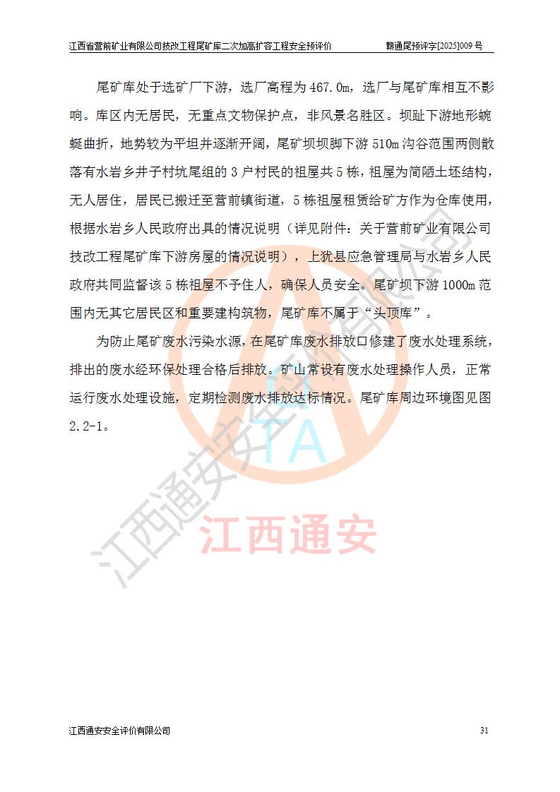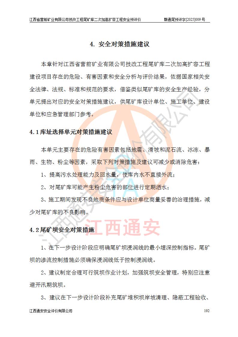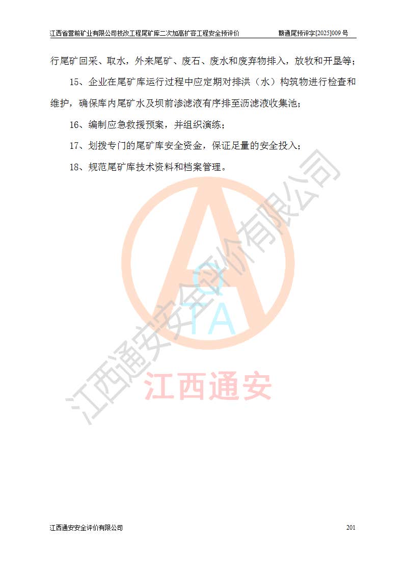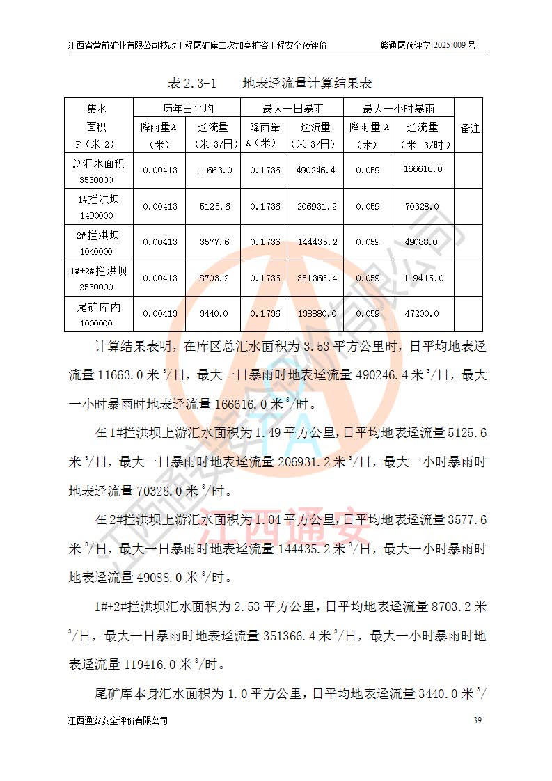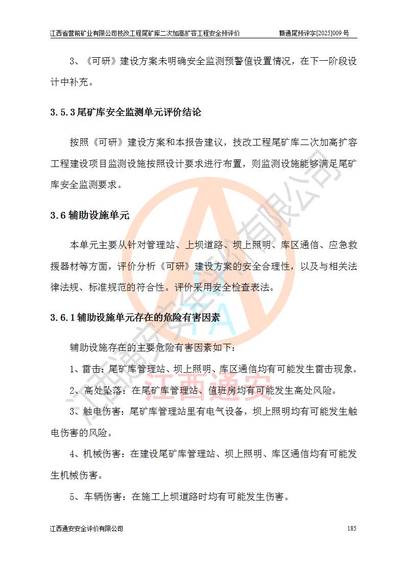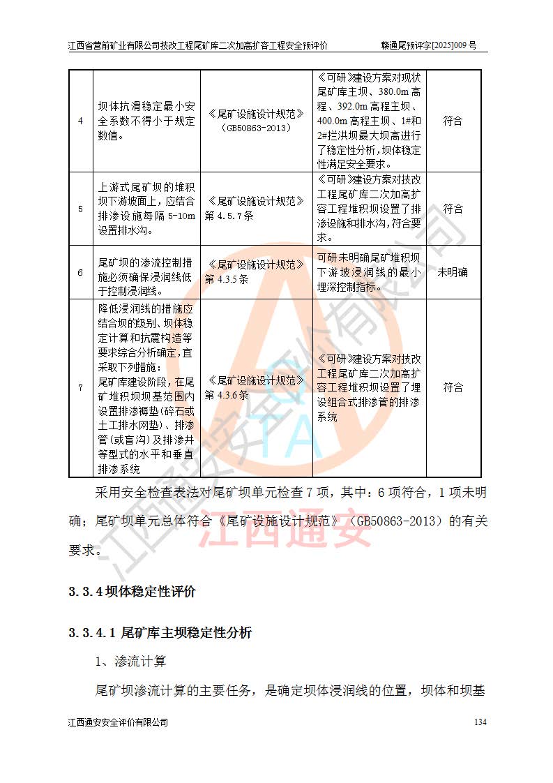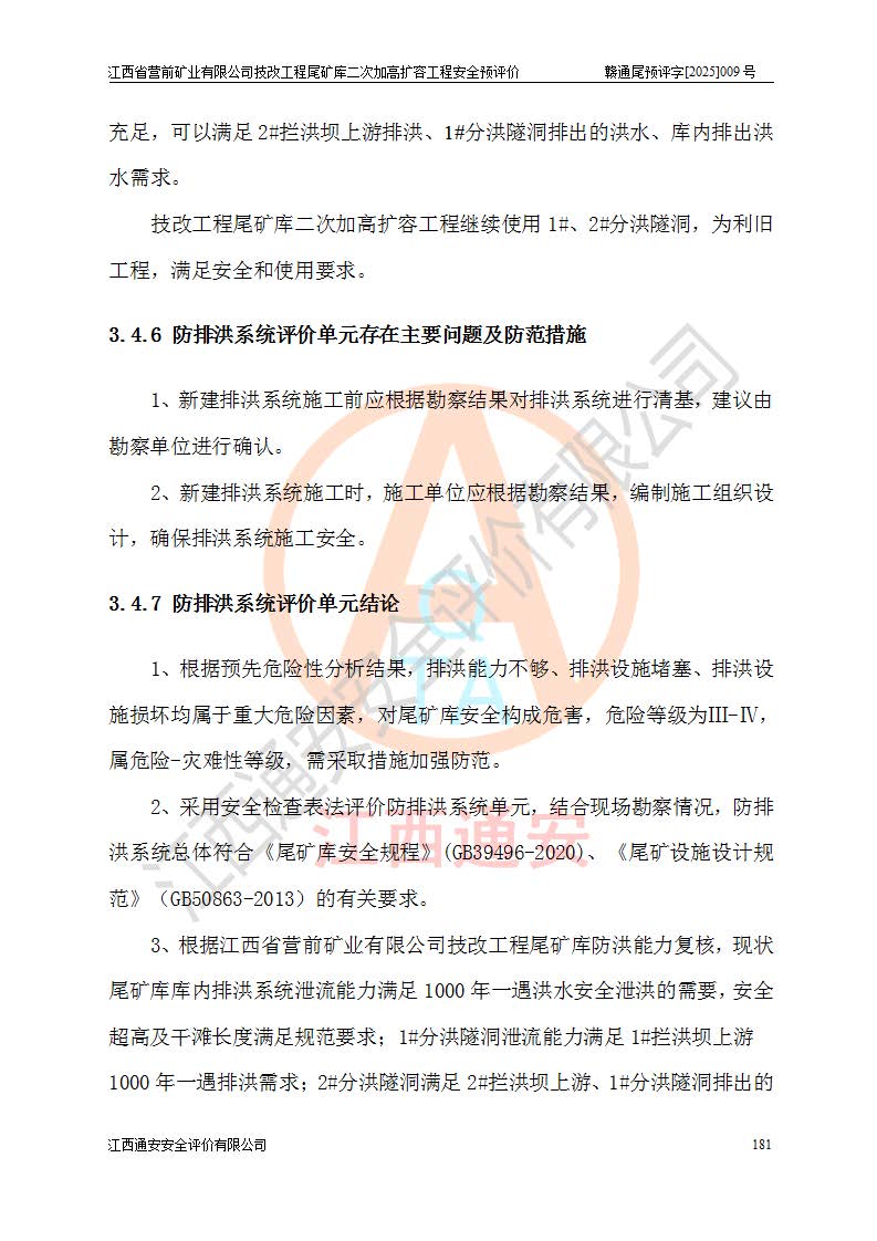 江西省營前礦業(yè)有限公司于2003年12月16日成立,位于贛州市上猶縣營前鎮(zhèn)焦里村境內(nèi),公司注冊資本10000萬元,法定**人陳雅博,礦區(qū)地理坐標:東經(jīng)114°18′30″~114°19′00″,北緯25°52′35″~25°53′47″。公司經(jīng)營范圍包括:鉛礦、鋅、鎢、銀地下開采、銷售。 江西省營前礦業(yè)有限公司技改工程尾礦庫位于焦里鎢銀鉛鋅礦區(qū),處于上猶縣水巖鄉(xiāng)井子村坑尾自然村境內(nèi),為山谷型尾礦庫。 江西省營前礦業(yè)有限公司技改工程尾礦庫于2013年由福建省冶金工業(yè)設(shè)計院設(shè)計,2014年8月開始施工建設(shè),2015年4月竣工開始試運行,2015年11月完成竣工驗收,2016年1月首次取得安全生產(chǎn)許可證,2019年1月完成延期換證,2020年8月委托金建工程設(shè)計有限公司進行尾礦庫加高擴容工作,2020年10月21日取得了江西省應(yīng)急管理廳下發(fā)的《關(guān)于江西省營前礦業(yè)有限公司技改工程尾礦庫加高擴容工程安全設(shè)施設(shè)計的審查意見》(贛應(yīng)急非煤項目設(shè)審〔2020〕46號),之后委托駐馬店市黃淮建設(shè)工程有限公司負責施工,云南潤滇工程技術(shù)有限公司負責監(jiān)理,2021年12月完成加高擴容竣工驗收工作,經(jīng)過延期,現(xiàn)尾礦庫安全生產(chǎn)許可證編號(贛)FM安許證字[2016]M1692號,**期為2025年01月18日至2028年01月17日。 江西省營前礦業(yè)有限公司技改工程尾礦庫為山谷型尾礦庫,初期壩為透水堆石壩,壩頂高程為330.0m,初期壩高25.0m,后期采用上游式尾礦堆積壩,加高擴容后*終壩頂高程為380.0m,堆積壩高50.0m,總壩高為75.0m,總庫容為為503.14×104m3,尾礦庫為三等庫。尾礦庫初期壩以上總匯水面積3.53km2,防洪標準取500年一遇。 目前尾礦庫由初期壩、堆積壩、庫內(nèi)排洪系統(tǒng)(雙格排水斜槽+連接井+排水涵洞+排洪隧洞+排水陡槽+消力池)、1#攔洪壩、1#分洪隧洞、2#攔洪壩、2#分洪隧洞和安全監(jiān)測設(shè)施組成。根據(jù)建設(shè)單位提供的尾礦庫平面布置圖,截至2024年12月,現(xiàn)狀尾礦庫堆積壩頂高程為372.2m,現(xiàn)狀總壩高67.2m,灘頂高程為369.8m,現(xiàn)狀全庫容387.51×104m3,現(xiàn)狀尾礦庫為三等庫,原加高擴容設(shè)計*終堆積壩頂高程為380.0m,現(xiàn)剩余庫容115.63×104m3,剩余**庫容約92.5×104m3,剩余服務(wù)年限約4.5年;礦山現(xiàn)有儲量較大,剩余庫容及服務(wù)年限不滿足礦山后期生產(chǎn)需要。 技改工程尾礦庫尾礦壩下游1**范圍無居民,不存在工礦企業(yè)等建構(gòu)筑物,不屬于“頭頂庫”;尾礦庫不壓礦;距贛江直線距離60**;不涉及保護區(qū)及生態(tài)紅線;尾礦庫所在溝谷較長,谷底平均縱坡9%,上游周邊山體地形有利于尾礦庫二次加高擴容工程的實施,因此為了增加尾礦庫庫容,延長服務(wù)年限,充分利用尾礦庫所在溝谷地形,江西省營前礦業(yè)有限公司對技改尾礦庫進行二次加高擴容。 2024年12月,江西省營前礦業(yè)有限公司委托地礦贛西地質(zhì)工程勘察院編制了《江西省營前礦業(yè)有限公司技改工程尾礦庫二次擴容工程(水文)地質(zhì)勘察報告》,2025年4月,江西省營前礦業(yè)有限公司委托金建工程設(shè)計有限公司編制了《江西省營前礦業(yè)有限公司技改工程尾礦庫二次加高擴容工程可行性研究報告》。 按照非煤礦山建設(shè)項目安全設(shè)施“三同時”的規(guī)定要求,技改工程尾礦庫為二次加高擴容工程,**進行安全預評價;江西省營前礦業(yè)有限公司委托我公司承擔技改工程尾礦庫二次加高擴容工程建設(shè)項目的安全預評價工作。 |