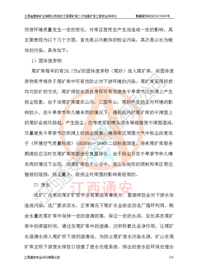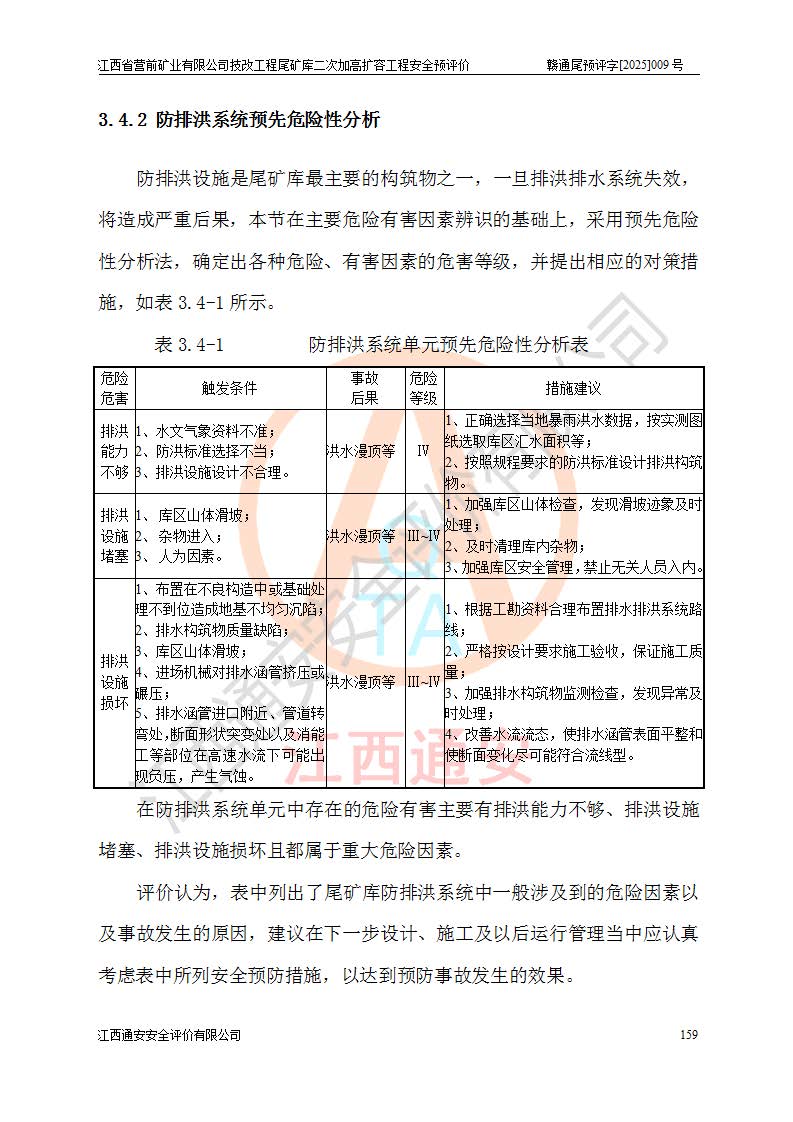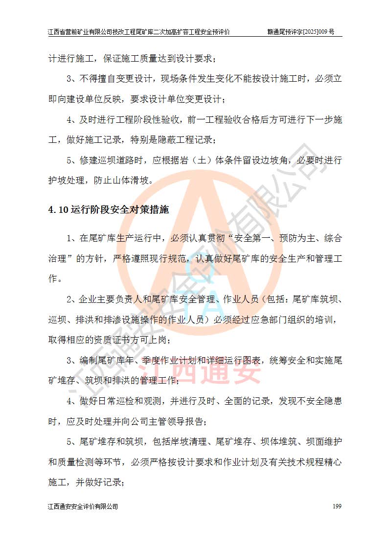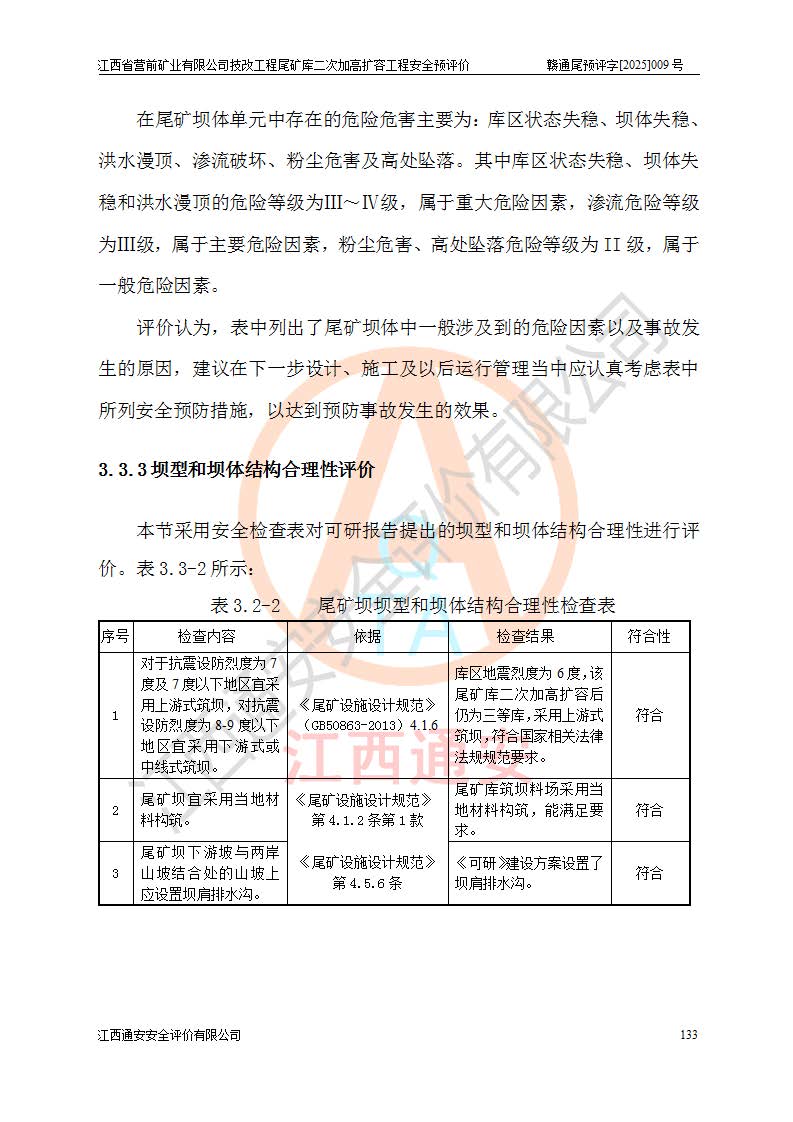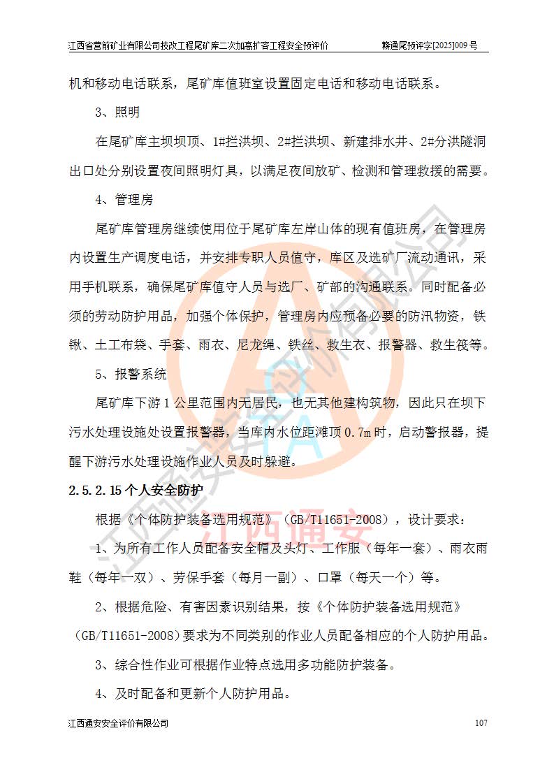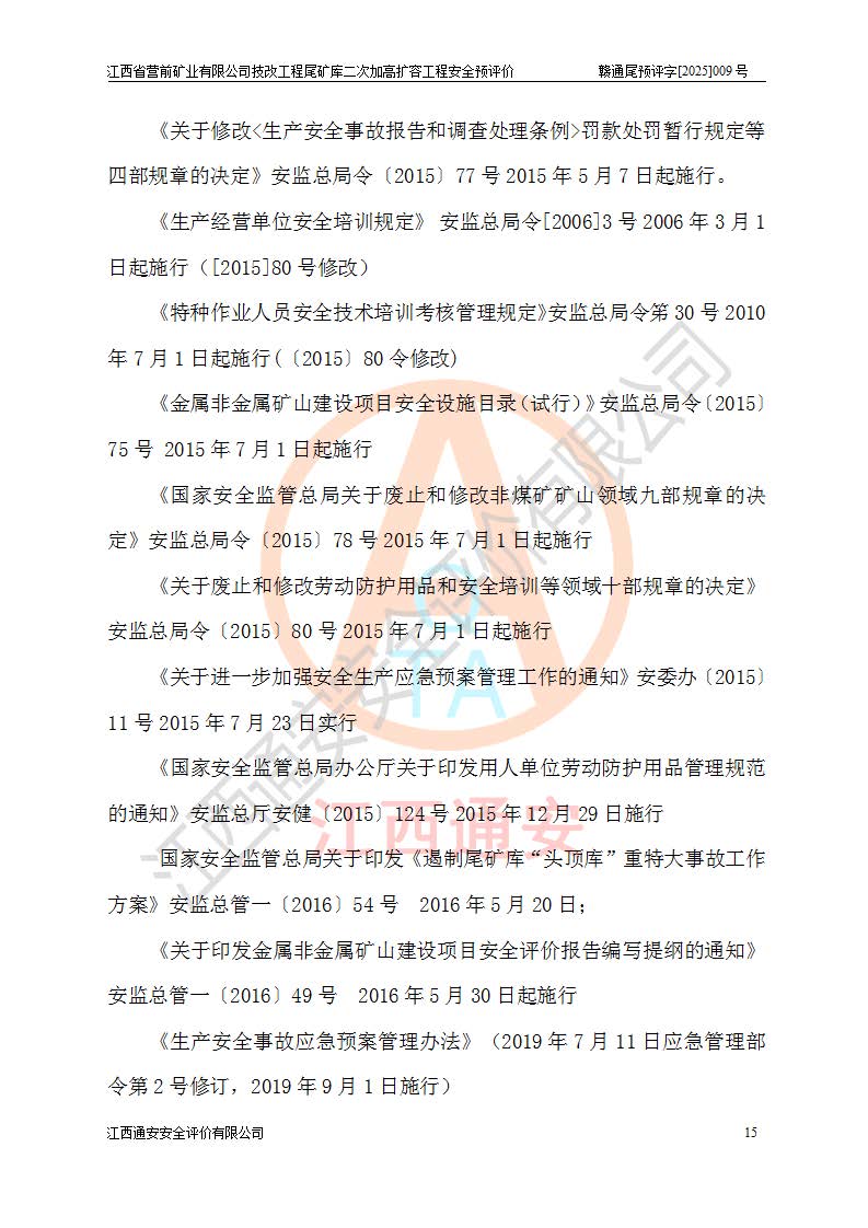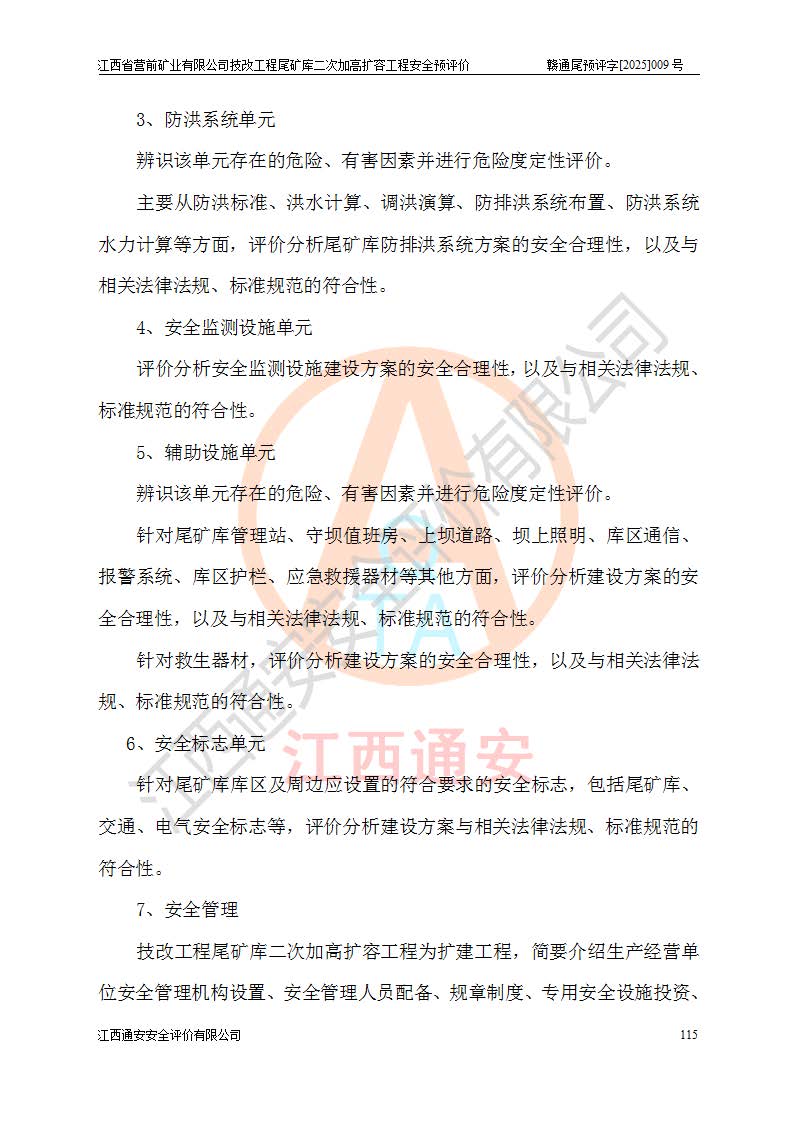 江西省營前礦業(yè)有限公司于2003年12月16日成立,位于贛州市上猶縣營前鎮(zhèn)焦里村境內(nèi),公司注冊資本10000萬元,法定**人陳雅博,礦區(qū)地理坐標:東經(jīng)114°18′30″~114°19′00″,北緯25°52′35″~25°53′47″。公司經(jīng)營范圍包括:鉛礦、鋅、鎢、銀地下開采、銷售。 江西省營前礦業(yè)有限公司技改工程尾礦庫位于焦里鎢銀鉛鋅礦區(qū),處于上猶縣水巖鄉(xiāng)井子村坑尾自然村境內(nèi),為山谷型尾礦庫。 江西省營前礦業(yè)有限公司技改工程尾礦庫于2013年由福建省冶金工業(yè)設(shè)計院設(shè)計,2014年8月開始施工建設(shè),2015年4月竣工開始試運行,2015年11月完成竣工驗收,2016年1月首次取得安全生產(chǎn)許可證,2019年1月完成延期換證,2020年8月委托金建工程設(shè)計有限公司進行尾礦庫加高擴容工作,2020年10月21日取得了江西省應(yīng)急管理廳下發(fā)的《關(guān)于江西省營前礦業(yè)有限公司技改工程尾礦庫加高擴容工程安全設(shè)施設(shè)計的審查意見》(贛應(yīng)急非煤項目設(shè)審〔2020〕46號),之后委托駐馬店市黃淮建設(shè)工程有限公司負責施工,云南潤滇工程技術(shù)有限公司負責監(jiān)理,2021年12月完成加高擴容竣工驗收工作,經(jīng)過延期,現(xiàn)尾礦庫安全生產(chǎn)許可證編號(贛)FM安許證字[2016]M1692號,**期為2025年01月18日至2028年01月17日。 江西省營前礦業(yè)有限公司技改工程尾礦庫為山谷型尾礦庫,初期壩為透水堆石壩,壩頂高程為330.0m,初期壩高25.0m,后期采用上游式尾礦堆積壩,加高擴容后*終壩頂高程為380.0m,堆積壩高50.0m,總壩高為75.0m,總庫容為為503.14×104m3,尾礦庫為三等庫。尾礦庫初期壩以上總匯水面積3.53km2,防洪標準取500年一遇。 目前尾礦庫由初期壩、堆積壩、庫內(nèi)排洪系統(tǒng)(雙格排水斜槽+連接井+排水涵洞+排洪隧洞+排水陡槽+消力池)、1#攔洪壩、1#分洪隧洞、2#攔洪壩、2#分洪隧洞和安全監(jiān)測設(shè)施組成。根據(jù)建設(shè)單位提供的尾礦庫平面布置圖,截至2024年12月,現(xiàn)狀尾礦庫堆積壩頂高程為372.2m,現(xiàn)狀總壩高67.2m,灘頂高程為369.8m,現(xiàn)狀全庫容387.51×104m3,現(xiàn)狀尾礦庫為三等庫,原加高擴容設(shè)計*終堆積壩頂高程為380.0m,現(xiàn)剩余庫容115.63×104m3,剩余**庫容約92.5×104m3,剩余服務(wù)年限約4.5年;礦山現(xiàn)有儲量較大,剩余庫容及服務(wù)年限不滿足礦山后期生產(chǎn)需要。 技改工程尾礦庫尾礦壩下游1**范圍無居民,不存在工礦企業(yè)等建構(gòu)筑物,不屬于“頭頂庫”;尾礦庫不壓礦;距贛江直線距離60**;不涉及保護區(qū)及生態(tài)紅線;尾礦庫所在溝谷較長,谷底平均縱坡9%,上游周邊山體地形有利于尾礦庫二次加高擴容工程的實施,因此為了增加尾礦庫庫容,延長服務(wù)年限,充分利用尾礦庫所在溝谷地形,江西省營前礦業(yè)有限公司對技改尾礦庫進行二次加高擴容。 2024年12月,江西省營前礦業(yè)有限公司委托地礦贛西地質(zhì)工程勘察院編制了《江西省營前礦業(yè)有限公司技改工程尾礦庫二次擴容工程(水文)地質(zhì)勘察報告》,2025年4月,江西省營前礦業(yè)有限公司委托金建工程設(shè)計有限公司編制了《江西省營前礦業(yè)有限公司技改工程尾礦庫二次加高擴容工程可行性研究報告》。 按照非煤礦山建設(shè)項目安全設(shè)施“三同時”的規(guī)定要求,技改工程尾礦庫為二次加高擴容工程,**進行安全預評價;江西省營前礦業(yè)有限公司委托我公司承擔技改工程尾礦庫二次加高擴容工程建設(shè)項目的安全預評價工作。 |