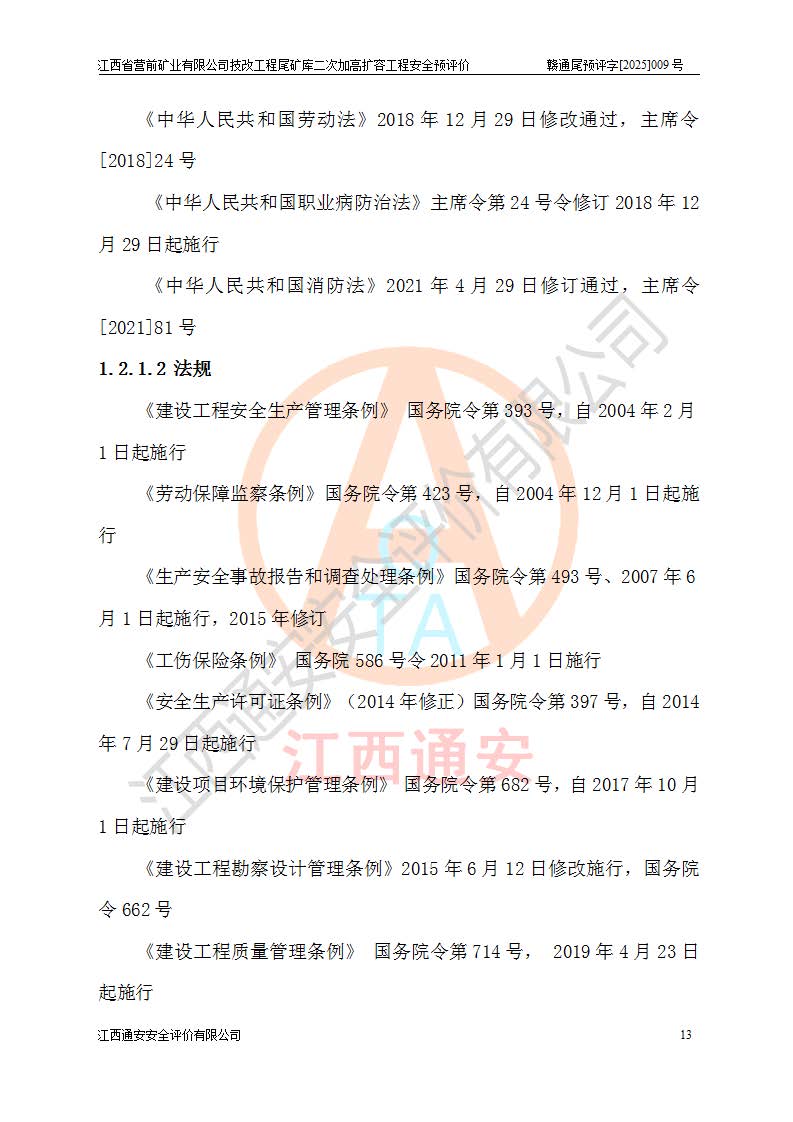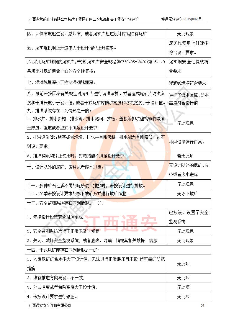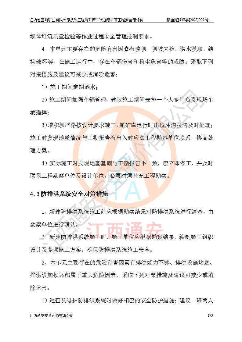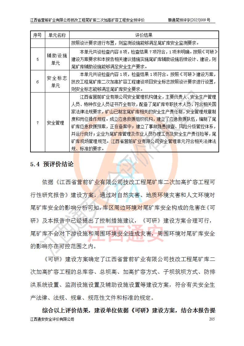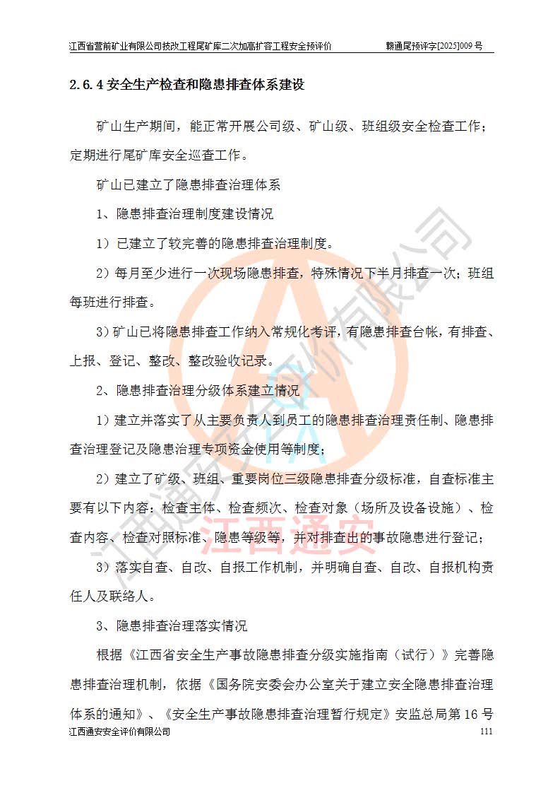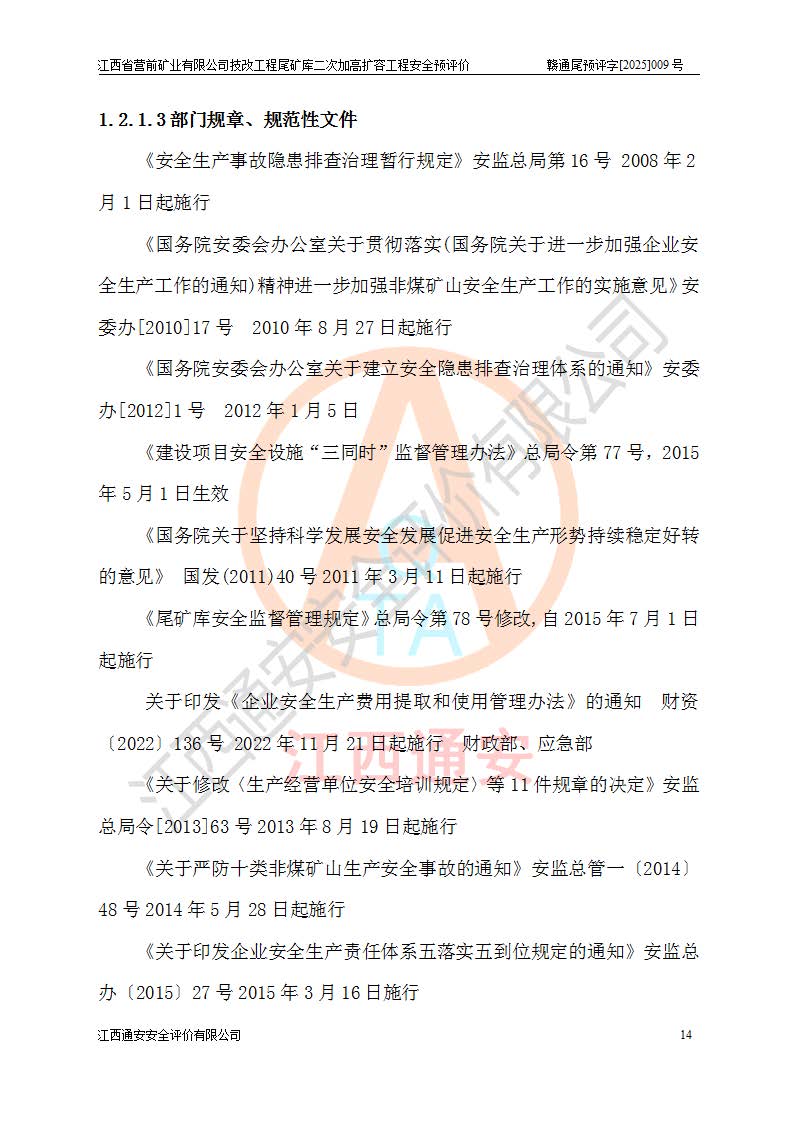 江西省營前礦業(yè)有限公司于2003年12月16日成立,位于贛州市上猶縣營前鎮(zhèn)焦里村境內(nèi),公司注冊資本10000萬元,法定**人陳雅博,礦區(qū)地理坐標:東經(jīng)114°18′30″~114°19′00″,北緯25°52′35″~25°53′47″。公司經(jīng)營范圍包括:鉛礦、鋅、鎢、銀地下開采、銷售。 江西省營前礦業(yè)有限公司技改工程尾礦庫位于焦里鎢銀鉛鋅礦區(qū),處于上猶縣水巖鄉(xiāng)井子村坑尾自然村境內(nèi),為山谷型尾礦庫。 江西省營前礦業(yè)有限公司技改工程尾礦庫于2013年由福建省冶金工業(yè)設(shè)計院設(shè)計,2014年8月開始施工建設(shè),2015年4月竣工開始試運行,2015年11月完成竣工驗收,2016年1月首次取得安全生產(chǎn)許可證,2019年1月完成延期換證,2020年8月委托金建工程設(shè)計有限公司進行尾礦庫加高擴容工作,2020年10月21日取得了江西省應(yīng)急管理廳下發(fā)的《關(guān)于江西省營前礦業(yè)有限公司技改工程尾礦庫加高擴容工程安全設(shè)施設(shè)計的審查意見》(贛應(yīng)急非煤項目設(shè)審〔2020〕46號),之后委托駐馬店市黃淮建設(shè)工程有限公司負責施工,云南潤滇工程技術(shù)有限公司負責監(jiān)理,2021年12月完成加高擴容竣工驗收工作,經(jīng)過延期,現(xiàn)尾礦庫安全生產(chǎn)許可證編號(贛)FM安許證字[2016]M1692號,**期為2025年01月18日至2028年01月17日。 江西省營前礦業(yè)有限公司技改工程尾礦庫為山谷型尾礦庫,初期壩為透水堆石壩,壩頂高程為330.0m,初期壩高25.0m,后期采用上游式尾礦堆積壩,加高擴容后*終壩頂高程為380.0m,堆積壩高50.0m,總壩高為75.0m,總庫容為為503.14×104m3,尾礦庫為三等庫。尾礦庫初期壩以上總匯水面積3.53km2,防洪標準取500年一遇。 目前尾礦庫由初期壩、堆積壩、庫內(nèi)排洪系統(tǒng)(雙格排水斜槽+連接井+排水涵洞+排洪隧洞+排水陡槽+消力池)、1#攔洪壩、1#分洪隧洞、2#攔洪壩、2#分洪隧洞和安全監(jiān)測設(shè)施組成。根據(jù)建設(shè)單位提供的尾礦庫平面布置圖,截至2024年12月,現(xiàn)狀尾礦庫堆積壩頂高程為372.2m,現(xiàn)狀總壩高67.2m,灘頂高程為369.8m,現(xiàn)狀全庫容387.51×104m3,現(xiàn)狀尾礦庫為三等庫,原加高擴容設(shè)計*終堆積壩頂高程為380.0m,現(xiàn)剩余庫容115.63×104m3,剩余**庫容約92.5×104m3,剩余服務(wù)年限約4.5年;礦山現(xiàn)有儲量較大,剩余庫容及服務(wù)年限不滿足礦山后期生產(chǎn)需要。 技改工程尾礦庫尾礦壩下游1**范圍無居民,不存在工礦企業(yè)等建構(gòu)筑物,不屬于“頭頂庫”;尾礦庫不壓礦;距贛江直線距離60**;不涉及保護區(qū)及生態(tài)紅線;尾礦庫所在溝谷較長,谷底平均縱坡9%,上游周邊山體地形有利于尾礦庫二次加高擴容工程的實施,因此為了增加尾礦庫庫容,延長服務(wù)年限,充分利用尾礦庫所在溝谷地形,江西省營前礦業(yè)有限公司對技改尾礦庫進行二次加高擴容。 2024年12月,江西省營前礦業(yè)有限公司委托地礦贛西地質(zhì)工程勘察院編制了《江西省營前礦業(yè)有限公司技改工程尾礦庫二次擴容工程(水文)地質(zhì)勘察報告》,2025年4月,江西省營前礦業(yè)有限公司委托金建工程設(shè)計有限公司編制了《江西省營前礦業(yè)有限公司技改工程尾礦庫二次加高擴容工程可行性研究報告》。 按照非煤礦山建設(shè)項目安全設(shè)施“三同時”的規(guī)定要求,技改工程尾礦庫為二次加高擴容工程,**進行安全預評價;江西省營前礦業(yè)有限公司委托我公司承擔技改工程尾礦庫二次加高擴容工程建設(shè)項目的安全預評價工作。 |