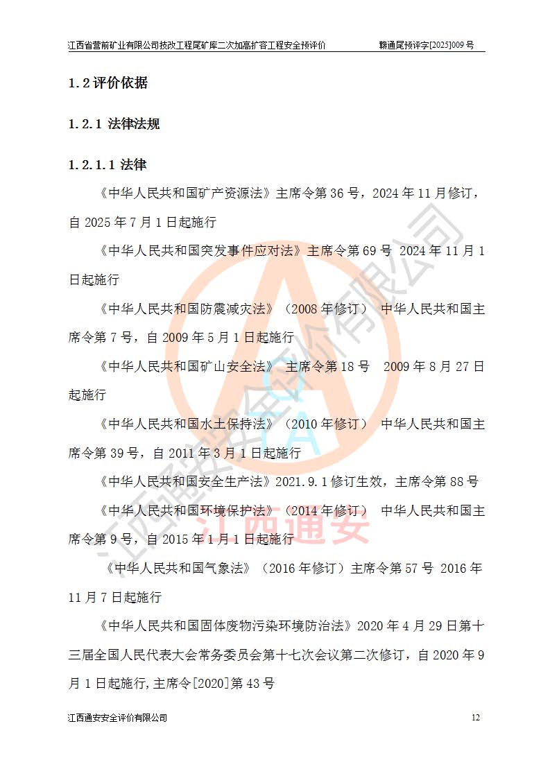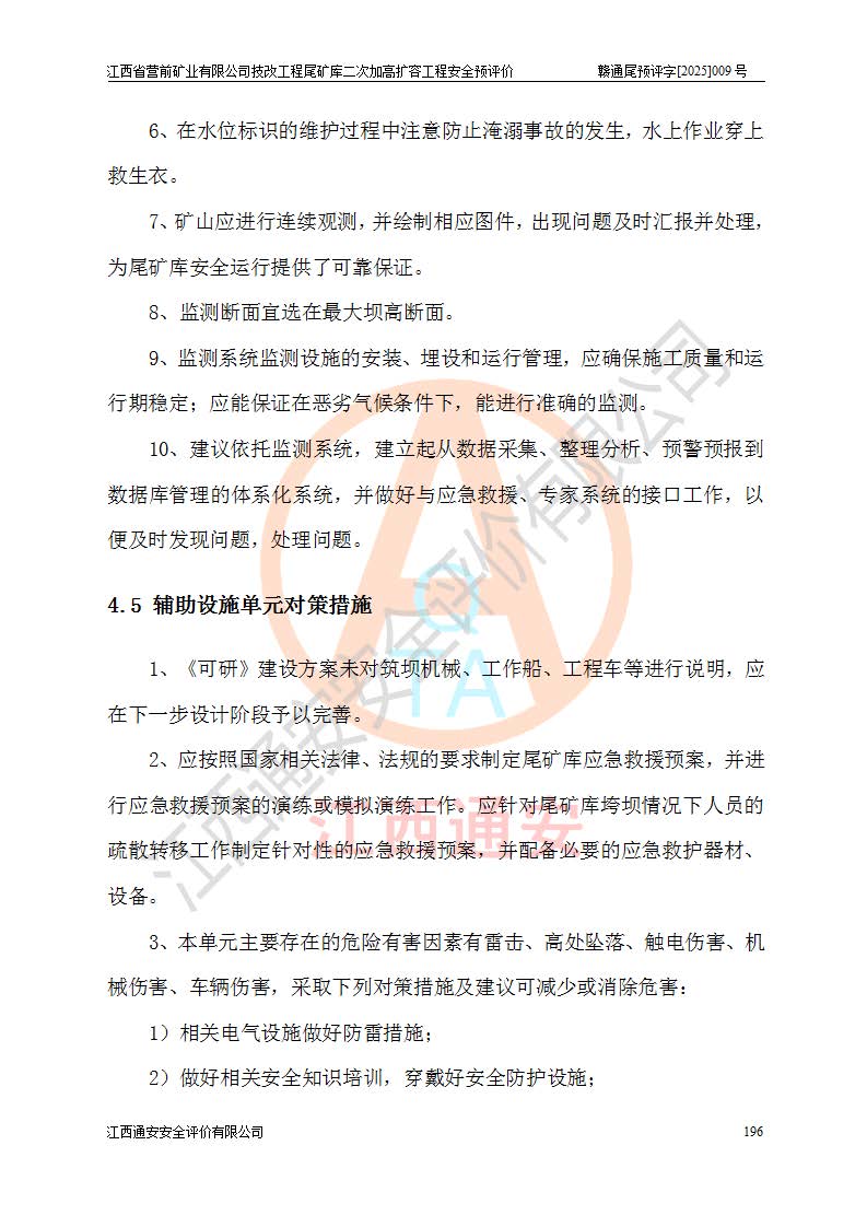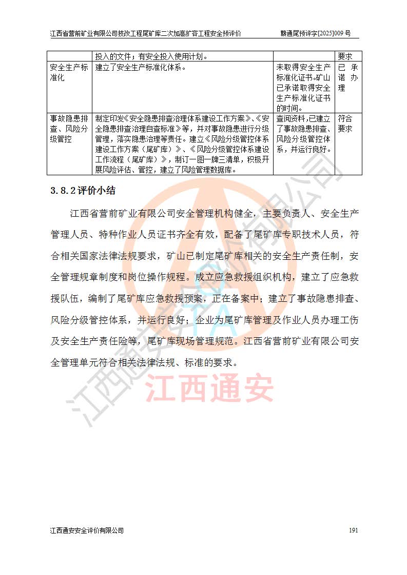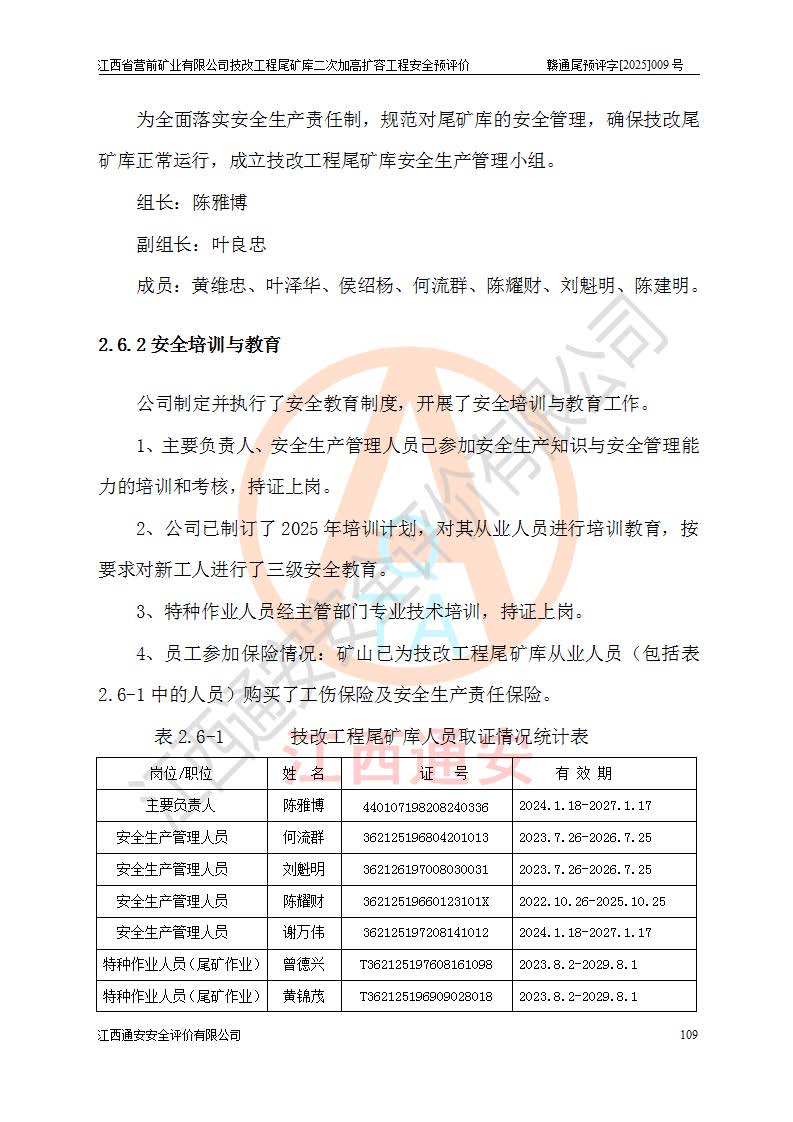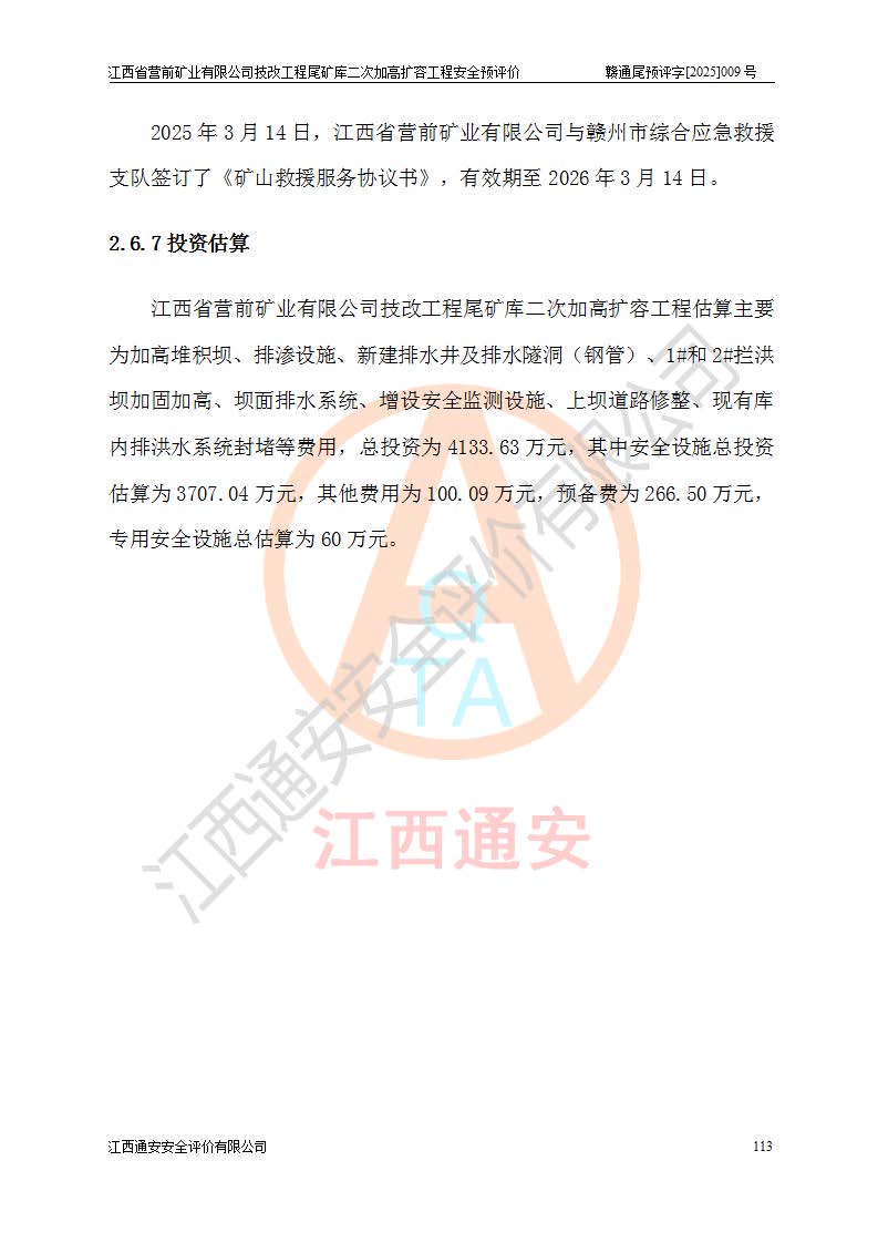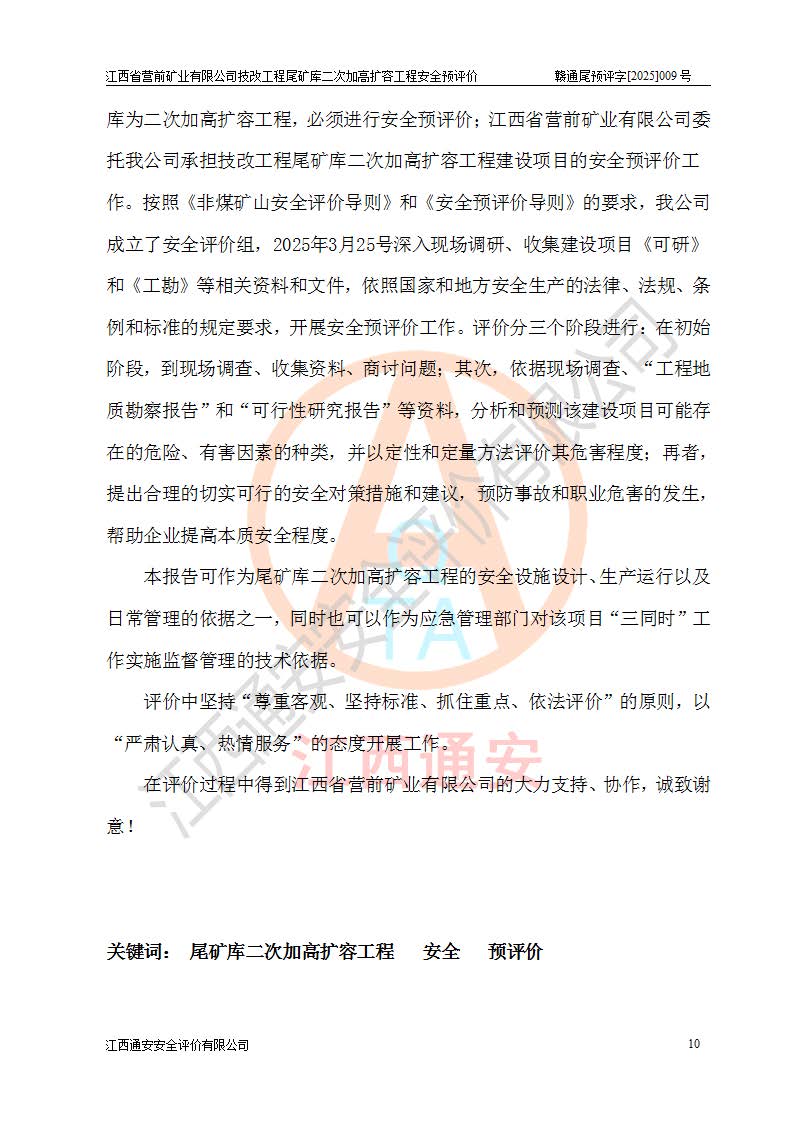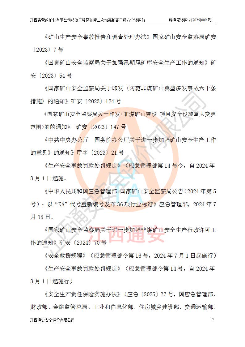 江西省營前礦業(yè)有限公司于2003年12月16日成立,位于贛州市上猶縣營前鎮(zhèn)焦里村境內(nèi),公司注冊資本10000萬元,法定**人陳雅博,礦區(qū)地理坐標:東經(jīng)114°18′30″~114°19′00″,北緯25°52′35″~25°53′47″。公司經(jīng)營范圍包括:鉛礦、鋅、鎢、銀地下開采、銷售。 江西省營前礦業(yè)有限公司技改工程尾礦庫位于焦里鎢銀鉛鋅礦區(qū),處于上猶縣水巖鄉(xiāng)井子村坑尾自然村境內(nèi),為山谷型尾礦庫。 江西省營前礦業(yè)有限公司技改工程尾礦庫于2013年由福建省冶金工業(yè)設(shè)計院設(shè)計,2014年8月開始施工建設(shè),2015年4月竣工開始試運行,2015年11月完成竣工驗收,2016年1月首次取得安全生產(chǎn)許可證,2019年1月完成延期換證,2020年8月委托金建工程設(shè)計有限公司進行尾礦庫加高擴容工作,2020年10月21日取得了江西省應(yīng)急管理廳下發(fā)的《關(guān)于江西省營前礦業(yè)有限公司技改工程尾礦庫加高擴容工程安全設(shè)施設(shè)計的審查意見》(贛應(yīng)急非煤項目設(shè)審〔2020〕46號),之后委托駐馬店市黃淮建設(shè)工程有限公司負責施工,云南潤滇工程技術(shù)有限公司負責監(jiān)理,2021年12月完成加高擴容竣工驗收工作,經(jīng)過延期,現(xiàn)尾礦庫安全生產(chǎn)許可證編號(贛)FM安許證字[2016]M1692號,**期為2025年01月18日至2028年01月17日。 江西省營前礦業(yè)有限公司技改工程尾礦庫為山谷型尾礦庫,初期壩為透水堆石壩,壩頂高程為330.0m,初期壩高25.0m,后期采用上游式尾礦堆積壩,加高擴容后*終壩頂高程為380.0m,堆積壩高50.0m,總壩高為75.0m,總庫容為為503.14×104m3,尾礦庫為三等庫。尾礦庫初期壩以上總匯水面積3.53km2,防洪標準取500年一遇。 目前尾礦庫由初期壩、堆積壩、庫內(nèi)排洪系統(tǒng)(雙格排水斜槽+連接井+排水涵洞+排洪隧洞+排水陡槽+消力池)、1#攔洪壩、1#分洪隧洞、2#攔洪壩、2#分洪隧洞和安全監(jiān)測設(shè)施組成。根據(jù)建設(shè)單位提供的尾礦庫平面布置圖,截至2024年12月,現(xiàn)狀尾礦庫堆積壩頂高程為372.2m,現(xiàn)狀總壩高67.2m,灘頂高程為369.8m,現(xiàn)狀全庫容387.51×104m3,現(xiàn)狀尾礦庫為三等庫,原加高擴容設(shè)計*終堆積壩頂高程為380.0m,現(xiàn)剩余庫容115.63×104m3,剩余**庫容約92.5×104m3,剩余服務(wù)年限約4.5年;礦山現(xiàn)有儲量較大,剩余庫容及服務(wù)年限不滿足礦山后期生產(chǎn)需要。 技改工程尾礦庫尾礦壩下游1**范圍無居民,不存在工礦企業(yè)等建構(gòu)筑物,不屬于“頭頂庫”;尾礦庫不壓礦;距贛江直線距離60**;不涉及保護區(qū)及生態(tài)紅線;尾礦庫所在溝谷較長,谷底平均縱坡9%,上游周邊山體地形有利于尾礦庫二次加高擴容工程的實施,因此為了增加尾礦庫庫容,延長服務(wù)年限,充分利用尾礦庫所在溝谷地形,江西省營前礦業(yè)有限公司對技改尾礦庫進行二次加高擴容。 2024年12月,江西省營前礦業(yè)有限公司委托地礦贛西地質(zhì)工程勘察院編制了《江西省營前礦業(yè)有限公司技改工程尾礦庫二次擴容工程(水文)地質(zhì)勘察報告》,2025年4月,江西省營前礦業(yè)有限公司委托金建工程設(shè)計有限公司編制了《江西省營前礦業(yè)有限公司技改工程尾礦庫二次加高擴容工程可行性研究報告》。 按照非煤礦山建設(shè)項目安全設(shè)施“三同時”的規(guī)定要求,技改工程尾礦庫為二次加高擴容工程,**進行安全預評價;江西省營前礦業(yè)有限公司委托我公司承擔技改工程尾礦庫二次加高擴容工程建設(shè)項目的安全預評價工作。 |