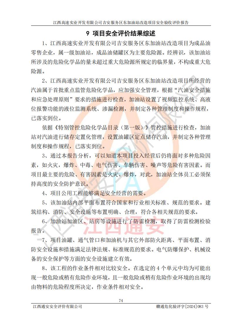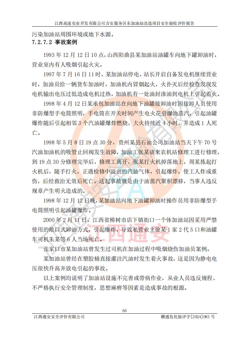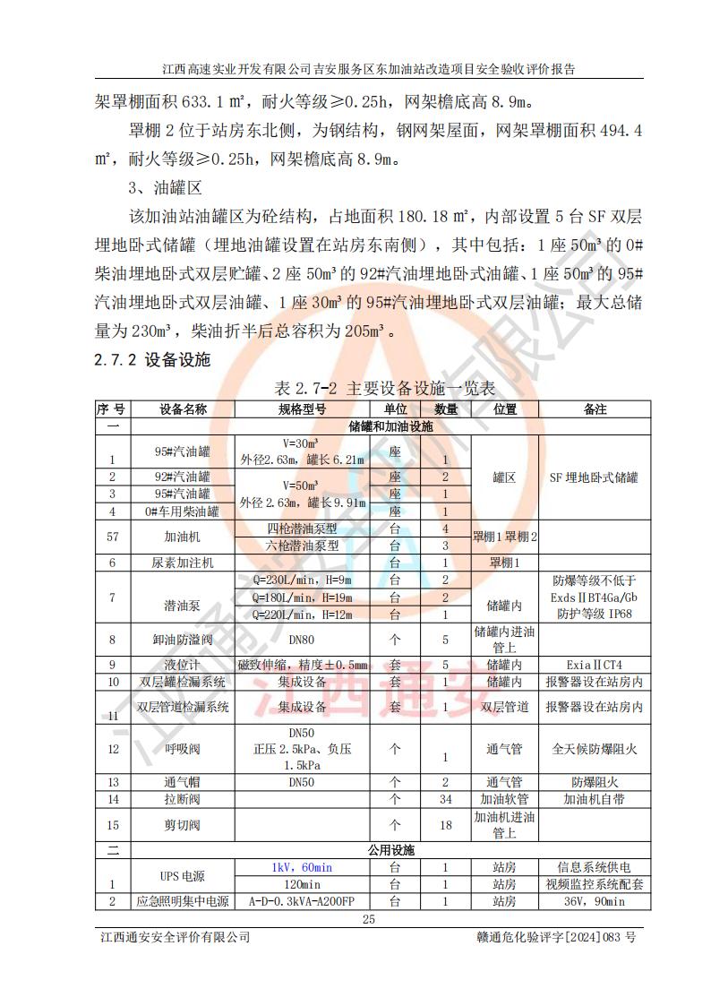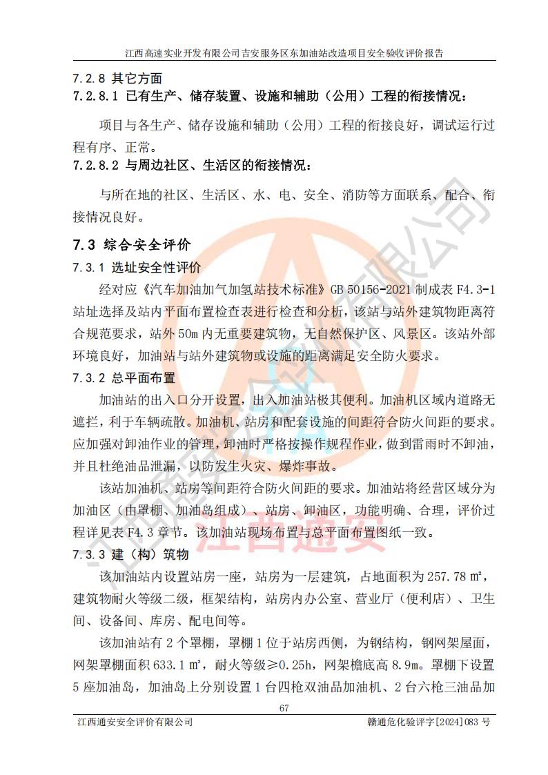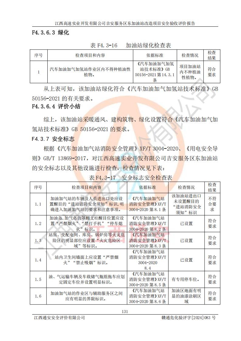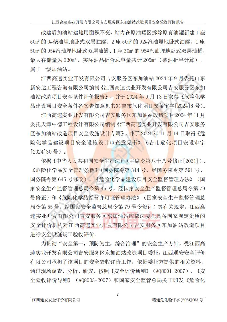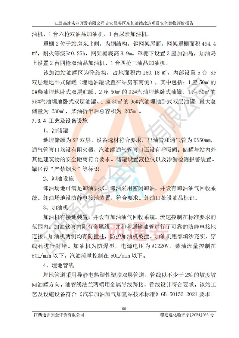 評(píng)價(jià)報(bào)告名稱(chēng) | 江西高速實(shí)業(yè)開(kāi)發(fā)有限公司吉安服務(wù)區(qū)東加油站改造項(xiàng)目安全驗(yàn)收狀評(píng)價(jià)報(bào)告 | |||