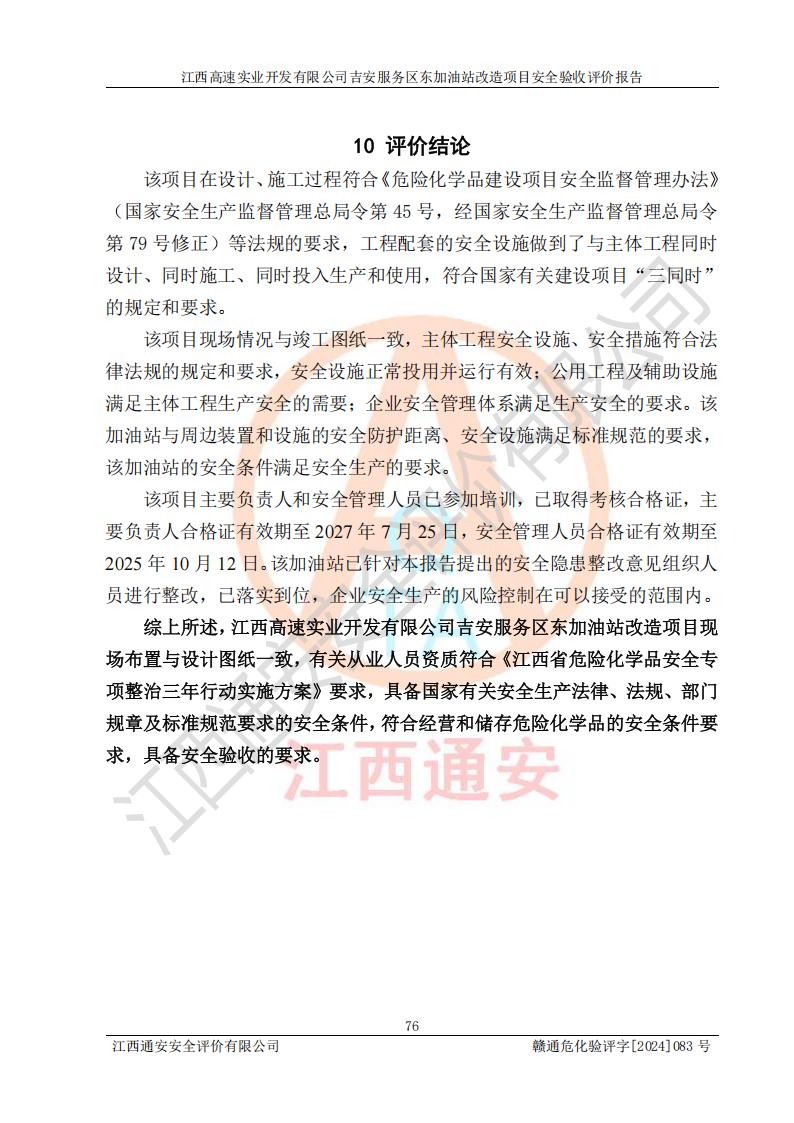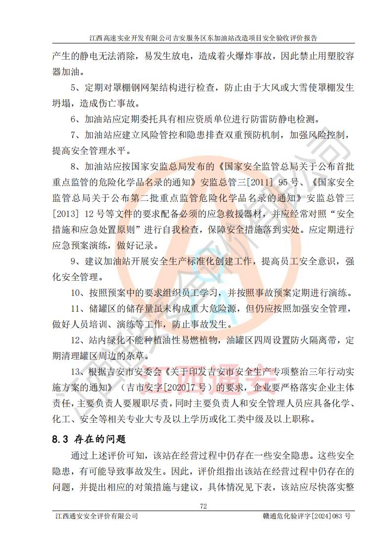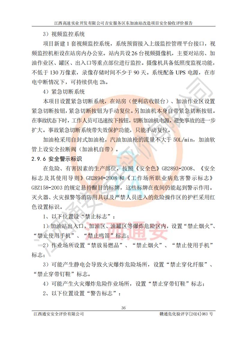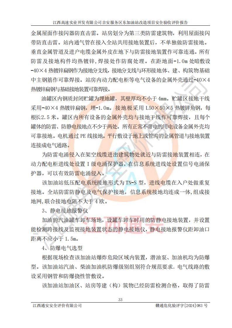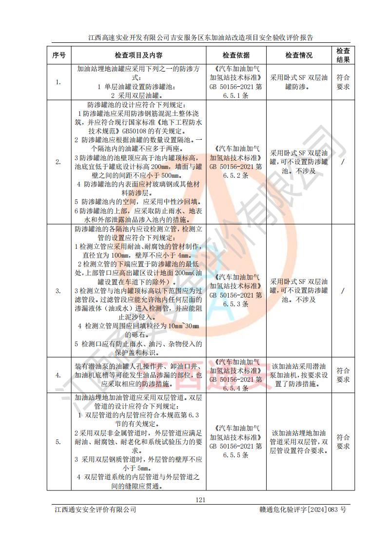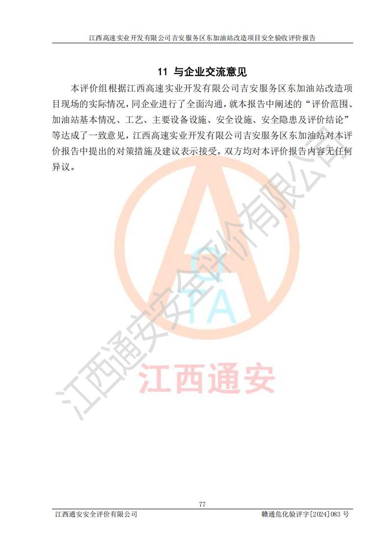 評(píng)價(jià)報(bào)告名稱(chēng) | 江西高速實(shí)業(yè)開(kāi)發(fā)有限公司吉安服務(wù)區(qū)東加油站改造項(xiàng)目安全驗(yàn)收狀評(píng)價(jià)報(bào)告 | |||