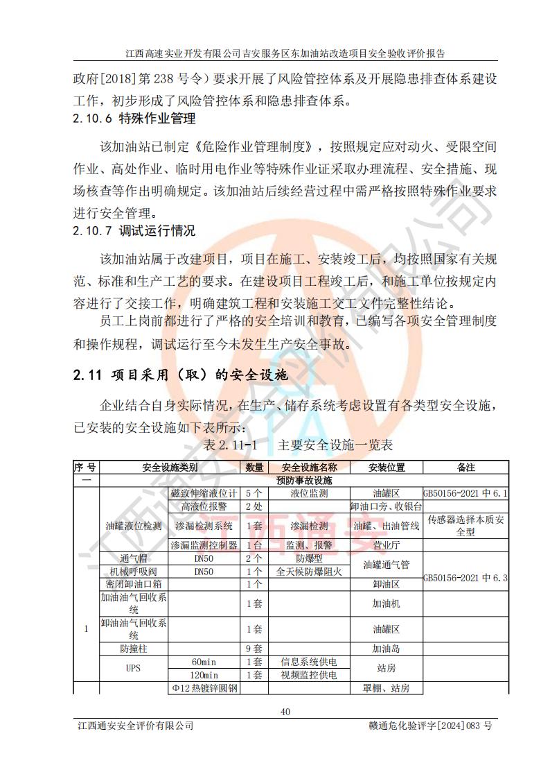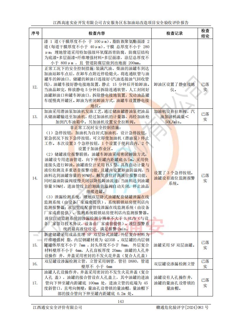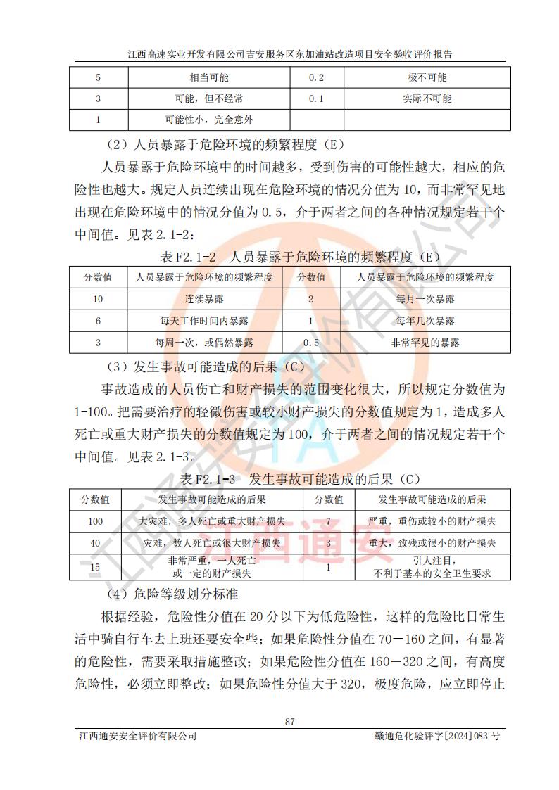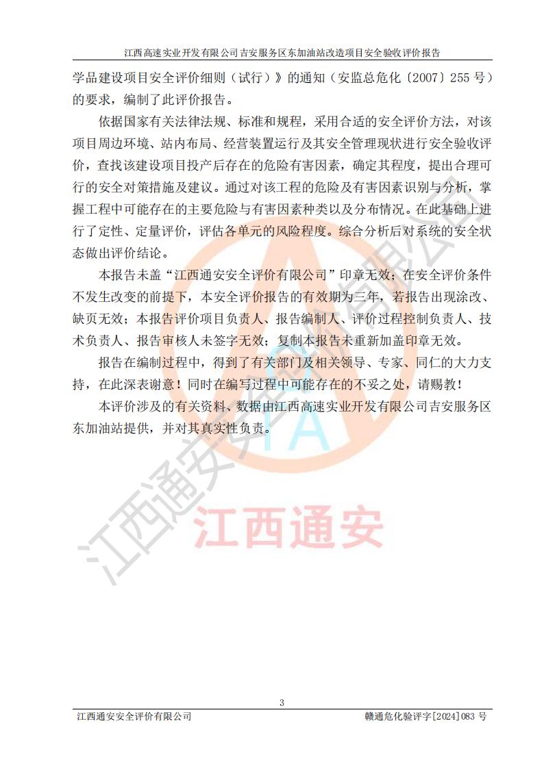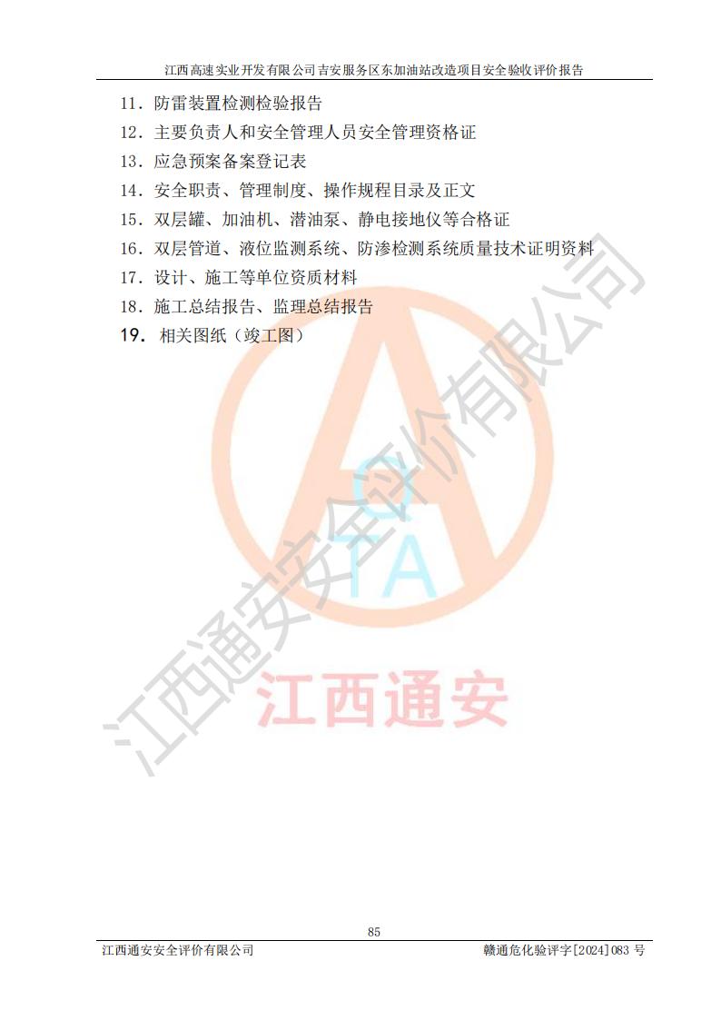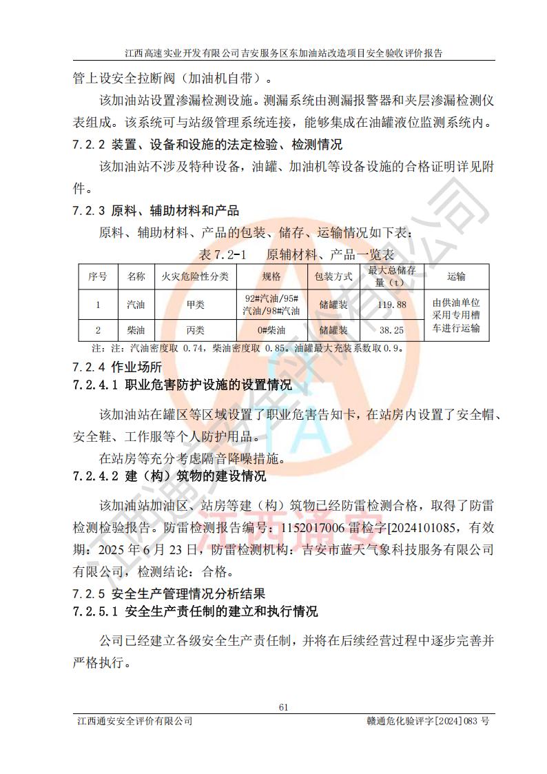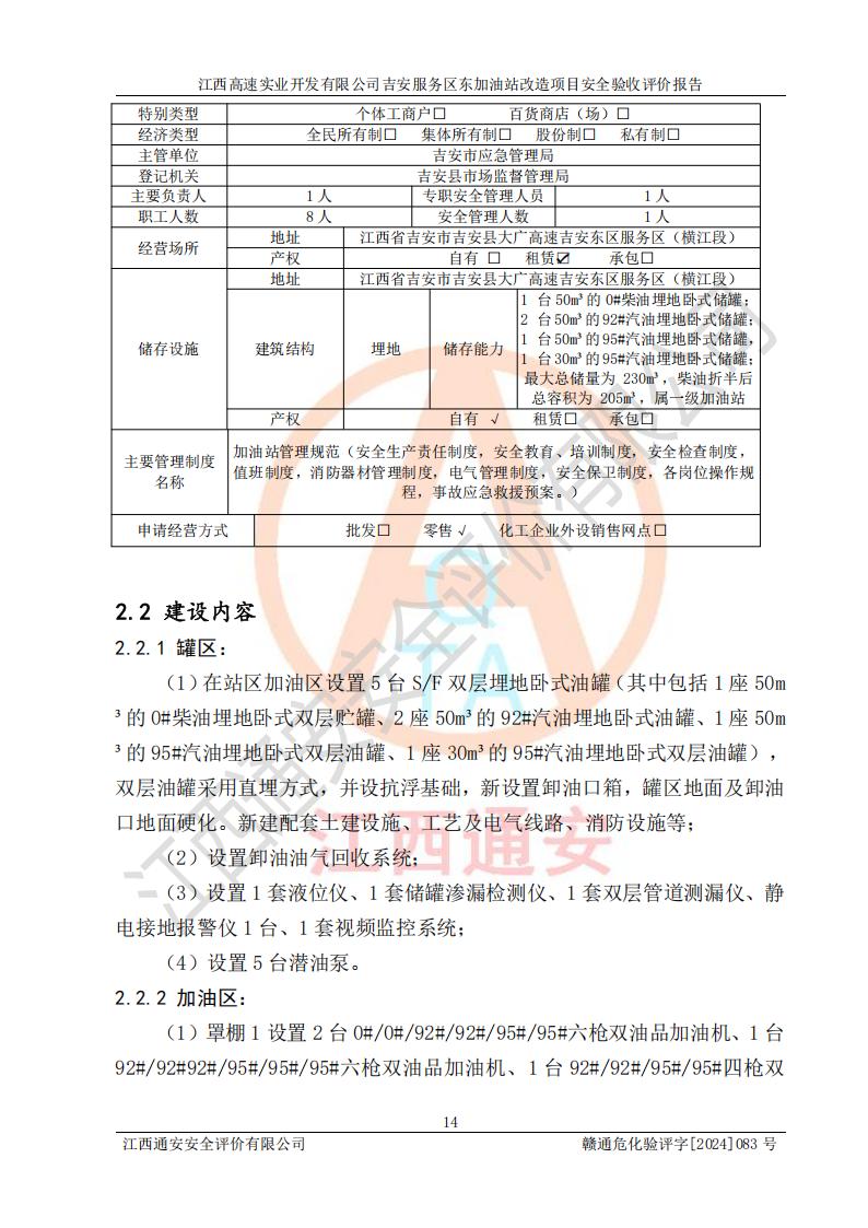評(píng)價(jià)報(bào)告名稱(chēng) | 江西高速實(shí)業(yè)開(kāi)發(fā)有限公司吉安服務(wù)區(qū)東加油站改造項(xiàng)目安全驗(yàn)收狀評(píng)價(jià)報(bào)告 | |||