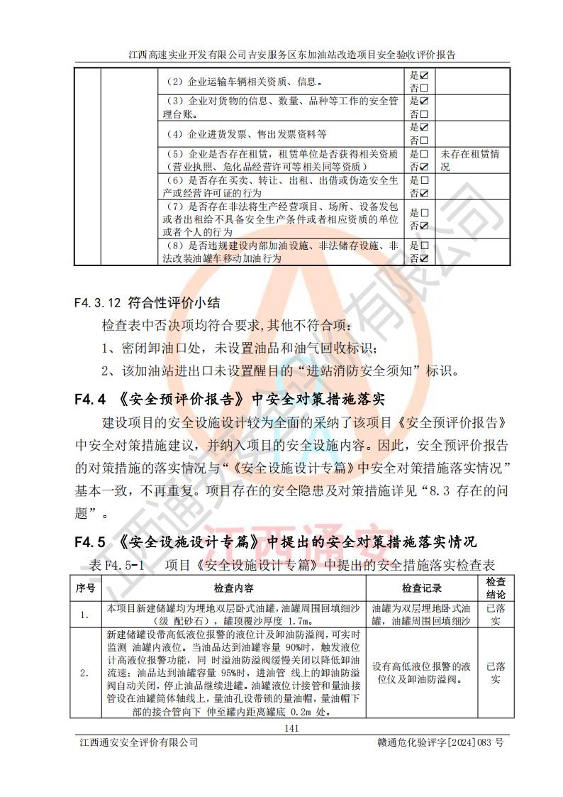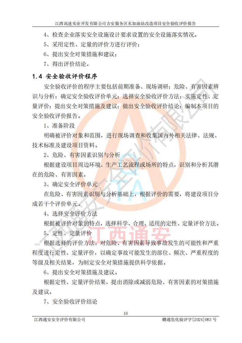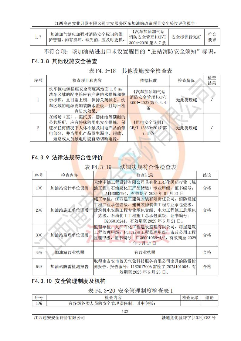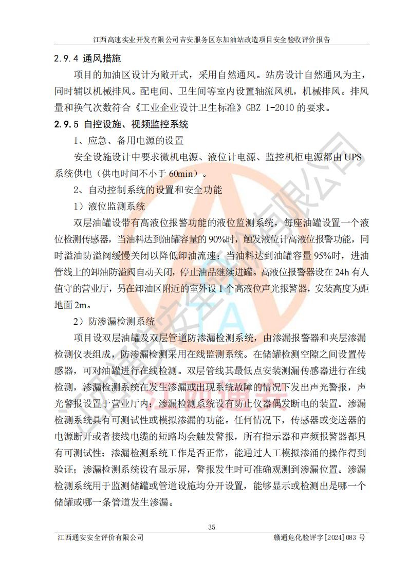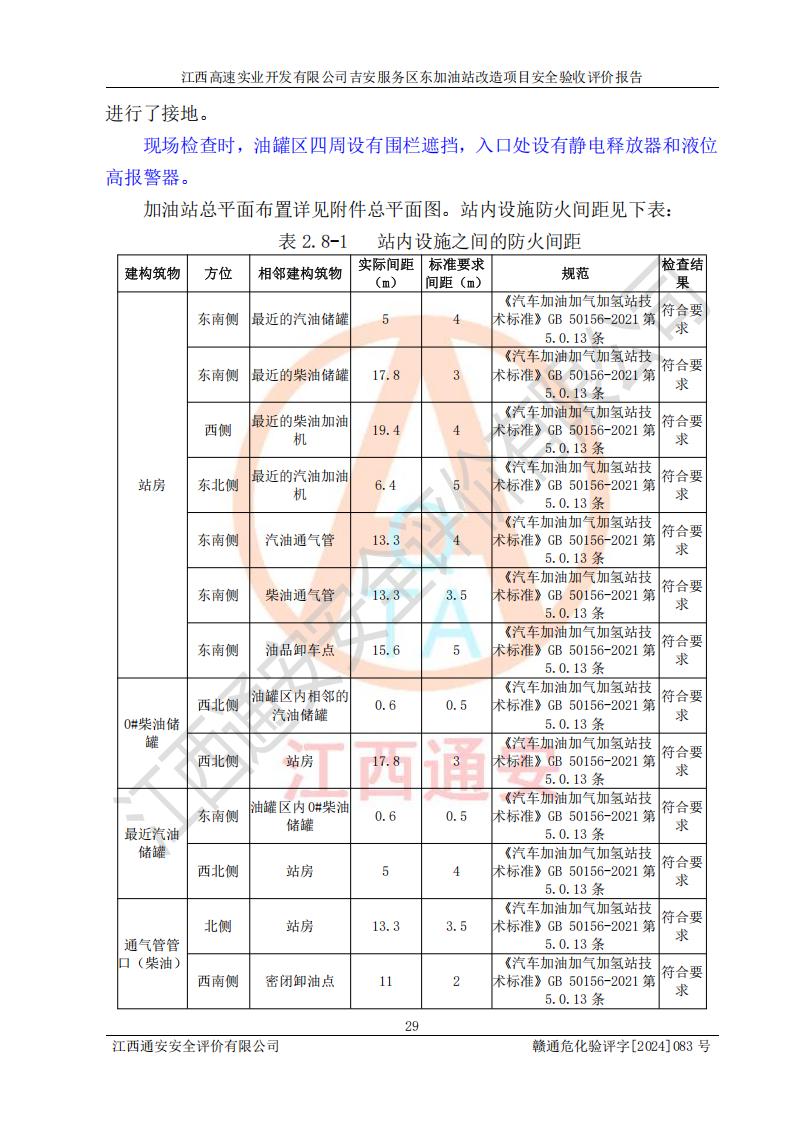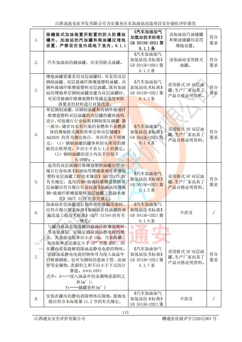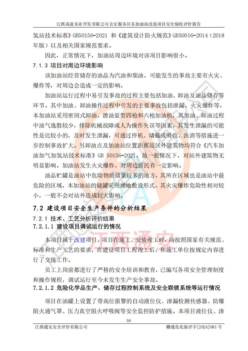 評(píng)價(jià)報(bào)告名稱(chēng) | 江西高速實(shí)業(yè)開(kāi)發(fā)有限公司吉安服務(wù)區(qū)東加油站改造項(xiàng)目安全驗(yàn)收狀評(píng)價(jià)報(bào)告 | |||