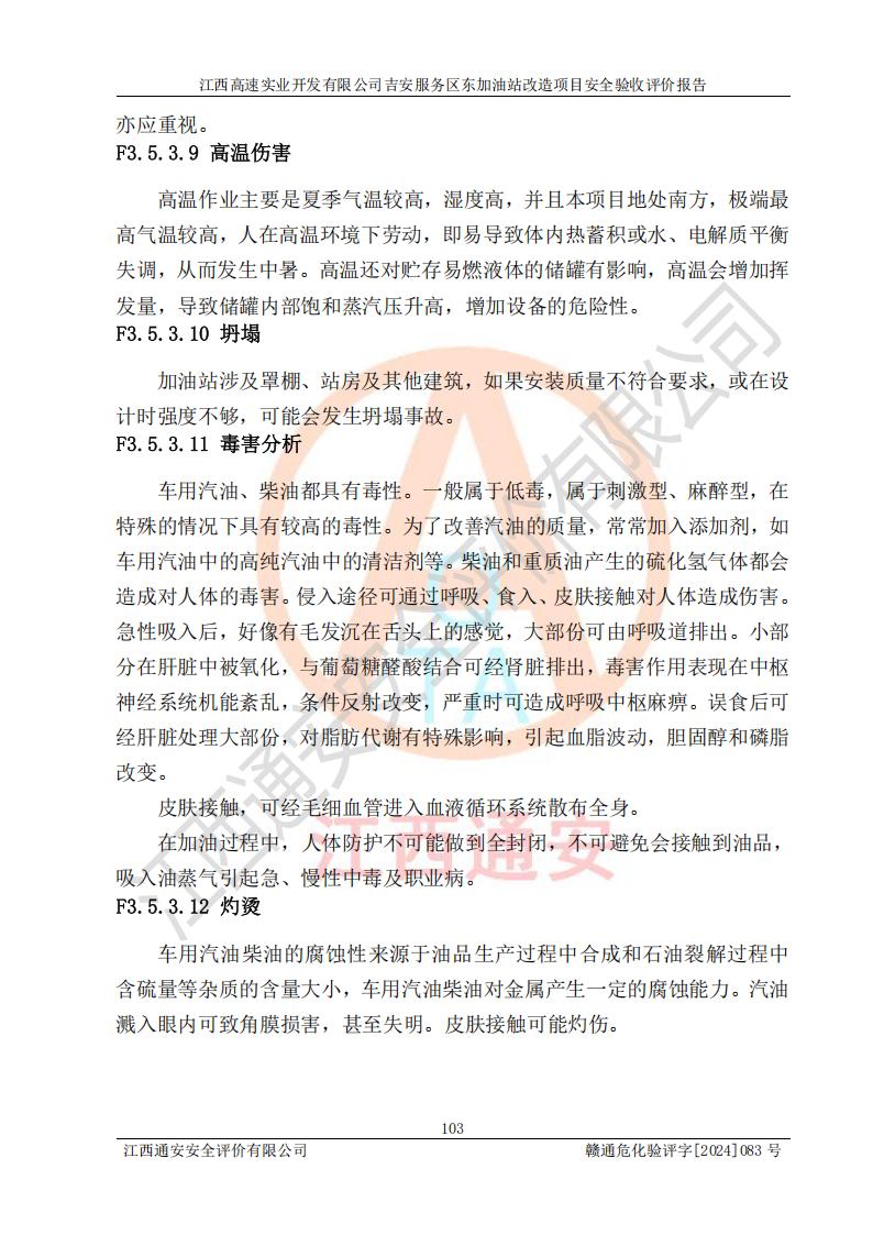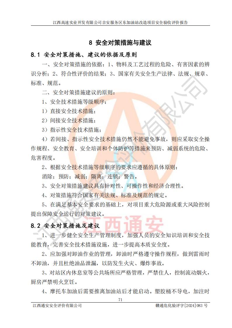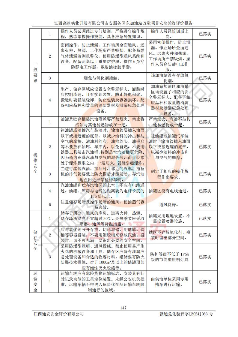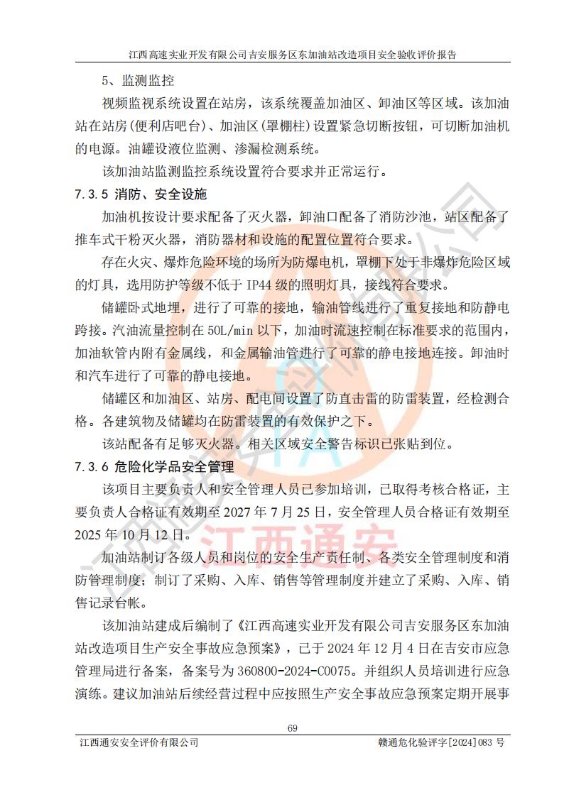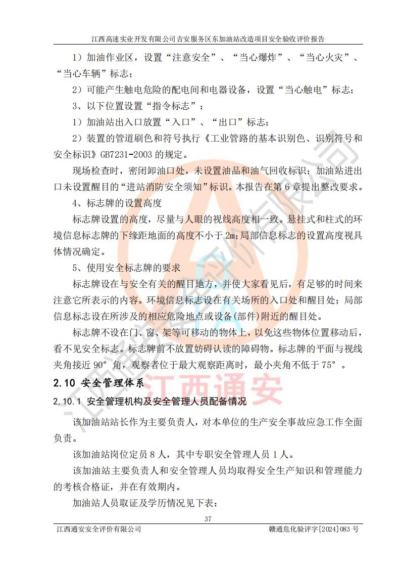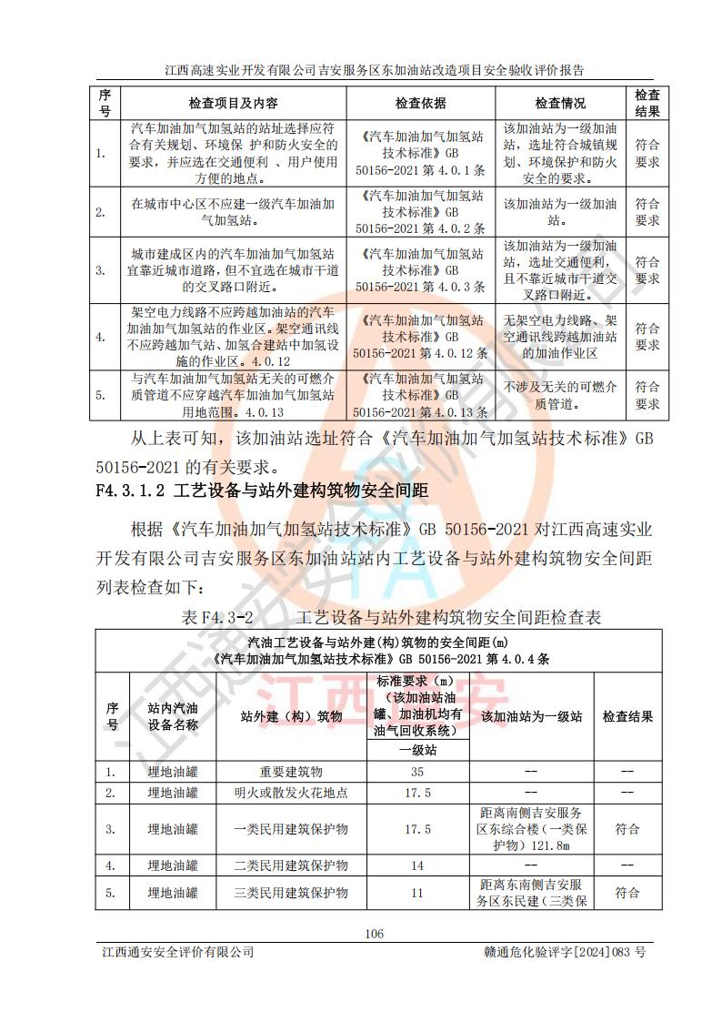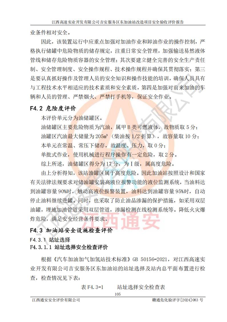 評(píng)價(jià)報(bào)告名稱(chēng) | 江西高速實(shí)業(yè)開(kāi)發(fā)有限公司吉安服務(wù)區(qū)東加油站改造項(xiàng)目安全驗(yàn)收狀評(píng)價(jià)報(bào)告 | |||