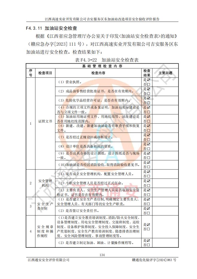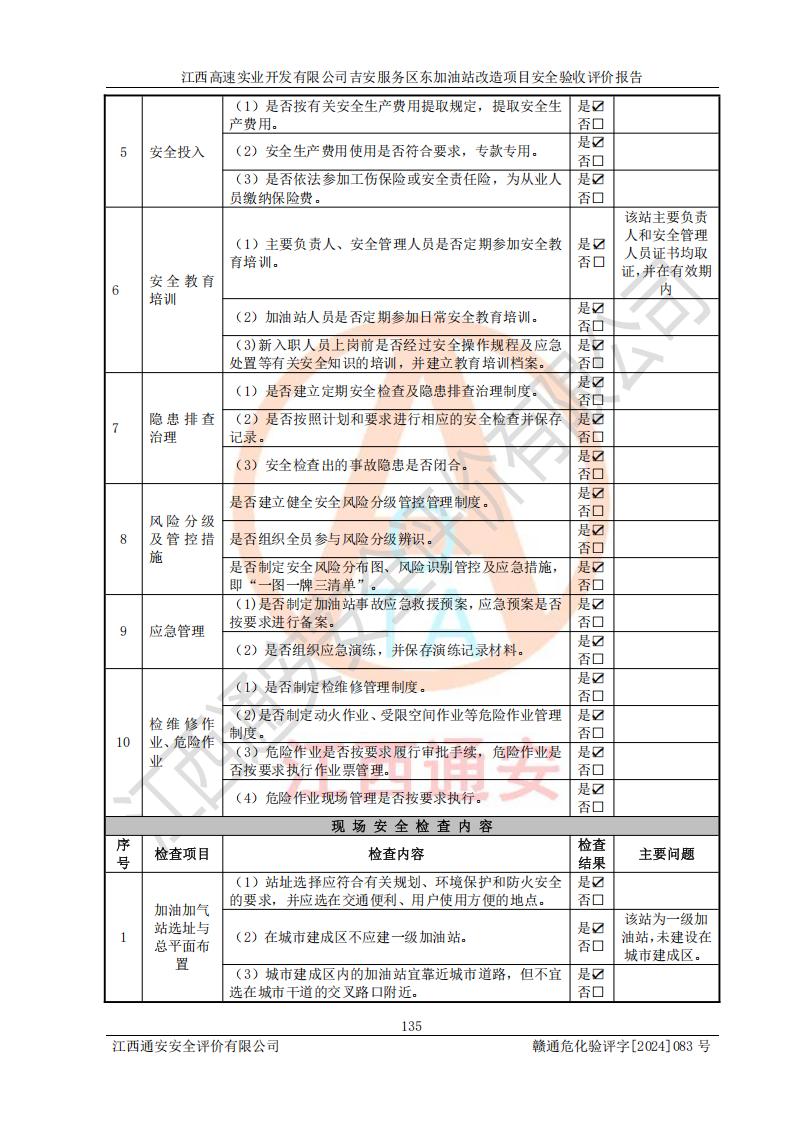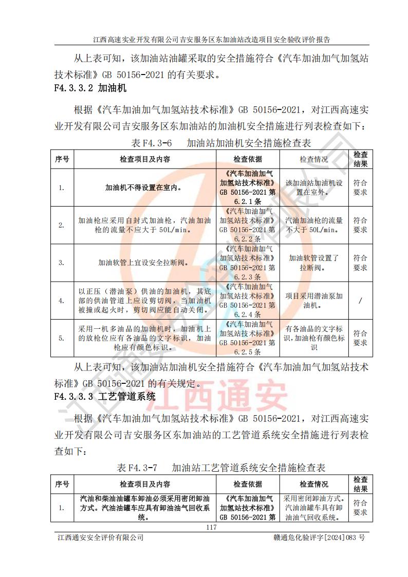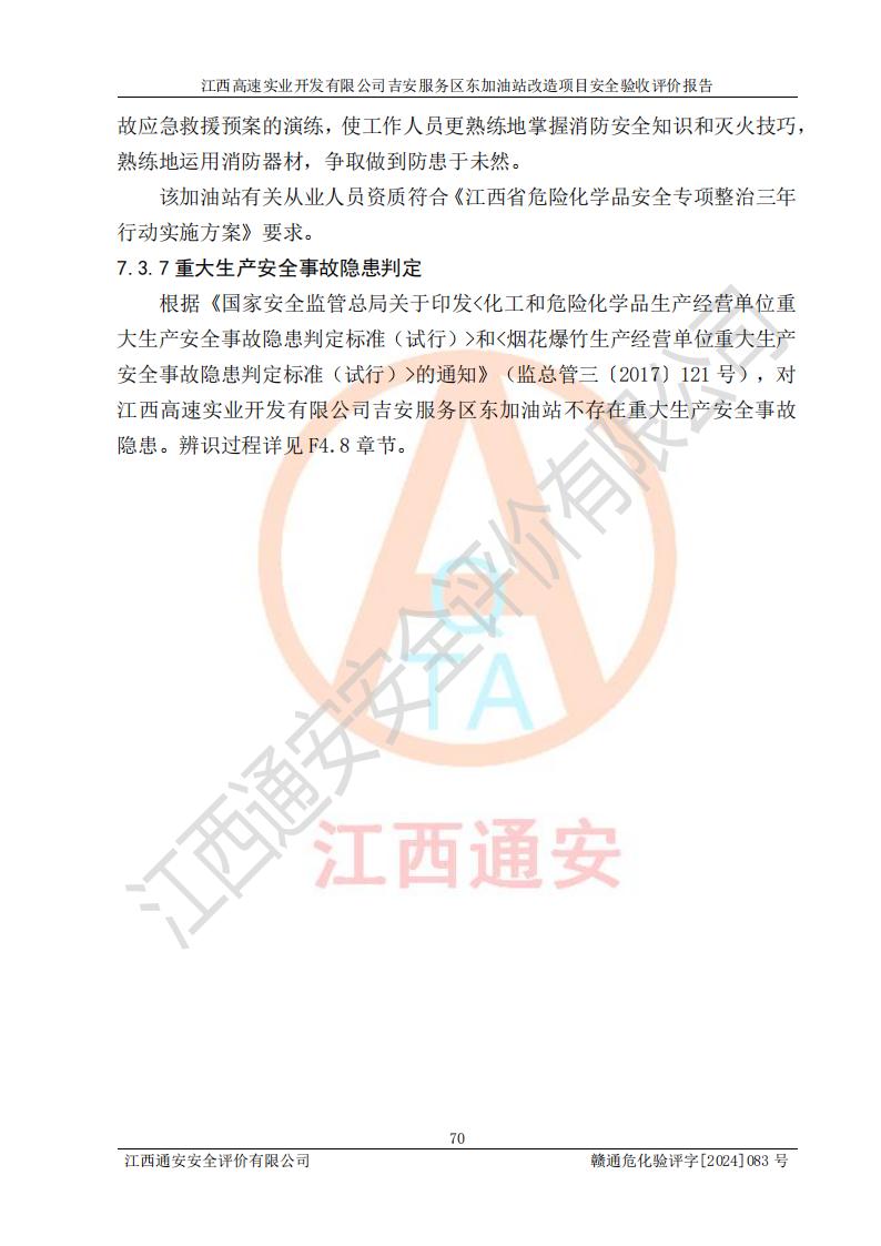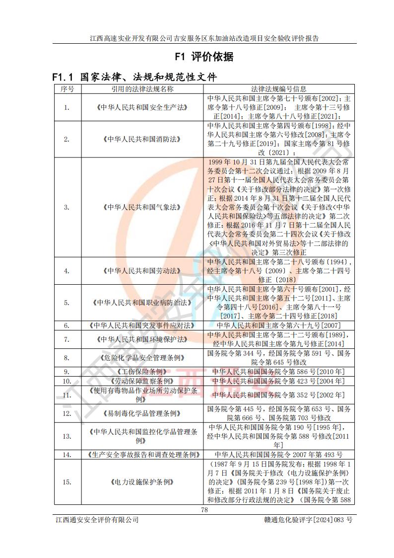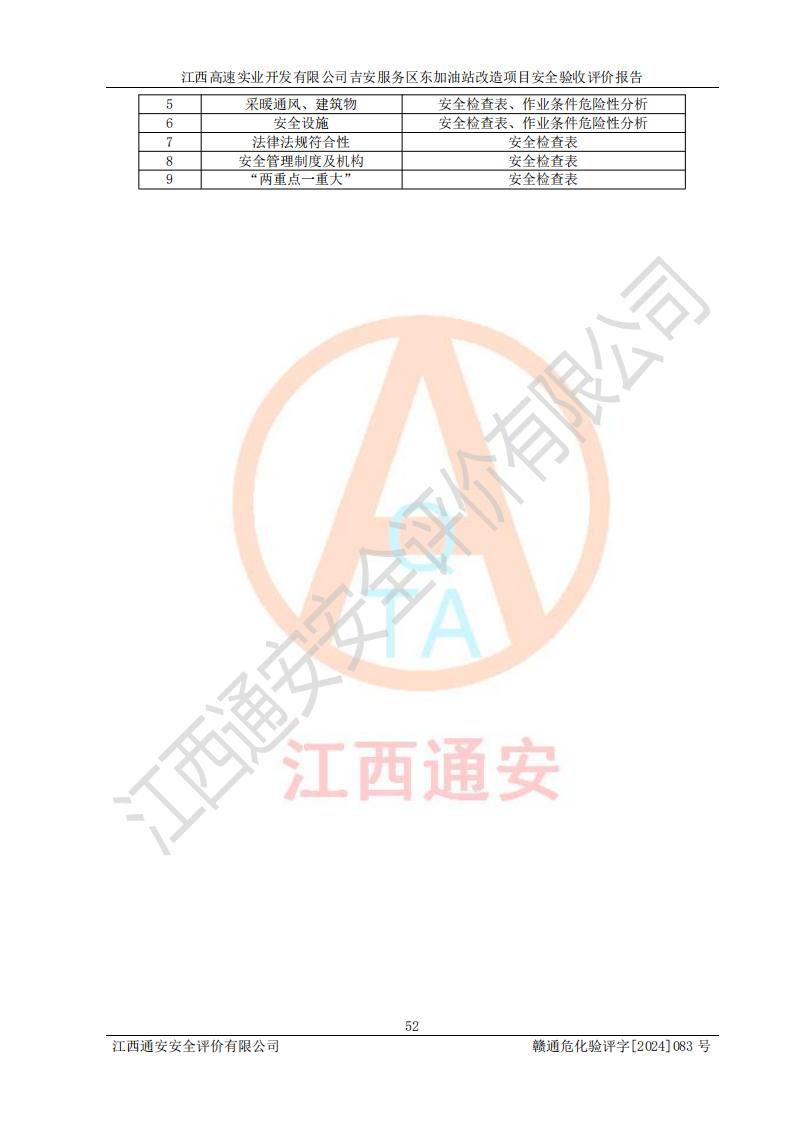 評(píng)價(jià)報(bào)告名稱(chēng) | 江西高速實(shí)業(yè)開(kāi)發(fā)有限公司吉安服務(wù)區(qū)東加油站改造項(xiàng)目安全驗(yàn)收狀評(píng)價(jià)報(bào)告 | |||