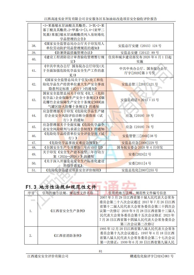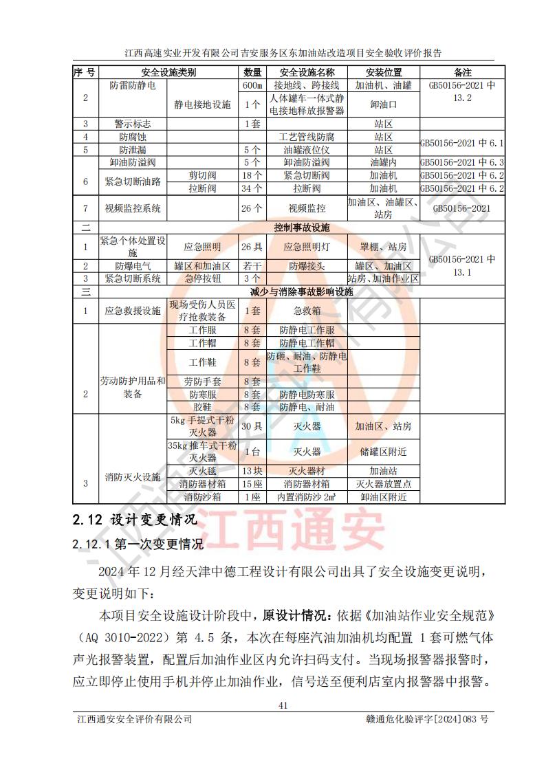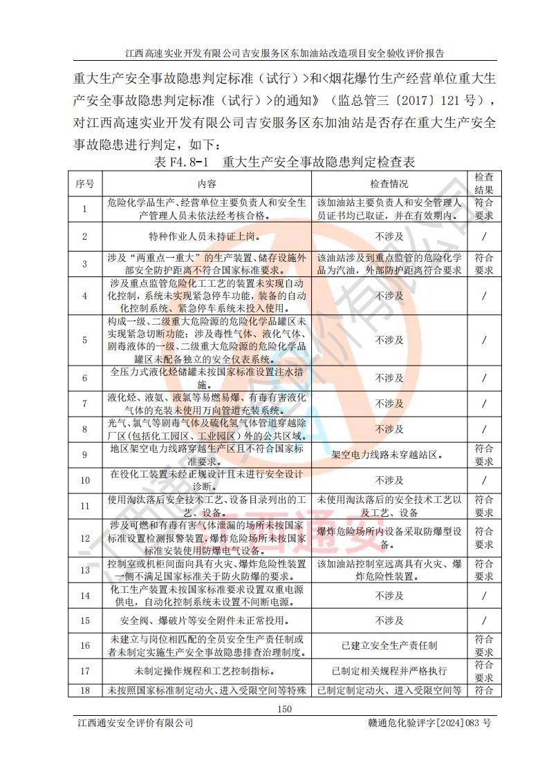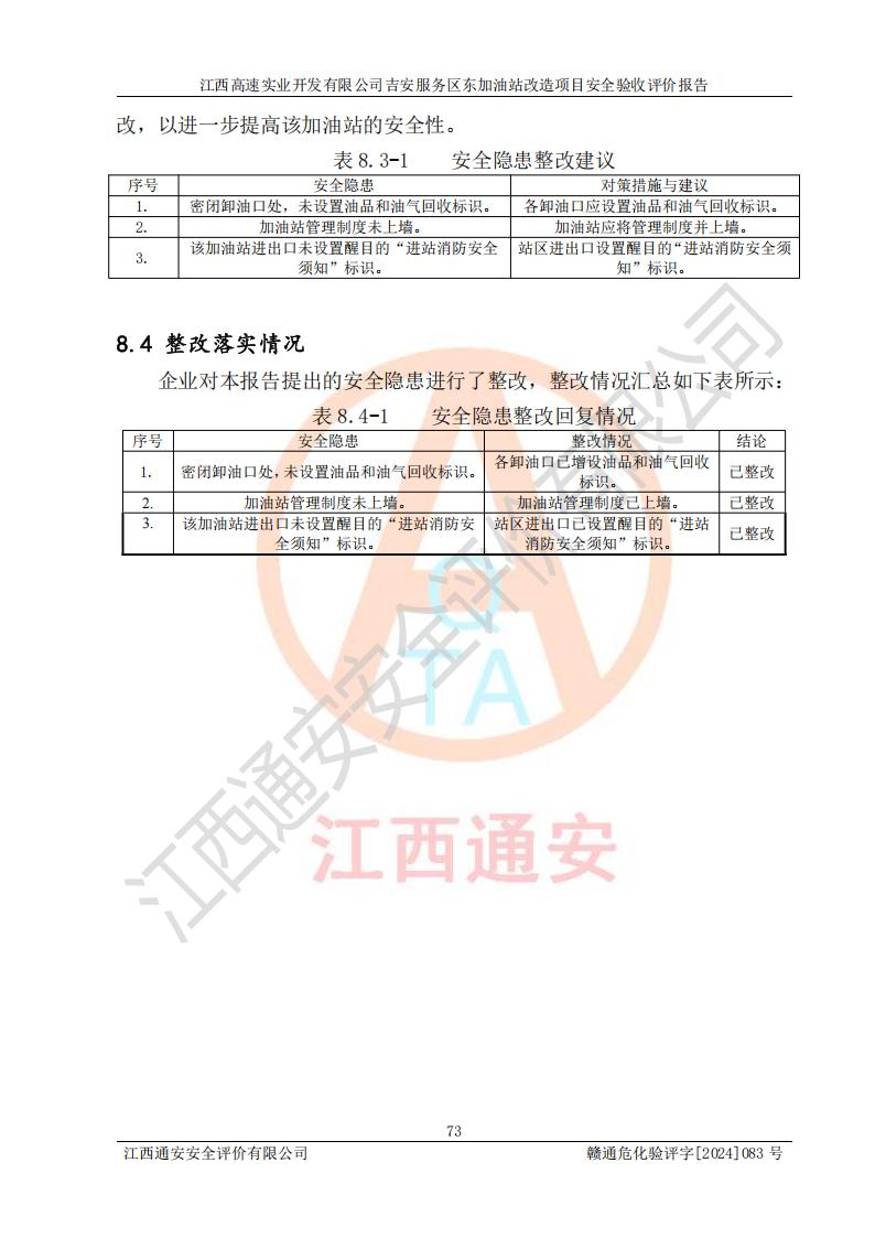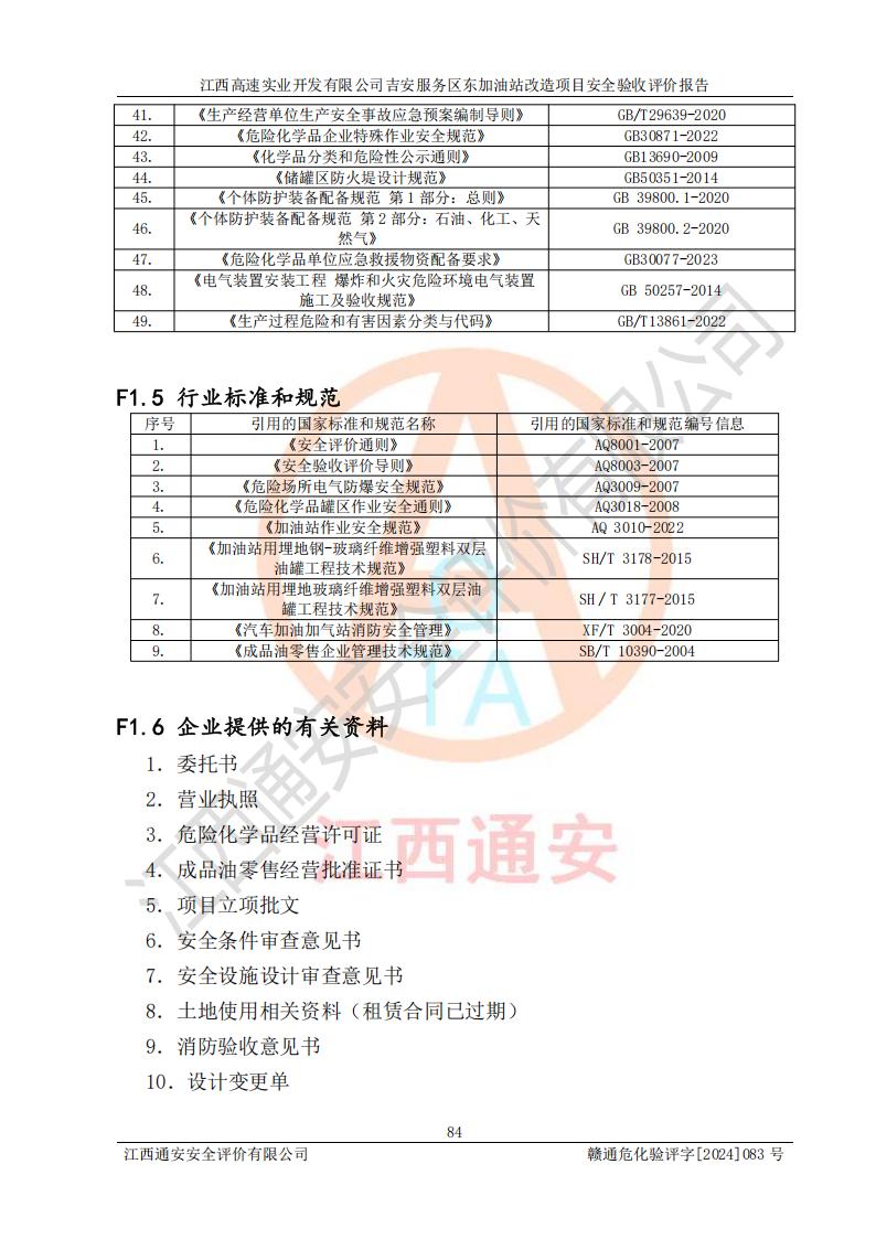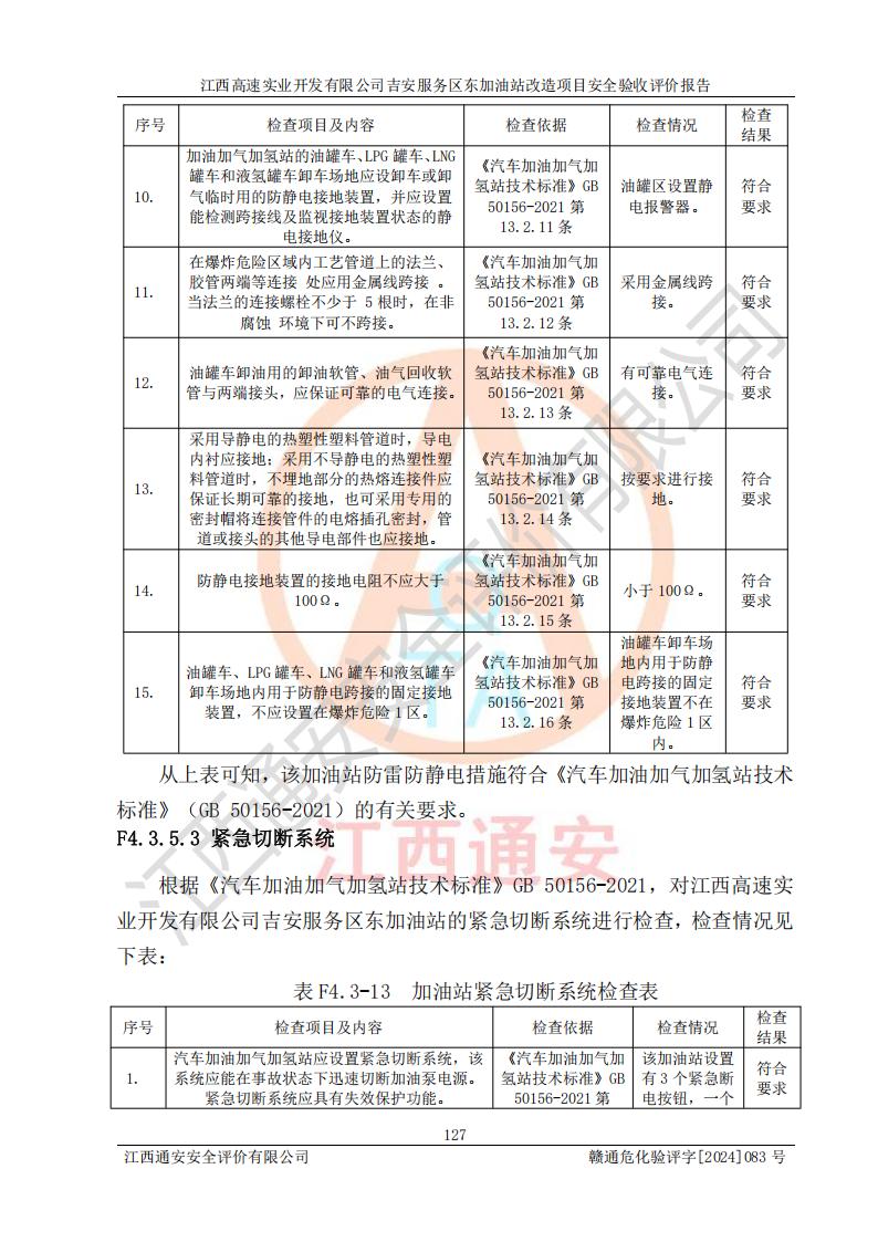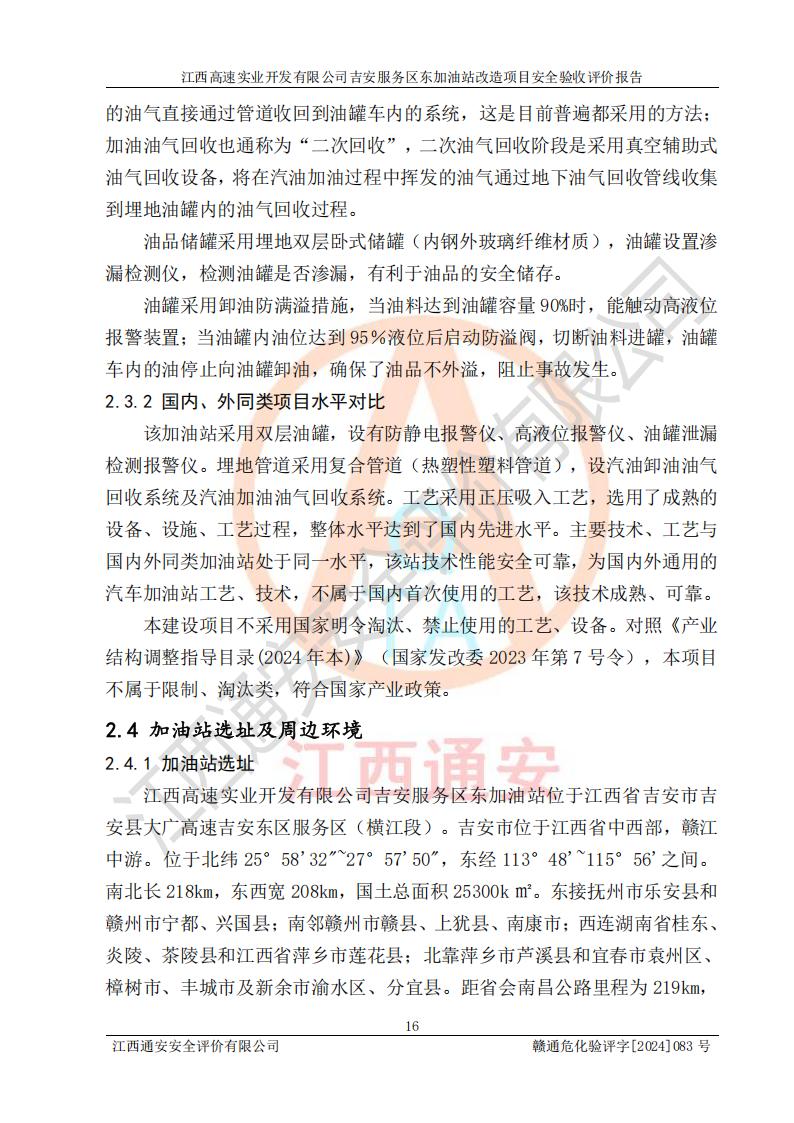 評(píng)價(jià)報(bào)告名稱(chēng) | 江西高速實(shí)業(yè)開(kāi)發(fā)有限公司吉安服務(wù)區(qū)東加油站改造項(xiàng)目安全驗(yàn)收狀評(píng)價(jià)報(bào)告 | |||