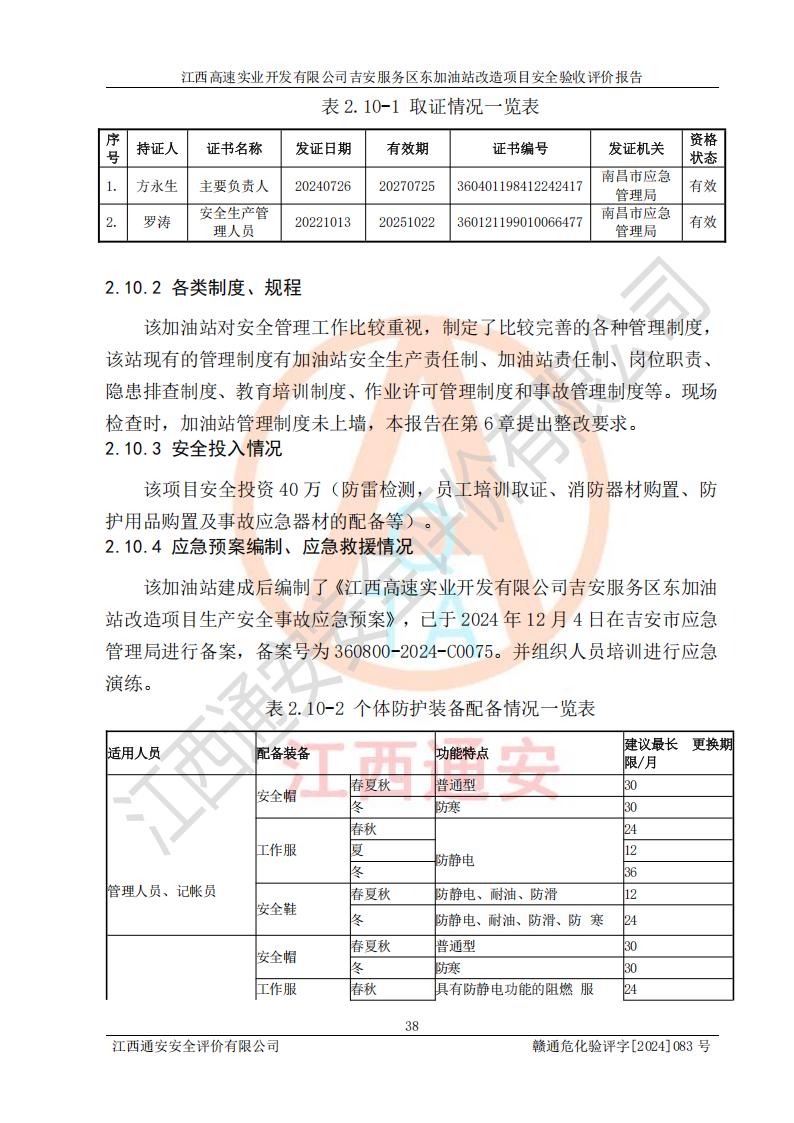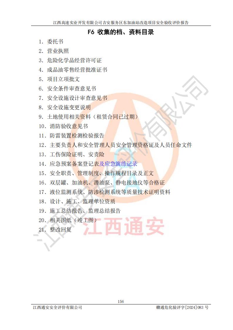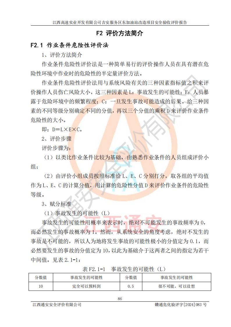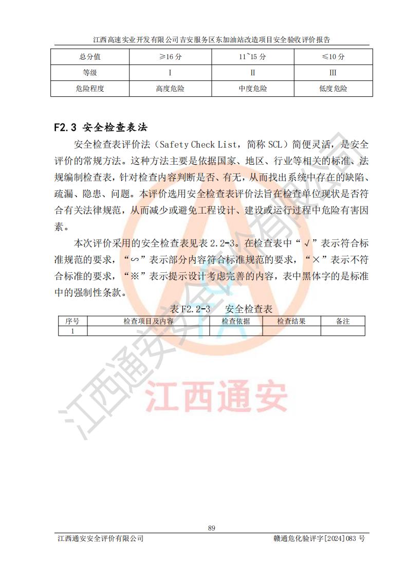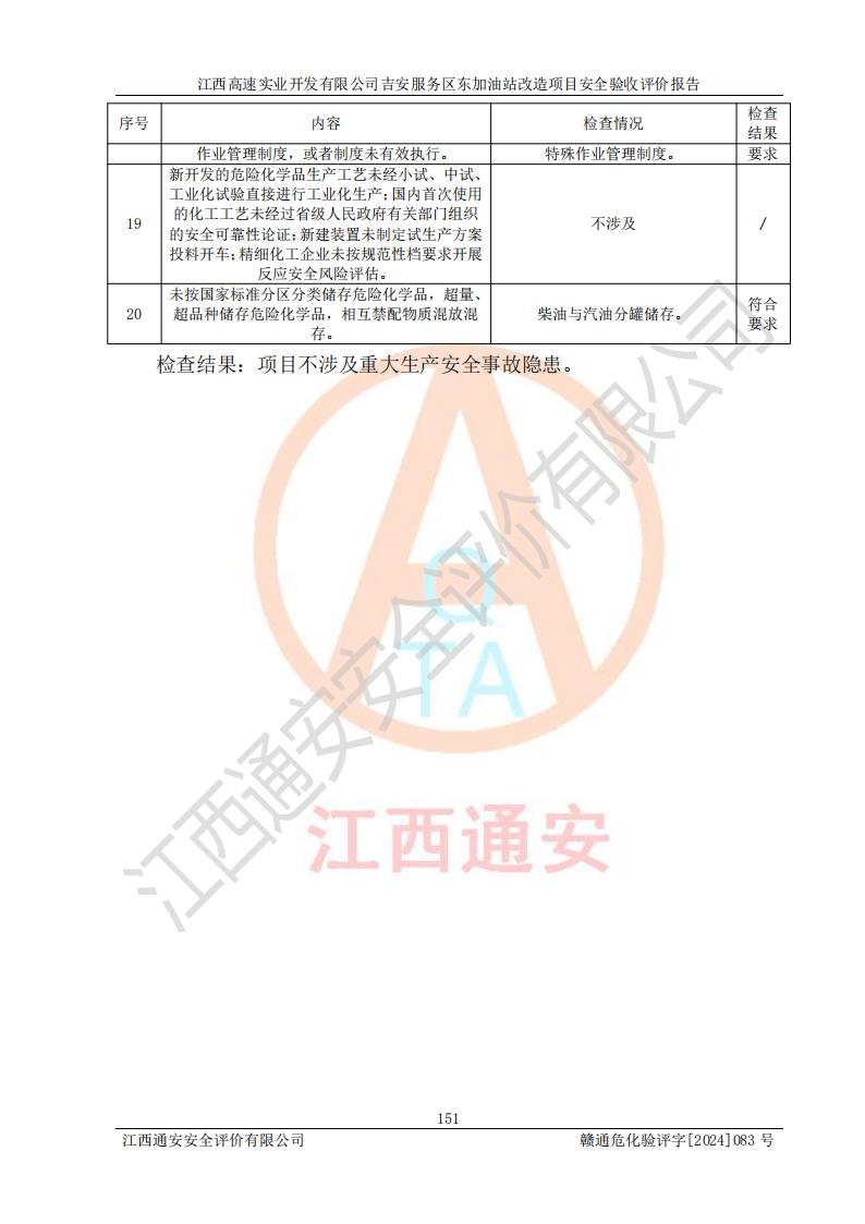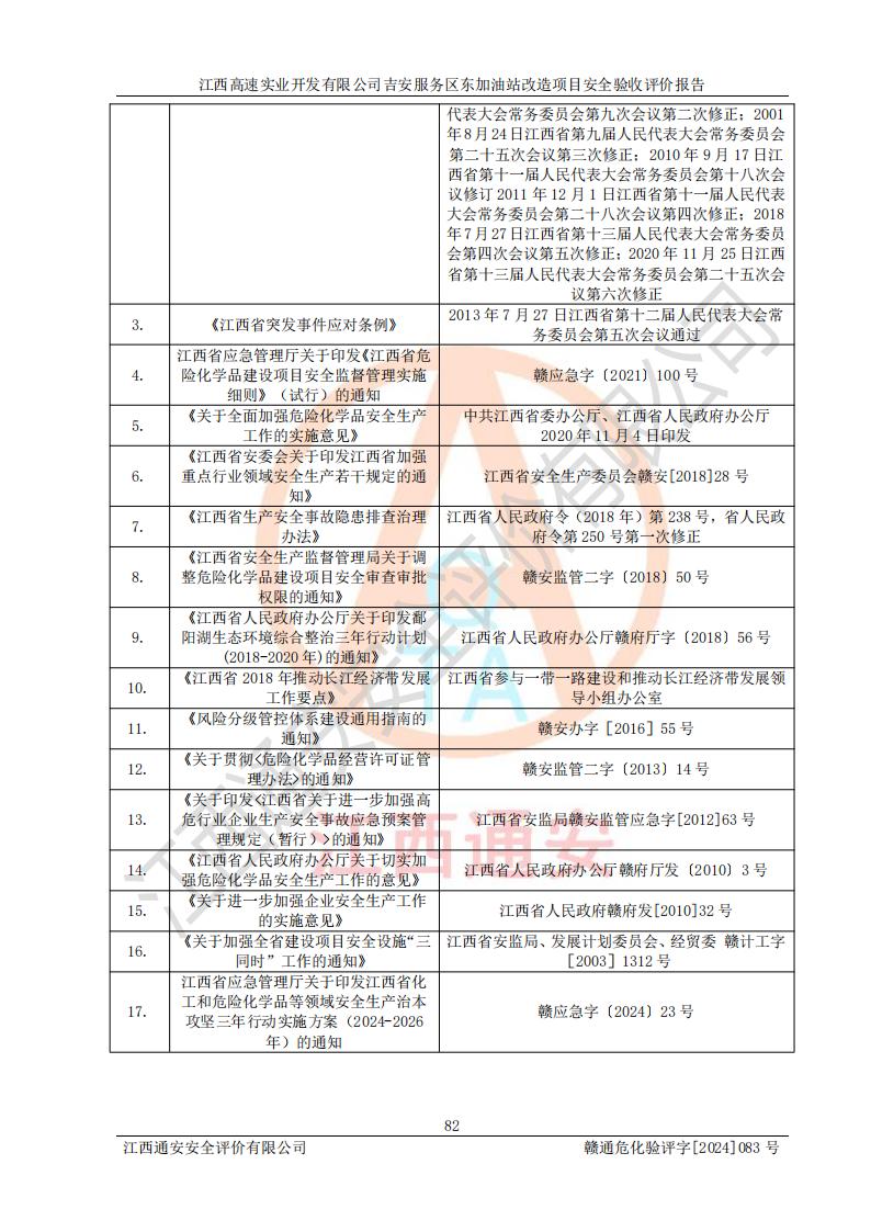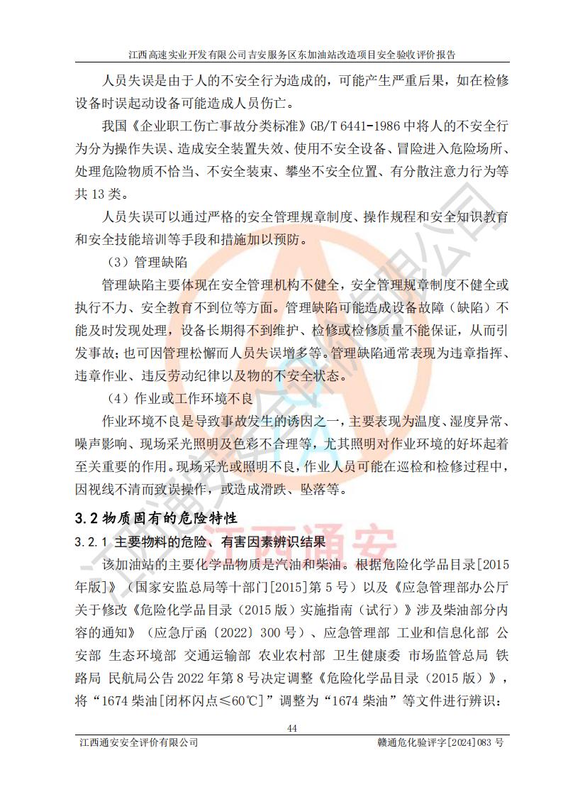 評(píng)價(jià)報(bào)告名稱(chēng) | 江西高速實(shí)業(yè)開(kāi)發(fā)有限公司吉安服務(wù)區(qū)東加油站改造項(xiàng)目安全驗(yàn)收狀評(píng)價(jià)報(bào)告 | |||