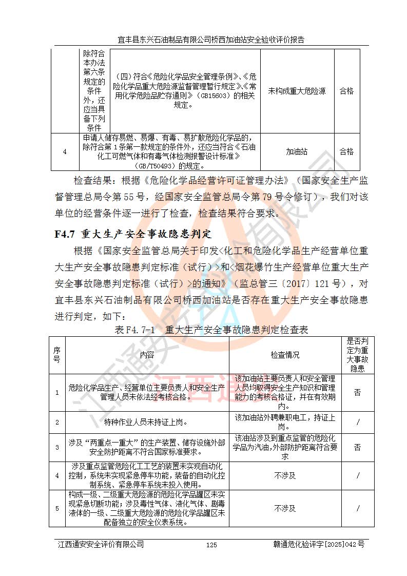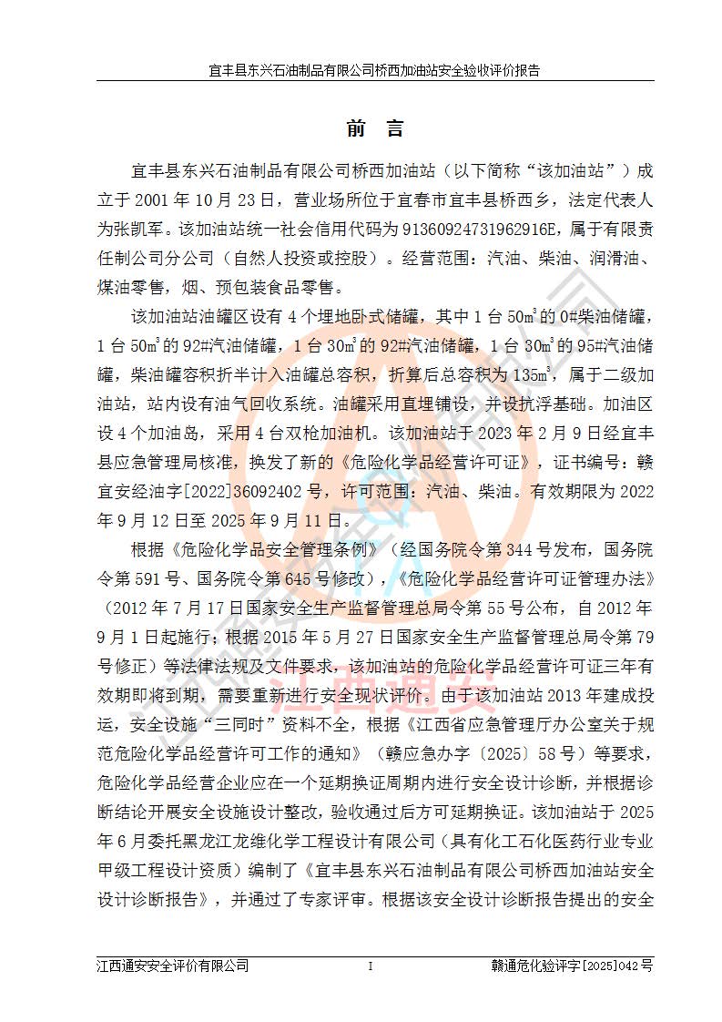 項目名稱 | 宜豐縣東興石油制品有限公司橋西加油站安全驗收評價 | ||||
