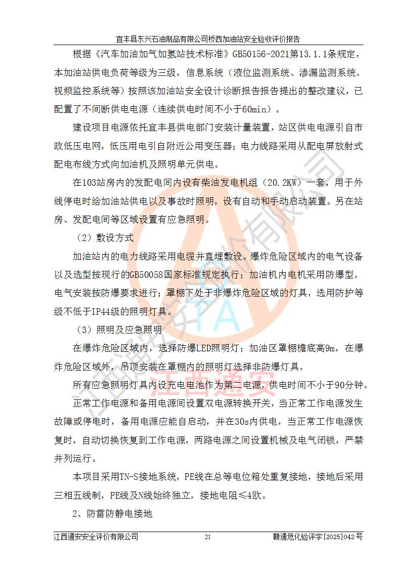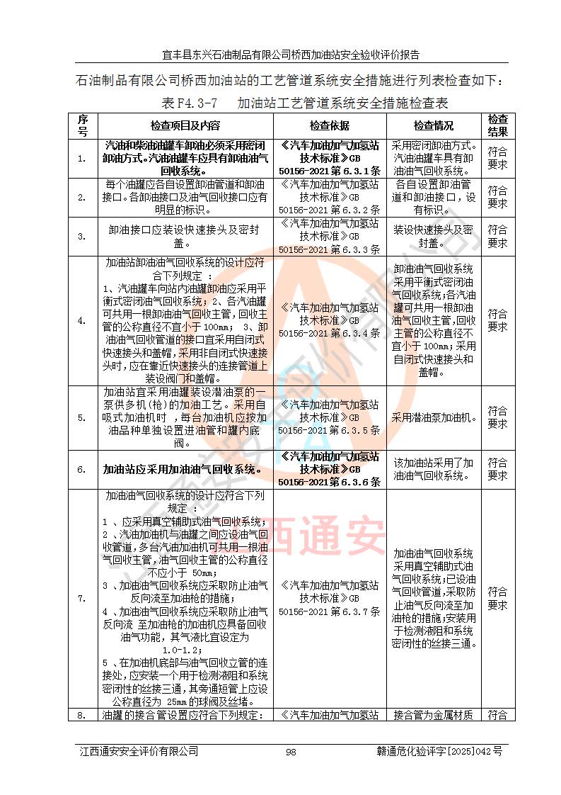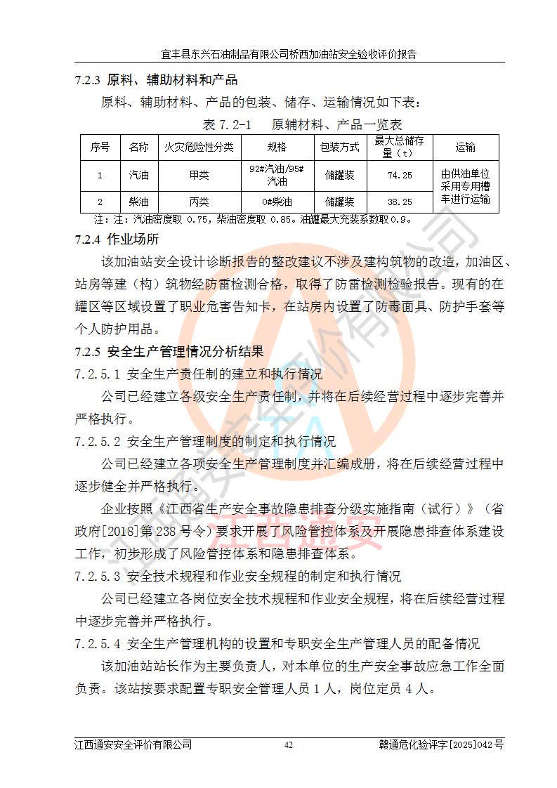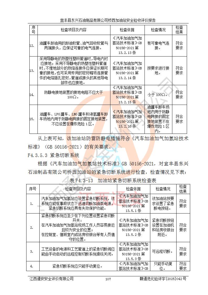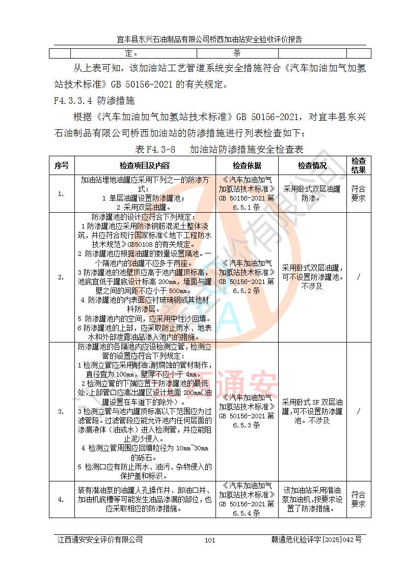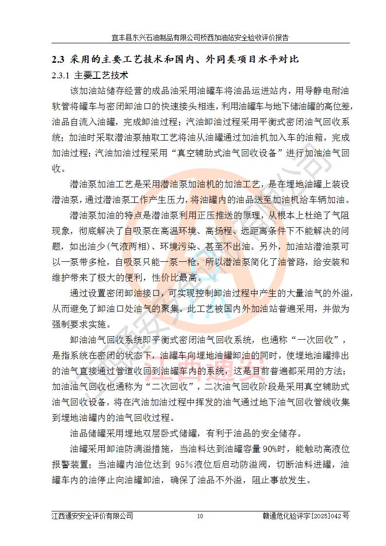 項目簡介 | 宜豐縣東興石油制品有限公司橋西加油站(以下簡稱“該加油站”)成立于2001年10月23日,營業(yè)場所位于宜春市宜豐縣橋西鄉(xiāng),法定**人為張凱軍。該加油站統(tǒng)一社會信用代碼為91360924731962916E,屬于有限責任制公司分公司(自然人投資或控股)。經(jīng)營范圍:汽油、柴油、潤滑油、煤油零售,煙、預(yù)包裝食品零售。 該加油站油罐區(qū)設(shè)有4個埋地臥式儲罐,其中1臺50m3的0#柴油儲罐,1臺50m3的92#汽油儲罐,1臺30m3的92#汽油儲罐,1臺30m3的95#汽油儲罐,柴油罐容積折半計入油罐總?cè)莘e,折算后總?cè)莘e為135m3,屬于二級加油站,站內(nèi)設(shè)有油氣回收系統(tǒng)。油罐采用直埋鋪設(shè),并設(shè)抗浮基礎(chǔ)。加油區(qū)設(shè)4個加油島,采用4臺雙槍加油機。該加油站于2023年2月9日經(jīng)宜豐縣應(yīng)急管理局核準,換發(fā)了新的《危險化學品經(jīng)營許可證》,證書編號:贛宜安經(jīng)油字[2022]36092402號,許可范圍:汽油、柴油。**期限為2022年9月12日至2025年9月11日。 根據(jù)《危險化學品安全管理條例》(經(jīng)***令第344號發(fā)布,***令第591號、***令第645號修改),《危險化學品經(jīng)營許可證管理辦法》(2012年7月17日**安全生產(chǎn)監(jiān)督管理總局令第55號公布,自2012年9月1日起施行;根據(jù)2015年5月27日**安全生產(chǎn)監(jiān)督管理總局令第79號修正)等法律法規(guī)及文件要求,該加油站的危險化學品經(jīng)營許可證三年**期即將到期,需要重新進行安全現(xiàn)狀評價。由于該加油站2013年建成投運,安全設(shè)施“三同時”資料不全,根據(jù)《江西省應(yīng)急管理廳辦公室關(guān)于規(guī)范危險化學品經(jīng)營許可工作的通知》(贛應(yīng)急辦字〔2025〕58號)等要求,危險化學品經(jīng)營企業(yè)應(yīng)在一個延期換證周期內(nèi)進行安全設(shè)計診斷,并根據(jù)診斷結(jié)論開展安全設(shè)施設(shè)計整改,驗收通過后方可延期換證。該加油站于2025年6月委托黑龍江龍維化學工程設(shè)計有限公司(具有化工石化醫(yī)藥行業(yè)專業(yè)**工程設(shè)計資質(zhì))編制了《宜豐縣東興石油制品有限公司橋西加油站安全設(shè)計診斷報告》,并通過了專家評審。根據(jù)該安全設(shè)計診斷報告提出的安全隱患及整改建議,該加油站及時進行了整改,目前已整改到位,具備安全設(shè)施驗收條件。