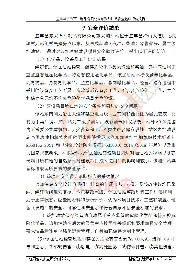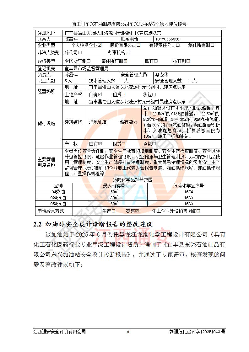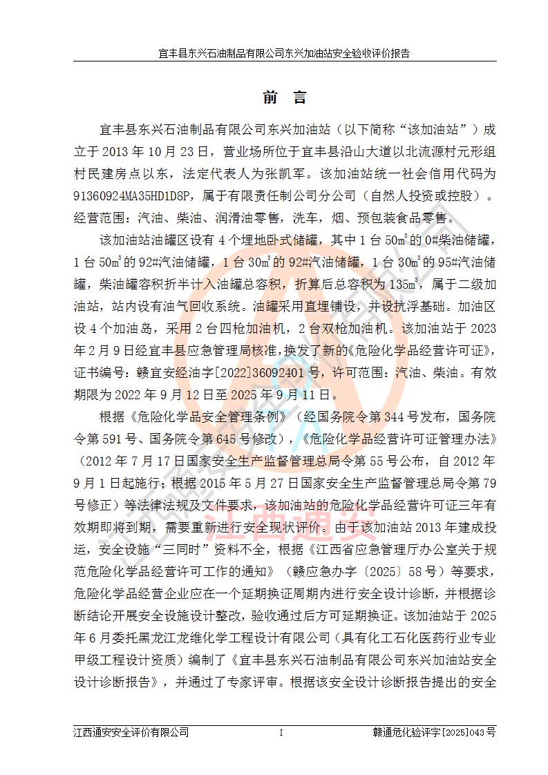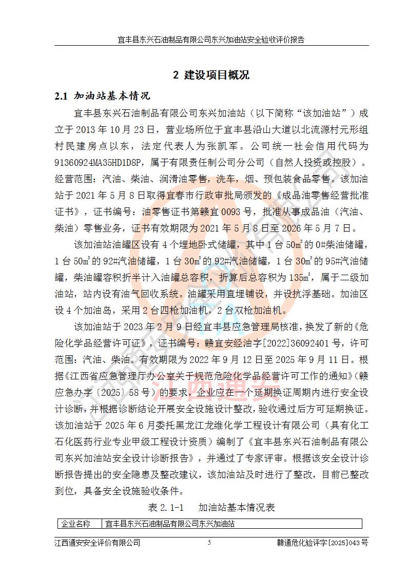 項目名稱 | 宜豐縣東興石油制品有限公司東興加油站安全驗收評價 | ||||