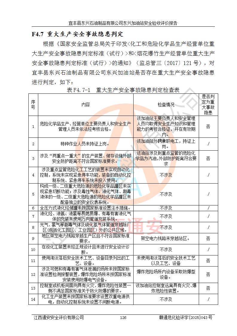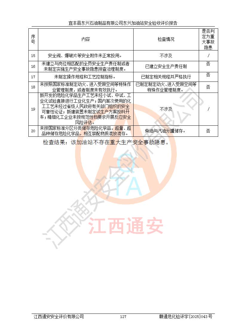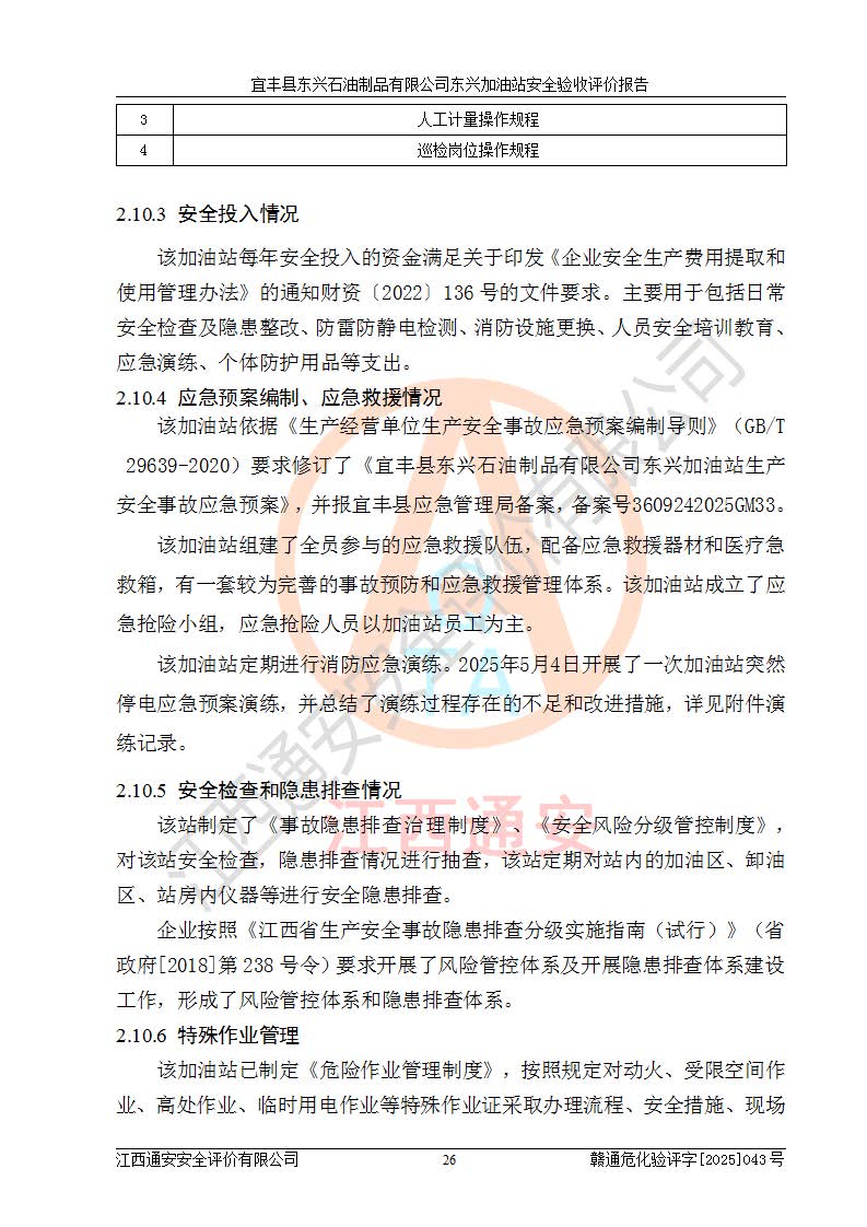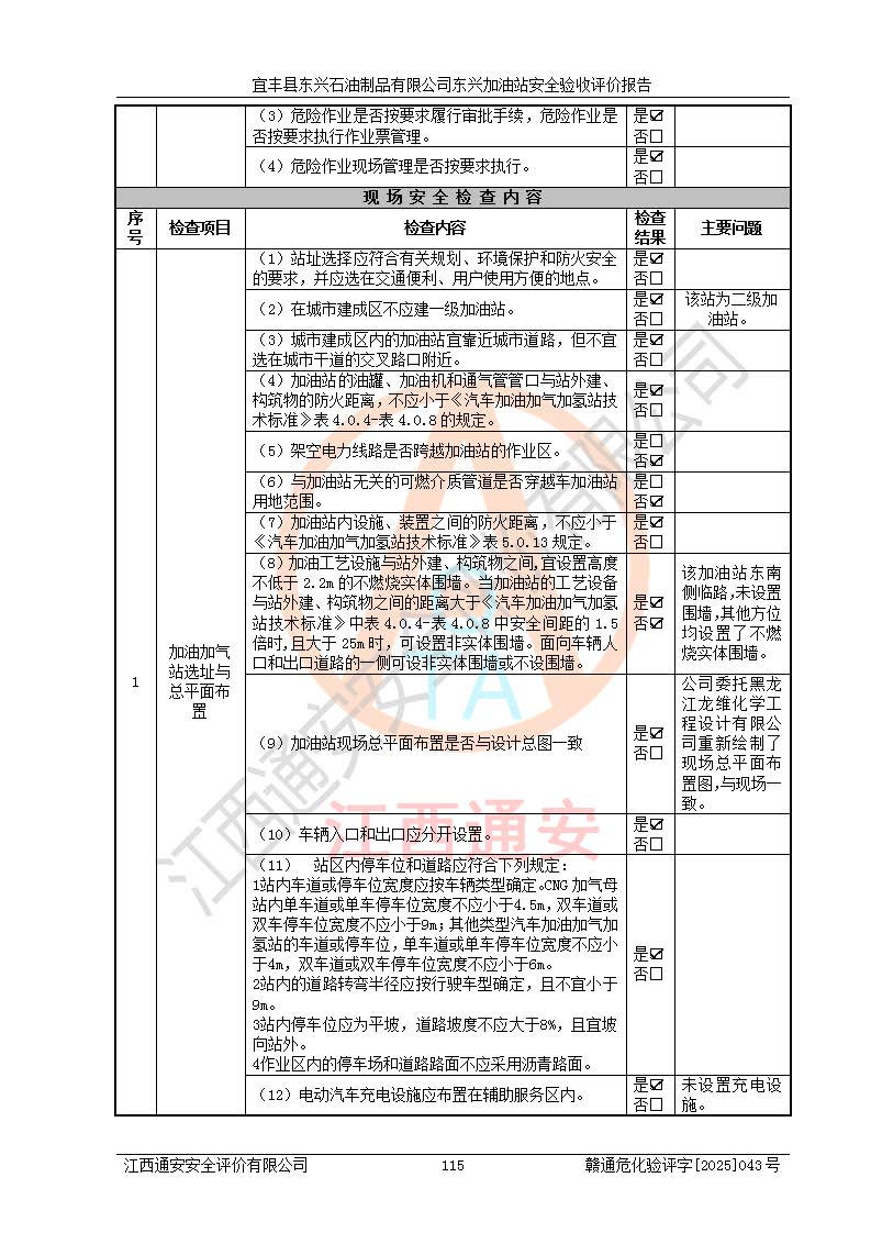 項目名稱 | 宜豐縣東興石油制品有限公司東興加油站安全驗收評價 | ||||