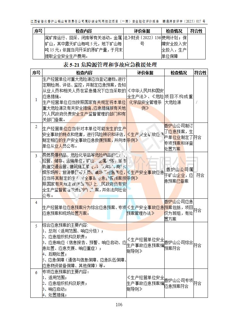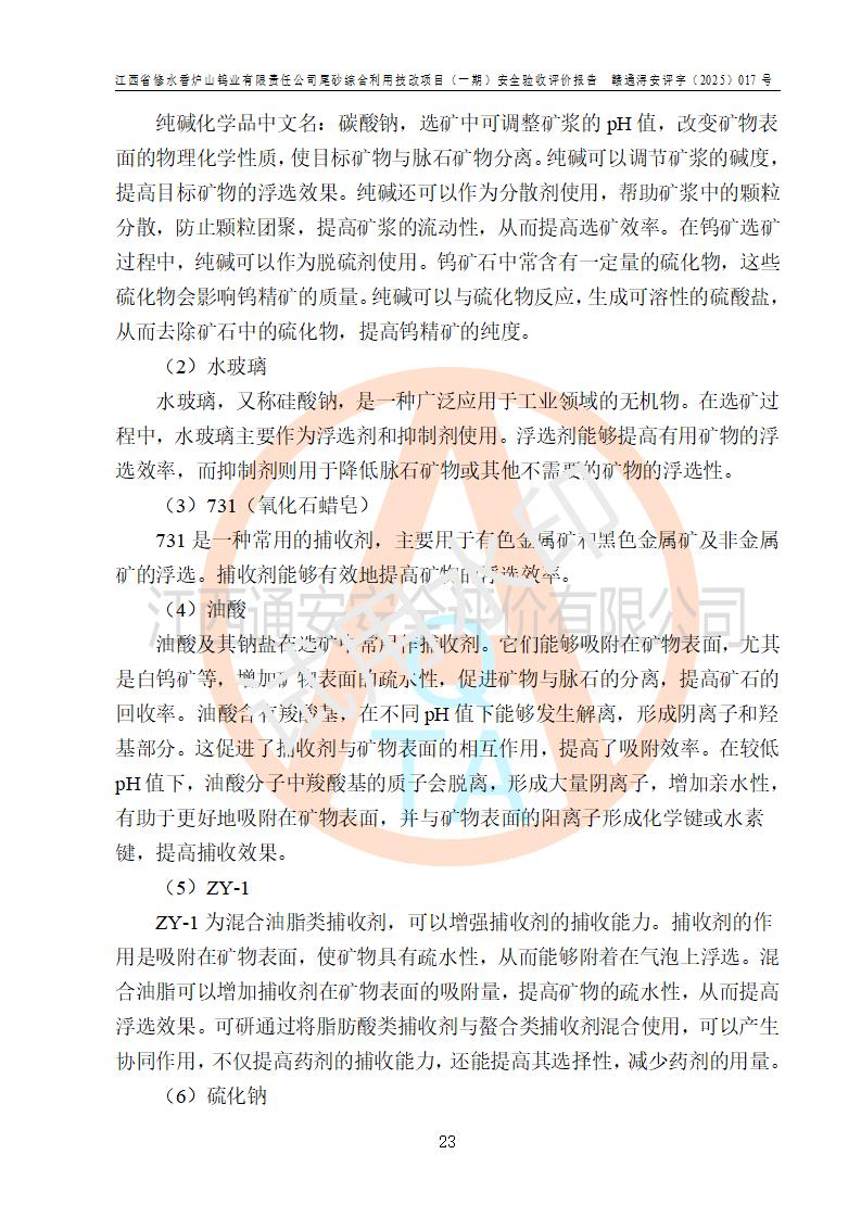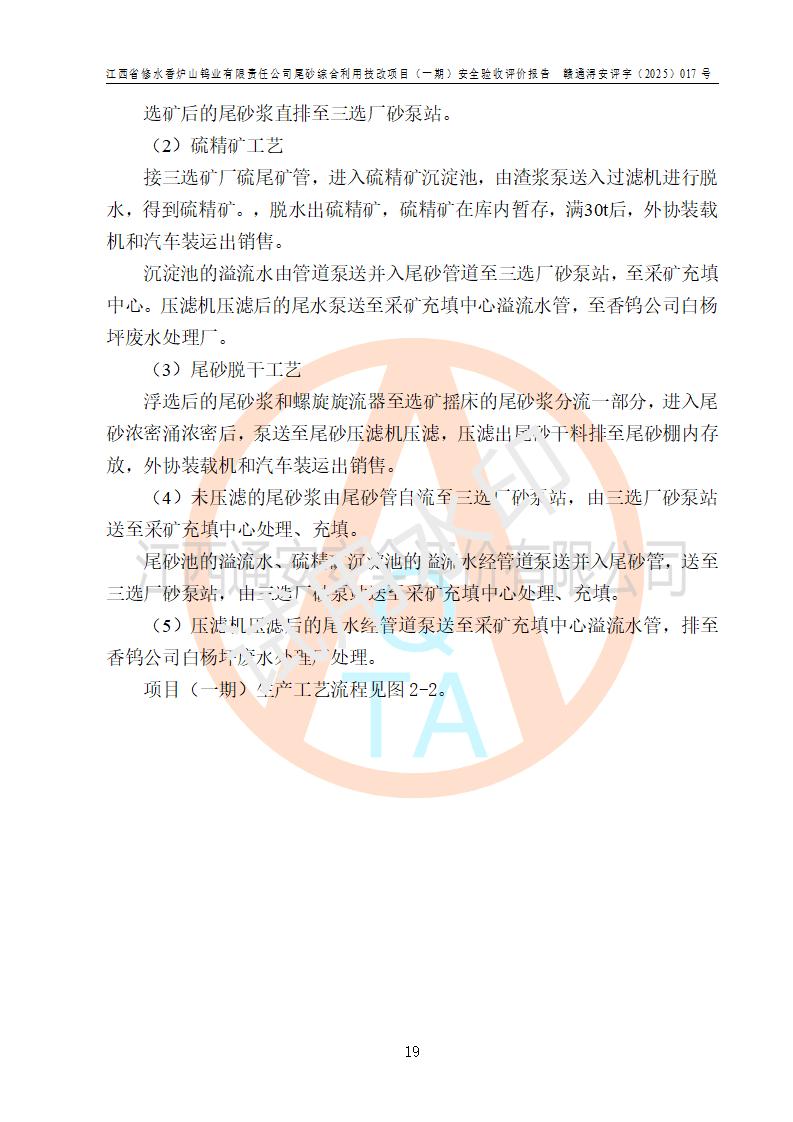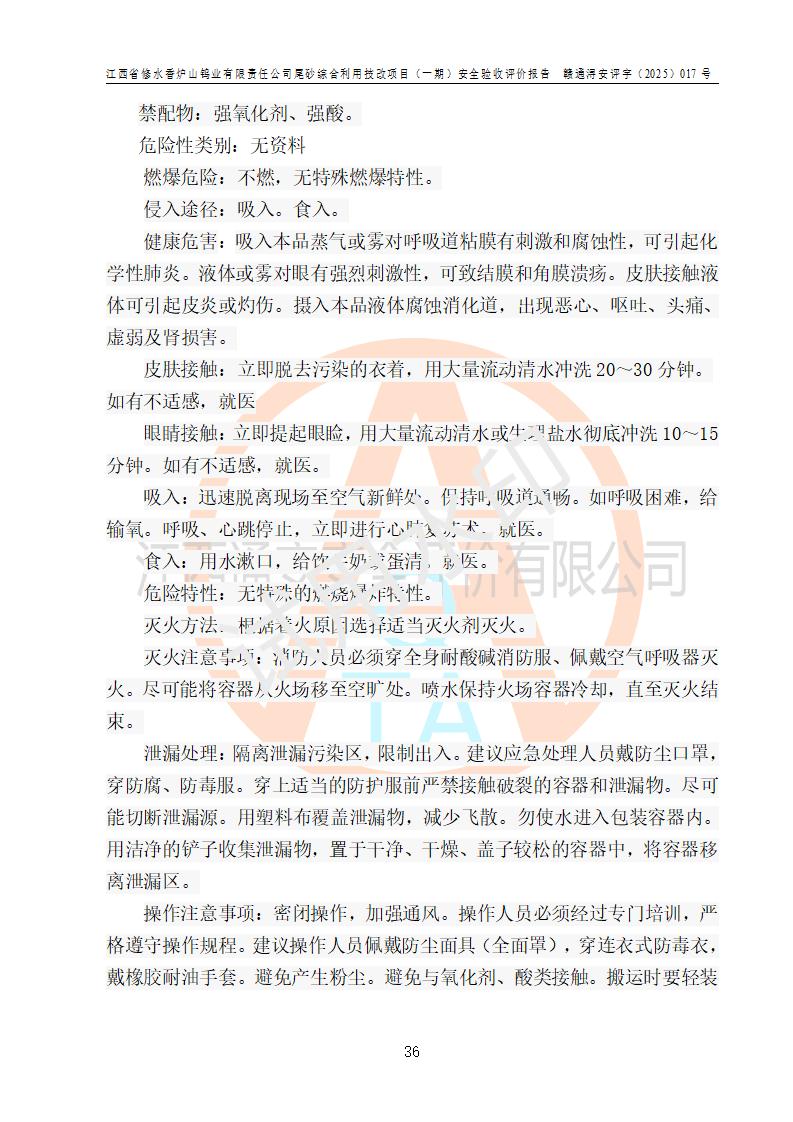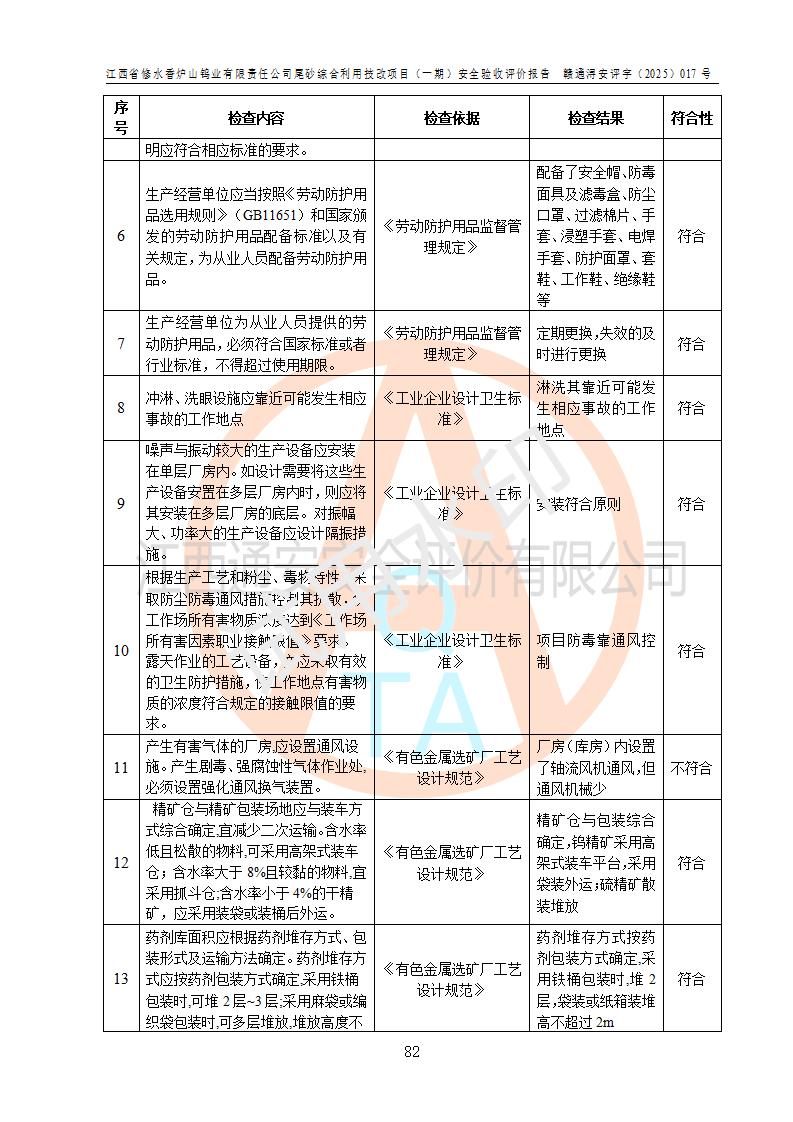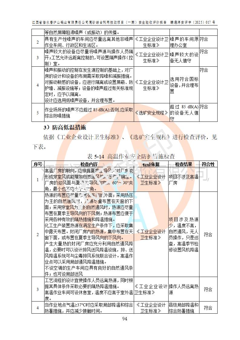 評價報告名稱 | 江西省修水香爐山鎢業(yè)有限責任公司尾砂綜合利用技改項目(一期)安全驗收評價報告 | |||||