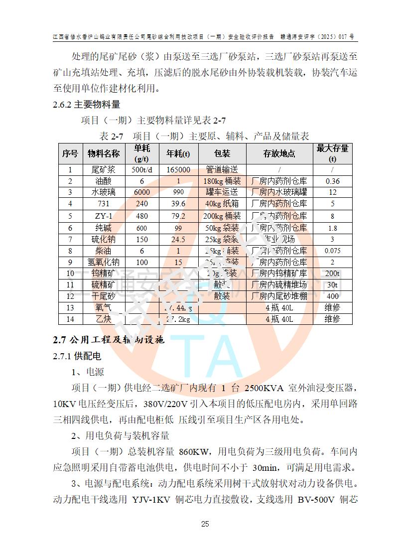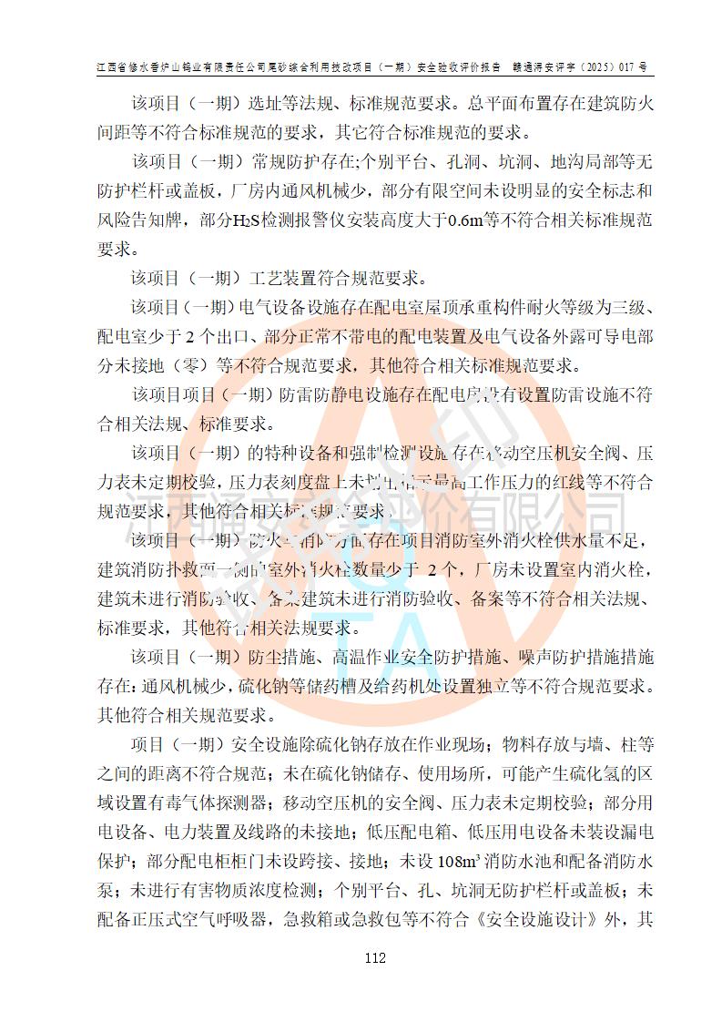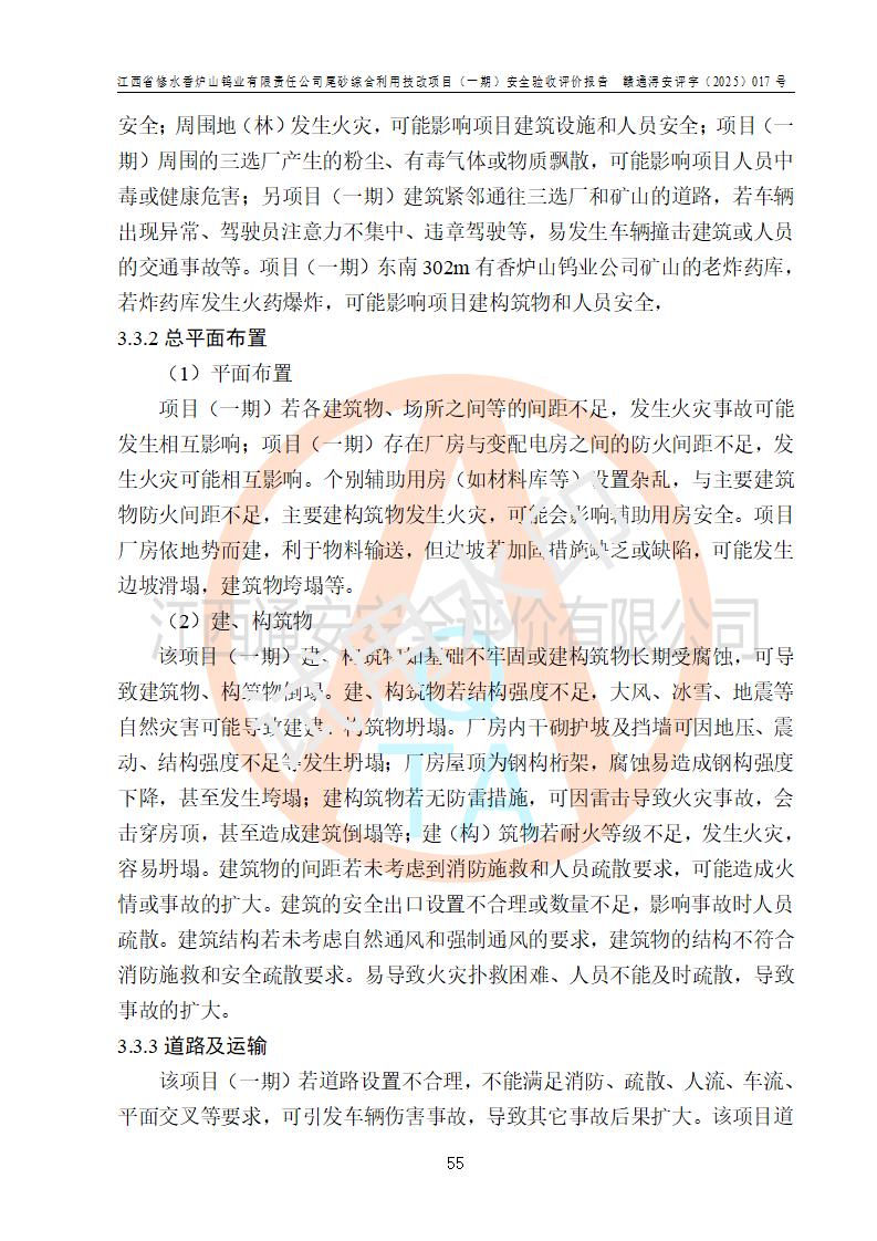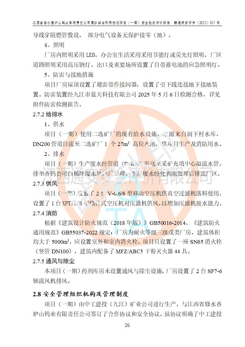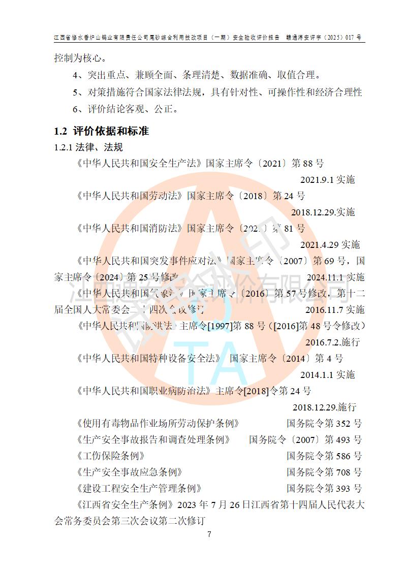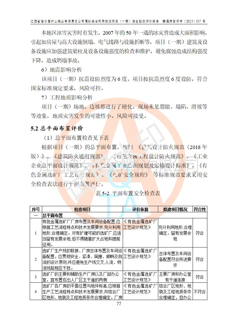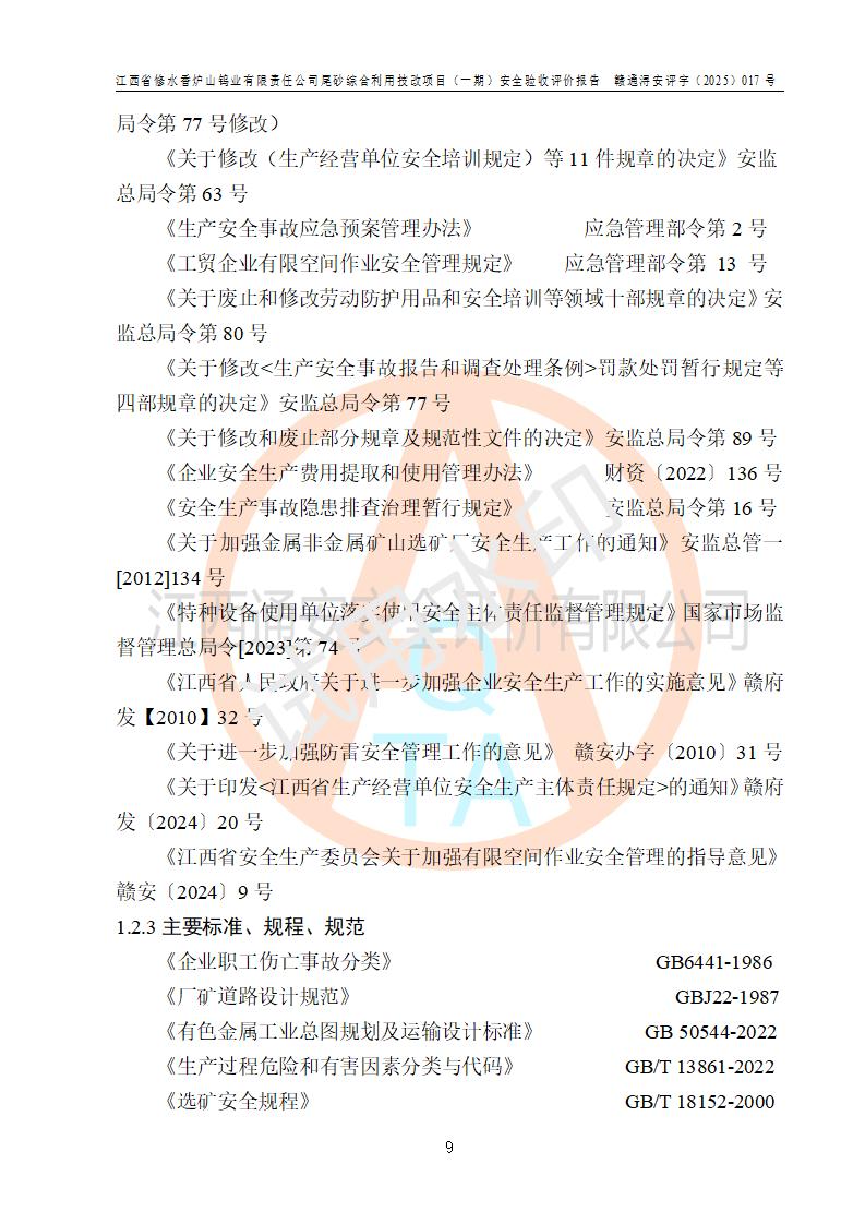 評價報告名稱 | 江西省修水香爐山鎢業(yè)有限責任公司尾砂綜合利用技改項目(一期)安全驗收評價報告 | |||||