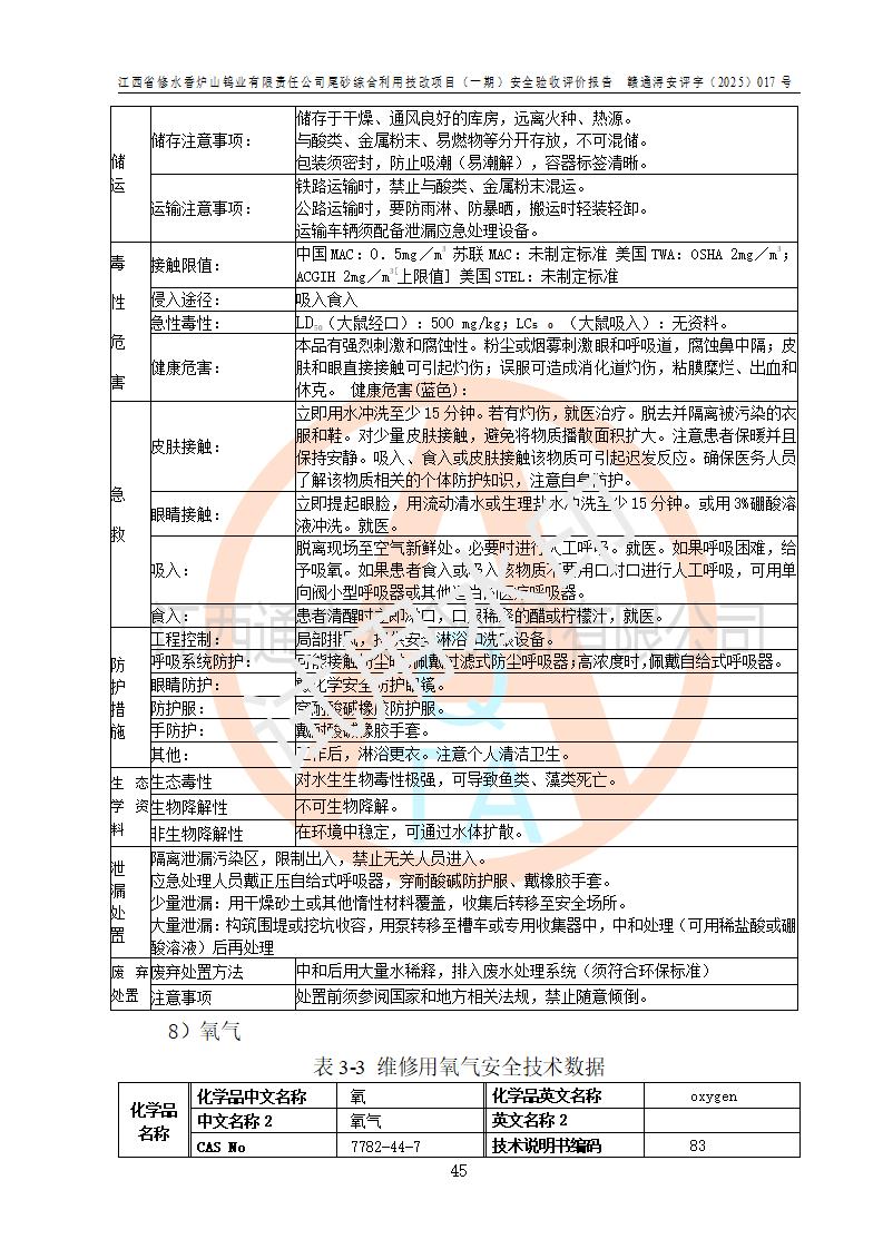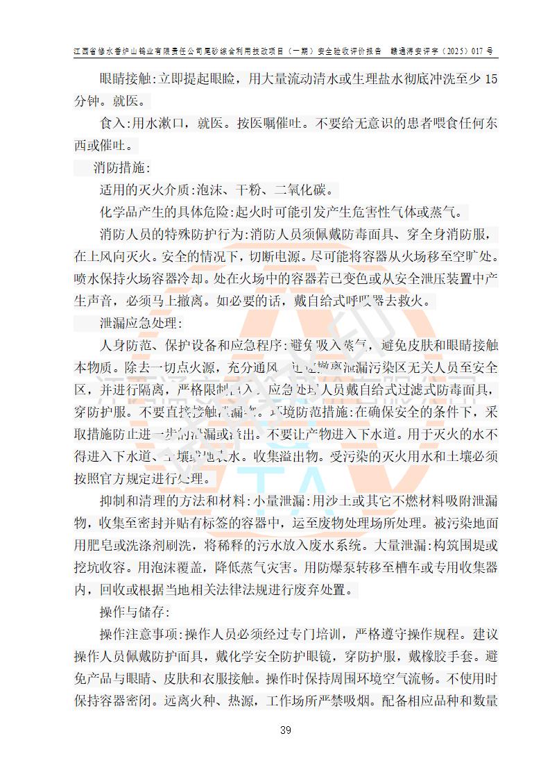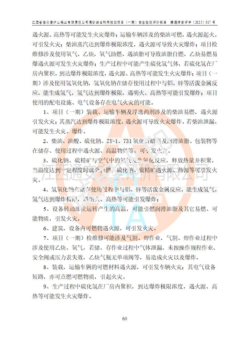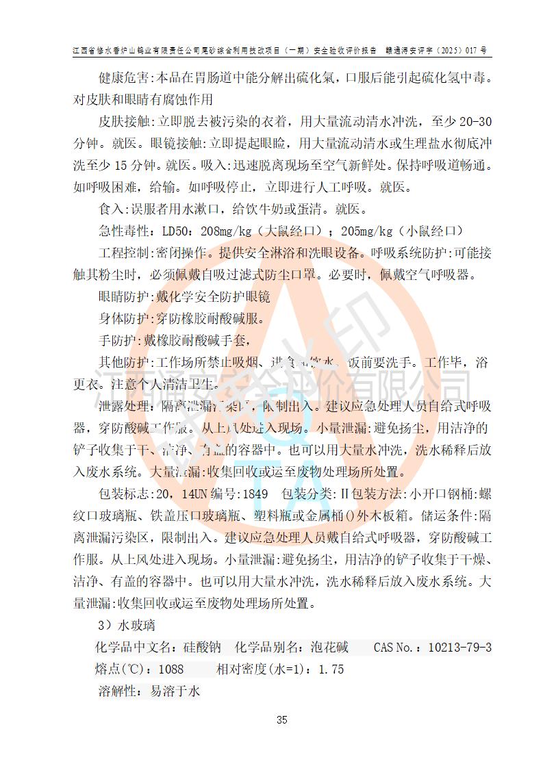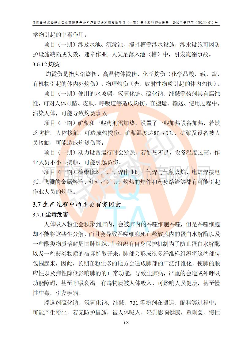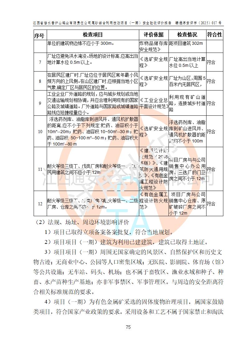評價報告名稱 | 江西省修水香爐山鎢業(yè)有限責任公司尾砂綜合利用技改項目(一期)安全驗收評價報告 | |||||