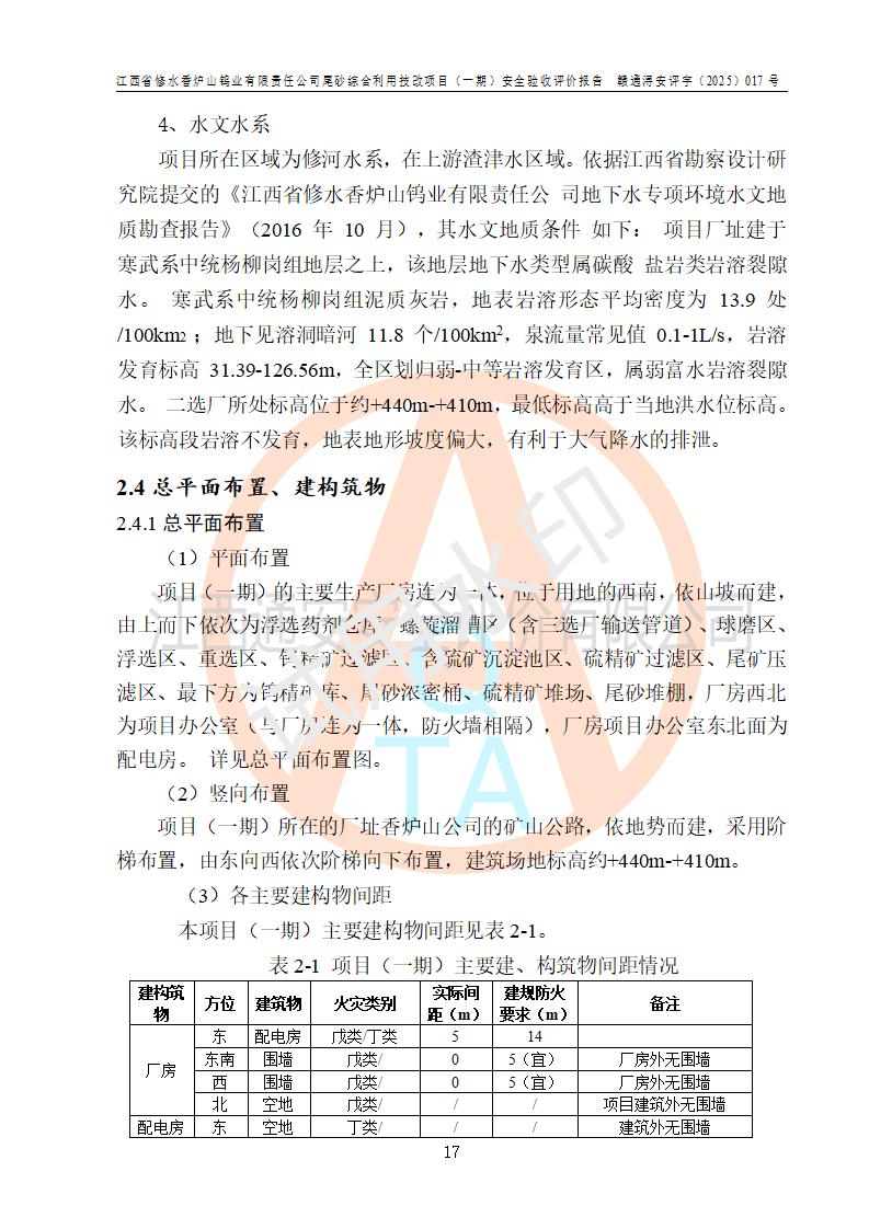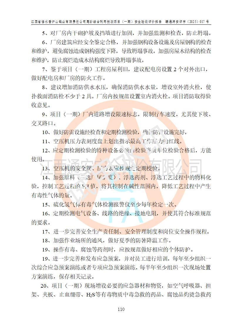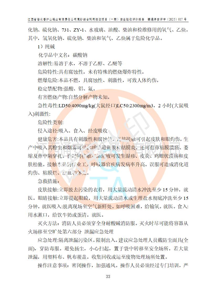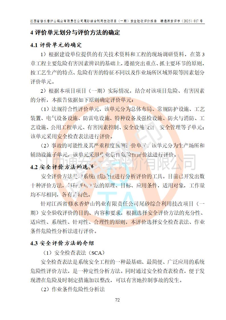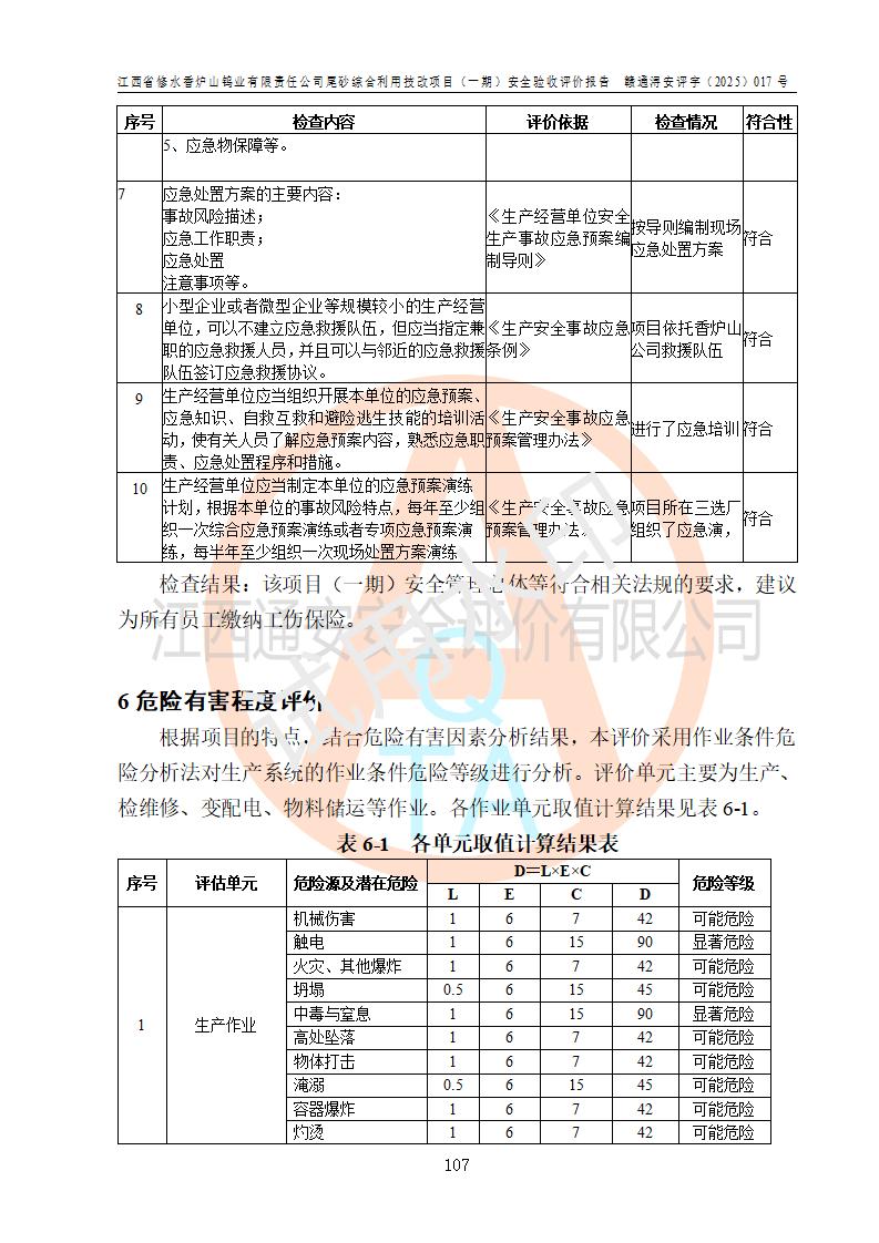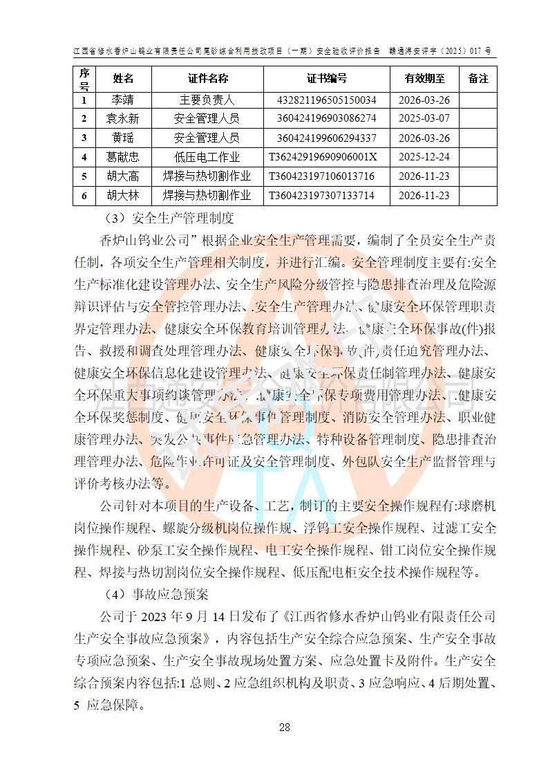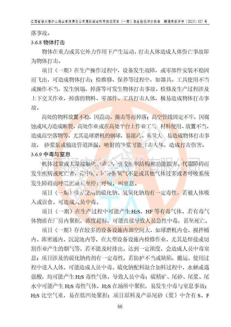 評價報告名稱 | 江西省修水香爐山鎢業(yè)有限責任公司尾砂綜合利用技改項目(一期)安全驗收評價報告 | |||||