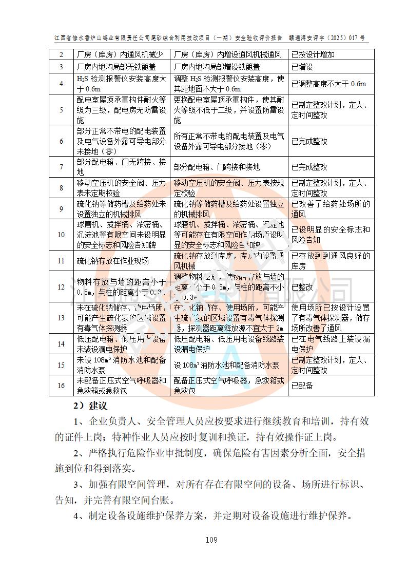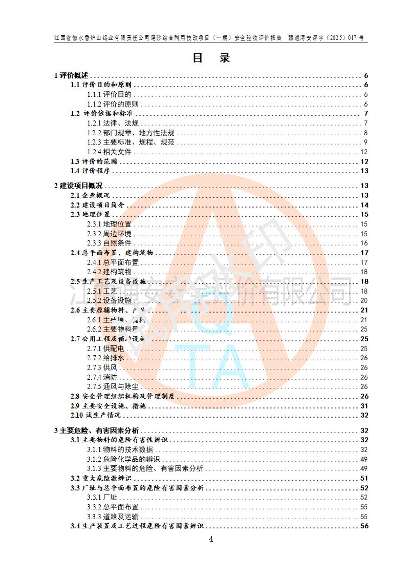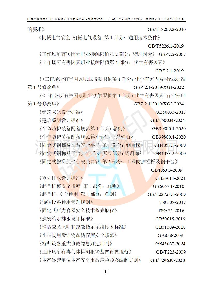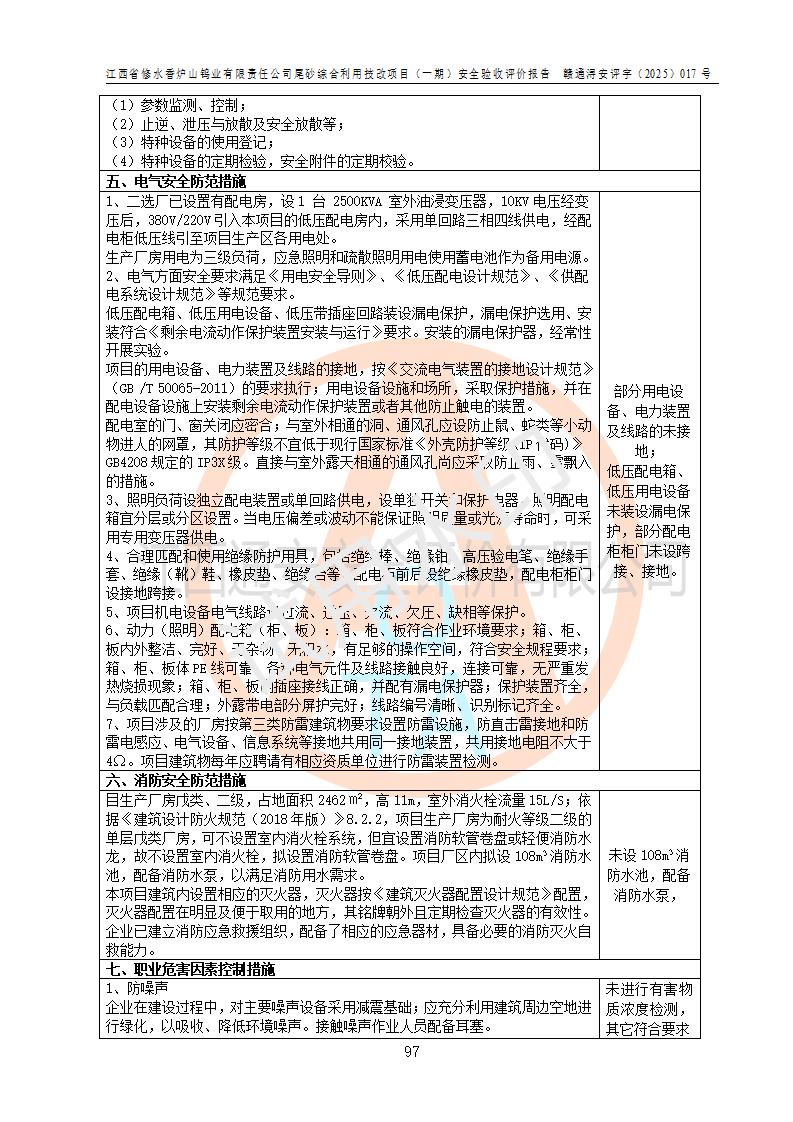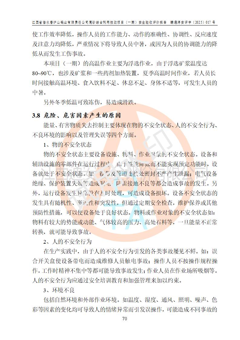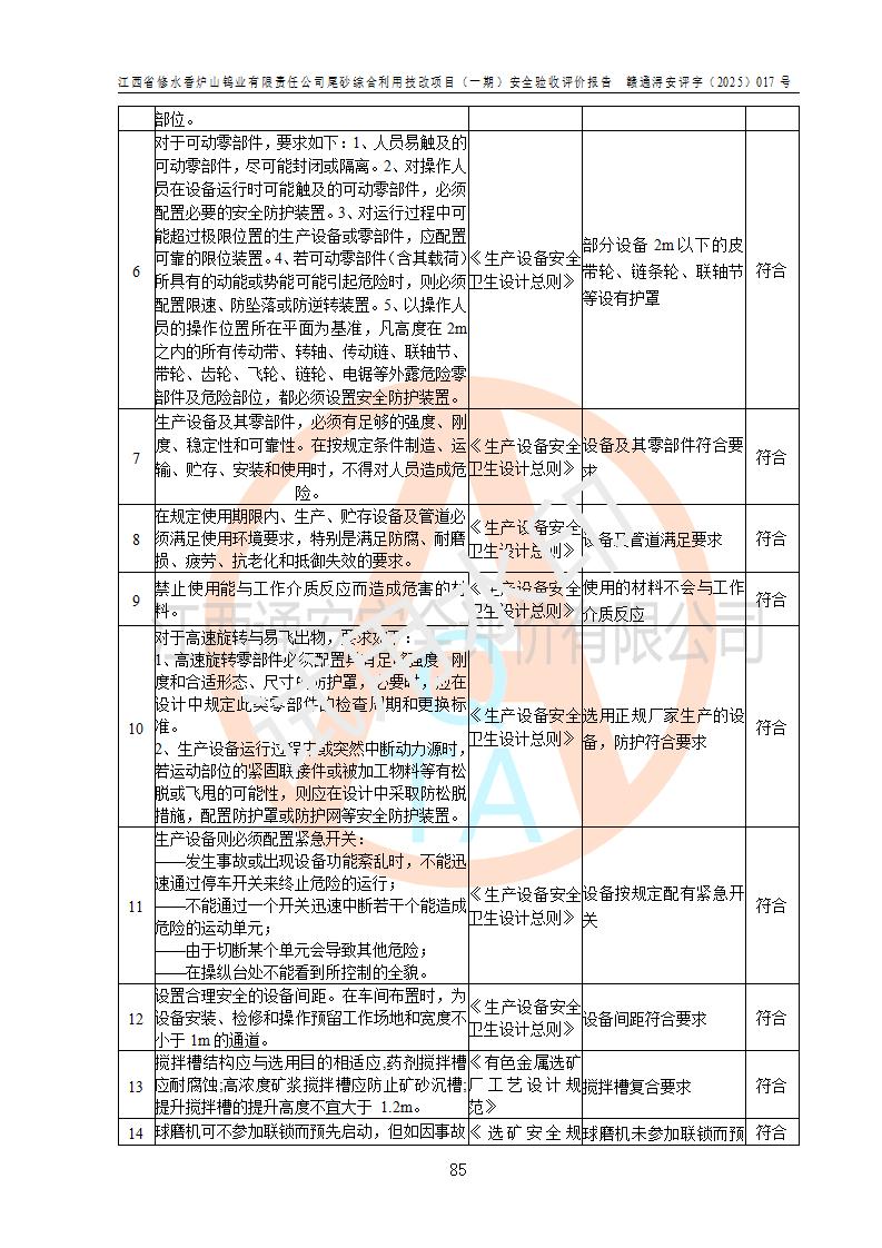 評價報告名稱 | 江西省修水香爐山鎢業(yè)有限責任公司尾砂綜合利用技改項目(一期)安全驗收評價報告 | |||||