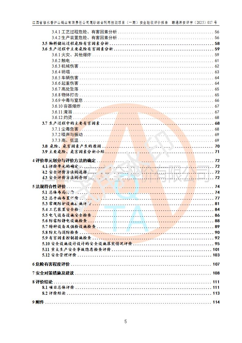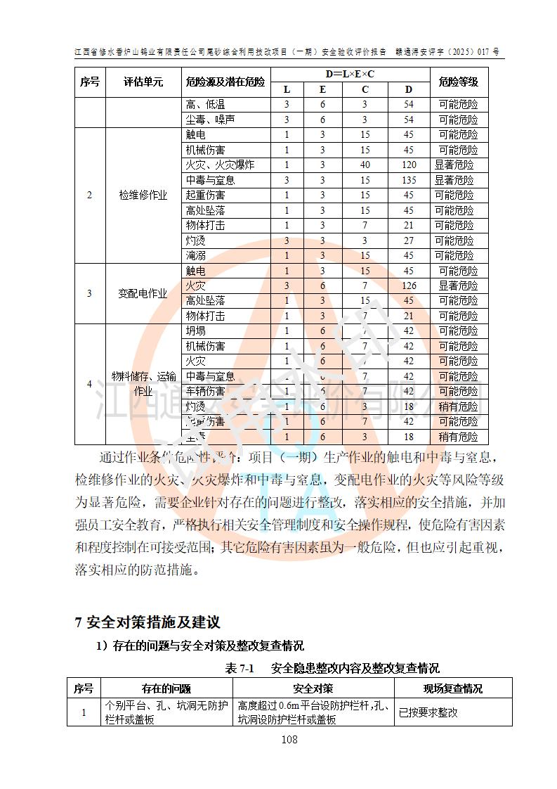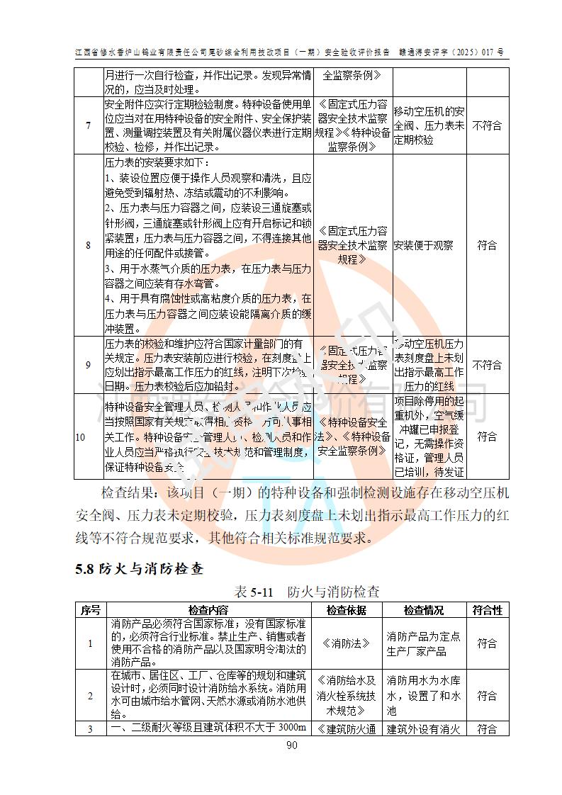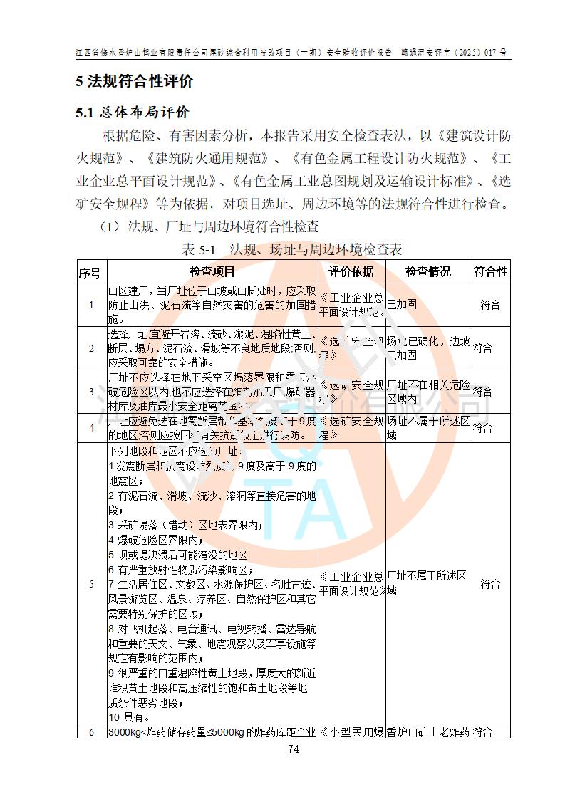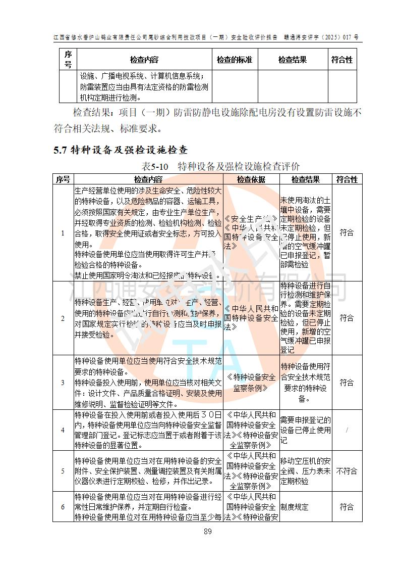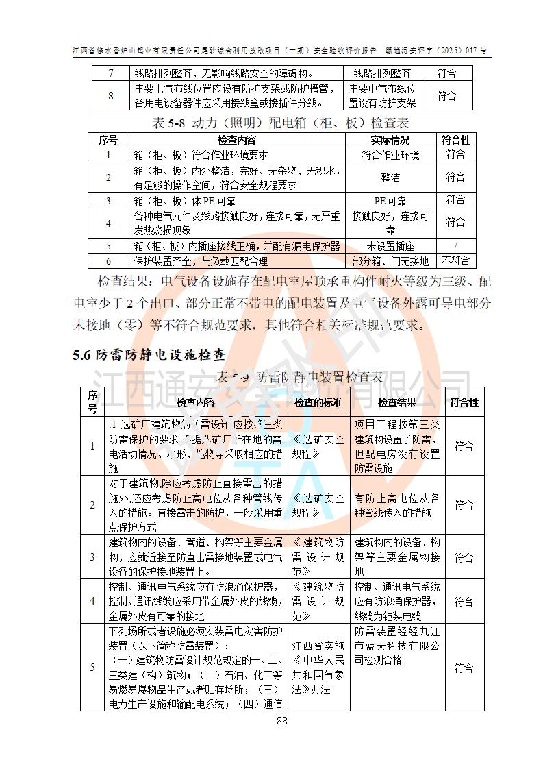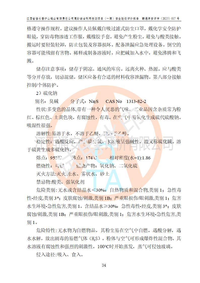 評價報告名稱 | 江西省修水香爐山鎢業(yè)有限責任公司尾砂綜合利用技改項目(一期)安全驗收評價報告 | |||||