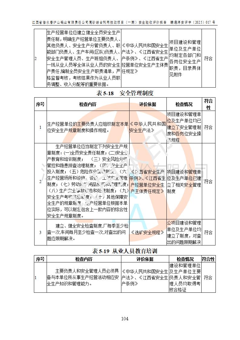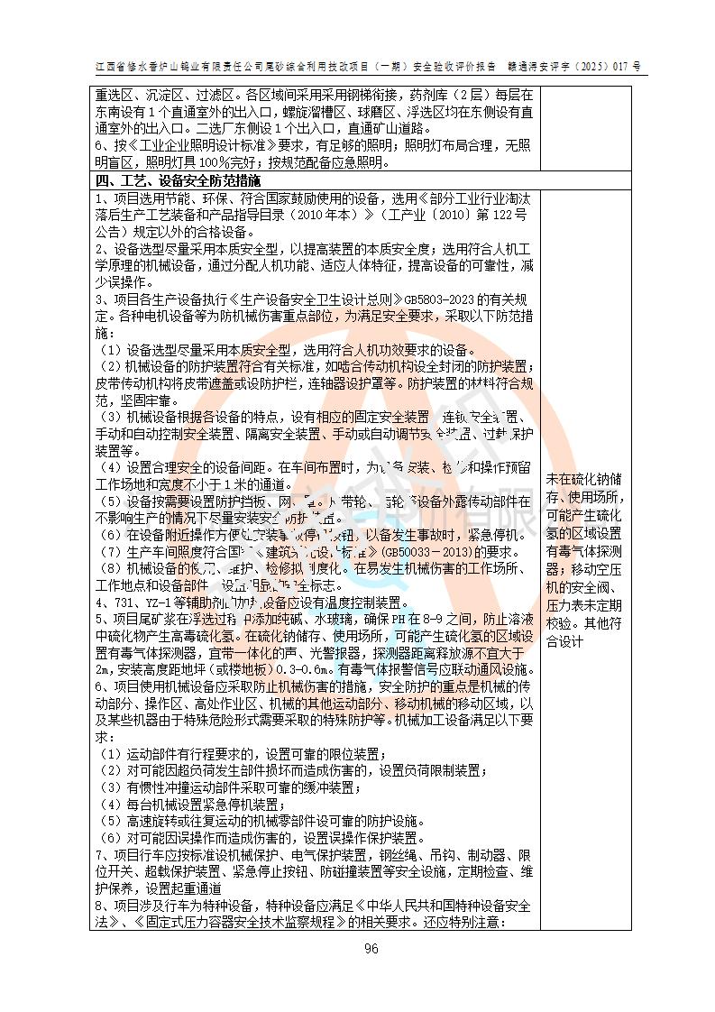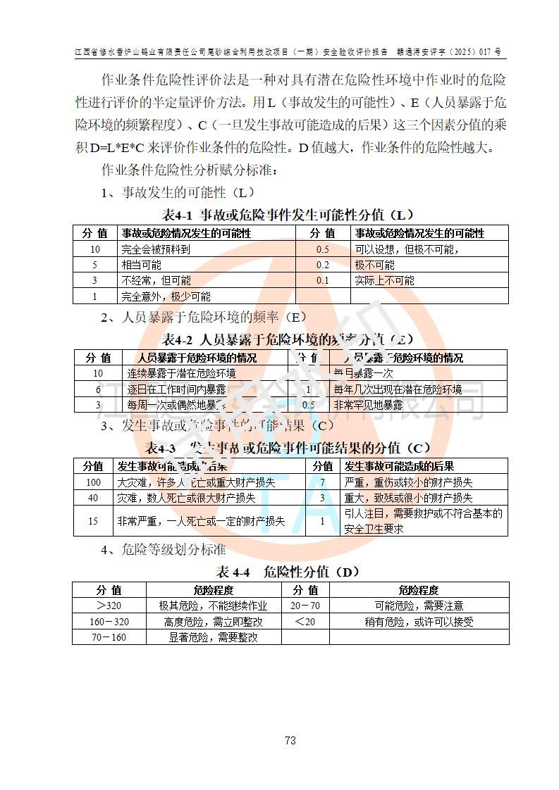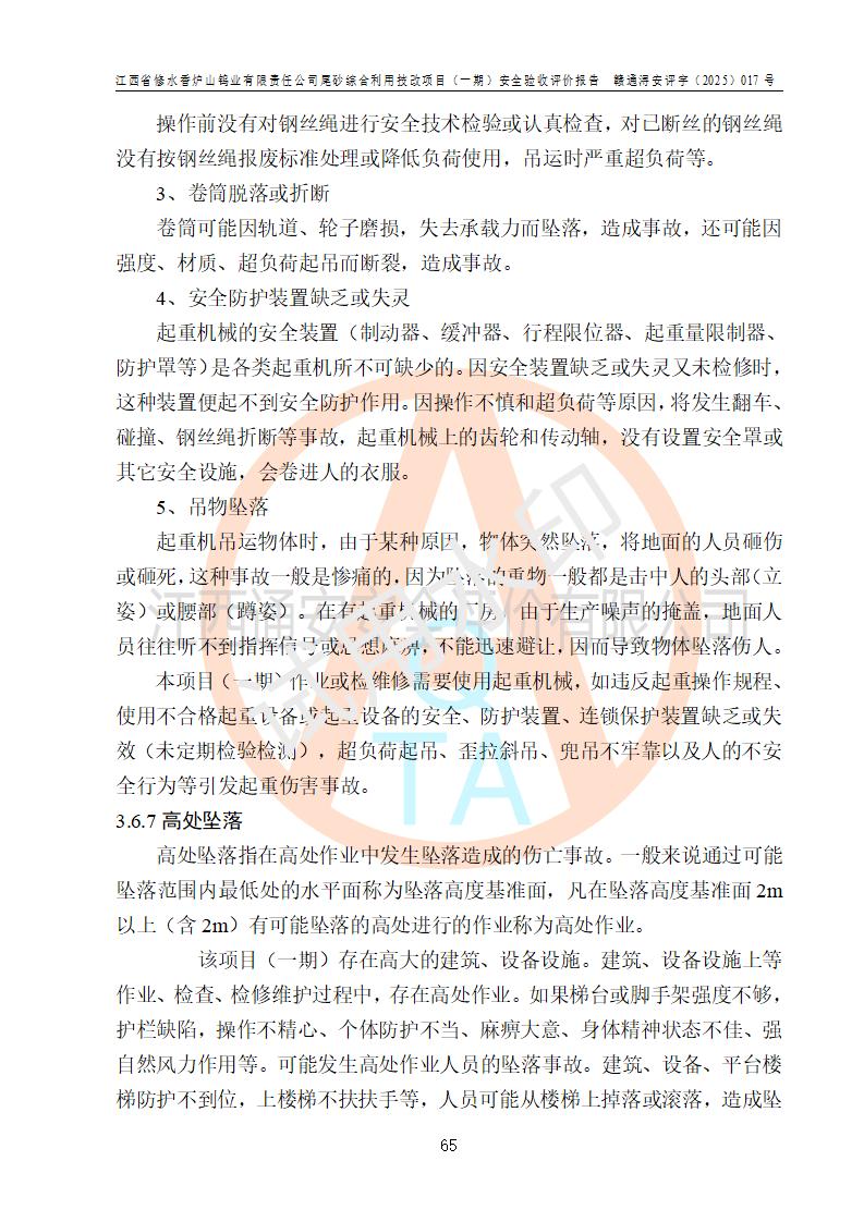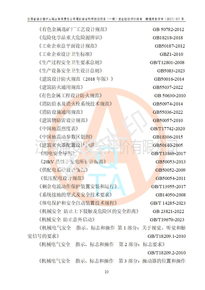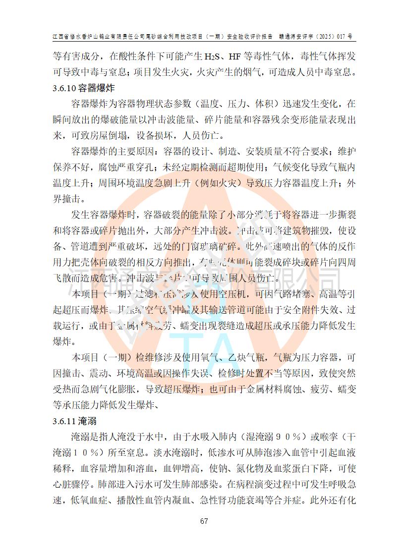 評價報告名稱 | 江西省修水香爐山鎢業(yè)有限責任公司尾砂綜合利用技改項目(一期)安全驗收評價報告 | |||||