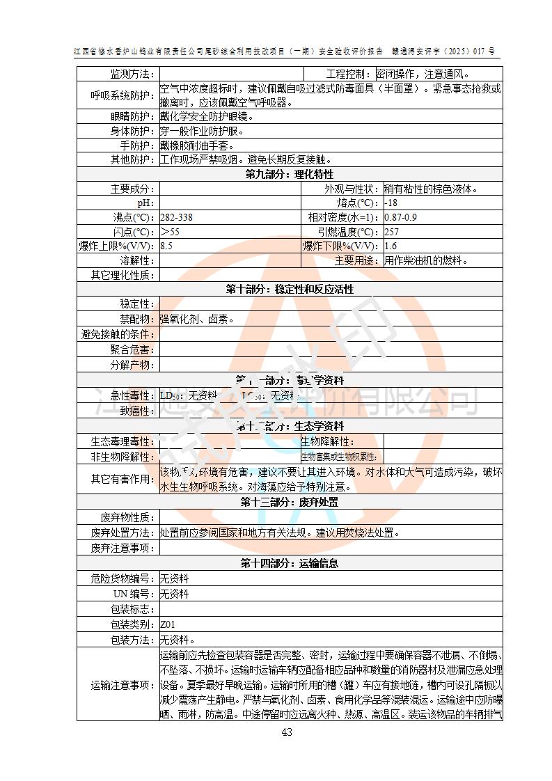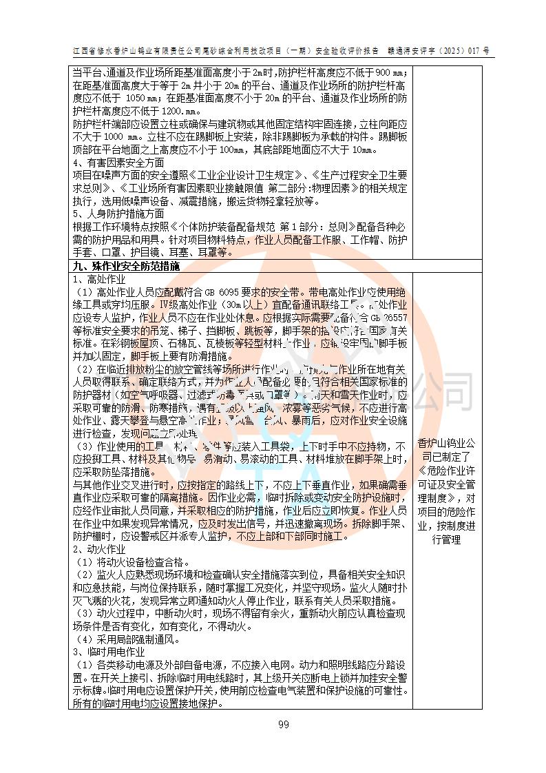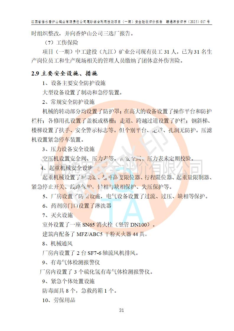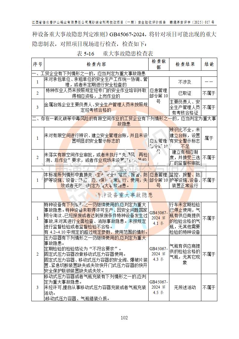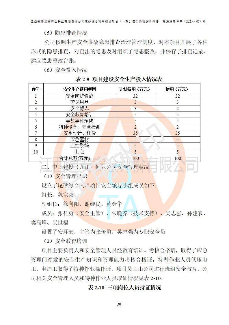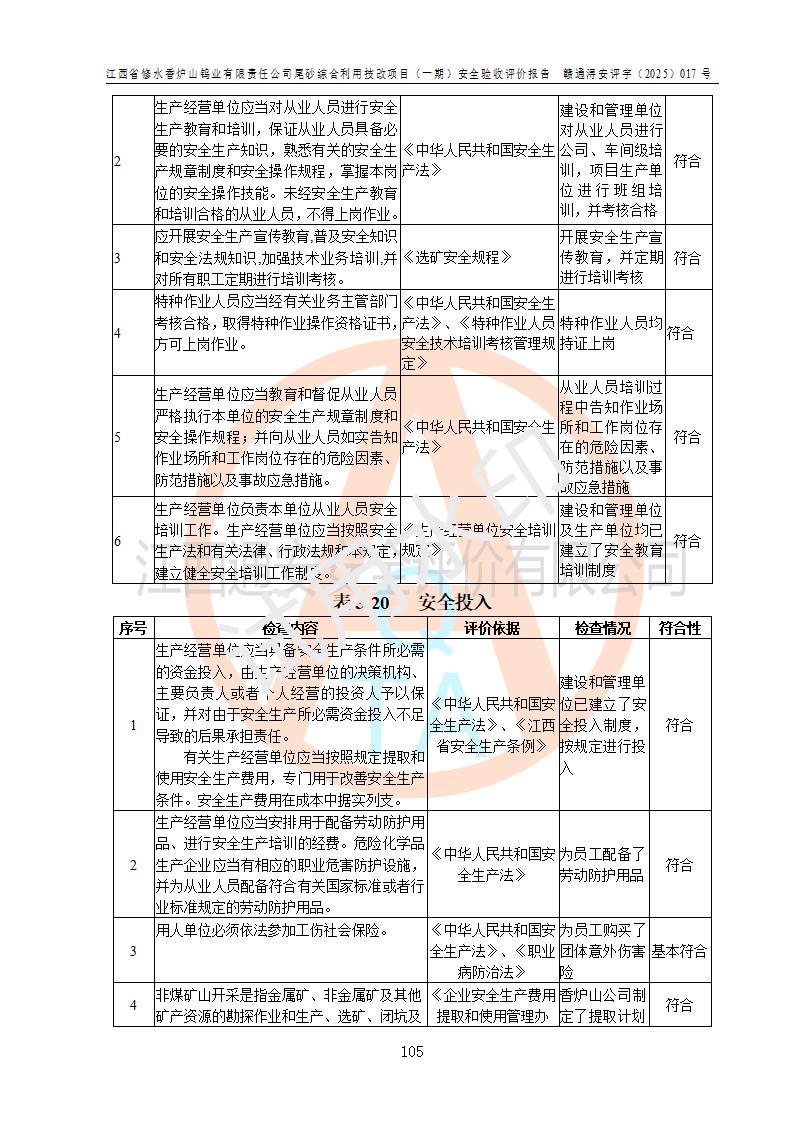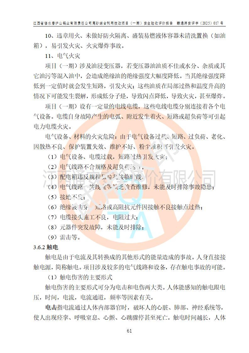 評價報告名稱 | 江西省修水香爐山鎢業(yè)有限責任公司尾砂綜合利用技改項目(一期)安全驗收評價報告 | |||||