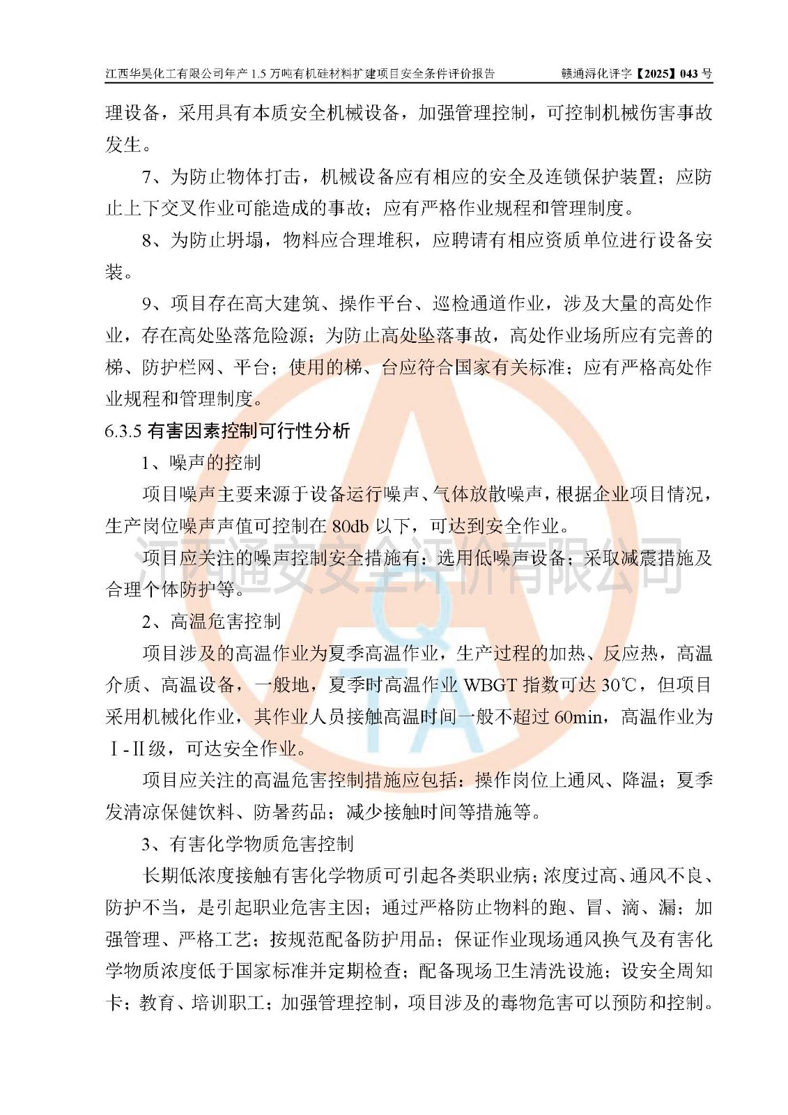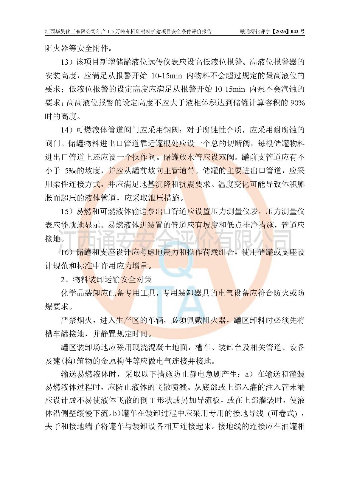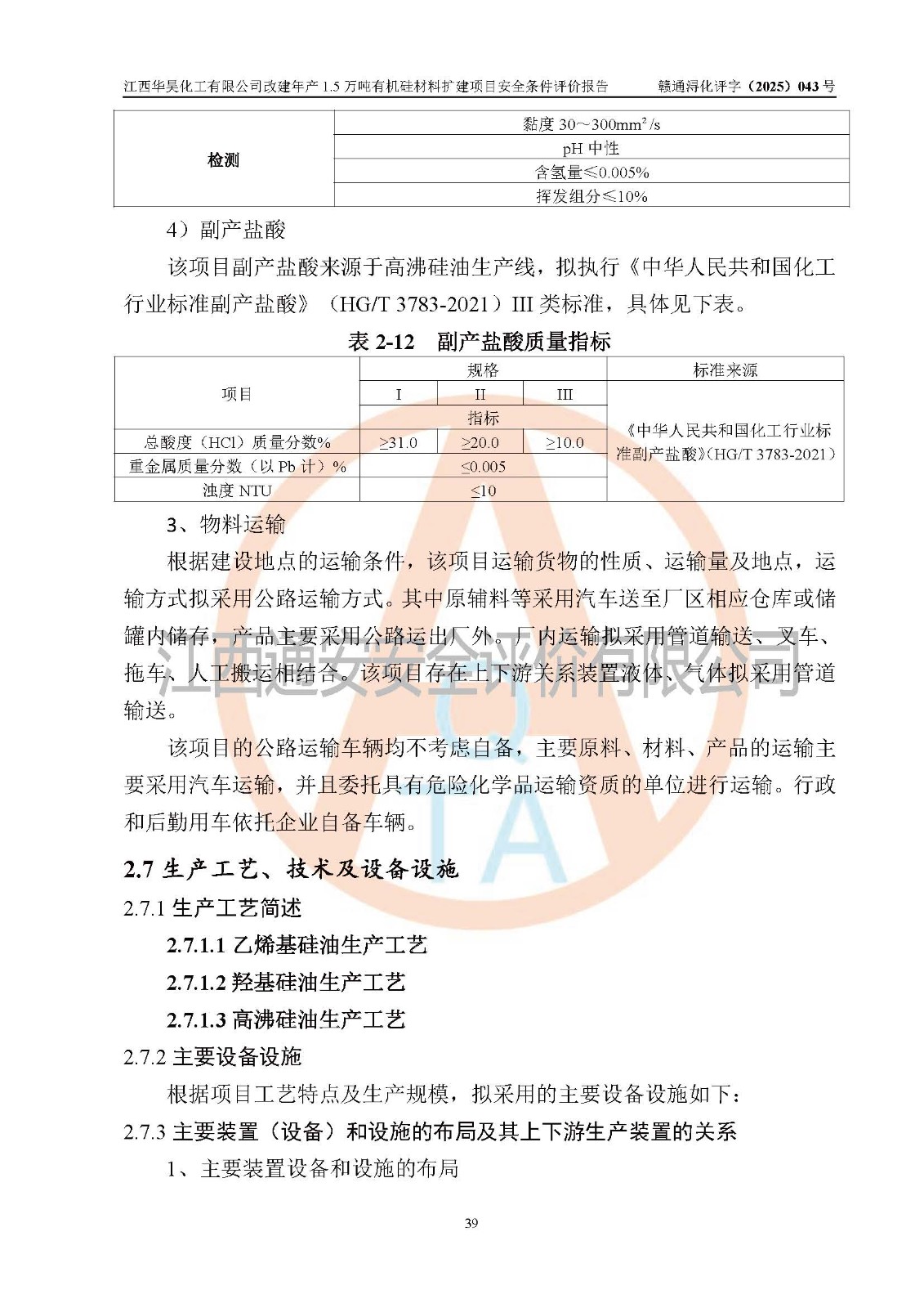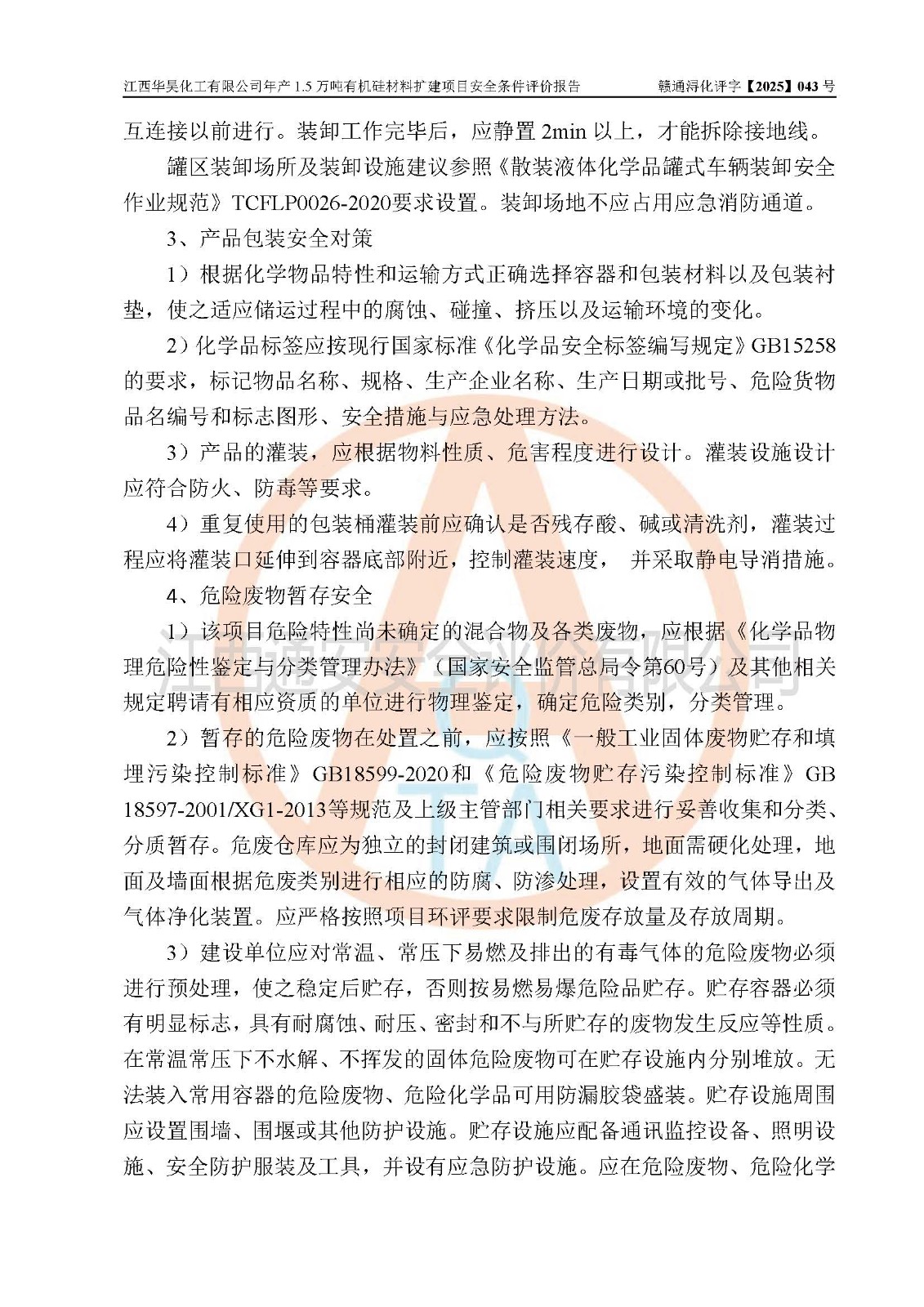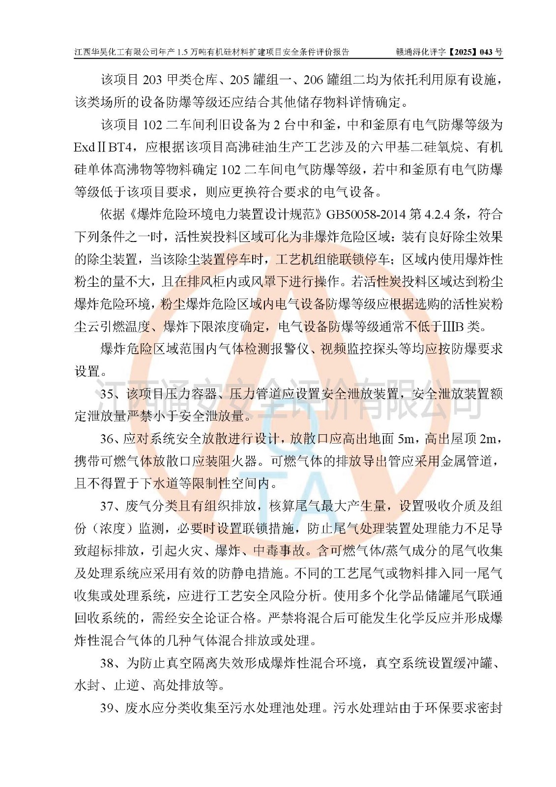 江西華昊化工有限公司是一家于2011年11月注冊成立的有限責(zé)任公司(自然人投資或控股),注冊地址位于永修縣云山經(jīng)濟(jì)開發(fā)區(qū)星火工業(yè)園星云大道旁,法定**人柴利兵,注冊資本1542萬元,經(jīng)營范圍包括許可項(xiàng)目和一般項(xiàng)目,許可項(xiàng)目為危險(xiǎn)化學(xué)品生產(chǎn)、危險(xiǎn)化學(xué)品經(jīng)營、貨物進(jìn)出口、第二類醫(yī)療器械生產(chǎn),一般項(xiàng)目為合成材料制造(不含危險(xiǎn)化學(xué)品)、合成材料銷售、第二類醫(yī)療器械銷售。 為滿足更大市場需求,同時(shí)解決企業(yè)原料及配套生產(chǎn)的需求,江西華昊化工有限公司擬投資5000萬元將廠區(qū)101硅油車間、102二車間原有項(xiàng)目改建為年產(chǎn)1.5萬噸有機(jī)硅材料擴(kuò)建項(xiàng)目(以下簡稱“該項(xiàng)目”)。 該項(xiàng)目生產(chǎn)過程涉及的化學(xué)反應(yīng)包括聚合(常壓)、水解、中和,涉及蒸餾、壓濾、流體輸送、熱交換、產(chǎn)品包裝等化工單元操作過程。該項(xiàng)目涉及的危險(xiǎn)化學(xué)品包括四甲基氫氧化銨、氫氧化鉀、磷酸、30%氫氧化鈉溶液、六甲基二硅氧烷、乙醇、氯化氫、鹽酸、氮?dú)?/span>、DMC(二甲基環(huán)硅氧烷的混合物)、有機(jī)硅單體高沸物、**胺(廢氣組分)、甲醇(廢氣組分)、甲醚(廢氣組分),其中甲醇、甲醚屬于重點(diǎn)監(jiān)管的危險(xiǎn)化學(xué)品,鹽酸屬于第三類易制毒化學(xué)品,乙醇、甲醇、甲醚屬于特別管控危險(xiǎn)化學(xué)品,四甲基氫氧化銨、乙醇、**胺、甲醇、甲醚屬于第四類監(jiān)控化學(xué)品。該項(xiàng)目不涉及劇毒品、易制爆化學(xué)品、高毒物品,不涉及**、二、三類監(jiān)控化學(xué)品。 該項(xiàng)目不涉及重點(diǎn)監(jiān)管的典型危險(xiǎn)化工工藝,生產(chǎn)單元、儲存單元不構(gòu)成危險(xiǎn)化學(xué)品重大危險(xiǎn)源。 該項(xiàng)目副產(chǎn)品鹽酸、中間產(chǎn)品低粘度封頭劑(六甲基二硅氧烷)屬于危險(xiǎn)化學(xué)品,該項(xiàng)目屬于危險(xiǎn)化學(xué)品生產(chǎn)項(xiàng)目,依據(jù)《危險(xiǎn)化學(xué)品生產(chǎn)企業(yè)安全生產(chǎn)許可證實(shí)施辦法》(**安全生產(chǎn)監(jiān)督管理總局令第41號,第79號、89號修改),項(xiàng)目需要辦理危險(xiǎn)化學(xué)品安全生產(chǎn)許可證。 |