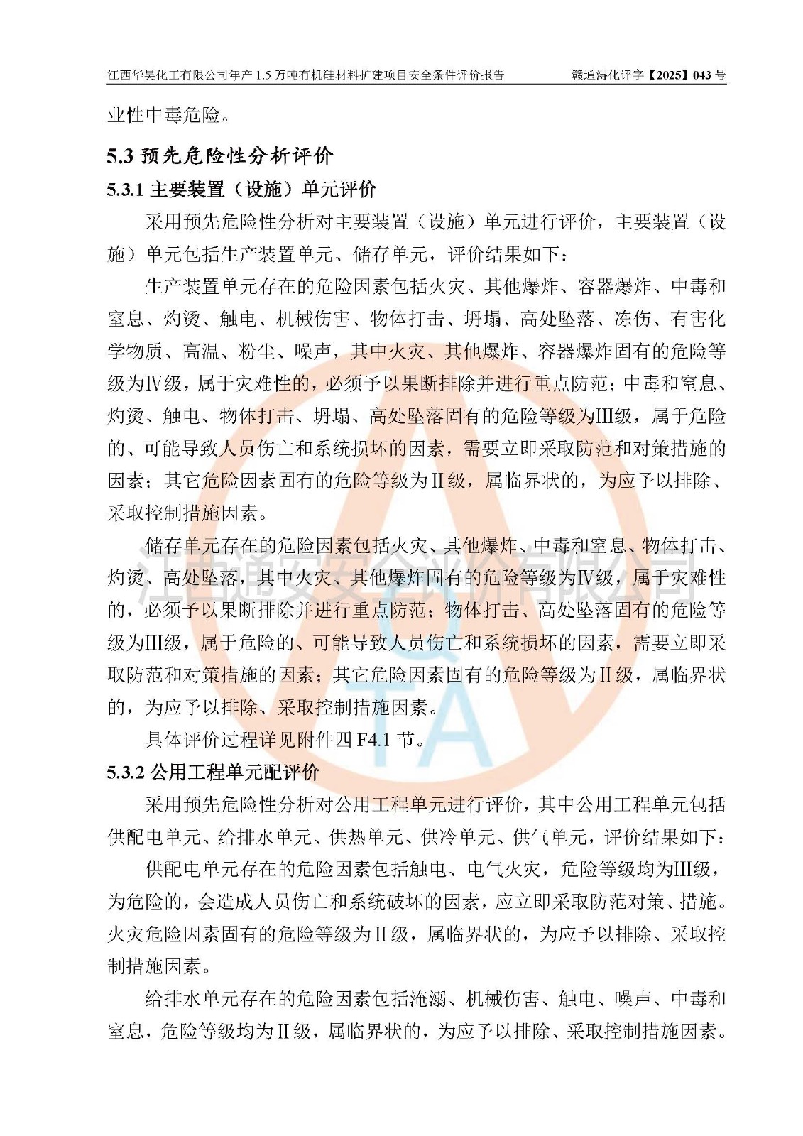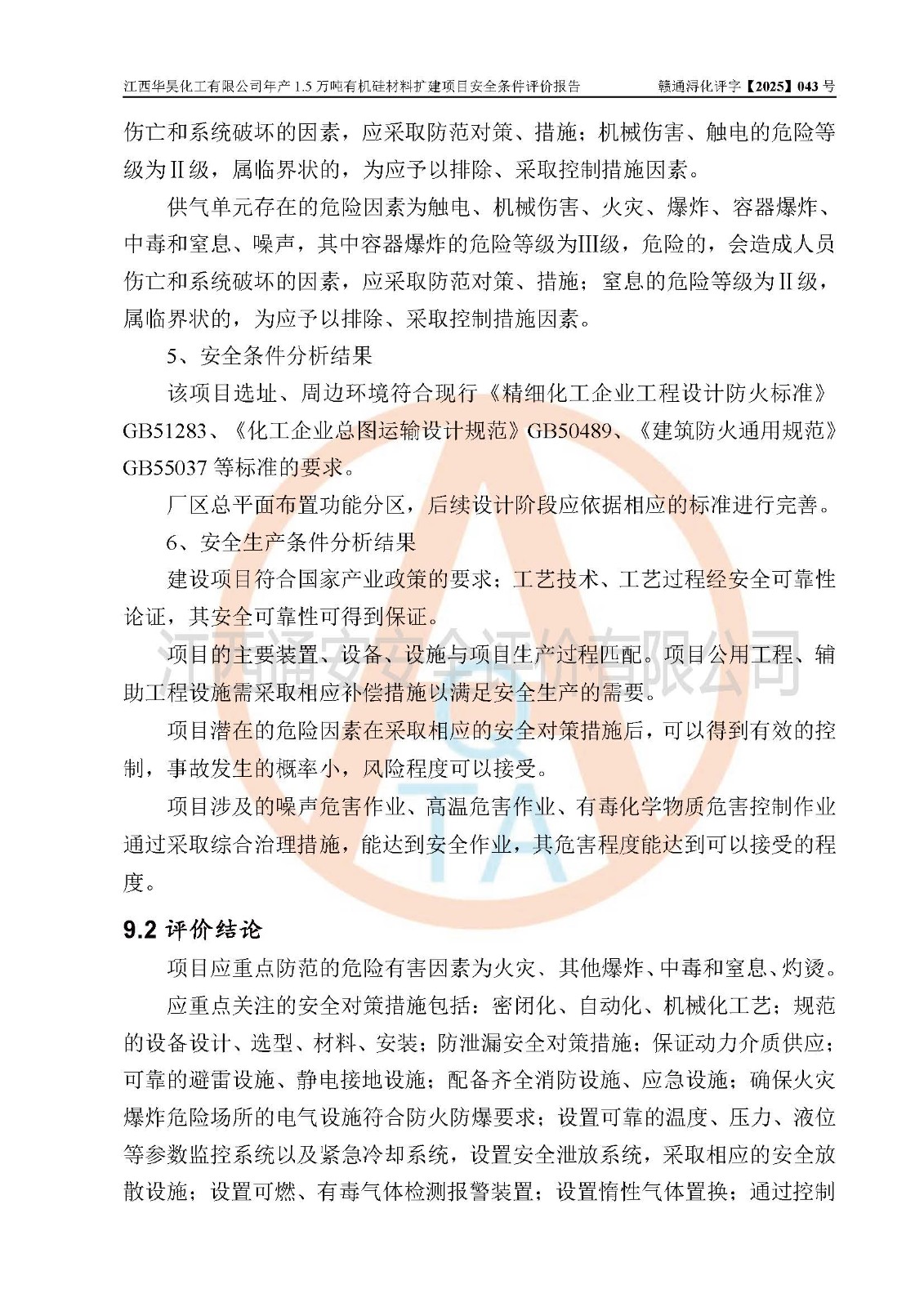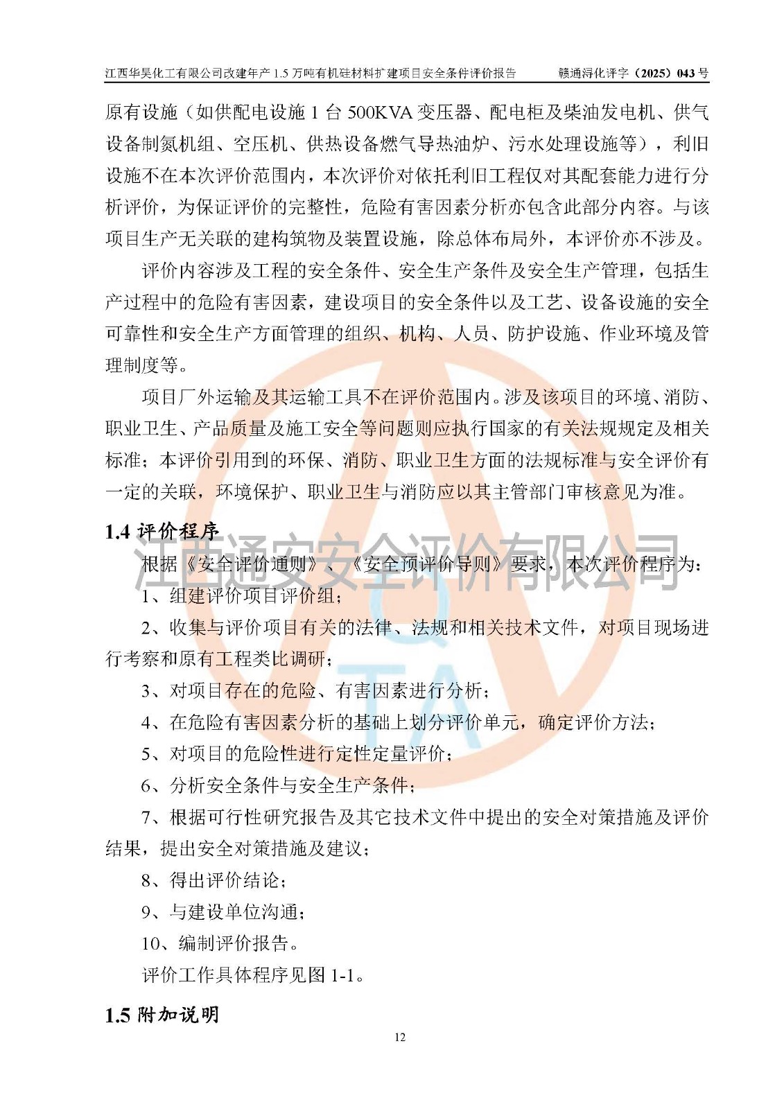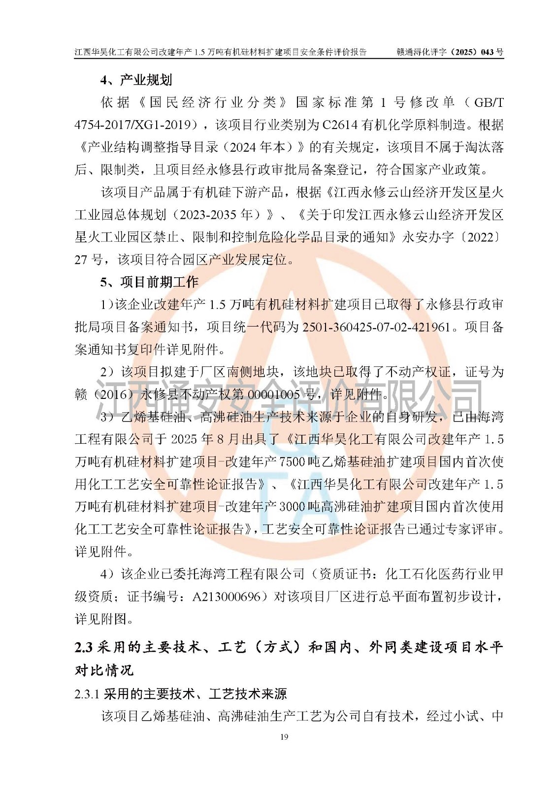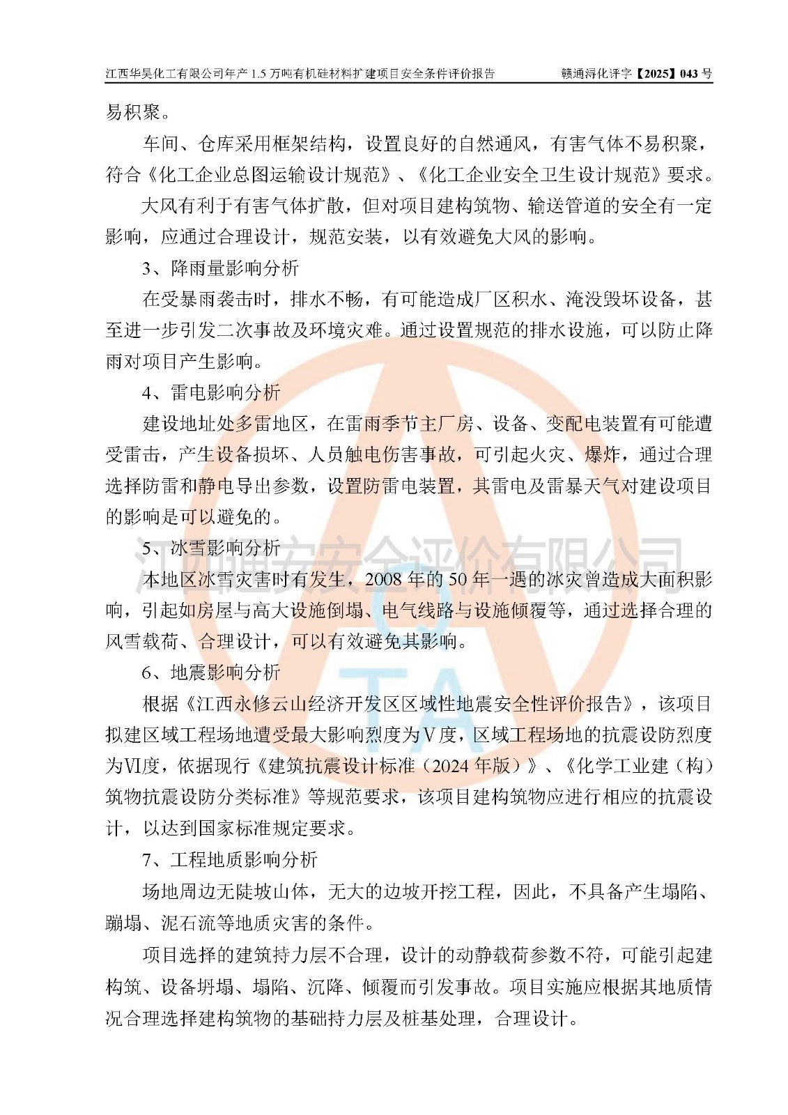 江西華昊化工有限公司是一家于2011年11月注冊成立的有限責(zé)任公司(自然人投資或控股),注冊地址位于永修縣云山經(jīng)濟(jì)開發(fā)區(qū)星火工業(yè)園星云大道旁,法定**人柴利兵,注冊資本1542萬元,經(jīng)營范圍包括許可項(xiàng)目和一般項(xiàng)目,許可項(xiàng)目為危險(xiǎn)化學(xué)品生產(chǎn)、危險(xiǎn)化學(xué)品經(jīng)營、貨物進(jìn)出口、第二類醫(yī)療器械生產(chǎn),一般項(xiàng)目為合成材料制造(不含危險(xiǎn)化學(xué)品)、合成材料銷售、第二類醫(yī)療器械銷售。 為滿足更大市場需求,同時(shí)解決企業(yè)原料及配套生產(chǎn)的需求,江西華昊化工有限公司擬投資5000萬元將廠區(qū)101硅油車間、102二車間原有項(xiàng)目改建為年產(chǎn)1.5萬噸有機(jī)硅材料擴(kuò)建項(xiàng)目(以下簡稱“該項(xiàng)目”)。 該項(xiàng)目生產(chǎn)過程涉及的化學(xué)反應(yīng)包括聚合(常壓)、水解、中和,涉及蒸餾、壓濾、流體輸送、熱交換、產(chǎn)品包裝等化工單元操作過程。該項(xiàng)目涉及的危險(xiǎn)化學(xué)品包括四甲基氫氧化銨、氫氧化鉀、磷酸、30%氫氧化鈉溶液、六甲基二硅氧烷、乙醇、氯化氫、鹽酸、氮?dú)?/span>、DMC(二甲基環(huán)硅氧烷的混合物)、有機(jī)硅單體高沸物、**胺(廢氣組分)、甲醇(廢氣組分)、甲醚(廢氣組分),其中甲醇、甲醚屬于重點(diǎn)監(jiān)管的危險(xiǎn)化學(xué)品,鹽酸屬于第三類易制毒化學(xué)品,乙醇、甲醇、甲醚屬于特別管控危險(xiǎn)化學(xué)品,四甲基氫氧化銨、乙醇、**胺、甲醇、甲醚屬于第四類監(jiān)控化學(xué)品。該項(xiàng)目不涉及劇毒品、易制爆化學(xué)品、高毒物品,不涉及**、二、三類監(jiān)控化學(xué)品。 該項(xiàng)目不涉及重點(diǎn)監(jiān)管的典型危險(xiǎn)化工工藝,生產(chǎn)單元、儲存單元不構(gòu)成危險(xiǎn)化學(xué)品重大危險(xiǎn)源。 該項(xiàng)目副產(chǎn)品鹽酸、中間產(chǎn)品低粘度封頭劑(六甲基二硅氧烷)屬于危險(xiǎn)化學(xué)品,該項(xiàng)目屬于危險(xiǎn)化學(xué)品生產(chǎn)項(xiàng)目,依據(jù)《危險(xiǎn)化學(xué)品生產(chǎn)企業(yè)安全生產(chǎn)許可證實(shí)施辦法》(**安全生產(chǎn)監(jiān)督管理總局令第41號,第79號、89號修改),項(xiàng)目需要辦理危險(xiǎn)化學(xué)品安全生產(chǎn)許可證。 |