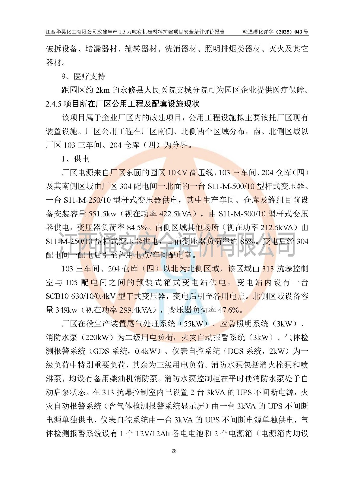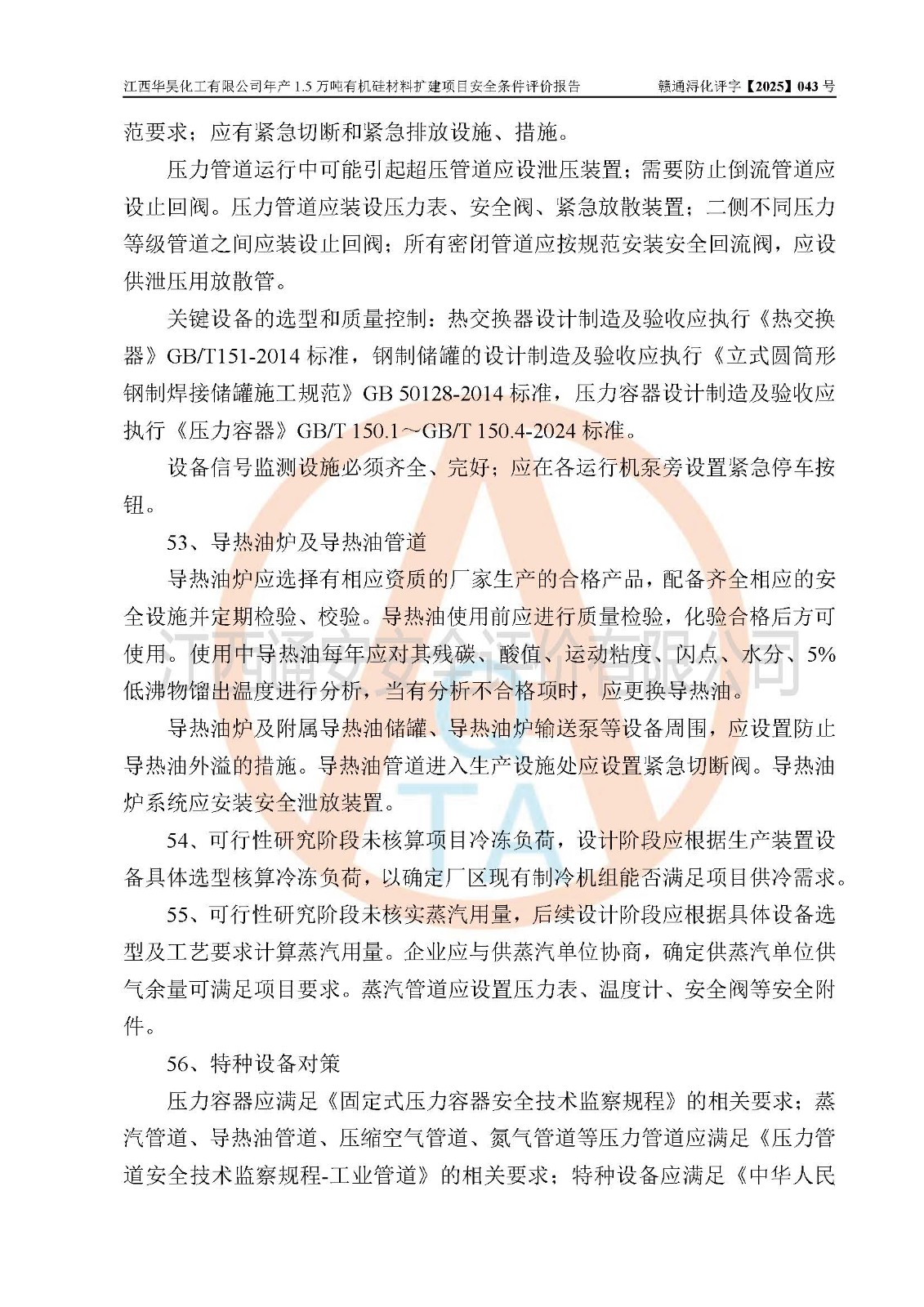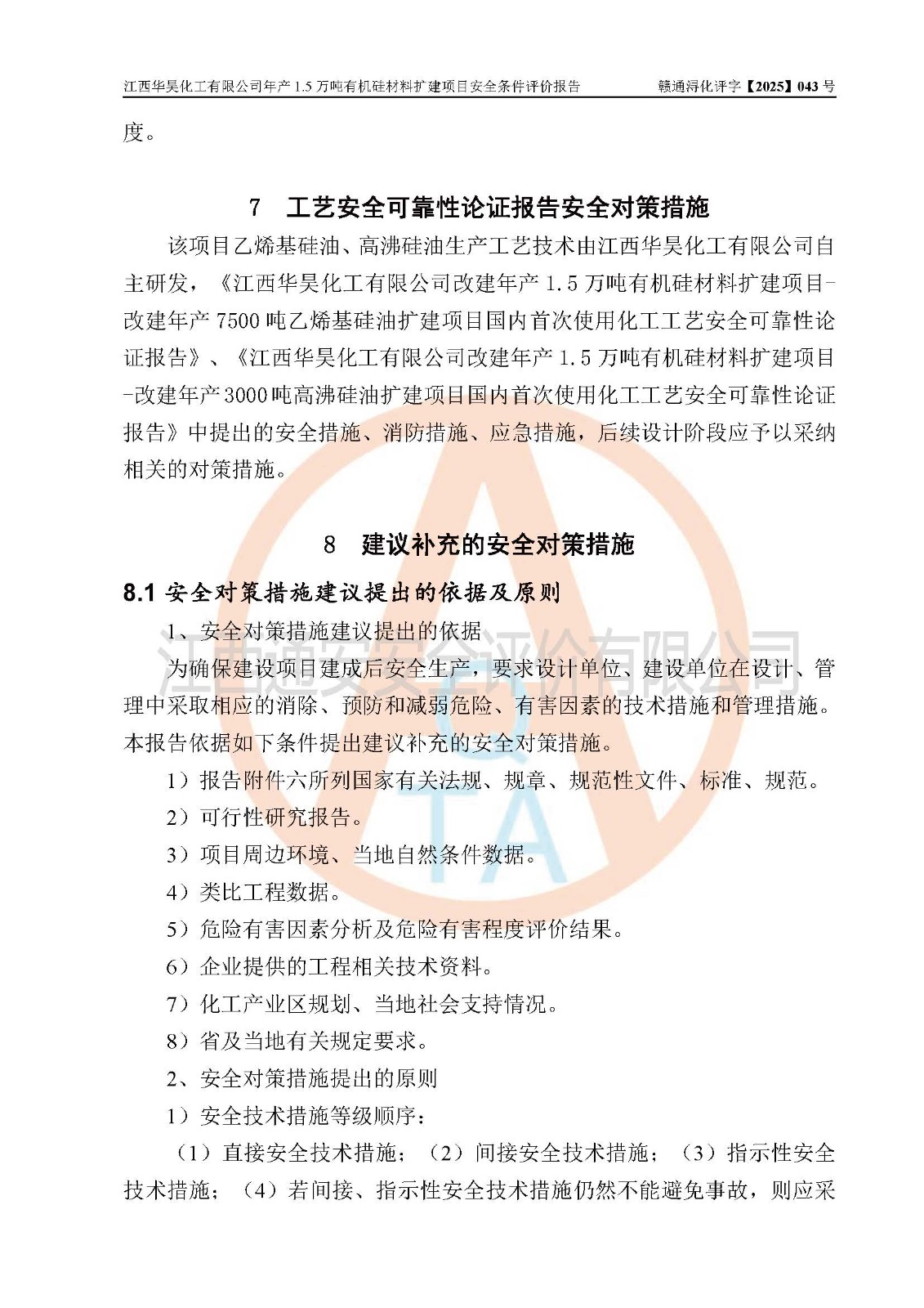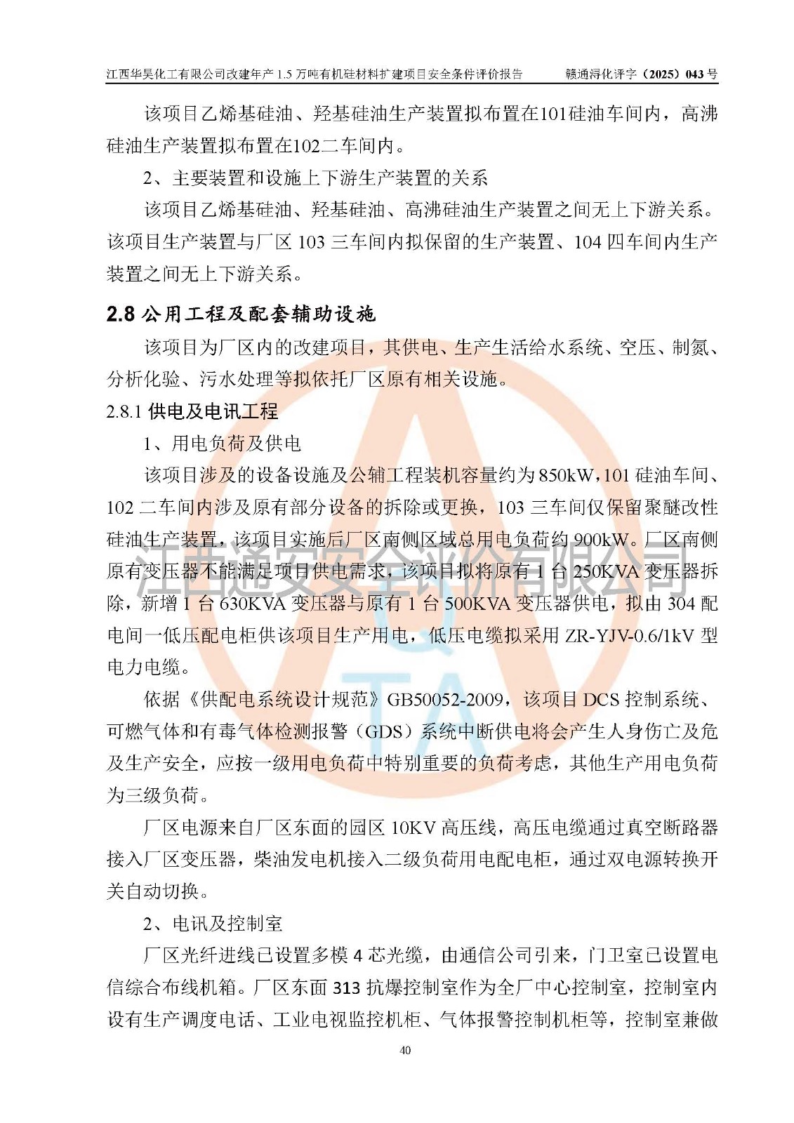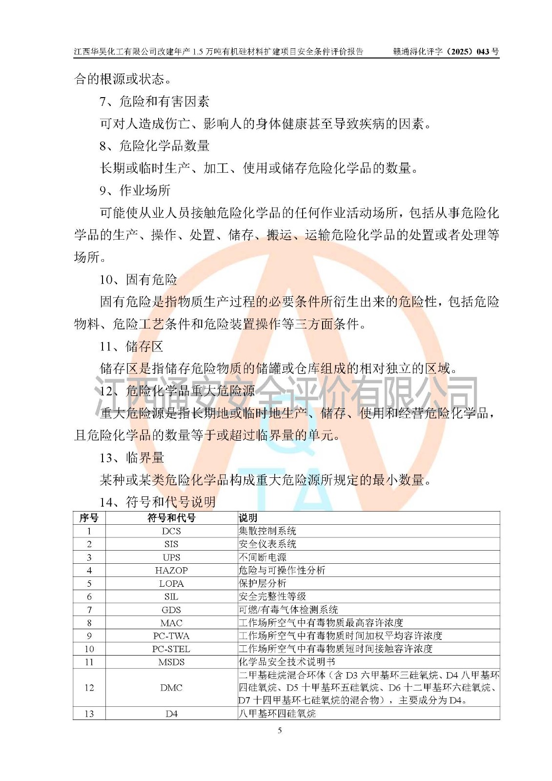 江西華昊化工有限公司是一家于2011年11月注冊成立的有限責(zé)任公司(自然人投資或控股),注冊地址位于永修縣云山經(jīng)濟(jì)開發(fā)區(qū)星火工業(yè)園星云大道旁,法定**人柴利兵,注冊資本1542萬元,經(jīng)營范圍包括許可項(xiàng)目和一般項(xiàng)目,許可項(xiàng)目為危險(xiǎn)化學(xué)品生產(chǎn)、危險(xiǎn)化學(xué)品經(jīng)營、貨物進(jìn)出口、第二類醫(yī)療器械生產(chǎn),一般項(xiàng)目為合成材料制造(不含危險(xiǎn)化學(xué)品)、合成材料銷售、第二類醫(yī)療器械銷售。 為滿足更大市場需求,同時(shí)解決企業(yè)原料及配套生產(chǎn)的需求,江西華昊化工有限公司擬投資5000萬元將廠區(qū)101硅油車間、102二車間原有項(xiàng)目改建為年產(chǎn)1.5萬噸有機(jī)硅材料擴(kuò)建項(xiàng)目(以下簡稱“該項(xiàng)目”)。 該項(xiàng)目生產(chǎn)過程涉及的化學(xué)反應(yīng)包括聚合(常壓)、水解、中和,涉及蒸餾、壓濾、流體輸送、熱交換、產(chǎn)品包裝等化工單元操作過程。該項(xiàng)目涉及的危險(xiǎn)化學(xué)品包括四甲基氫氧化銨、氫氧化鉀、磷酸、30%氫氧化鈉溶液、六甲基二硅氧烷、乙醇、氯化氫、鹽酸、氮?dú)?/span>、DMC(二甲基環(huán)硅氧烷的混合物)、有機(jī)硅單體高沸物、**胺(廢氣組分)、甲醇(廢氣組分)、甲醚(廢氣組分),其中甲醇、甲醚屬于重點(diǎn)監(jiān)管的危險(xiǎn)化學(xué)品,鹽酸屬于第三類易制毒化學(xué)品,乙醇、甲醇、甲醚屬于特別管控危險(xiǎn)化學(xué)品,四甲基氫氧化銨、乙醇、**胺、甲醇、甲醚屬于第四類監(jiān)控化學(xué)品。該項(xiàng)目不涉及劇毒品、易制爆化學(xué)品、高毒物品,不涉及**、二、三類監(jiān)控化學(xué)品。 該項(xiàng)目不涉及重點(diǎn)監(jiān)管的典型危險(xiǎn)化工工藝,生產(chǎn)單元、儲存單元不構(gòu)成危險(xiǎn)化學(xué)品重大危險(xiǎn)源。 該項(xiàng)目副產(chǎn)品鹽酸、中間產(chǎn)品低粘度封頭劑(六甲基二硅氧烷)屬于危險(xiǎn)化學(xué)品,該項(xiàng)目屬于危險(xiǎn)化學(xué)品生產(chǎn)項(xiàng)目,依據(jù)《危險(xiǎn)化學(xué)品生產(chǎn)企業(yè)安全生產(chǎn)許可證實(shí)施辦法》(**安全生產(chǎn)監(jiān)督管理總局令第41號,第79號、89號修改),項(xiàng)目需要辦理危險(xiǎn)化學(xué)品安全生產(chǎn)許可證。 |