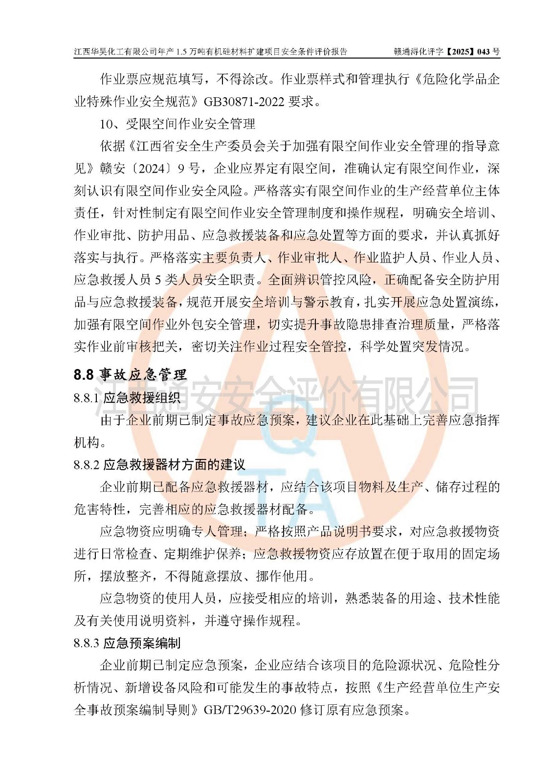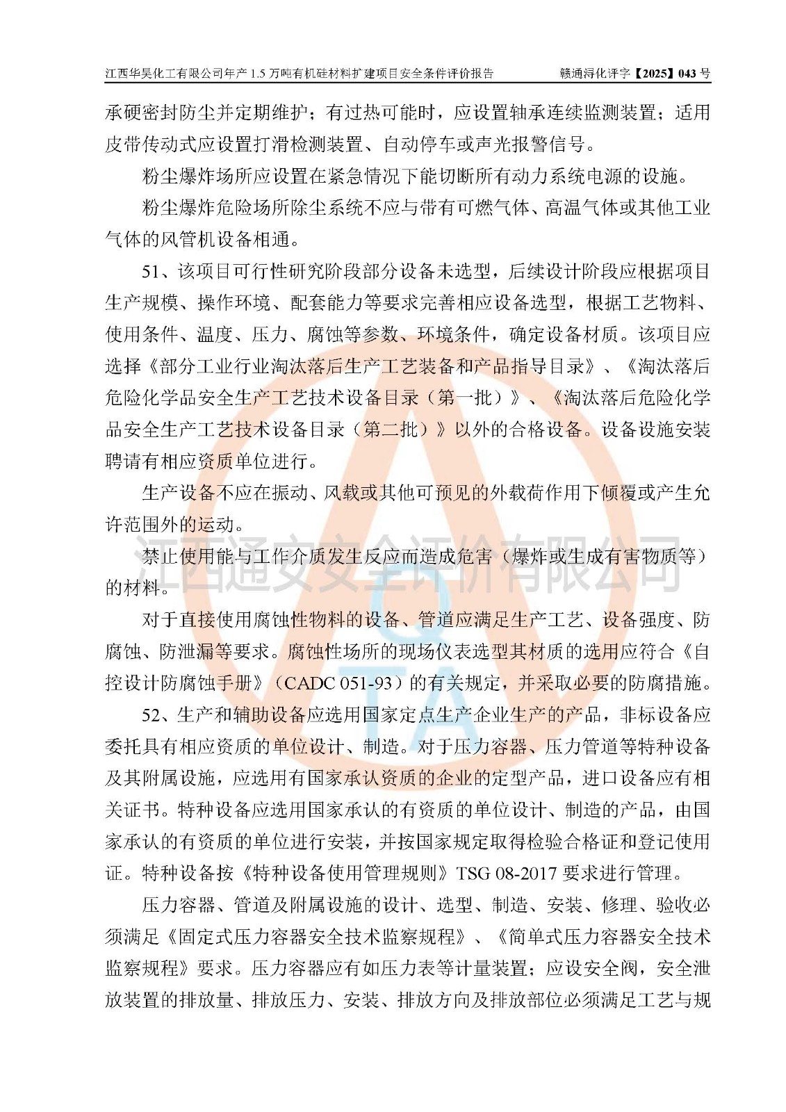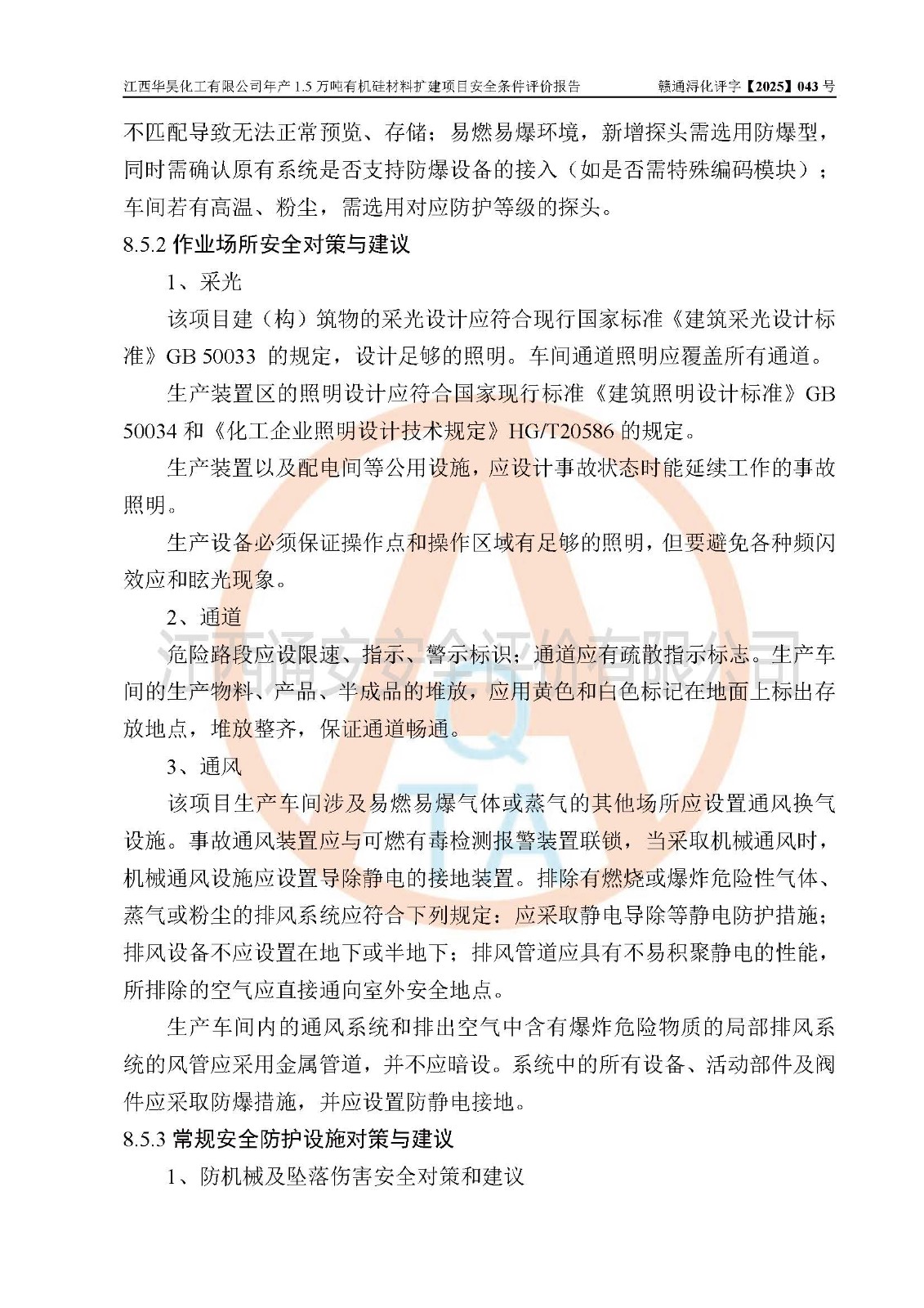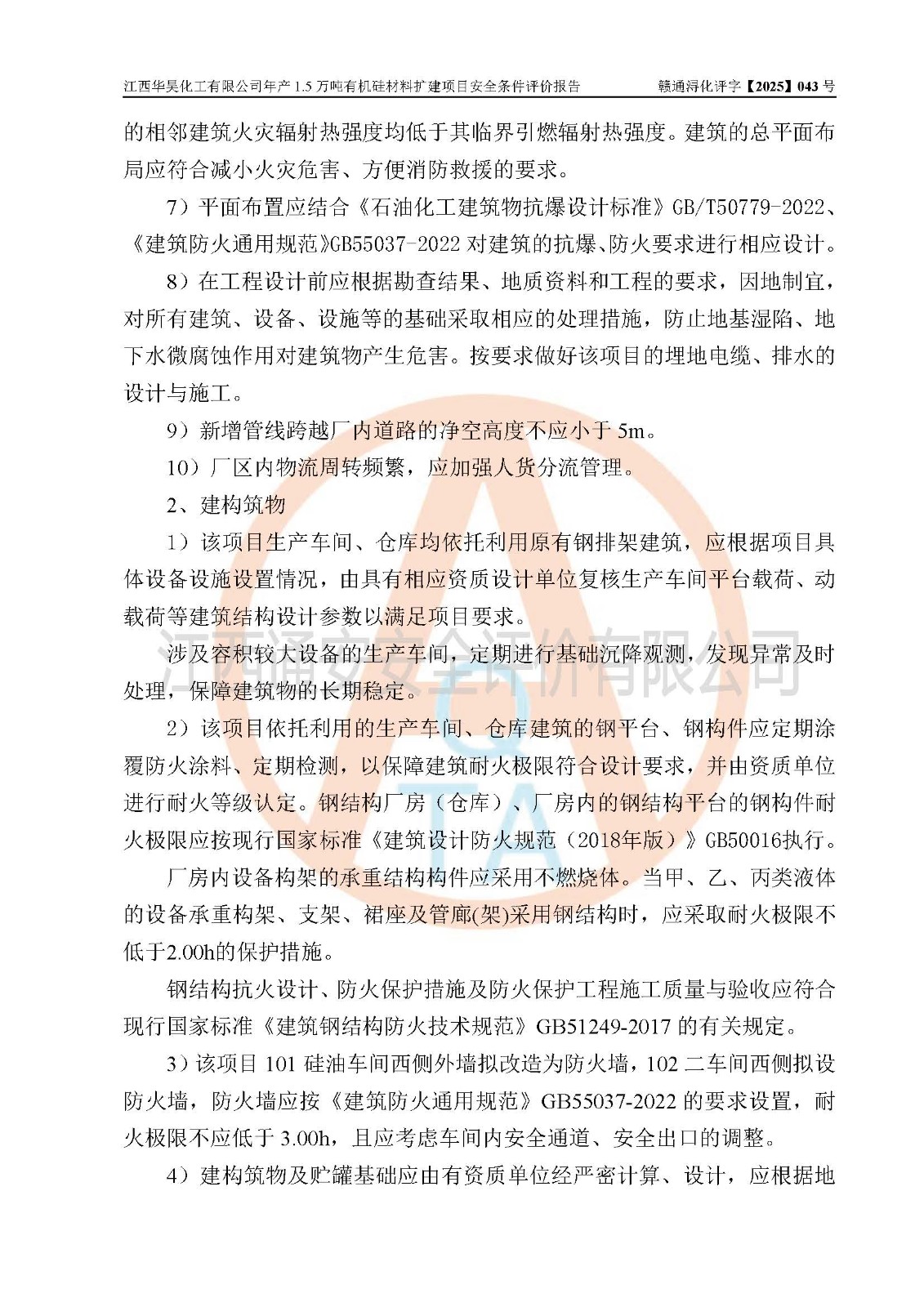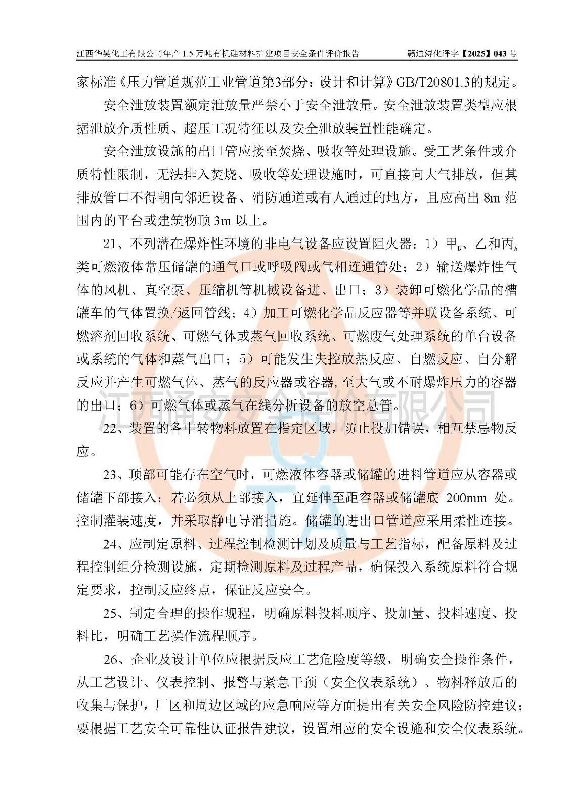 江西華昊化工有限公司是一家于2011年11月注冊成立的有限責(zé)任公司(自然人投資或控股),注冊地址位于永修縣云山經(jīng)濟(jì)開發(fā)區(qū)星火工業(yè)園星云大道旁,法定**人柴利兵,注冊資本1542萬元,經(jīng)營范圍包括許可項(xiàng)目和一般項(xiàng)目,許可項(xiàng)目為危險(xiǎn)化學(xué)品生產(chǎn)、危險(xiǎn)化學(xué)品經(jīng)營、貨物進(jìn)出口、第二類醫(yī)療器械生產(chǎn),一般項(xiàng)目為合成材料制造(不含危險(xiǎn)化學(xué)品)、合成材料銷售、第二類醫(yī)療器械銷售。 為滿足更大市場需求,同時(shí)解決企業(yè)原料及配套生產(chǎn)的需求,江西華昊化工有限公司擬投資5000萬元將廠區(qū)101硅油車間、102二車間原有項(xiàng)目改建為年產(chǎn)1.5萬噸有機(jī)硅材料擴(kuò)建項(xiàng)目(以下簡稱“該項(xiàng)目”)。 該項(xiàng)目生產(chǎn)過程涉及的化學(xué)反應(yīng)包括聚合(常壓)、水解、中和,涉及蒸餾、壓濾、流體輸送、熱交換、產(chǎn)品包裝等化工單元操作過程。該項(xiàng)目涉及的危險(xiǎn)化學(xué)品包括四甲基氫氧化銨、氫氧化鉀、磷酸、30%氫氧化鈉溶液、六甲基二硅氧烷、乙醇、氯化氫、鹽酸、氮?dú)?/span>、DMC(二甲基環(huán)硅氧烷的混合物)、有機(jī)硅單體高沸物、**胺(廢氣組分)、甲醇(廢氣組分)、甲醚(廢氣組分),其中甲醇、甲醚屬于重點(diǎn)監(jiān)管的危險(xiǎn)化學(xué)品,鹽酸屬于第三類易制毒化學(xué)品,乙醇、甲醇、甲醚屬于特別管控危險(xiǎn)化學(xué)品,四甲基氫氧化銨、乙醇、**胺、甲醇、甲醚屬于第四類監(jiān)控化學(xué)品。該項(xiàng)目不涉及劇毒品、易制爆化學(xué)品、高毒物品,不涉及**、二、三類監(jiān)控化學(xué)品。 該項(xiàng)目不涉及重點(diǎn)監(jiān)管的典型危險(xiǎn)化工工藝,生產(chǎn)單元、儲存單元不構(gòu)成危險(xiǎn)化學(xué)品重大危險(xiǎn)源。 該項(xiàng)目副產(chǎn)品鹽酸、中間產(chǎn)品低粘度封頭劑(六甲基二硅氧烷)屬于危險(xiǎn)化學(xué)品,該項(xiàng)目屬于危險(xiǎn)化學(xué)品生產(chǎn)項(xiàng)目,依據(jù)《危險(xiǎn)化學(xué)品生產(chǎn)企業(yè)安全生產(chǎn)許可證實(shí)施辦法》(**安全生產(chǎn)監(jiān)督管理總局令第41號,第79號、89號修改),項(xiàng)目需要辦理危險(xiǎn)化學(xué)品安全生產(chǎn)許可證。 |