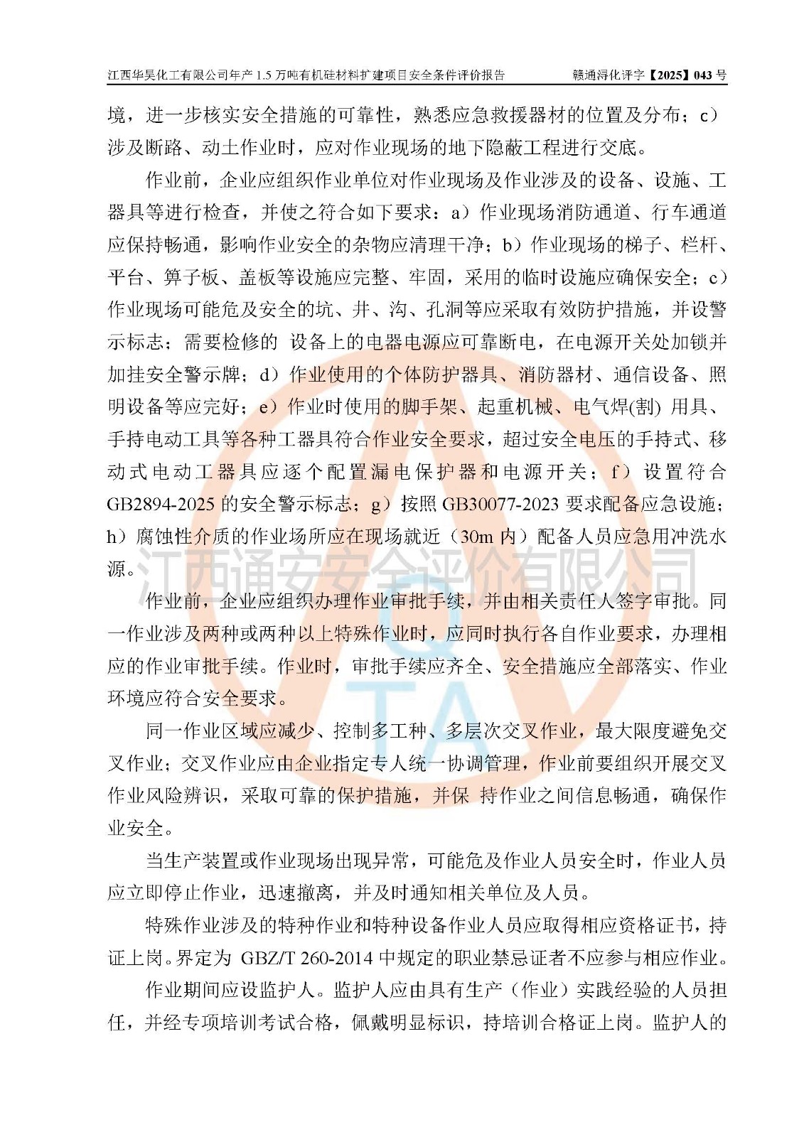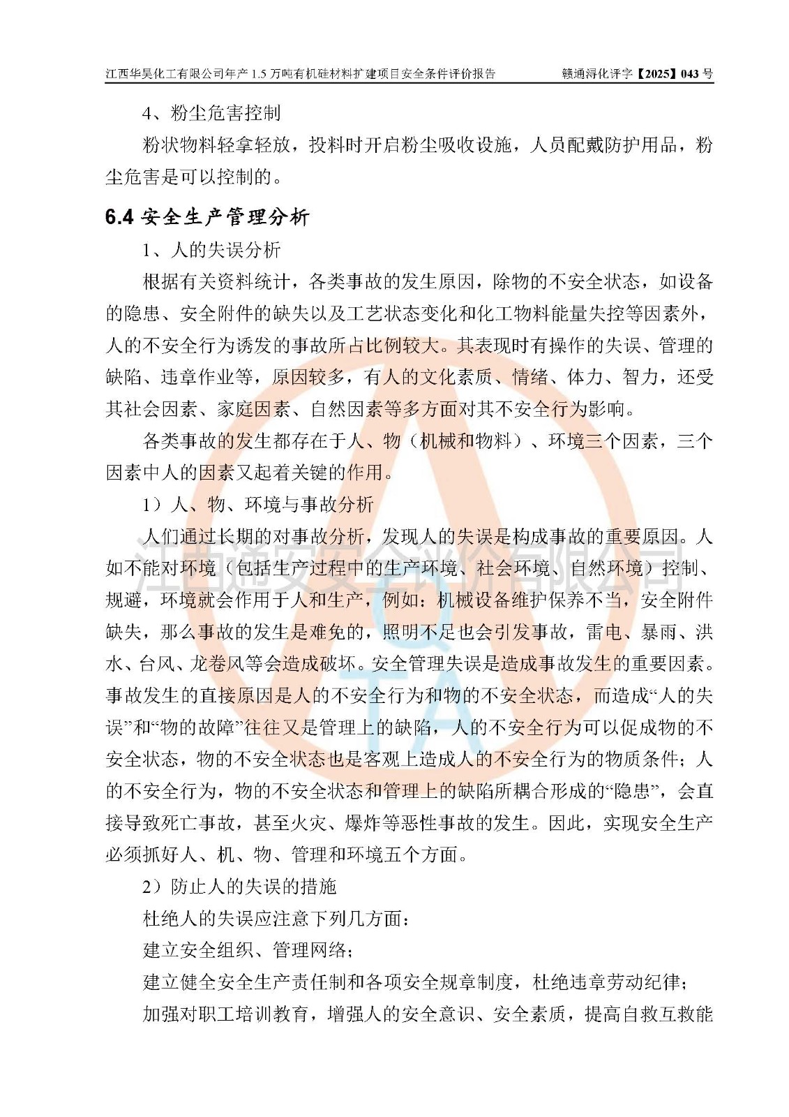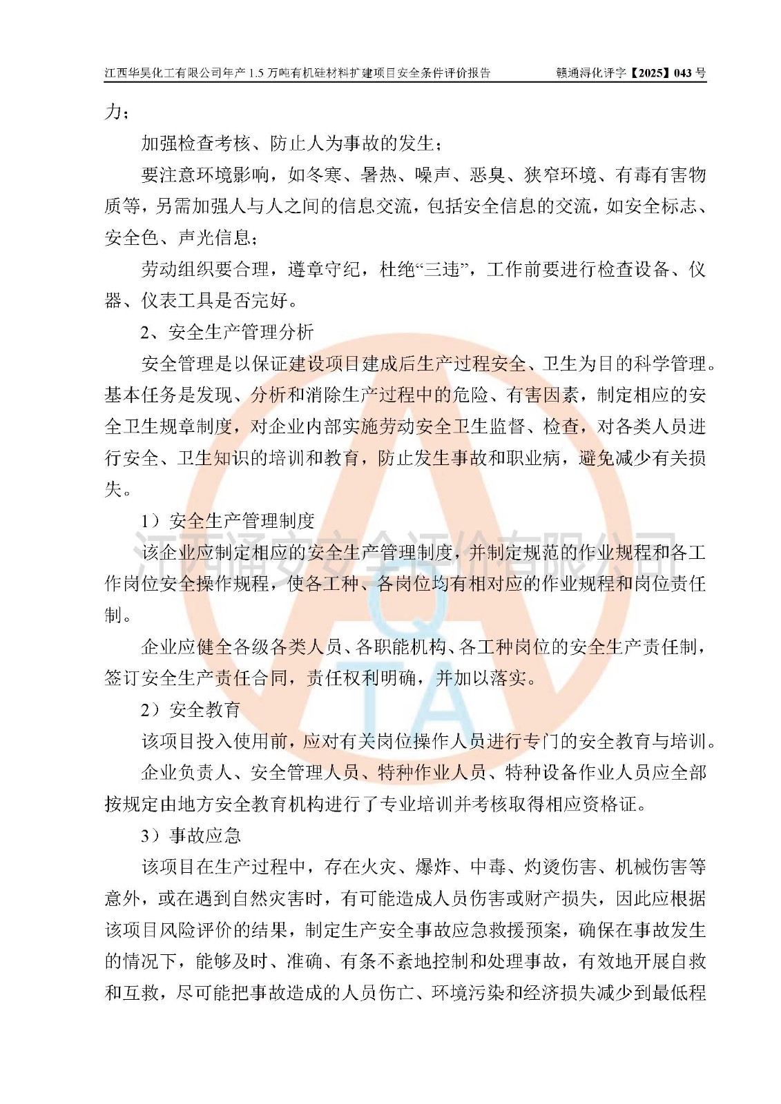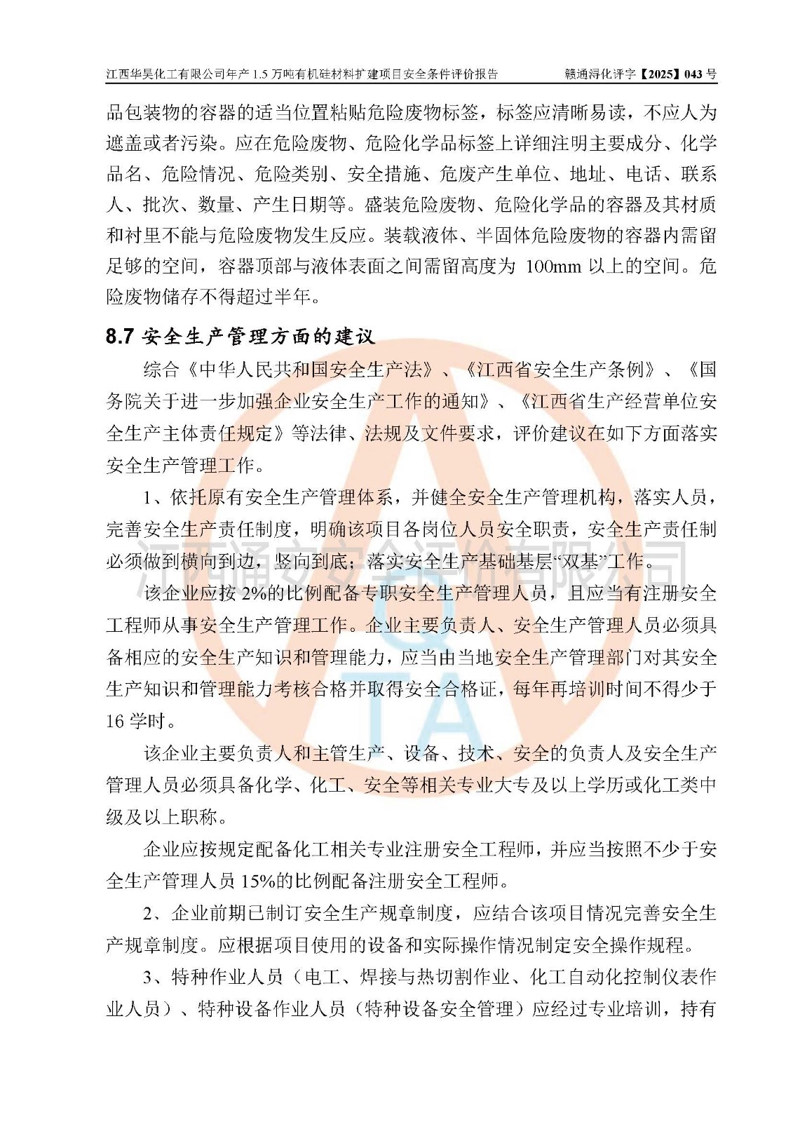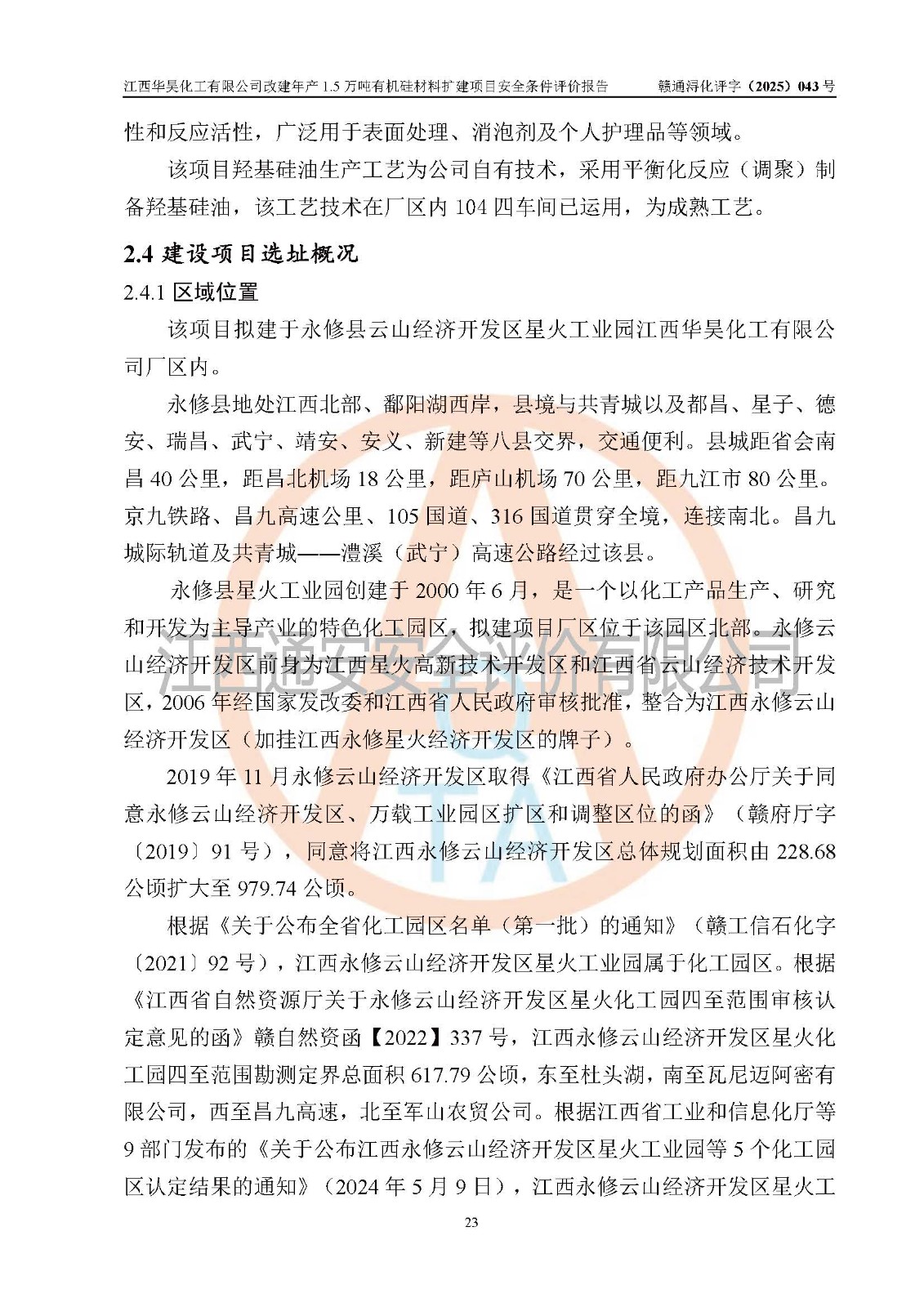 江西華昊化工有限公司是一家于2011年11月注冊成立的有限責(zé)任公司(自然人投資或控股),注冊地址位于永修縣云山經(jīng)濟(jì)開發(fā)區(qū)星火工業(yè)園星云大道旁,法定**人柴利兵,注冊資本1542萬元,經(jīng)營范圍包括許可項(xiàng)目和一般項(xiàng)目,許可項(xiàng)目為危險(xiǎn)化學(xué)品生產(chǎn)、危險(xiǎn)化學(xué)品經(jīng)營、貨物進(jìn)出口、第二類醫(yī)療器械生產(chǎn),一般項(xiàng)目為合成材料制造(不含危險(xiǎn)化學(xué)品)、合成材料銷售、第二類醫(yī)療器械銷售。 為滿足更大市場需求,同時(shí)解決企業(yè)原料及配套生產(chǎn)的需求,江西華昊化工有限公司擬投資5000萬元將廠區(qū)101硅油車間、102二車間原有項(xiàng)目改建為年產(chǎn)1.5萬噸有機(jī)硅材料擴(kuò)建項(xiàng)目(以下簡稱“該項(xiàng)目”)。 該項(xiàng)目生產(chǎn)過程涉及的化學(xué)反應(yīng)包括聚合(常壓)、水解、中和,涉及蒸餾、壓濾、流體輸送、熱交換、產(chǎn)品包裝等化工單元操作過程。該項(xiàng)目涉及的危險(xiǎn)化學(xué)品包括四甲基氫氧化銨、氫氧化鉀、磷酸、30%氫氧化鈉溶液、六甲基二硅氧烷、乙醇、氯化氫、鹽酸、氮?dú)?/span>、DMC(二甲基環(huán)硅氧烷的混合物)、有機(jī)硅單體高沸物、**胺(廢氣組分)、甲醇(廢氣組分)、甲醚(廢氣組分),其中甲醇、甲醚屬于重點(diǎn)監(jiān)管的危險(xiǎn)化學(xué)品,鹽酸屬于第三類易制毒化學(xué)品,乙醇、甲醇、甲醚屬于特別管控危險(xiǎn)化學(xué)品,四甲基氫氧化銨、乙醇、**胺、甲醇、甲醚屬于第四類監(jiān)控化學(xué)品。該項(xiàng)目不涉及劇毒品、易制爆化學(xué)品、高毒物品,不涉及**、二、三類監(jiān)控化學(xué)品。 該項(xiàng)目不涉及重點(diǎn)監(jiān)管的典型危險(xiǎn)化工工藝,生產(chǎn)單元、儲存單元不構(gòu)成危險(xiǎn)化學(xué)品重大危險(xiǎn)源。 該項(xiàng)目副產(chǎn)品鹽酸、中間產(chǎn)品低粘度封頭劑(六甲基二硅氧烷)屬于危險(xiǎn)化學(xué)品,該項(xiàng)目屬于危險(xiǎn)化學(xué)品生產(chǎn)項(xiàng)目,依據(jù)《危險(xiǎn)化學(xué)品生產(chǎn)企業(yè)安全生產(chǎn)許可證實(shí)施辦法》(**安全生產(chǎn)監(jiān)督管理總局令第41號,第79號、89號修改),項(xiàng)目需要辦理危險(xiǎn)化學(xué)品安全生產(chǎn)許可證。 |