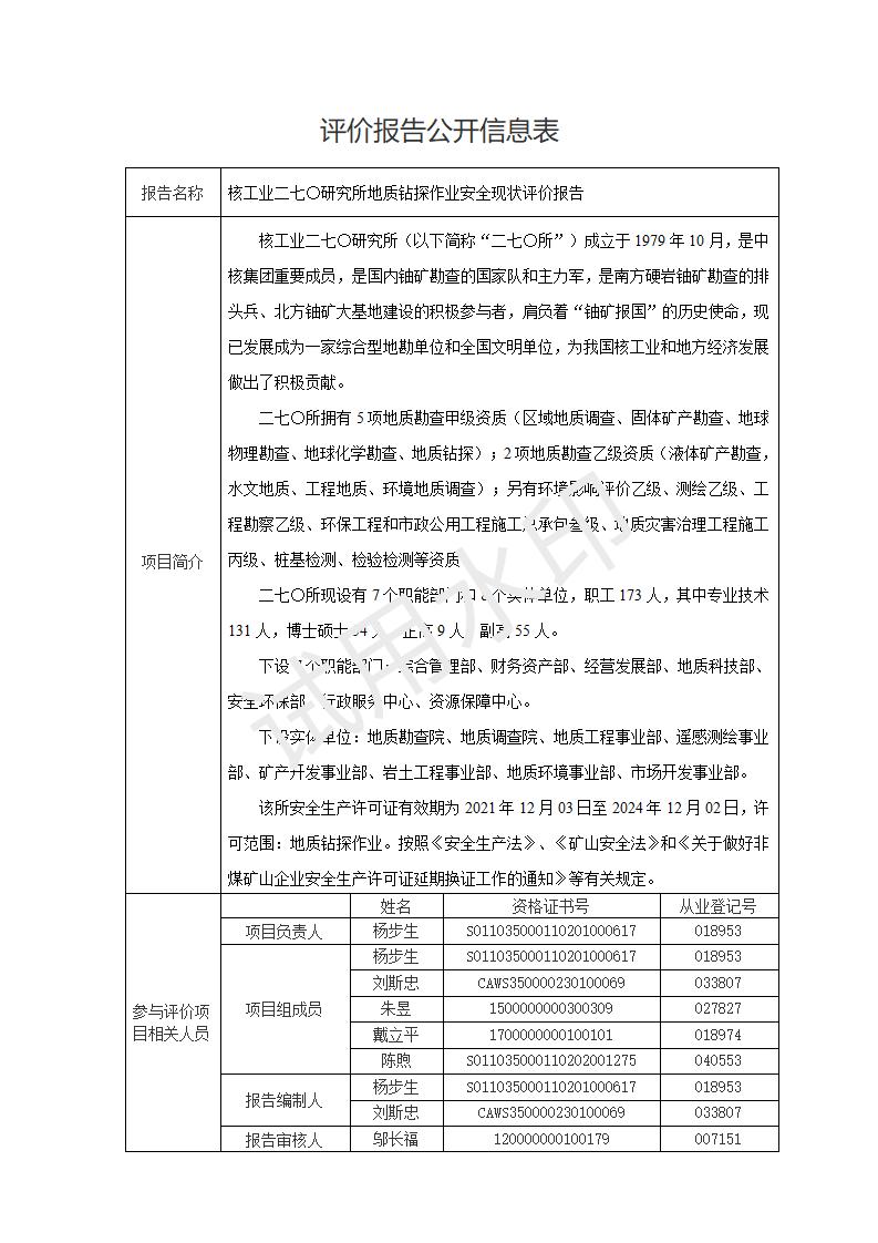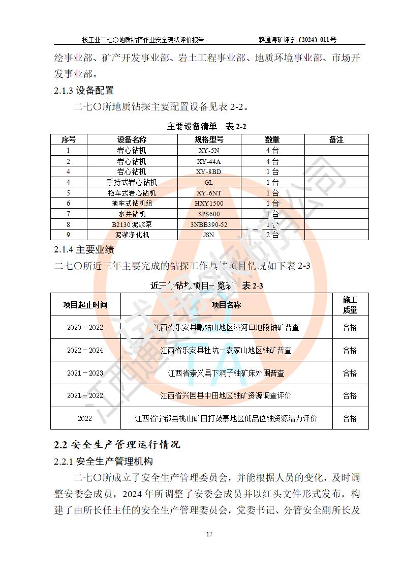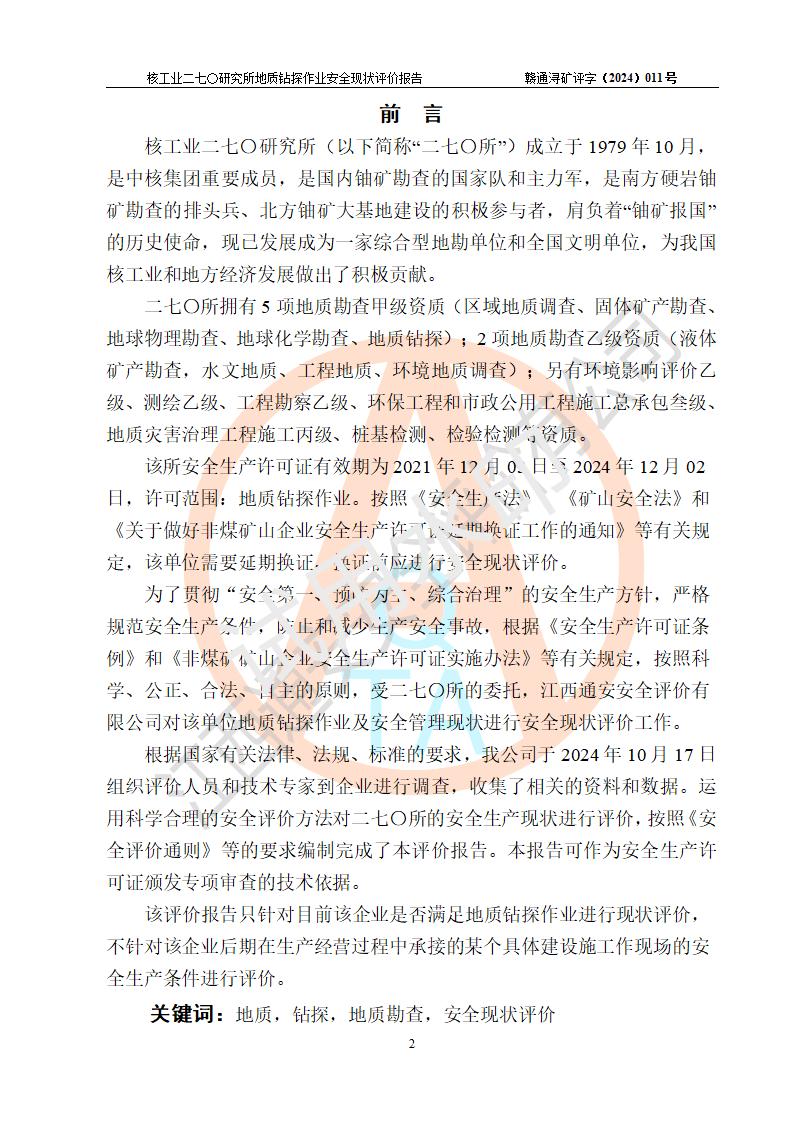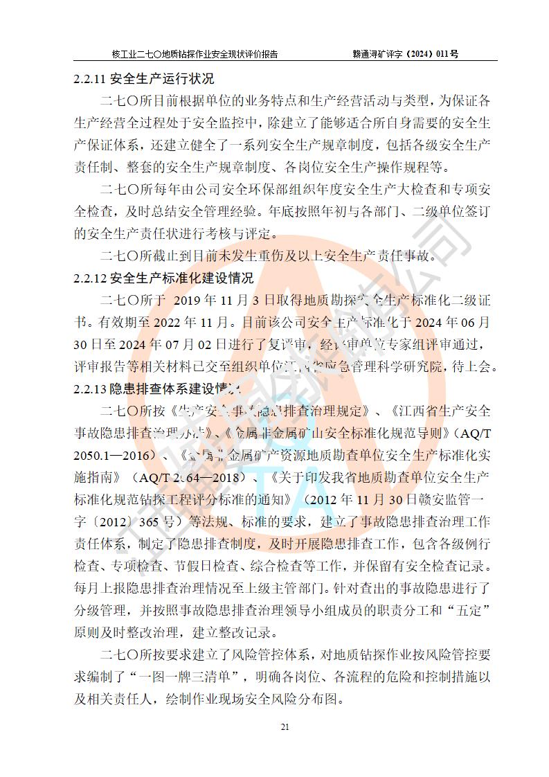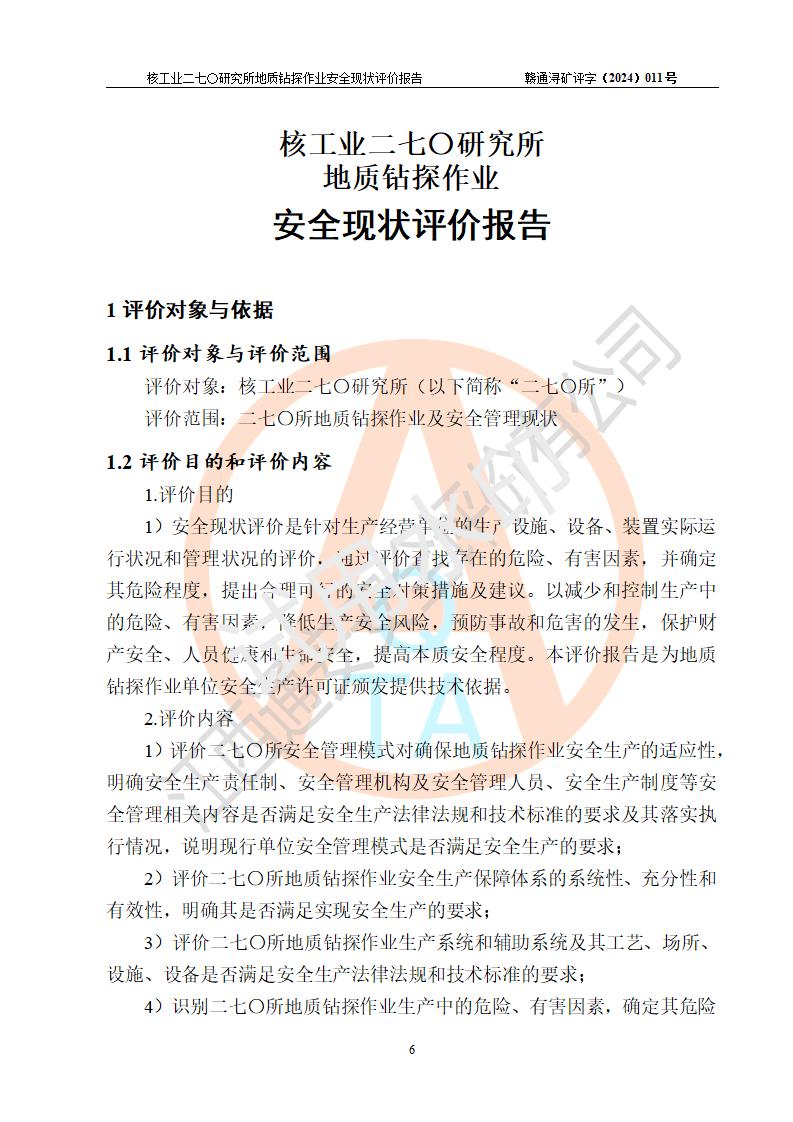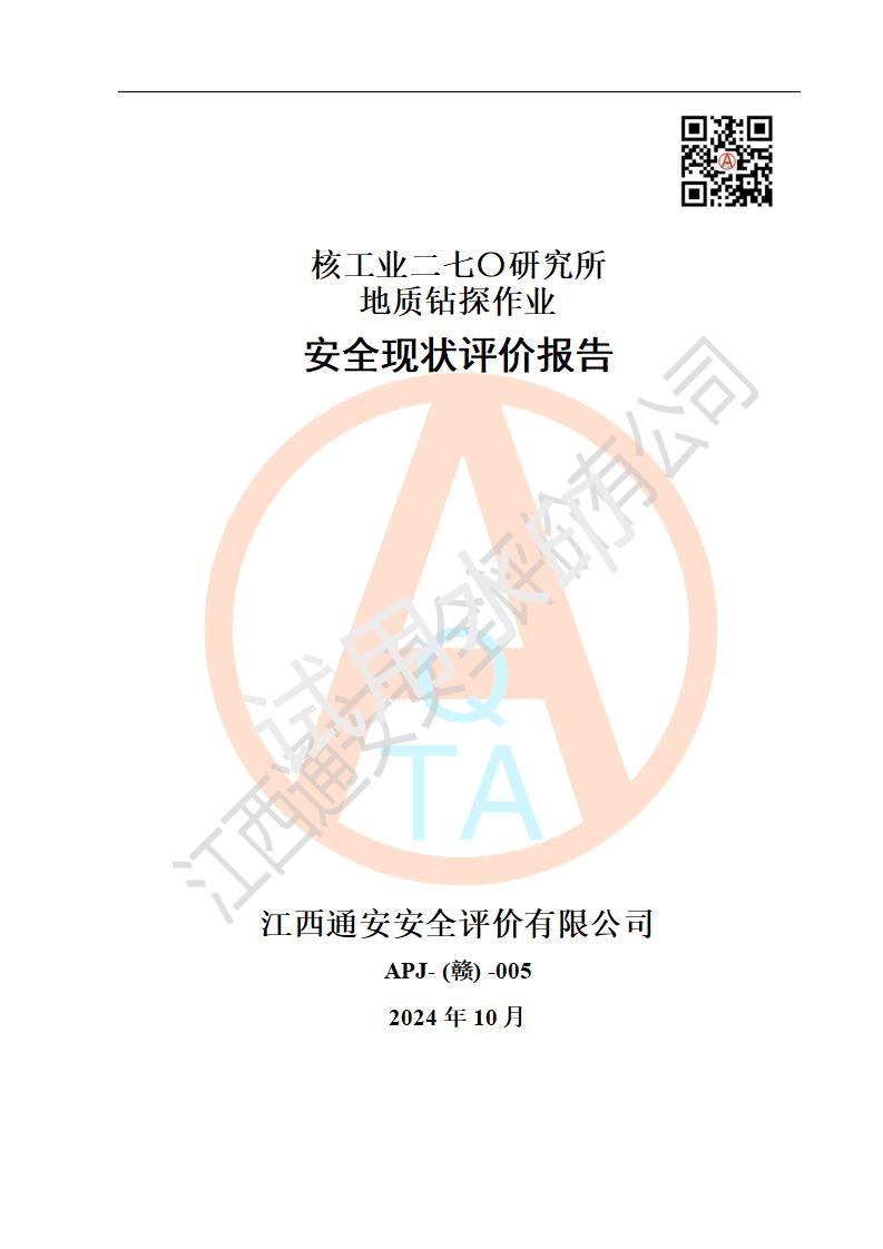 核工業(yè)二七〇研究所地質鉆探作業(yè)安全現(xiàn)狀評價報告