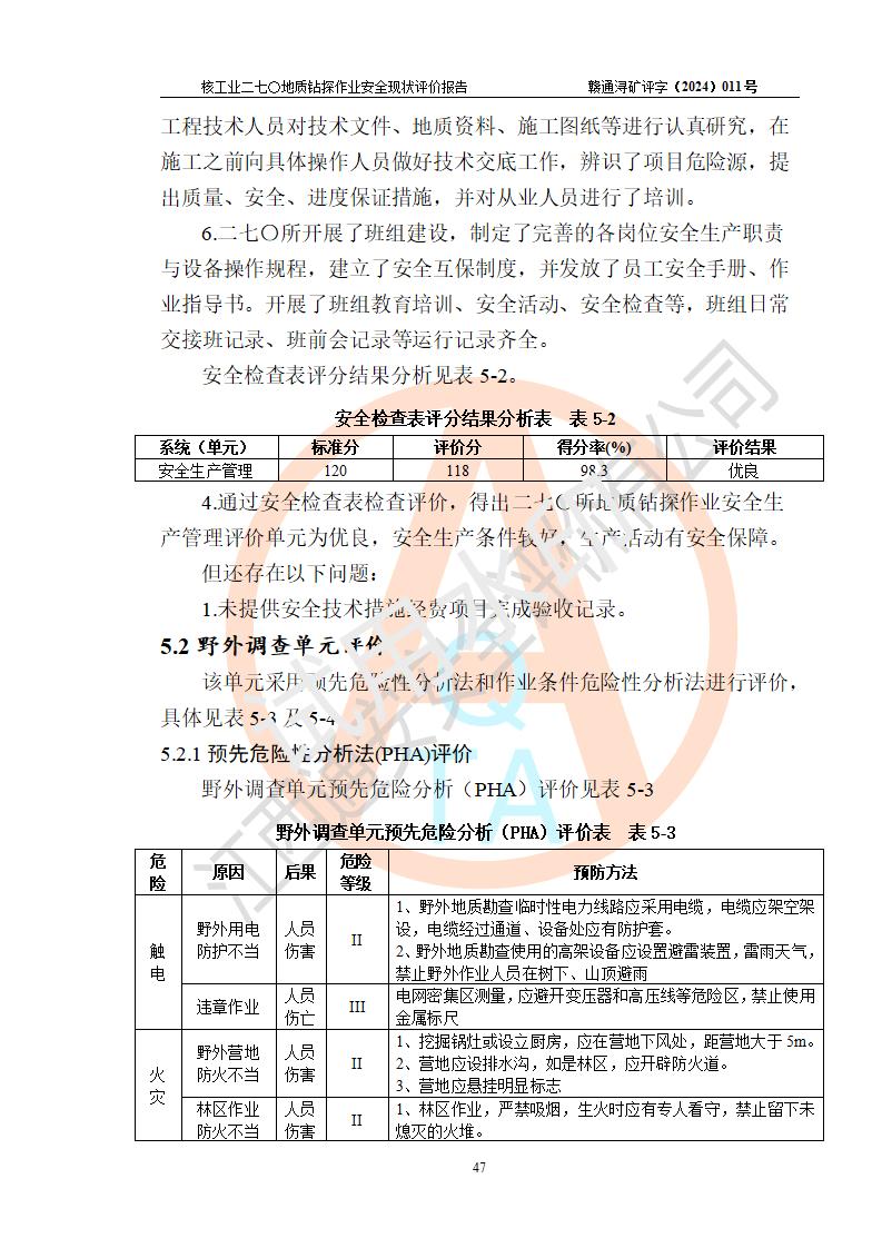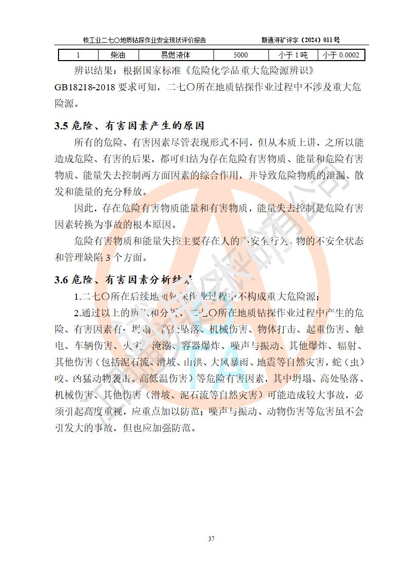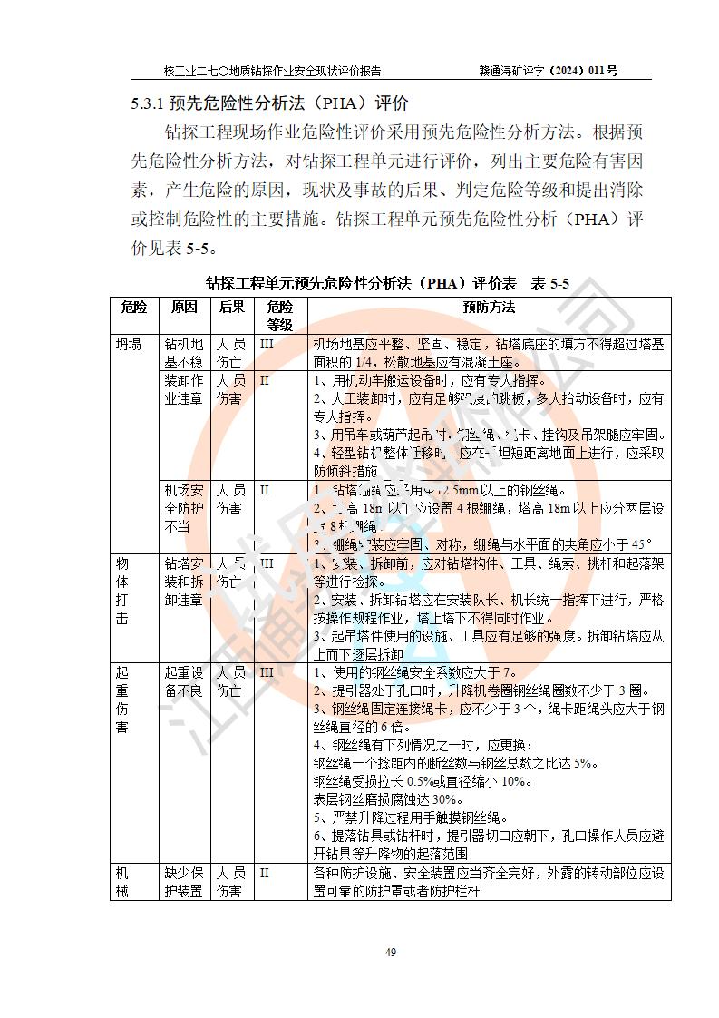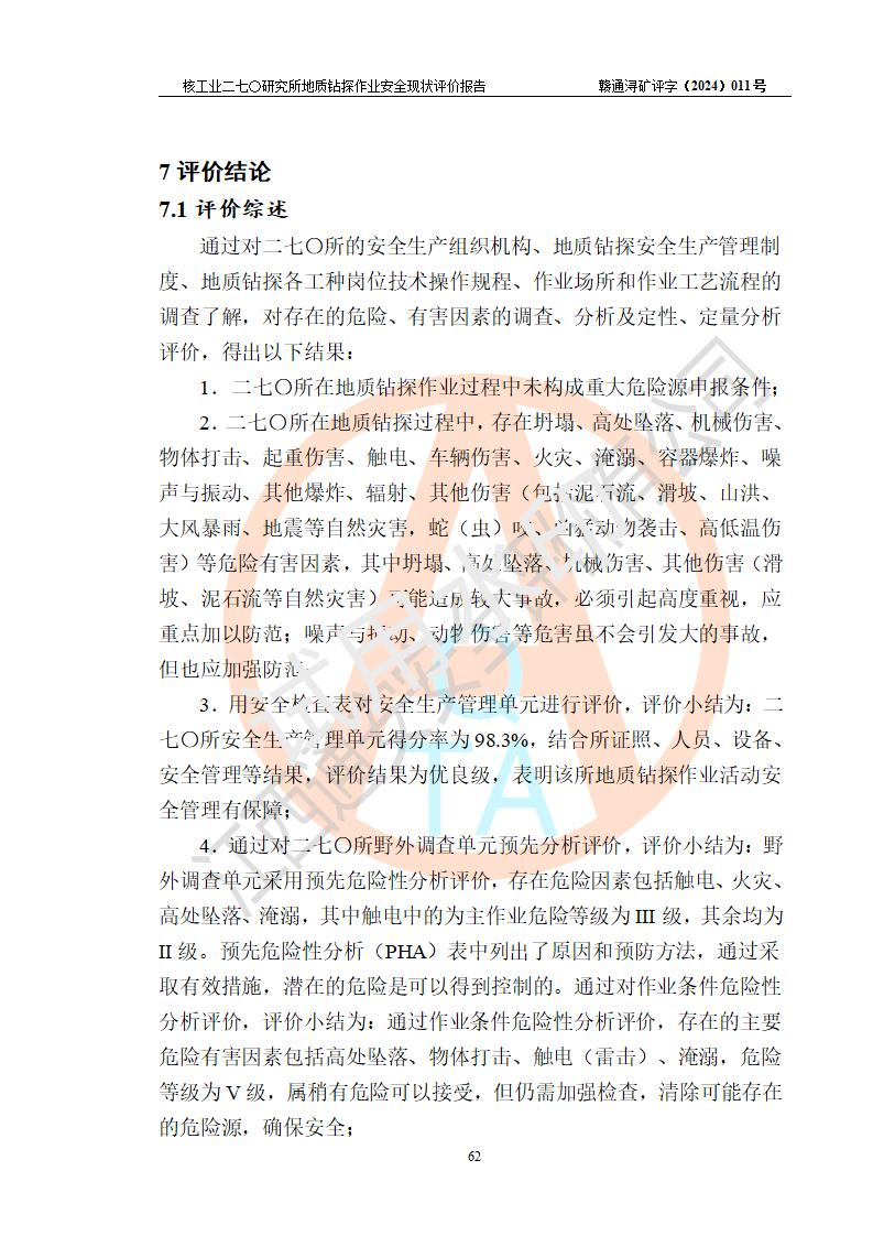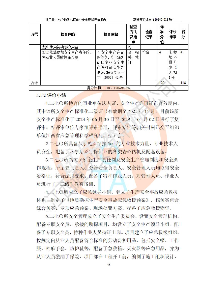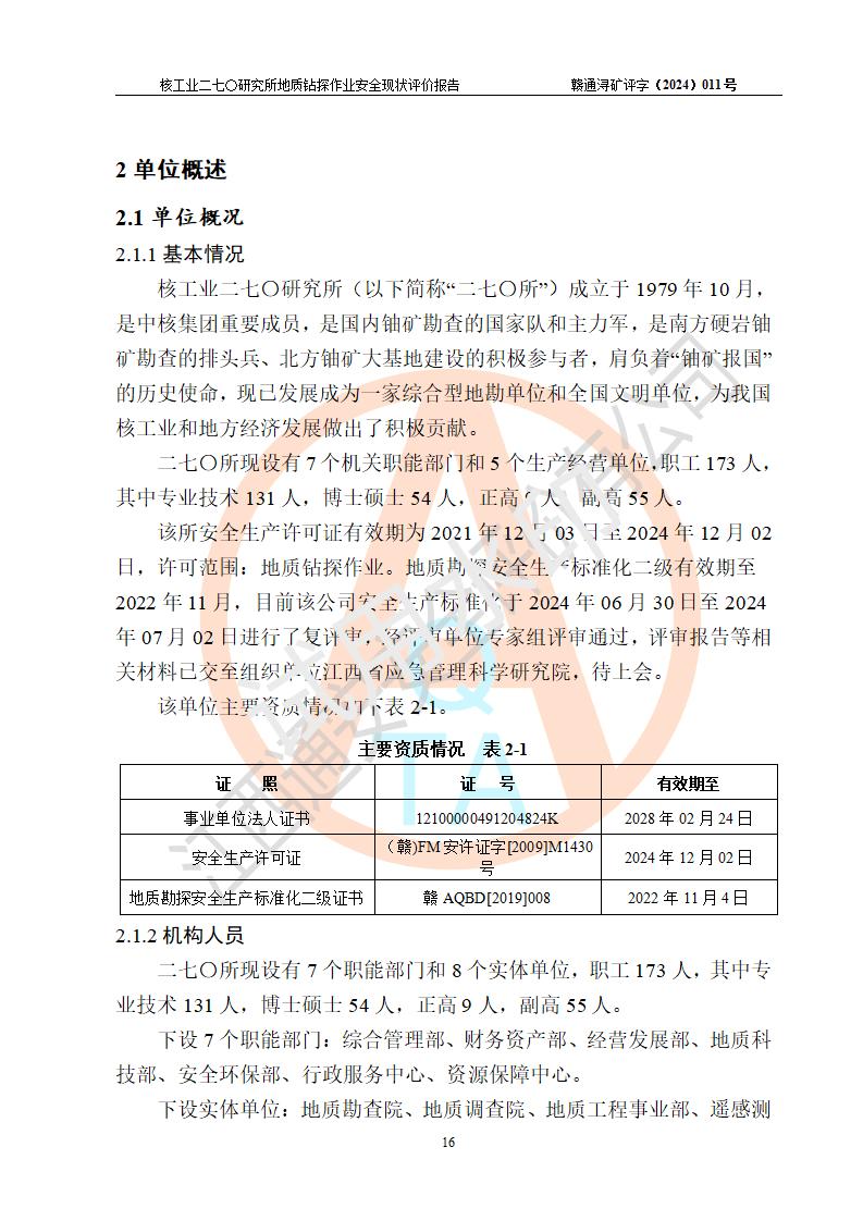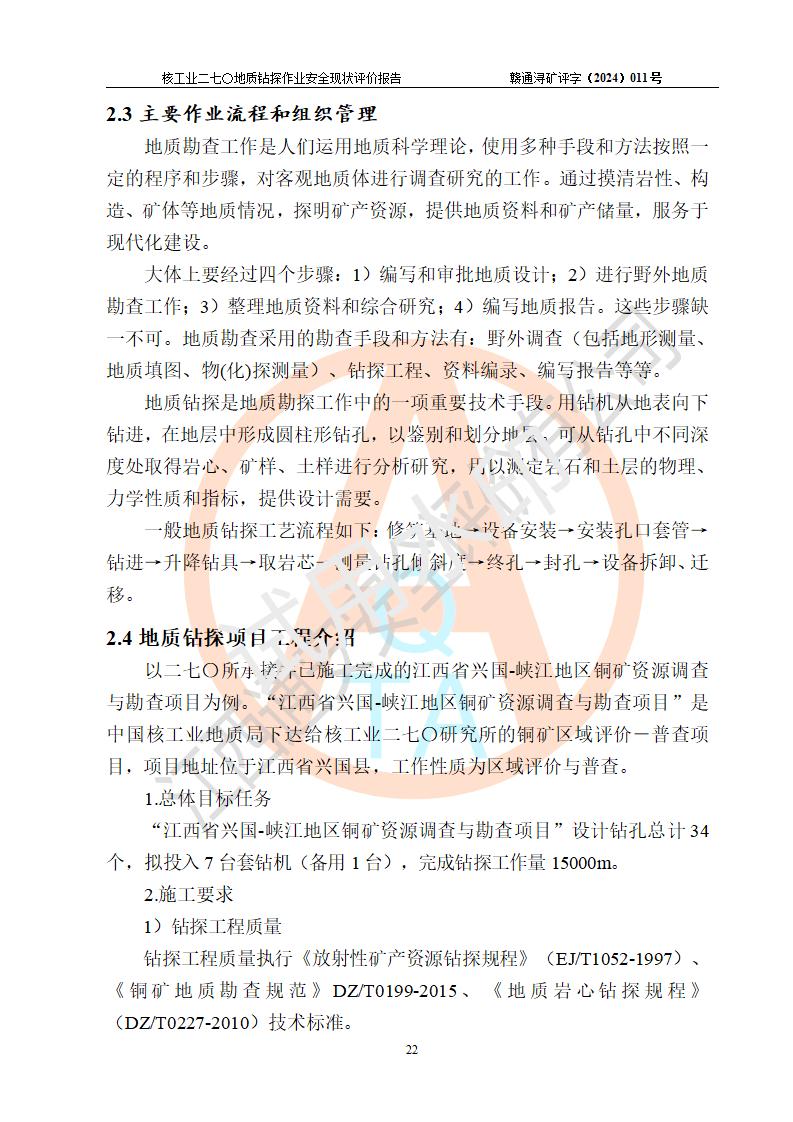 核工業(yè)二七〇研究所地質鉆探作業(yè)安全現(xiàn)狀評價報告