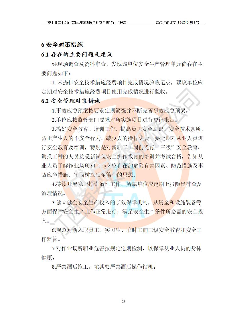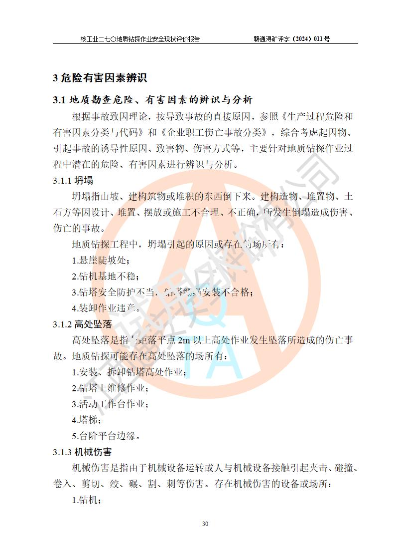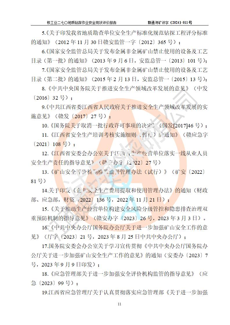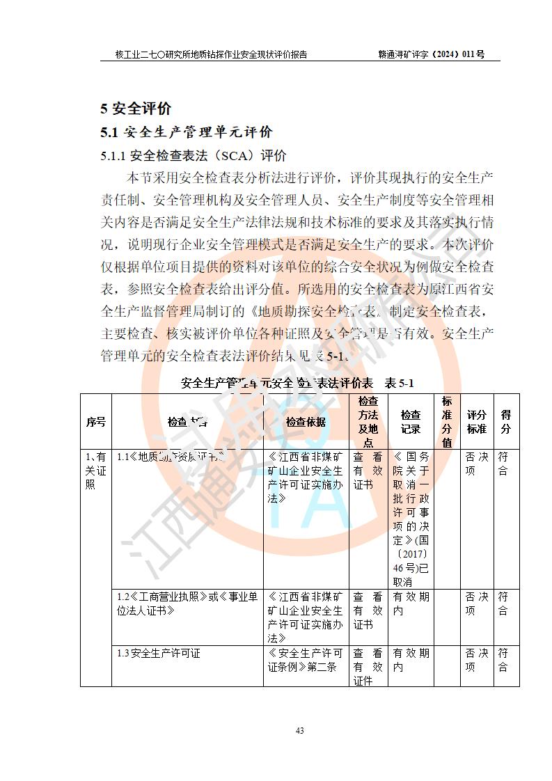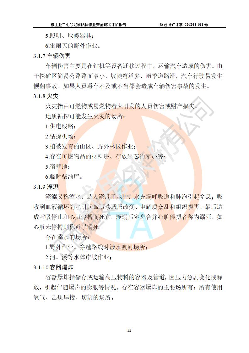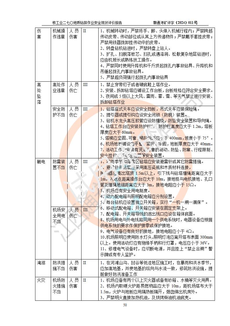 核工業(yè)二七〇研究所地質鉆探作業(yè)安全現(xiàn)狀評價報告