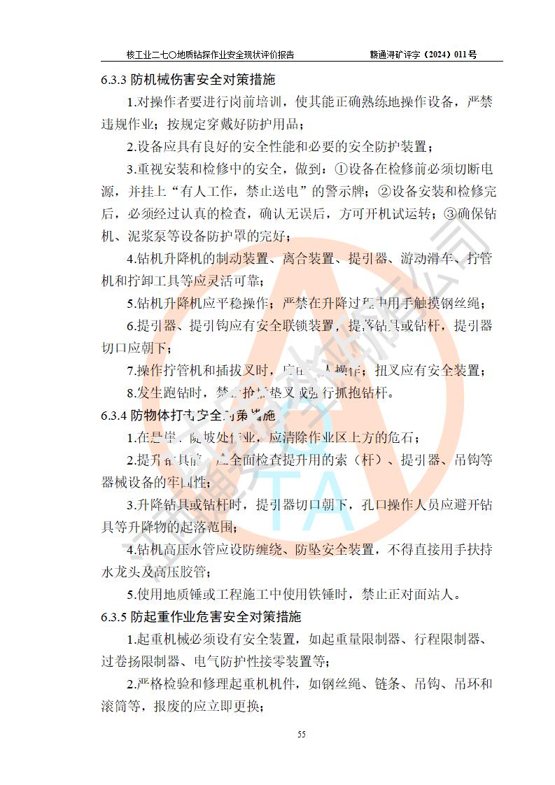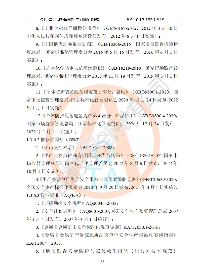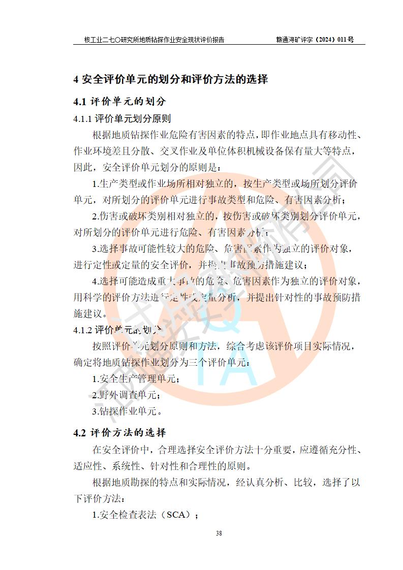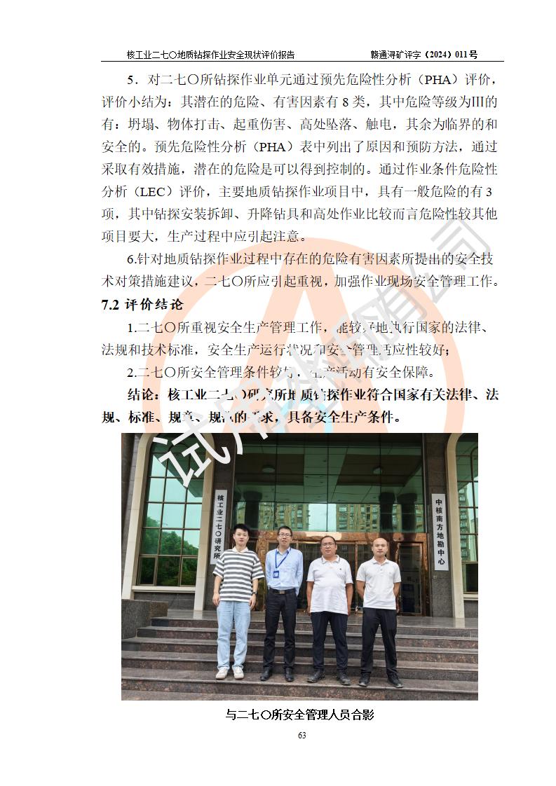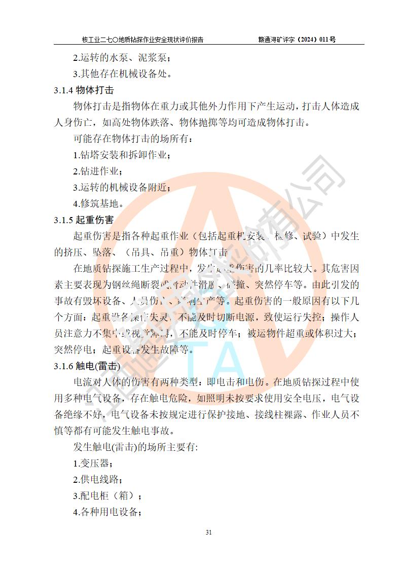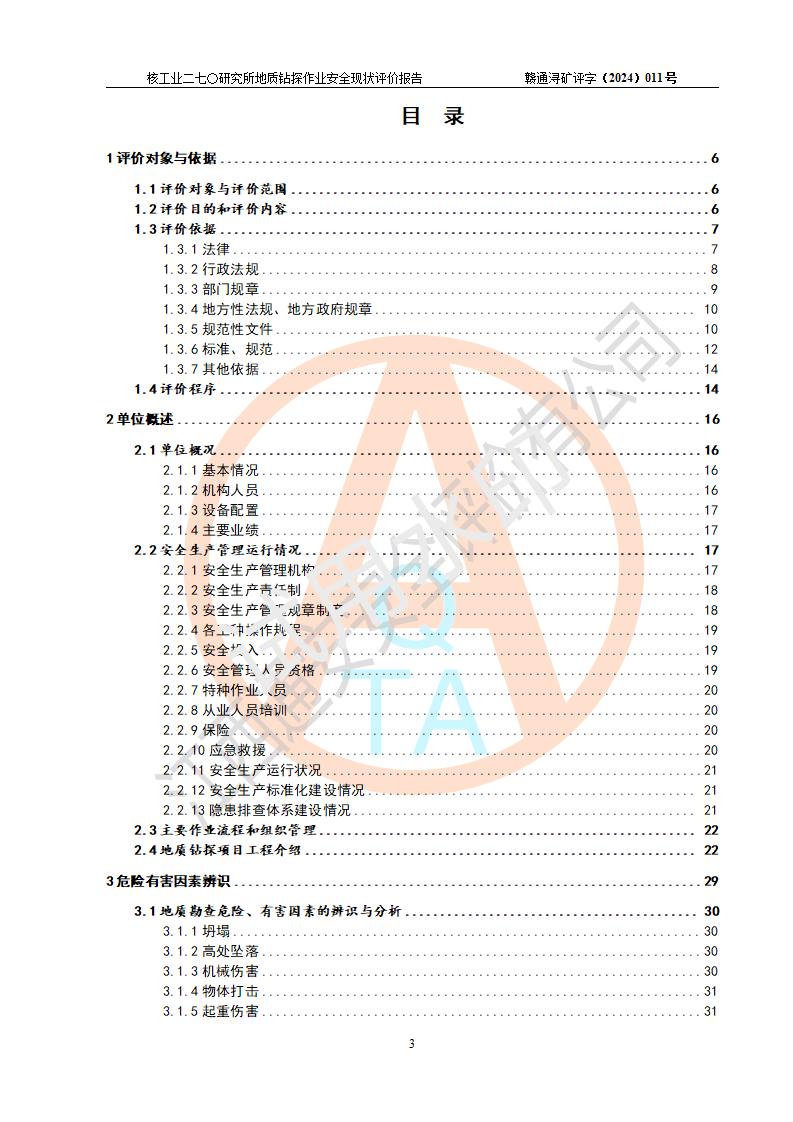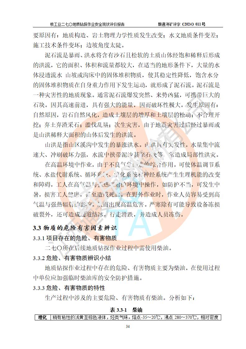 核工業(yè)二七〇研究所地質鉆探作業(yè)安全現(xiàn)狀評價報告