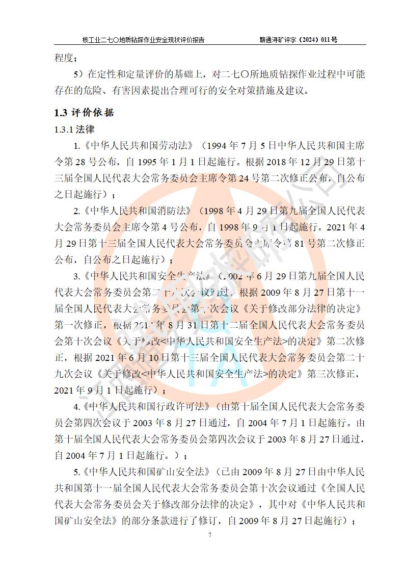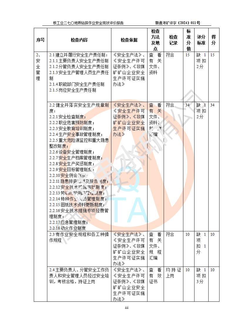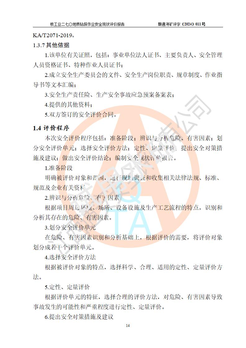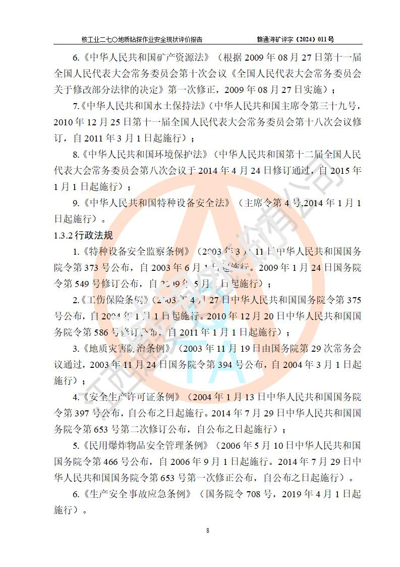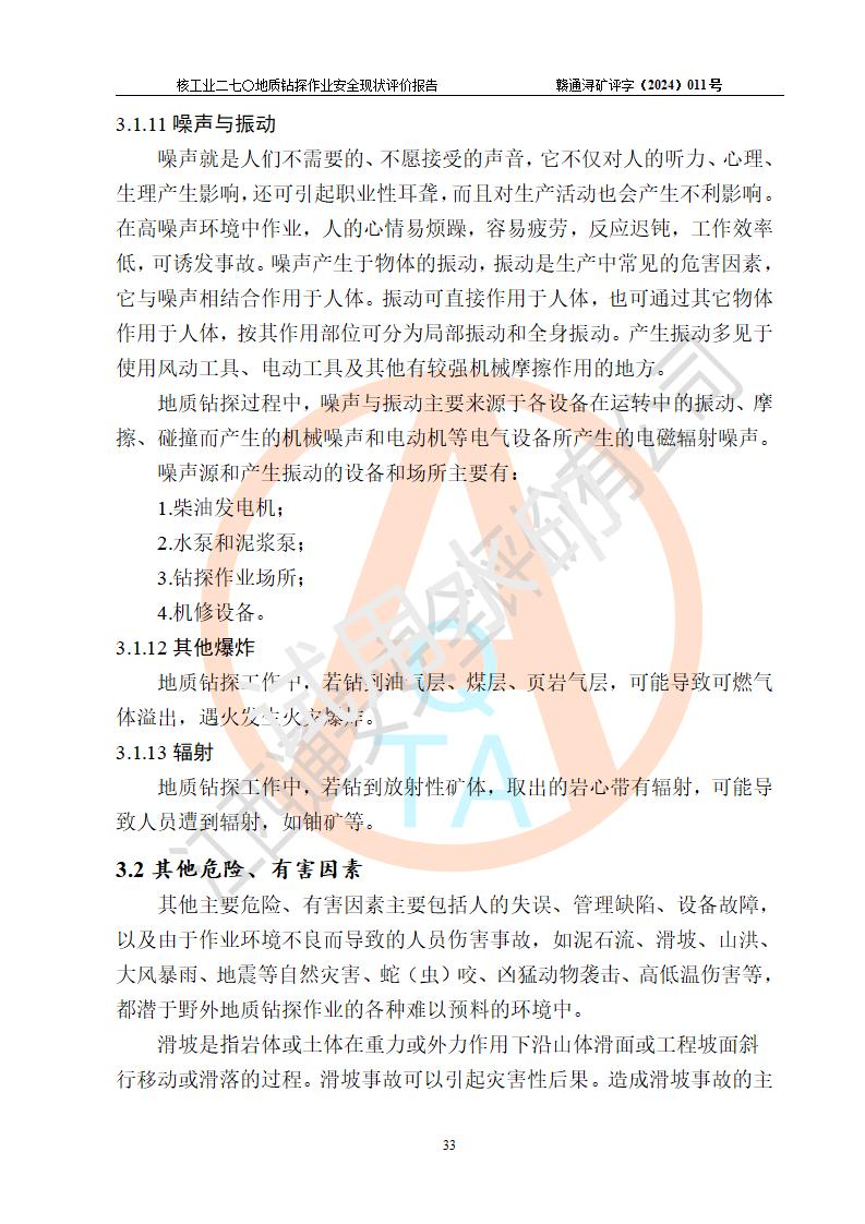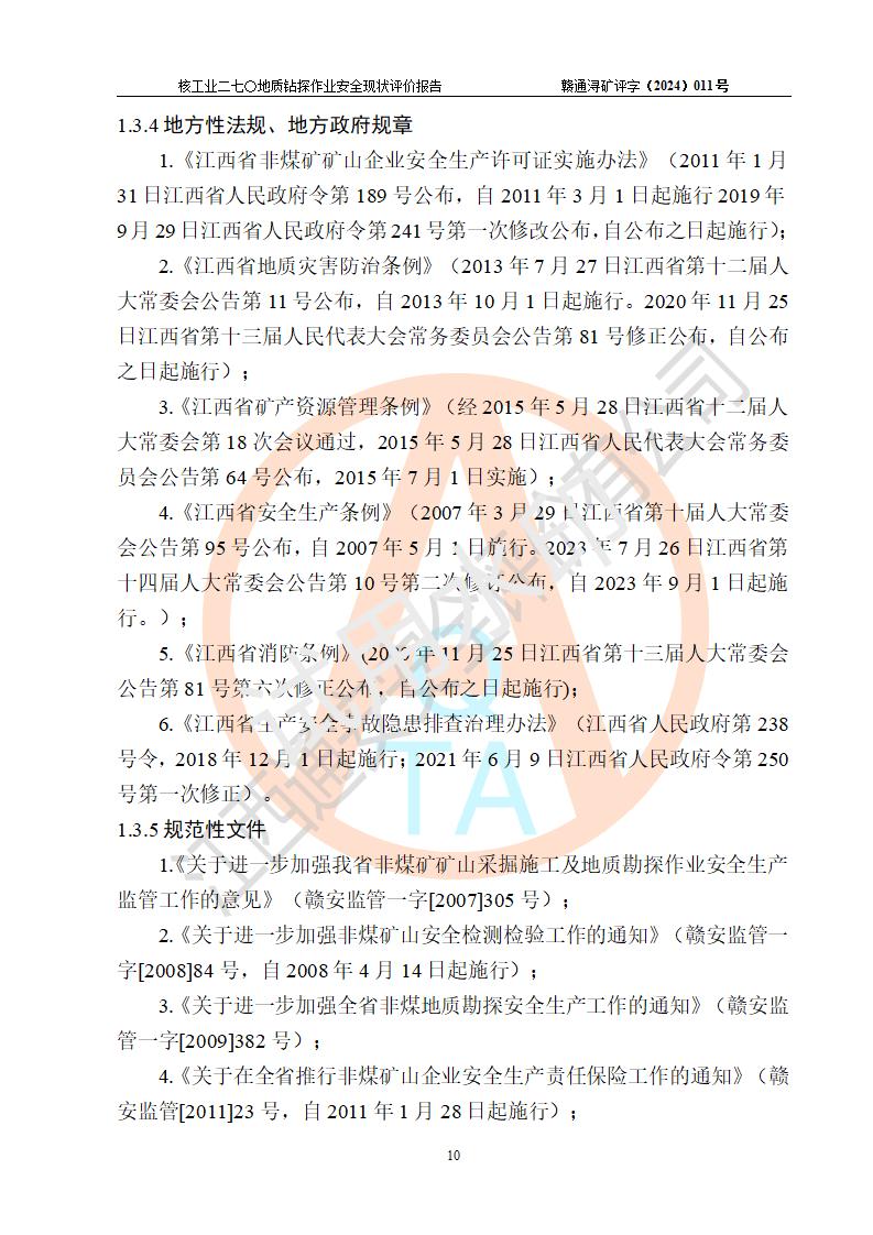 核工業(yè)二七〇研究所地質鉆探作業(yè)安全現(xiàn)狀評價報告