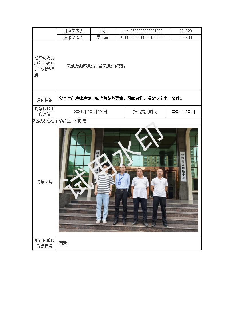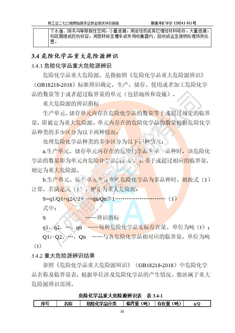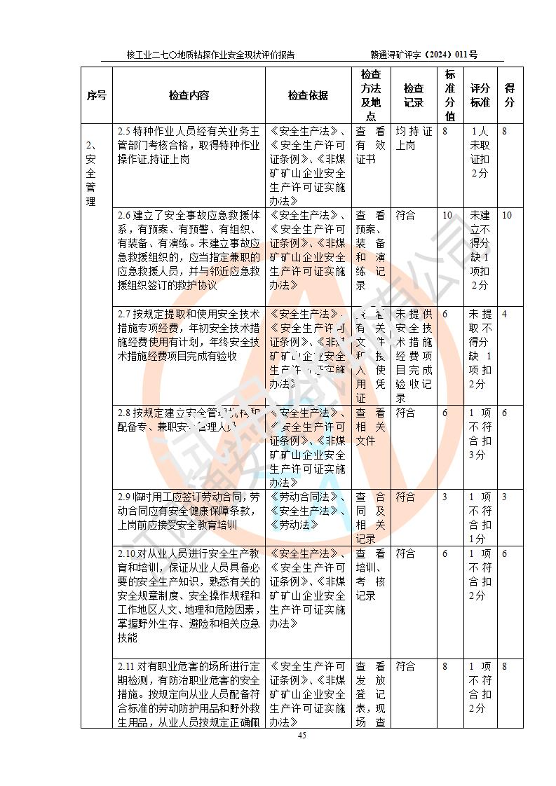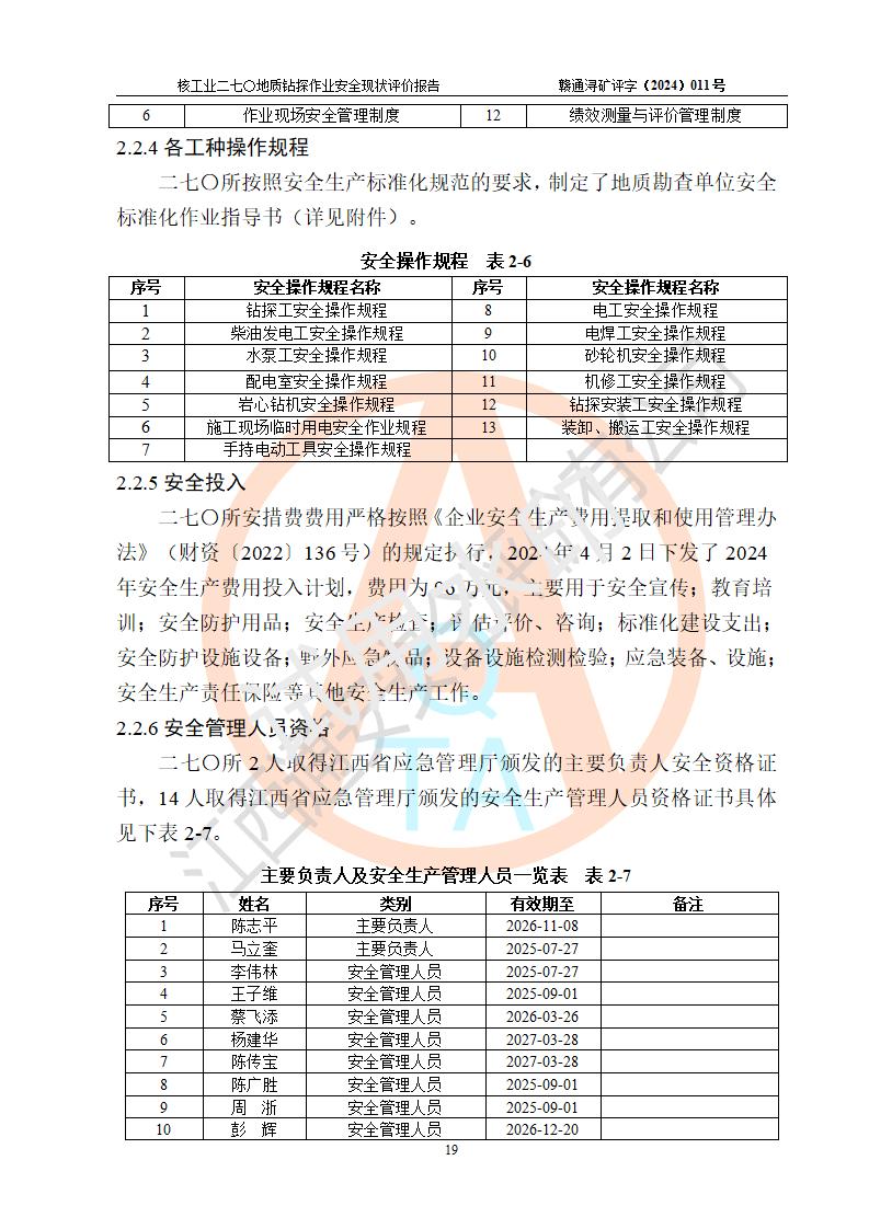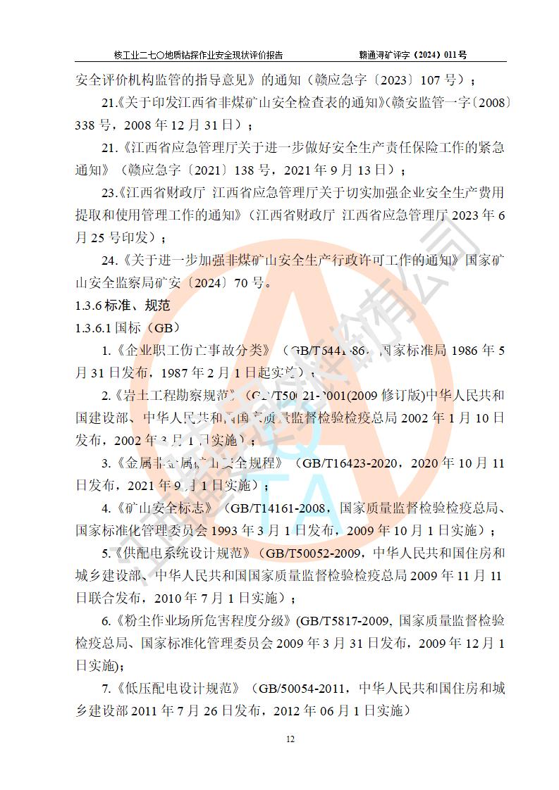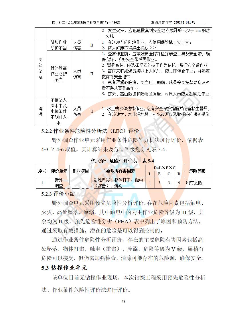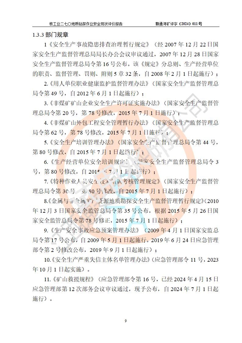 核工業(yè)二七〇研究所地質鉆探作業(yè)安全現(xiàn)狀評價報告