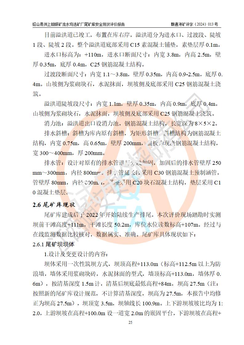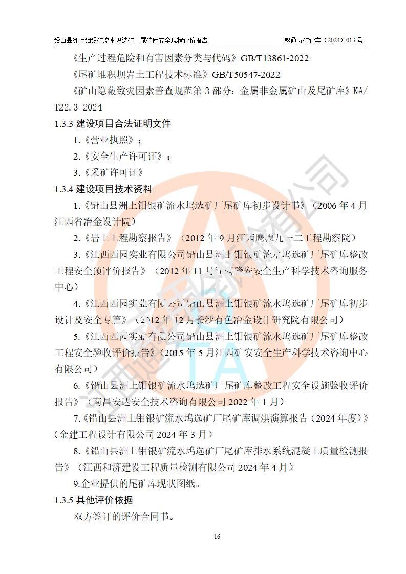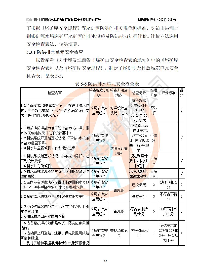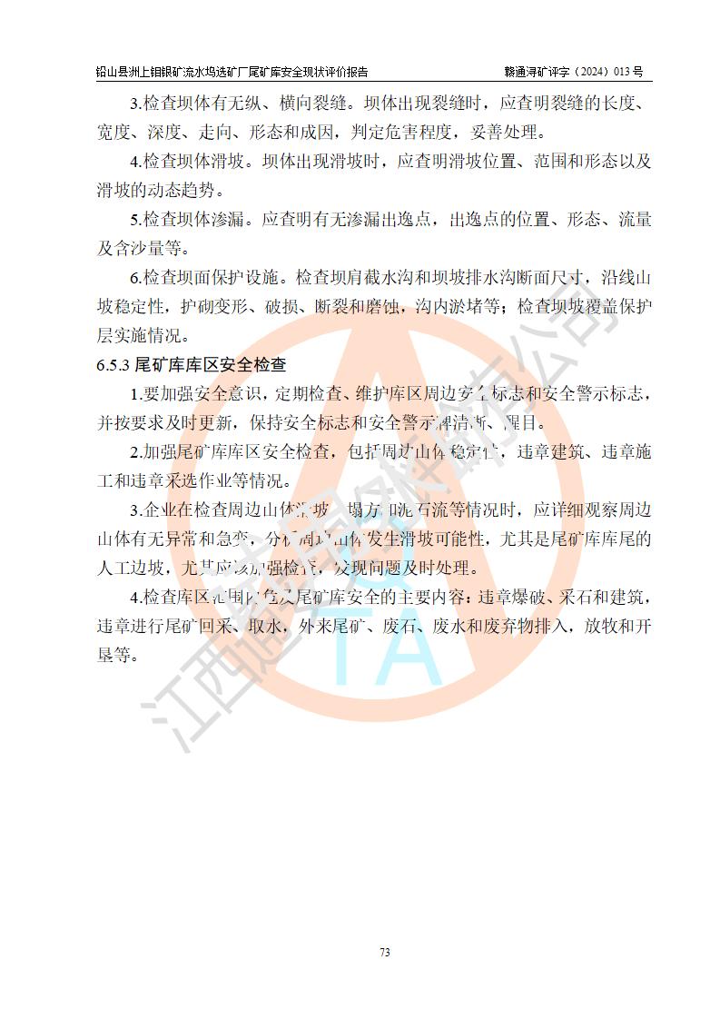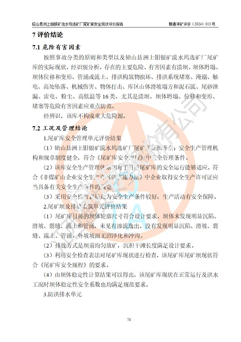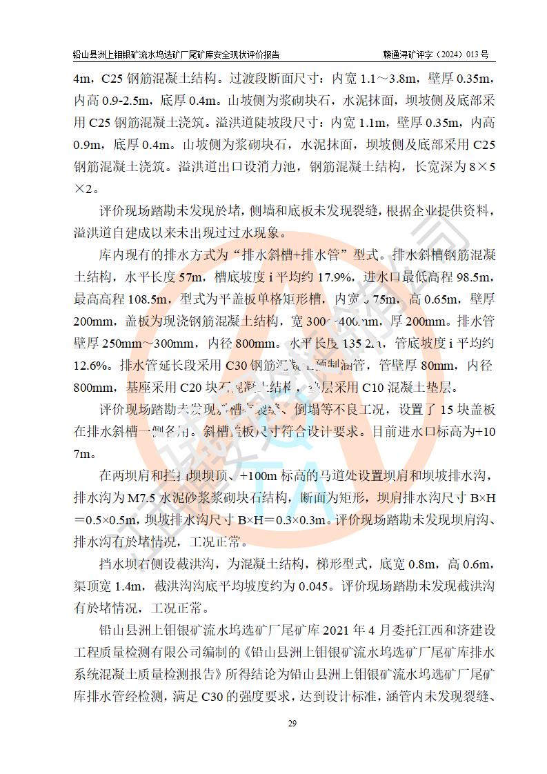 報(bào)告名稱 | 鉛山縣洲上鉬銀礦流水塢選礦廠尾礦庫(kù)安全現(xiàn)狀評(píng)價(jià)報(bào)告 | ||||||
