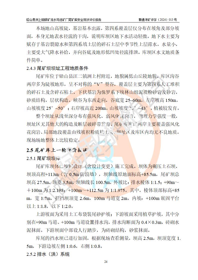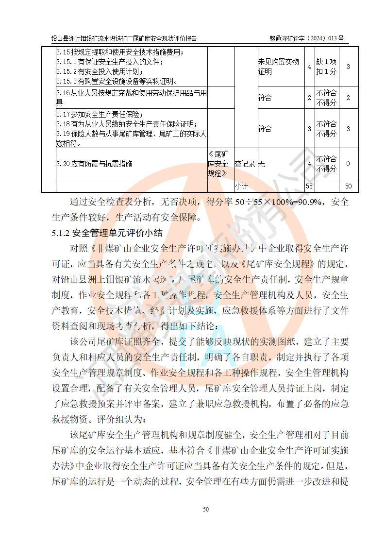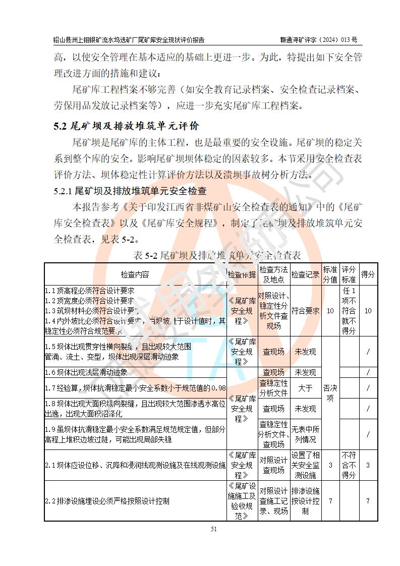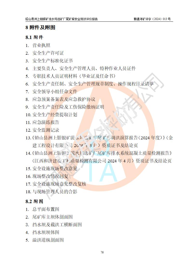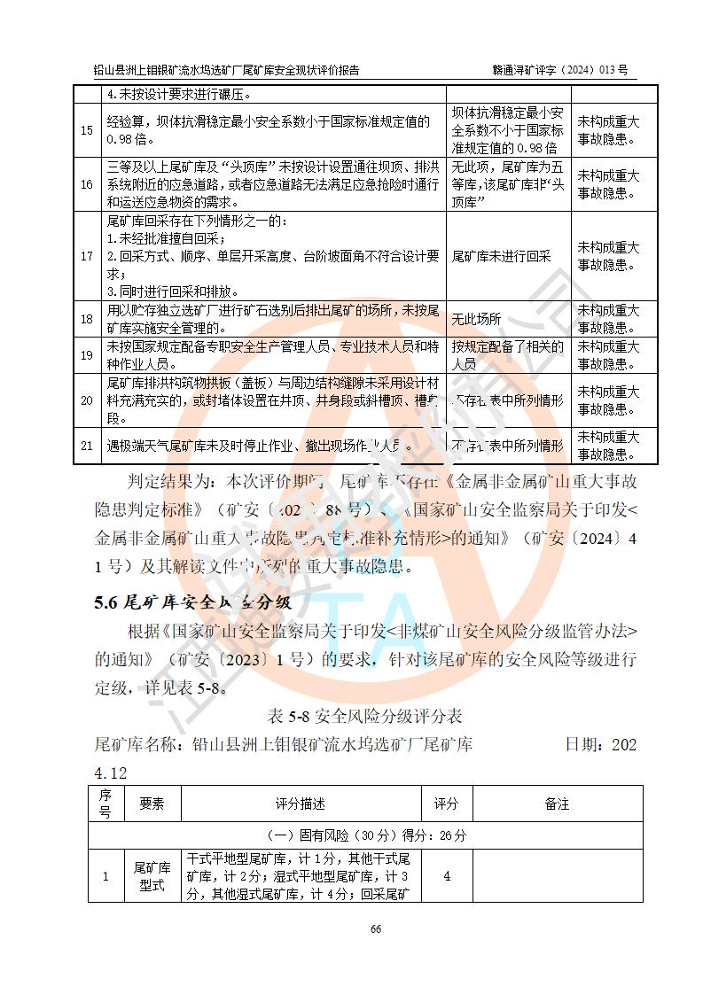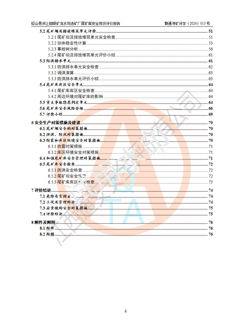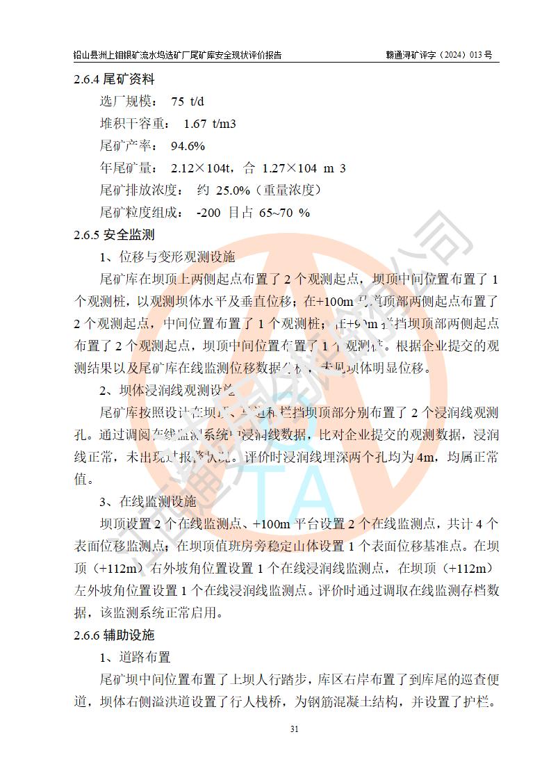 報(bào)告名稱 | 鉛山縣洲上鉬銀礦流水塢選礦廠尾礦庫(kù)安全現(xiàn)狀評(píng)價(jià)報(bào)告 | ||||||