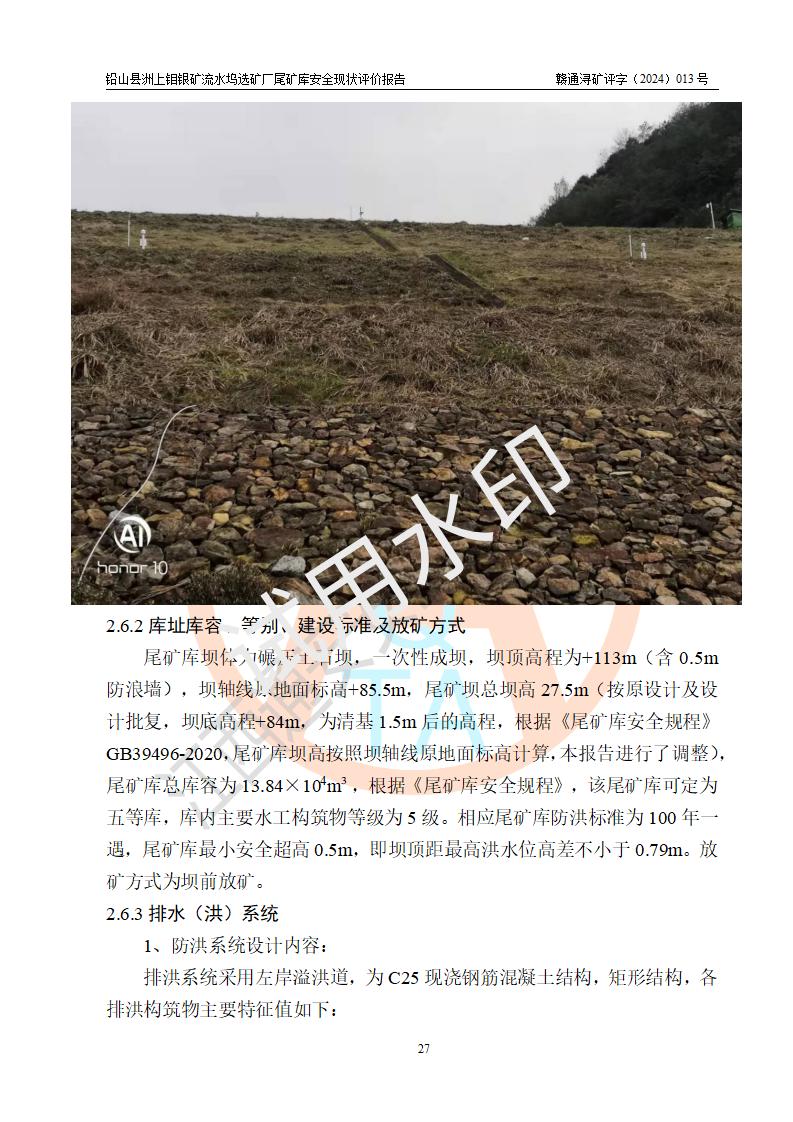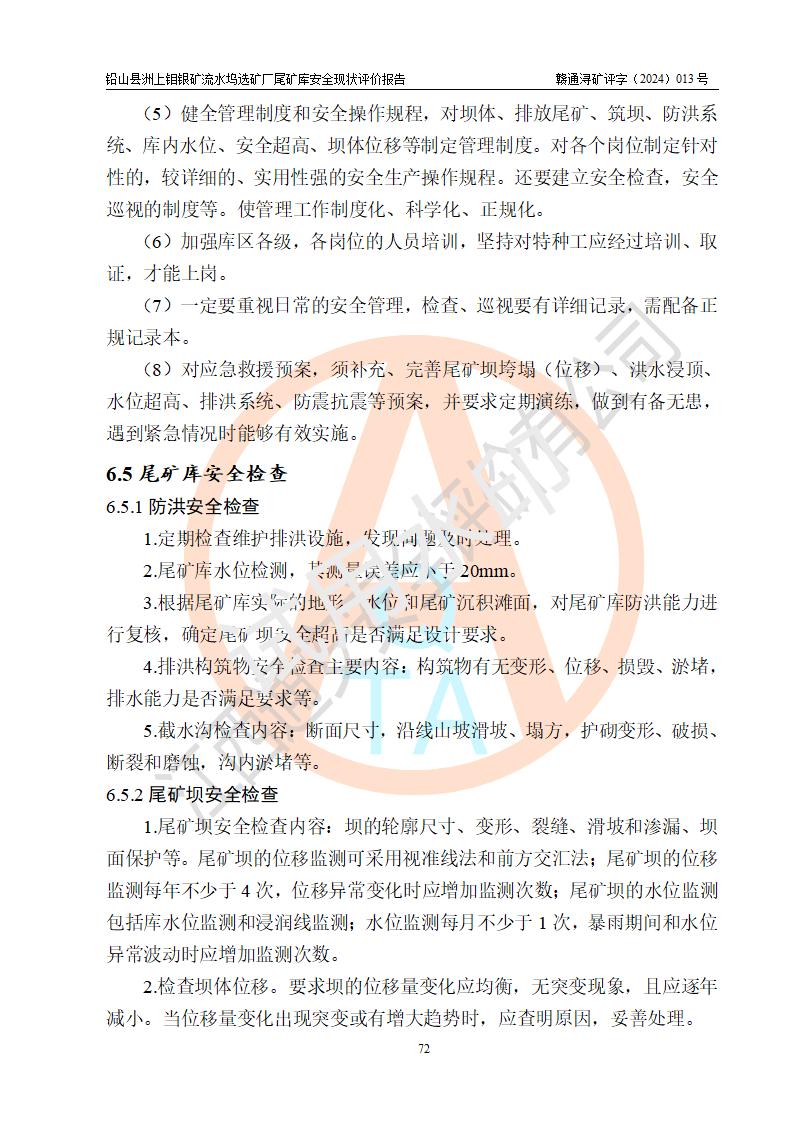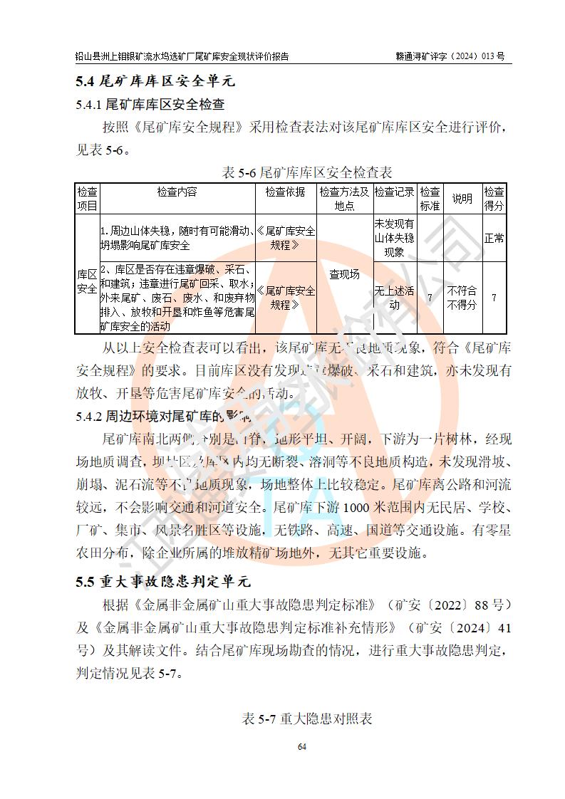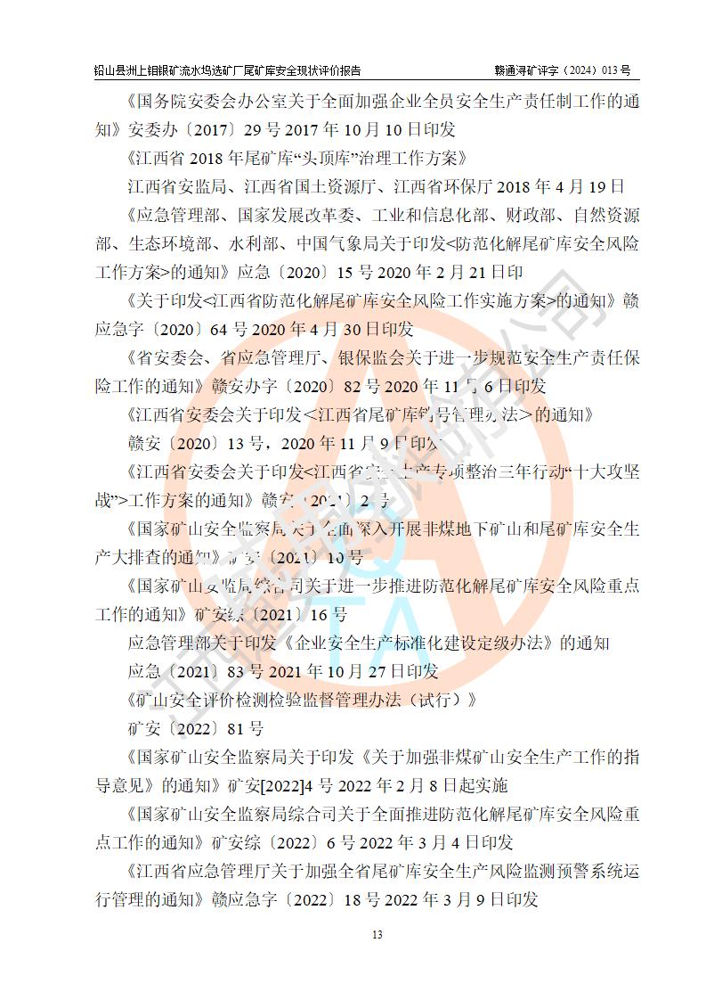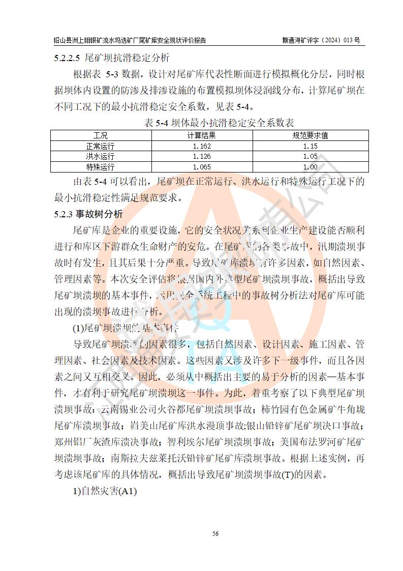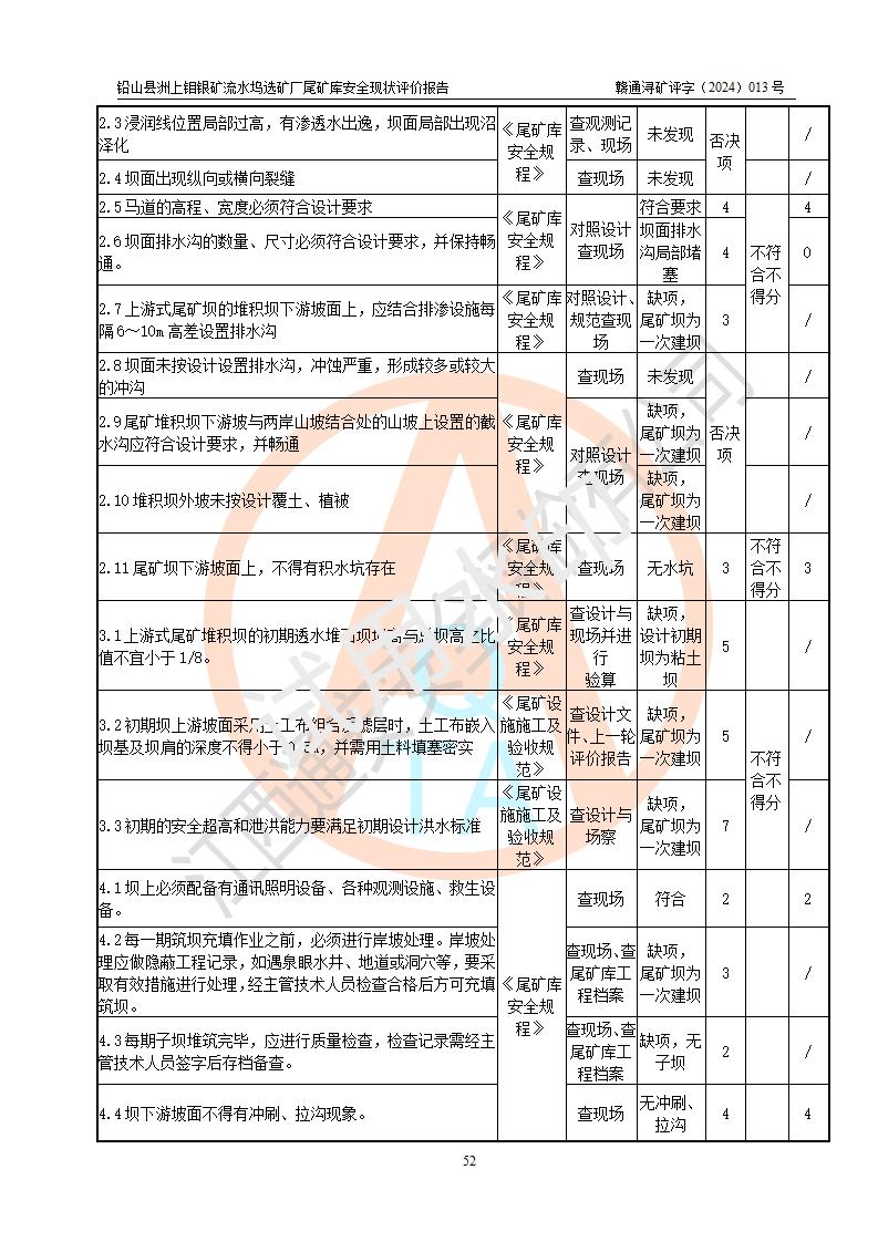 報(bào)告名稱 | 鉛山縣洲上鉬銀礦流水塢選礦廠尾礦庫(kù)安全現(xiàn)狀評(píng)價(jià)報(bào)告 | ||||||